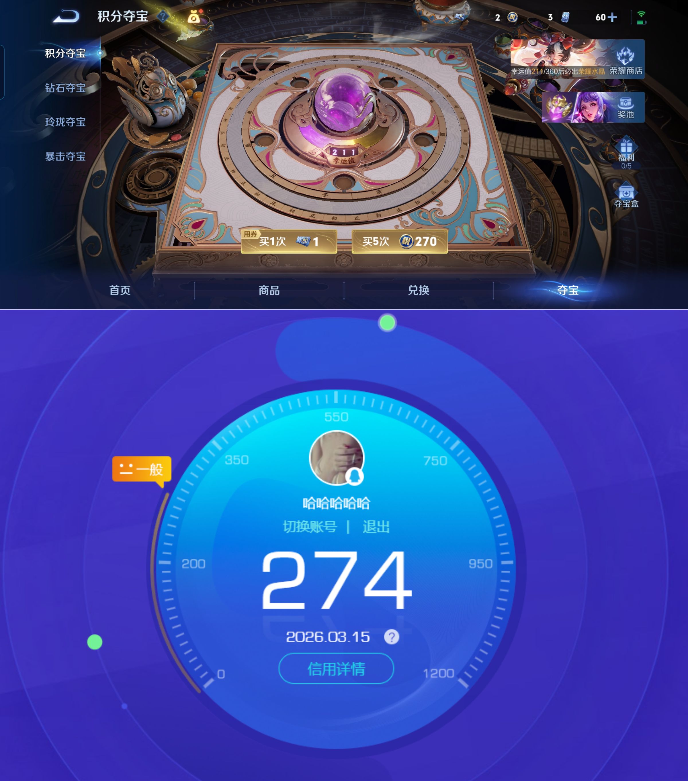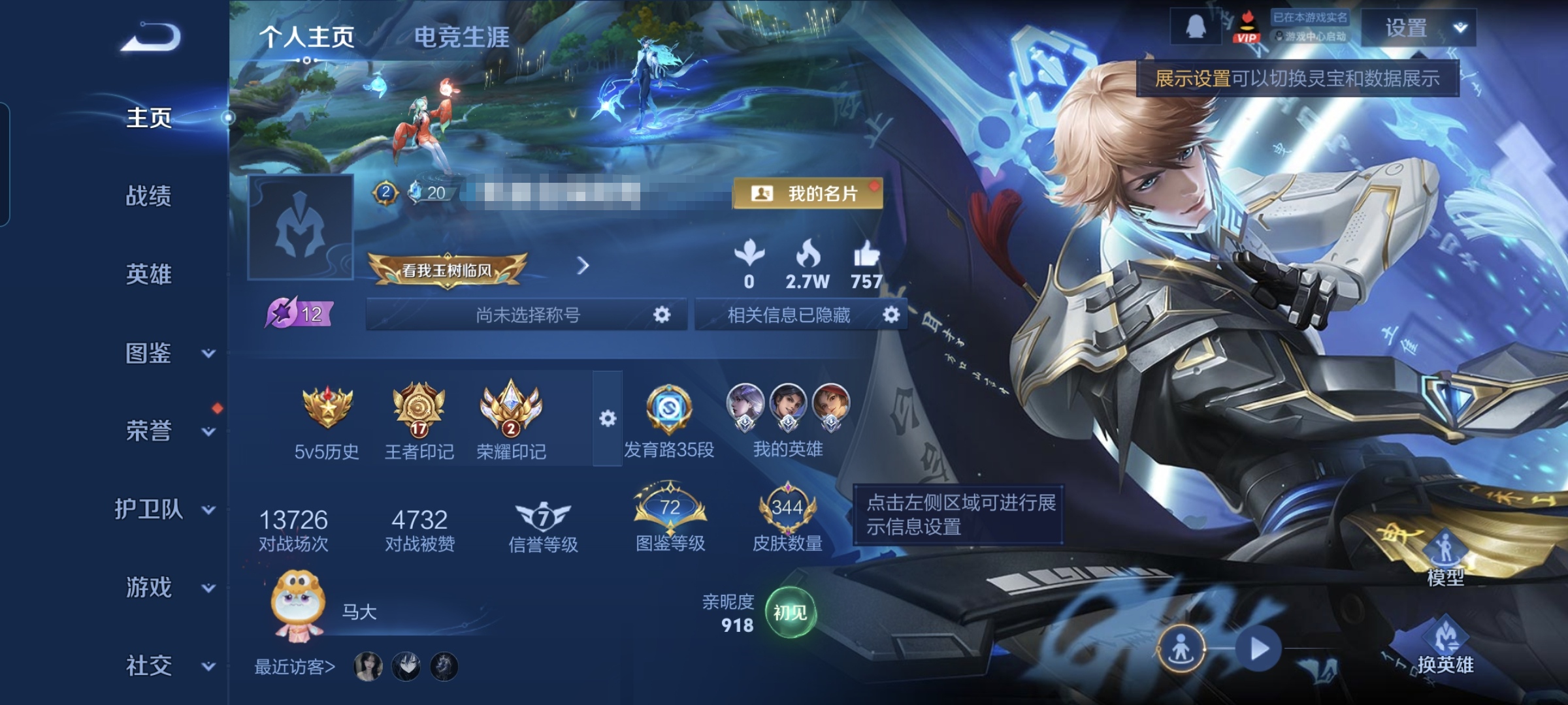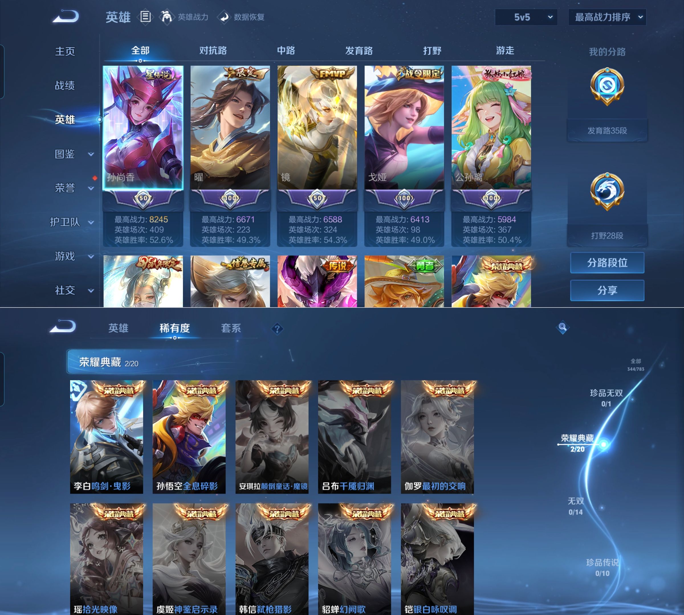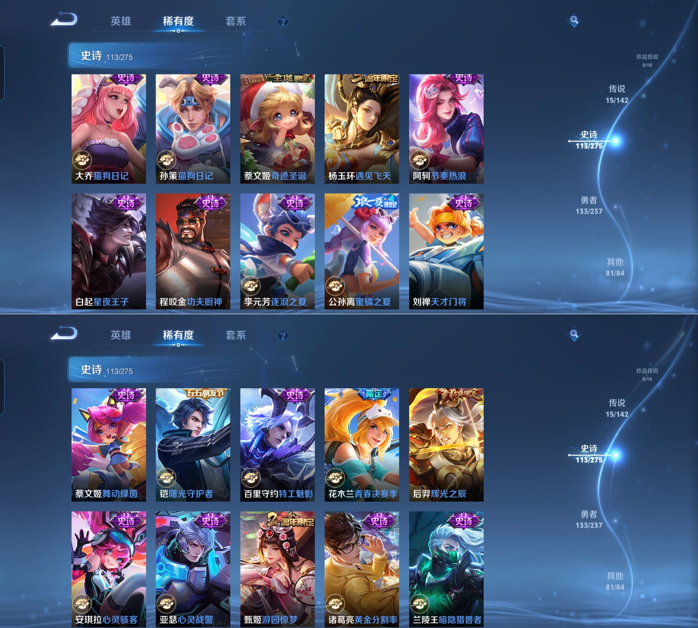 贵族等级:v9皮肤数:344生肖限定7 传说品质15 情人节限定4 荣耀典藏2 英雄数:127