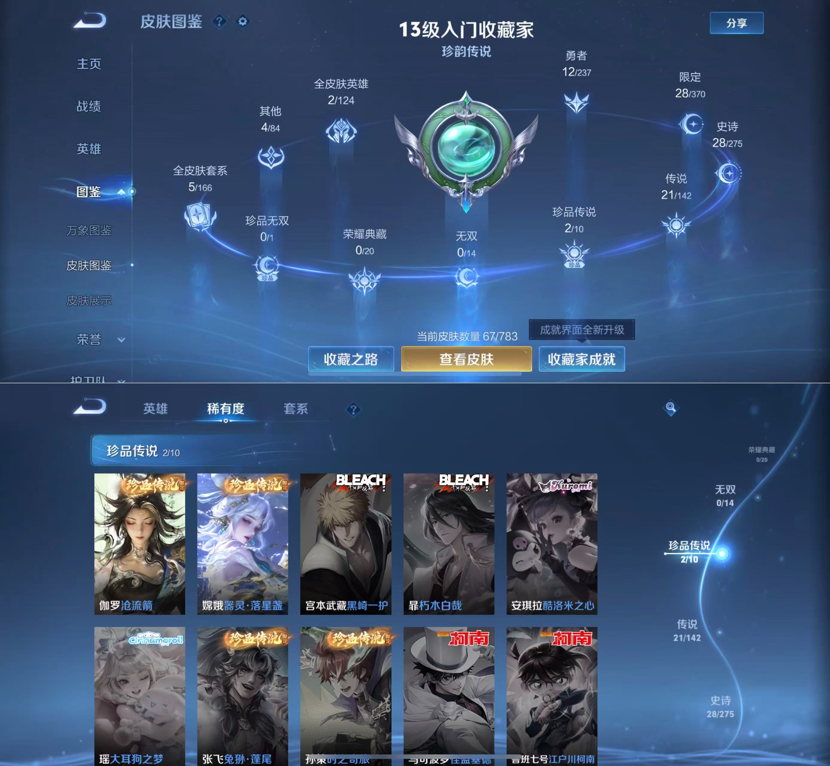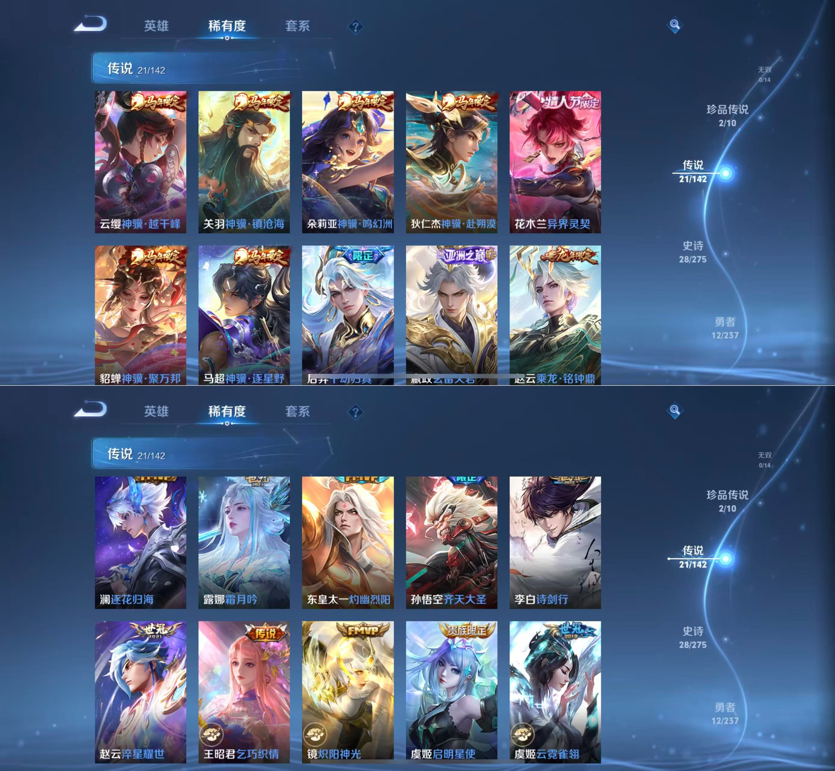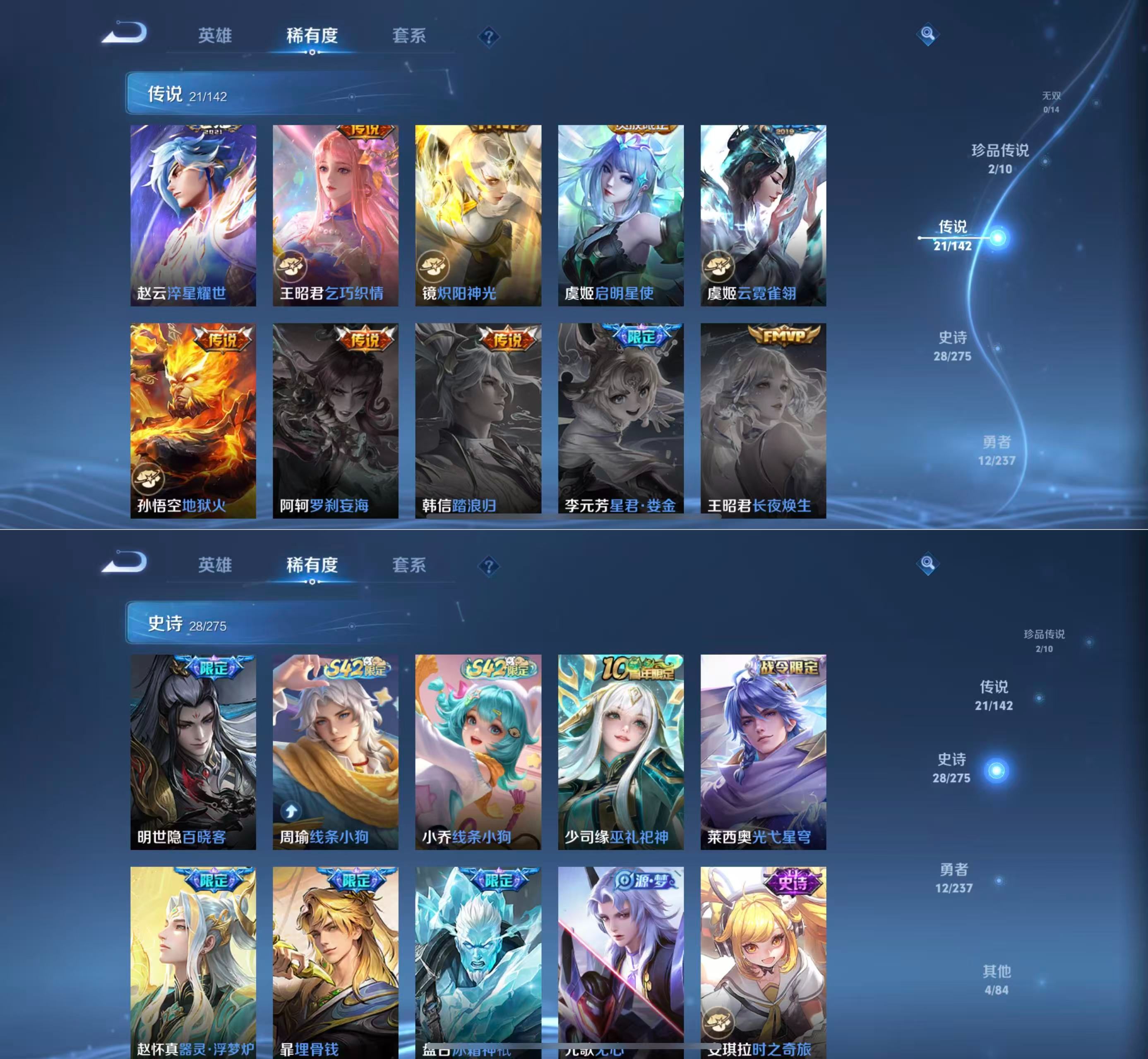 贵族等级:v8皮肤数:67传说品质21 生肖限定7 情人节限定1 珍品传说2 英雄数:55