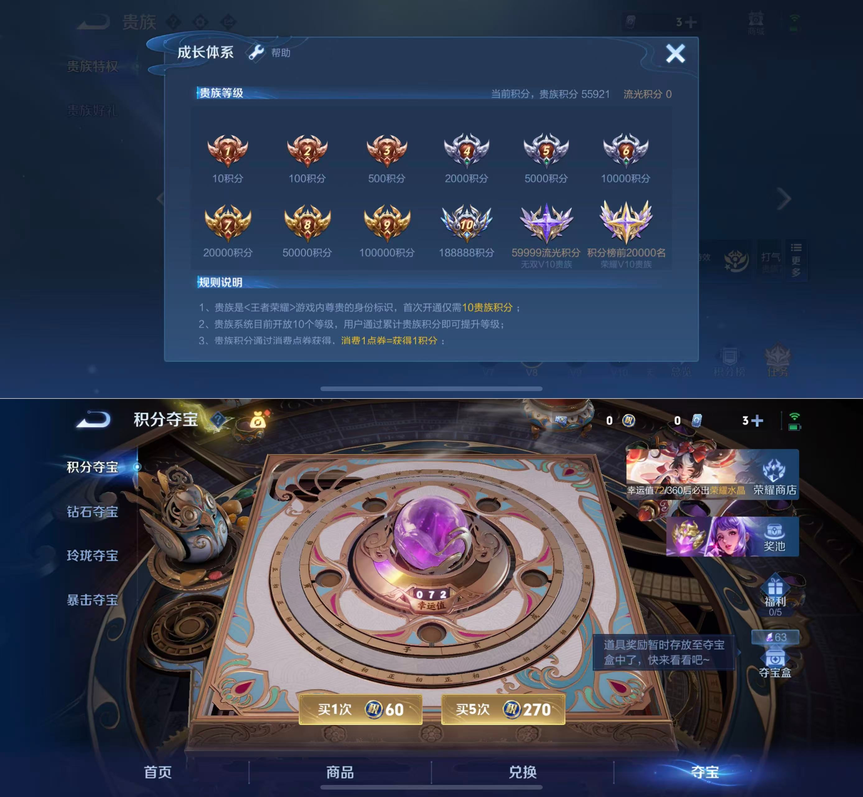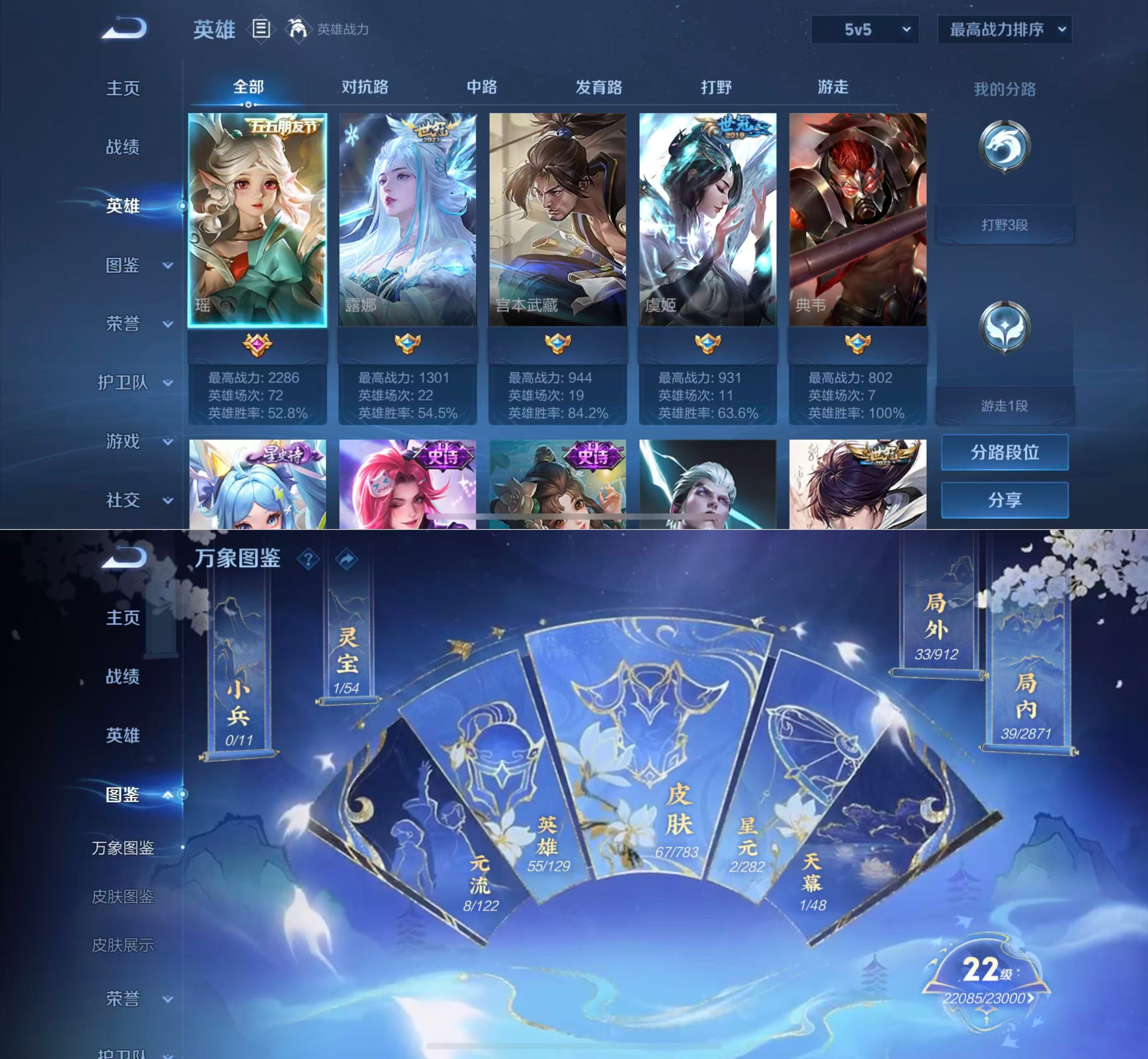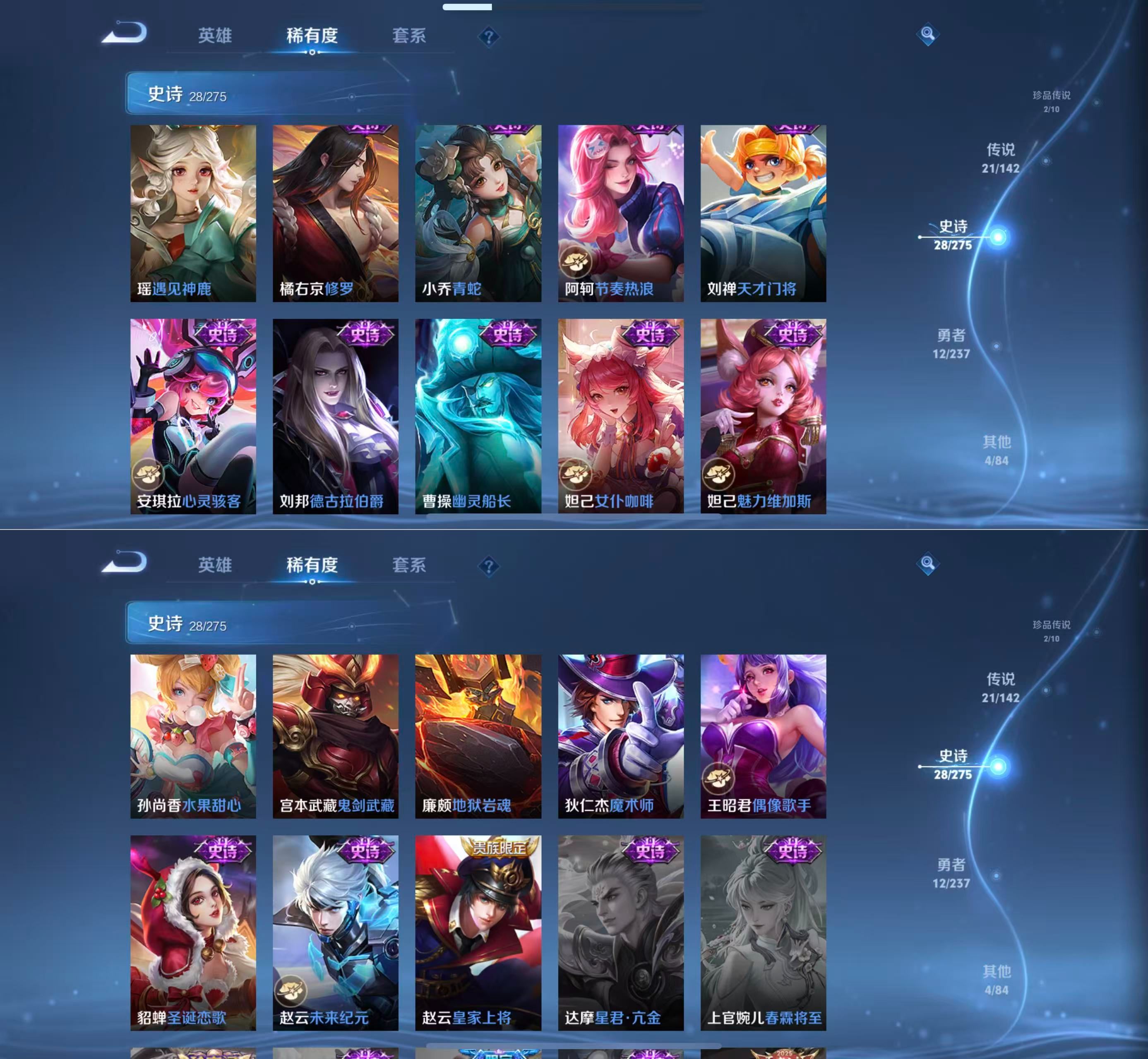 贵族等级:v8皮肤数:67传说品质21 生肖限定7 情人节限定1 珍品传说2 英雄数:55