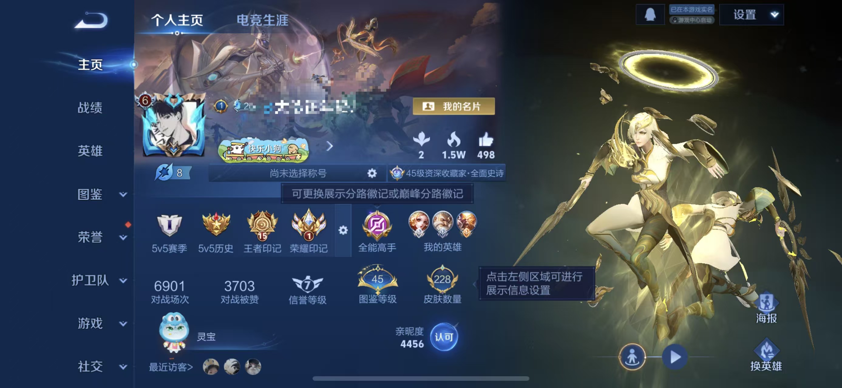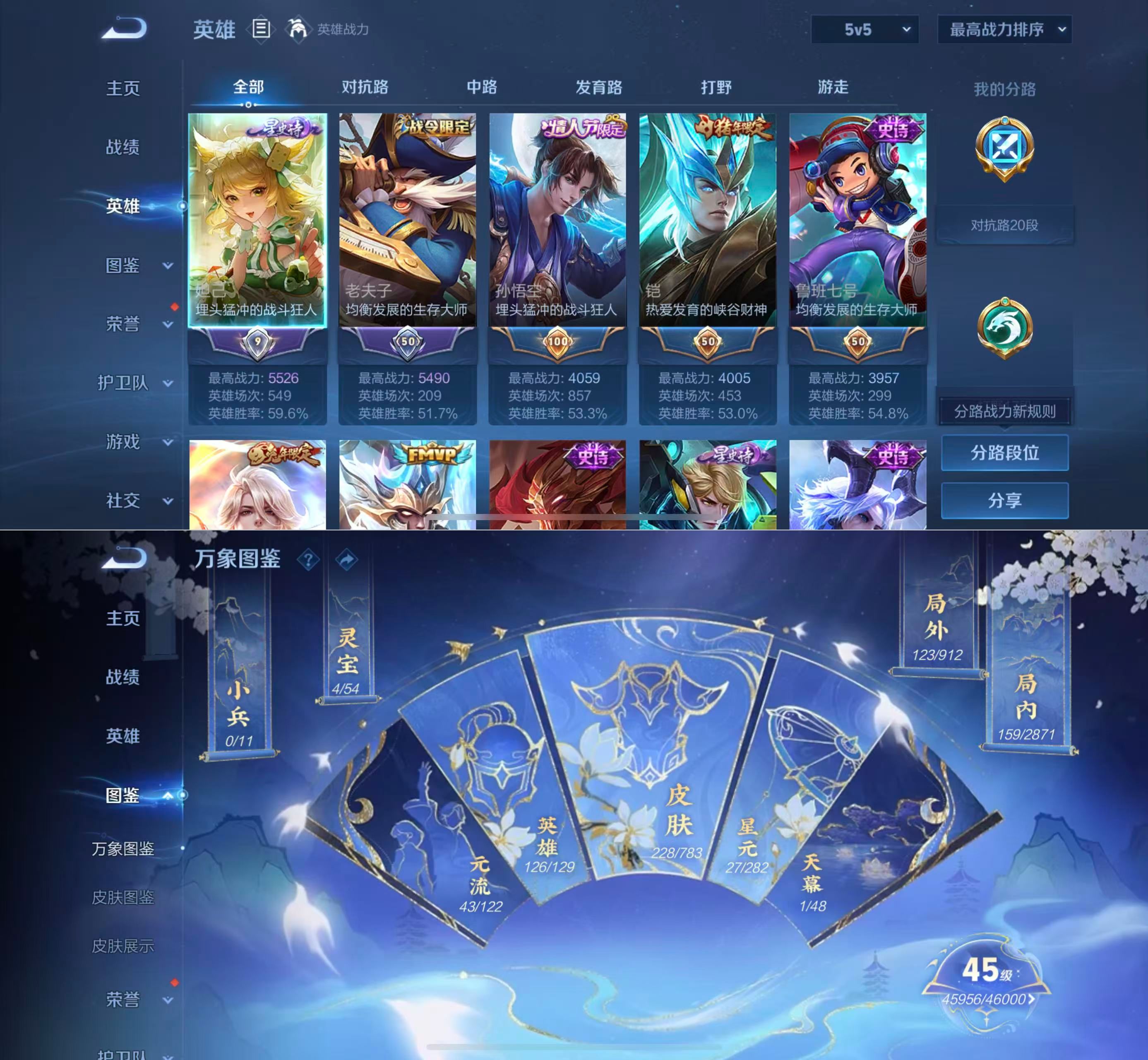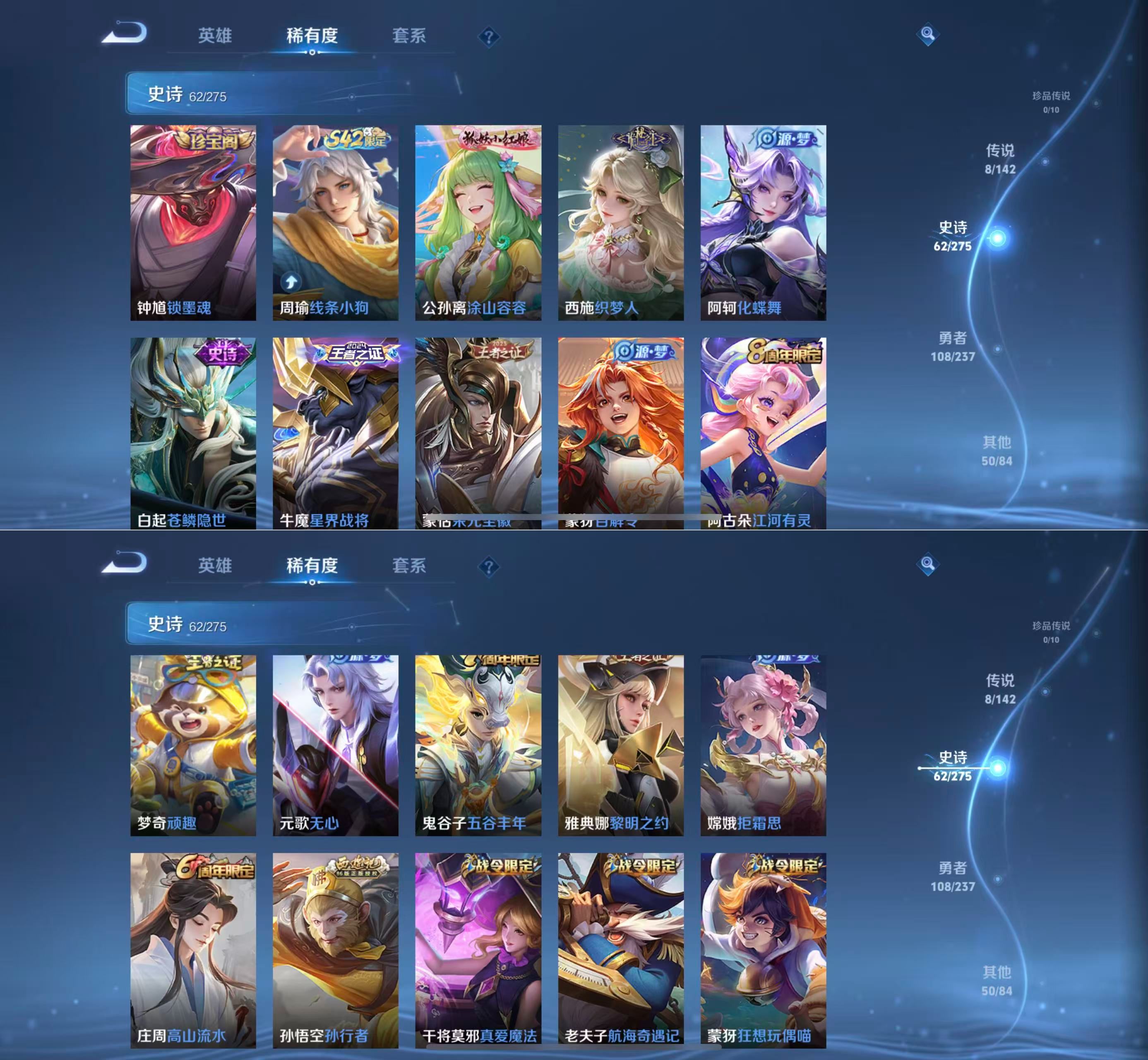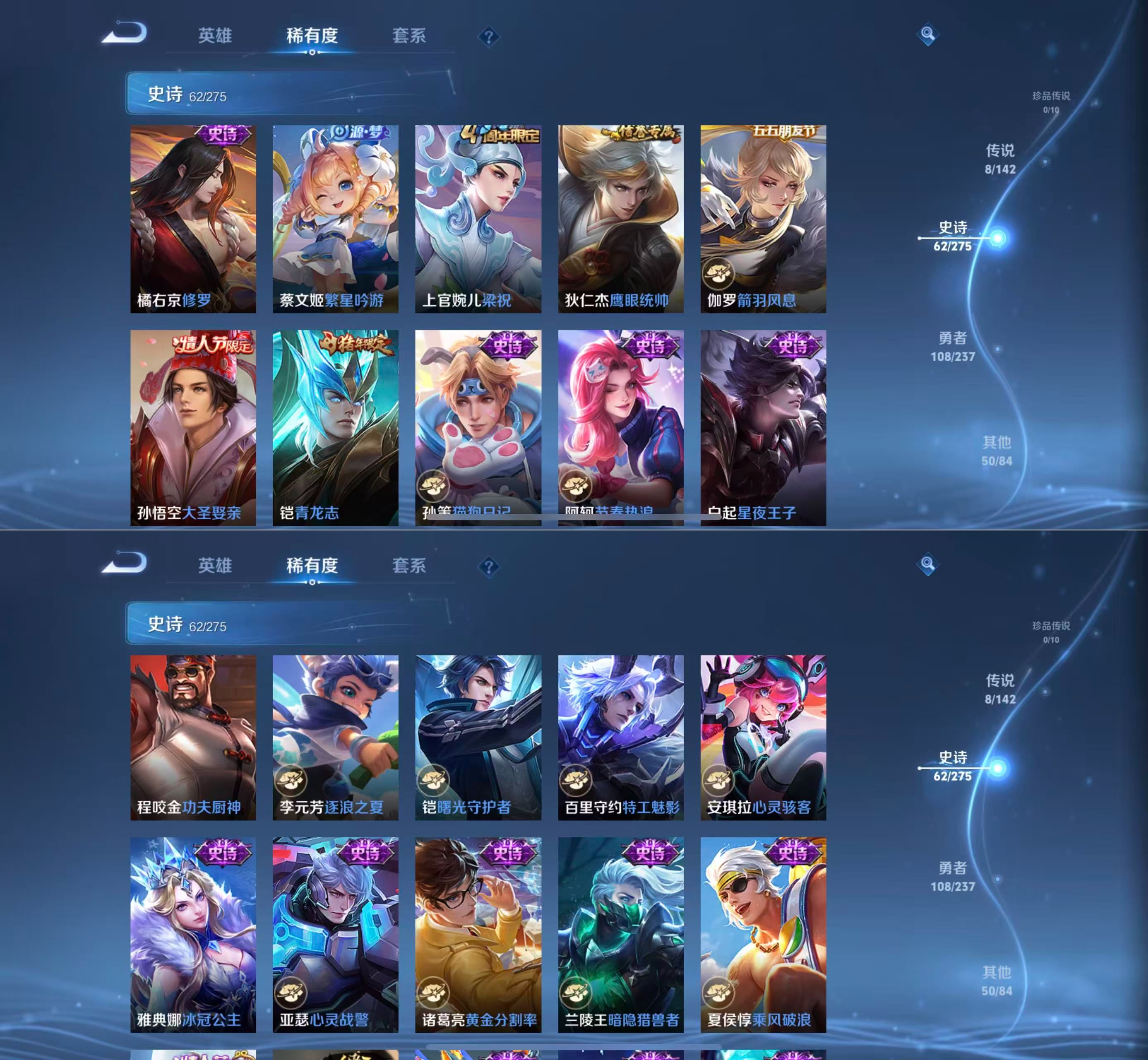贵族等级:v6皮肤数:228传说品质8 情人节限定2 生肖限定2 英雄数:126