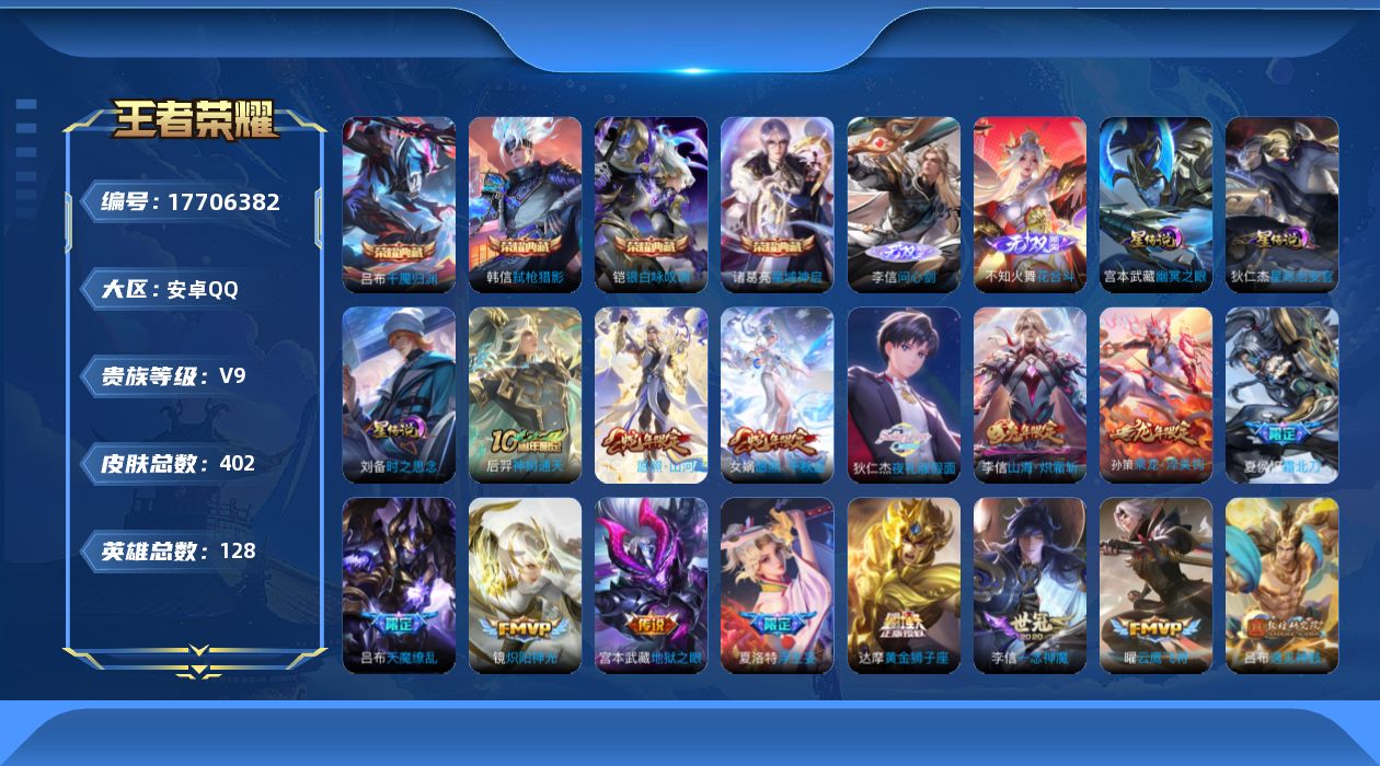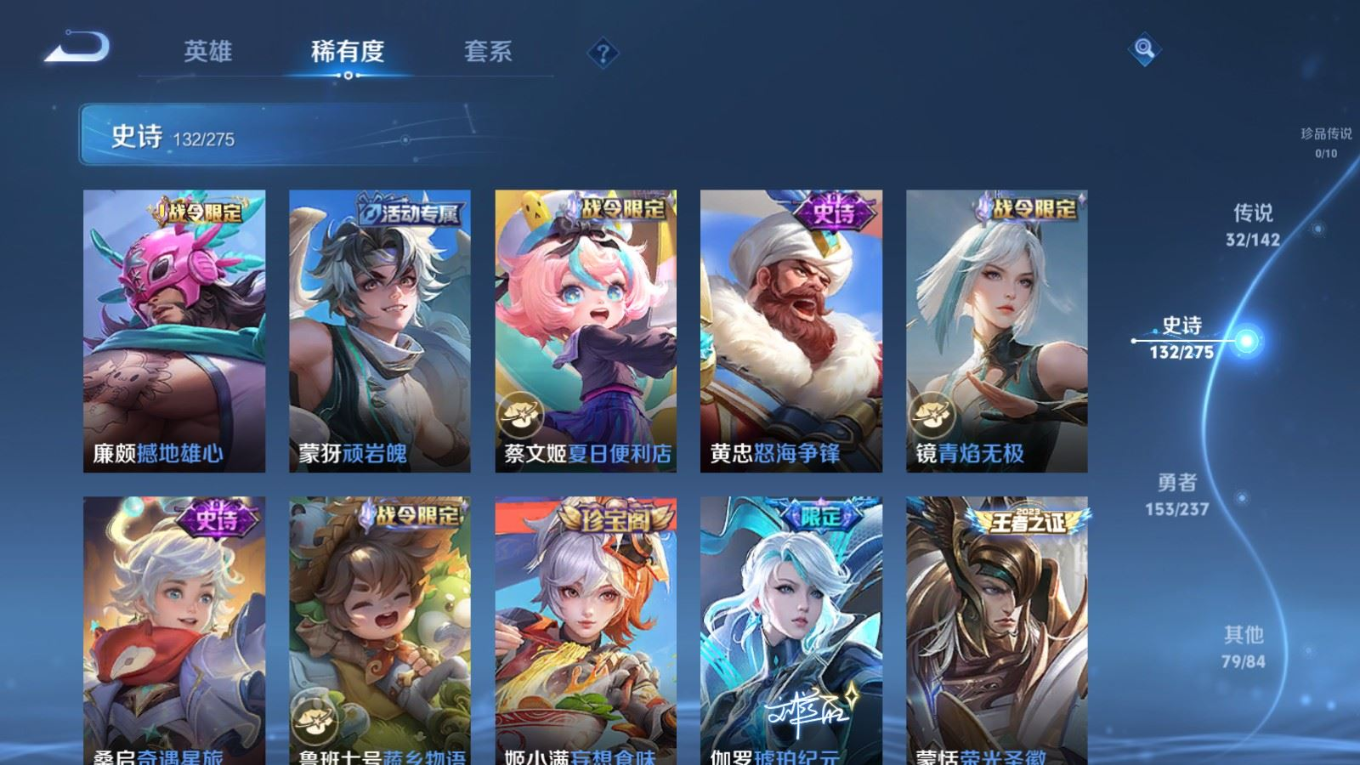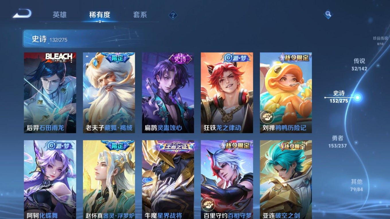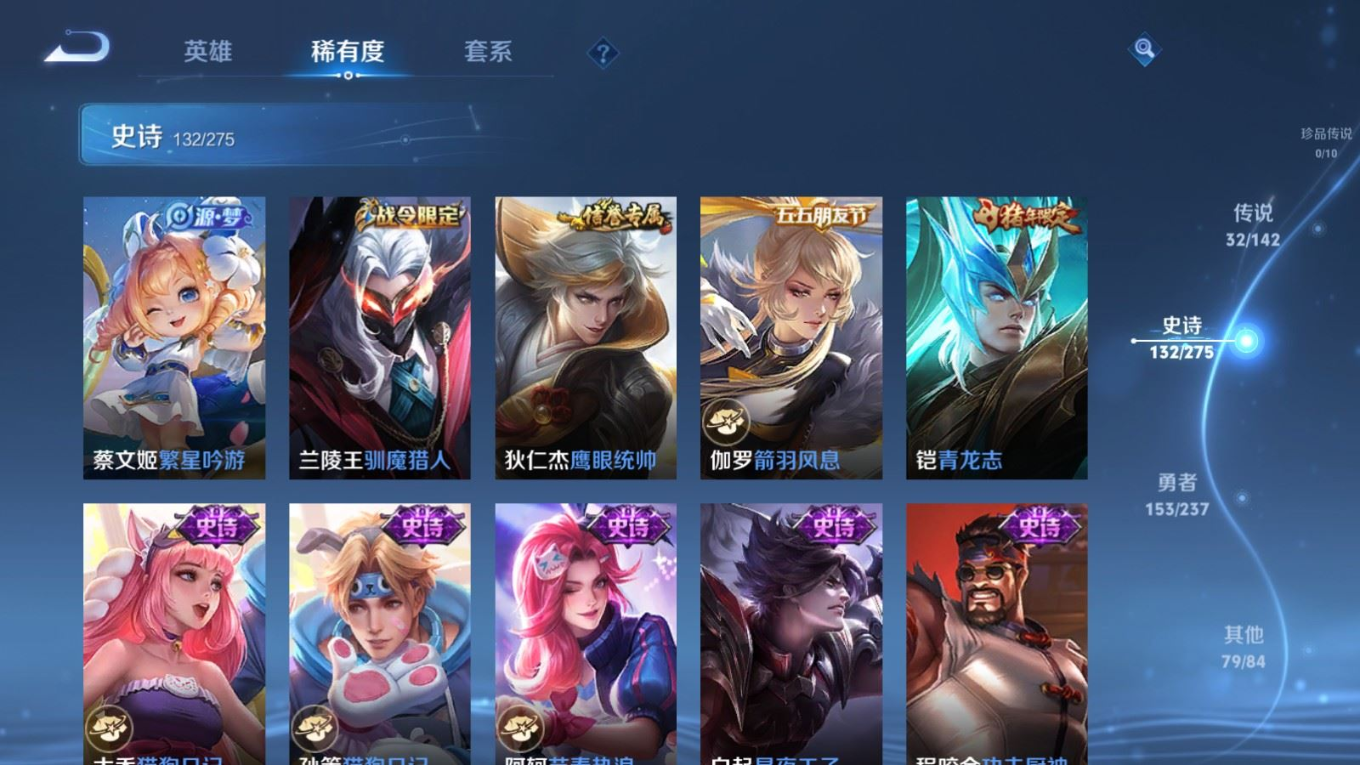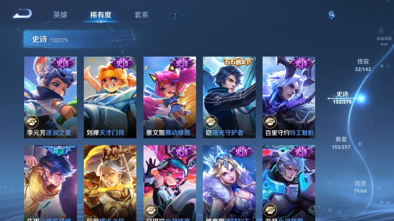 传说品质_后羿_黄金射手座传说品质_后羿_神树通天传说品质_司空震_愿照·山河定传说品质_吕布_遇见神鼓传说品质_吕布_天魔缭乱传说品质_吕布_怒海麟威传说品质_干将莫邪_久胜战神传说品质_宫本武藏_地狱之眼传说品质_周瑜_音你心动传说品质_镜_炽阳神光传说品质_貂蝉_猫影幻舞传说品质_貂蝉_仲夏夜之梦传说品质_李信_一念神魔传说品质_李信_山海·炽霜斩传说品质_夏侯惇_霜北刀传说品质_桑启_鸣野蒿传说品质_刘备_时之恋人传说品质_张良_黄金白羊座传说品质_女娲_愿照·千秋盛传说品质_张飞_百相守梦传说品质_夏洛特_浮生妄传说品质_曜_云鹰飞将传说品质_孙策_末日机甲传说品质_孙策_乘龙·淬吴钩传说品质_狄仁杰_超时空战士传说品质_狄仁杰_夜礼服假面传说品质_达摩_黄金狮子座传说品质_铠_绛天战甲传说品质_铠_琥珀纪元传说品质_铠_冥王哈迪斯传说品质_虞姬_启明星使传说品质_王昭君_乞巧织情