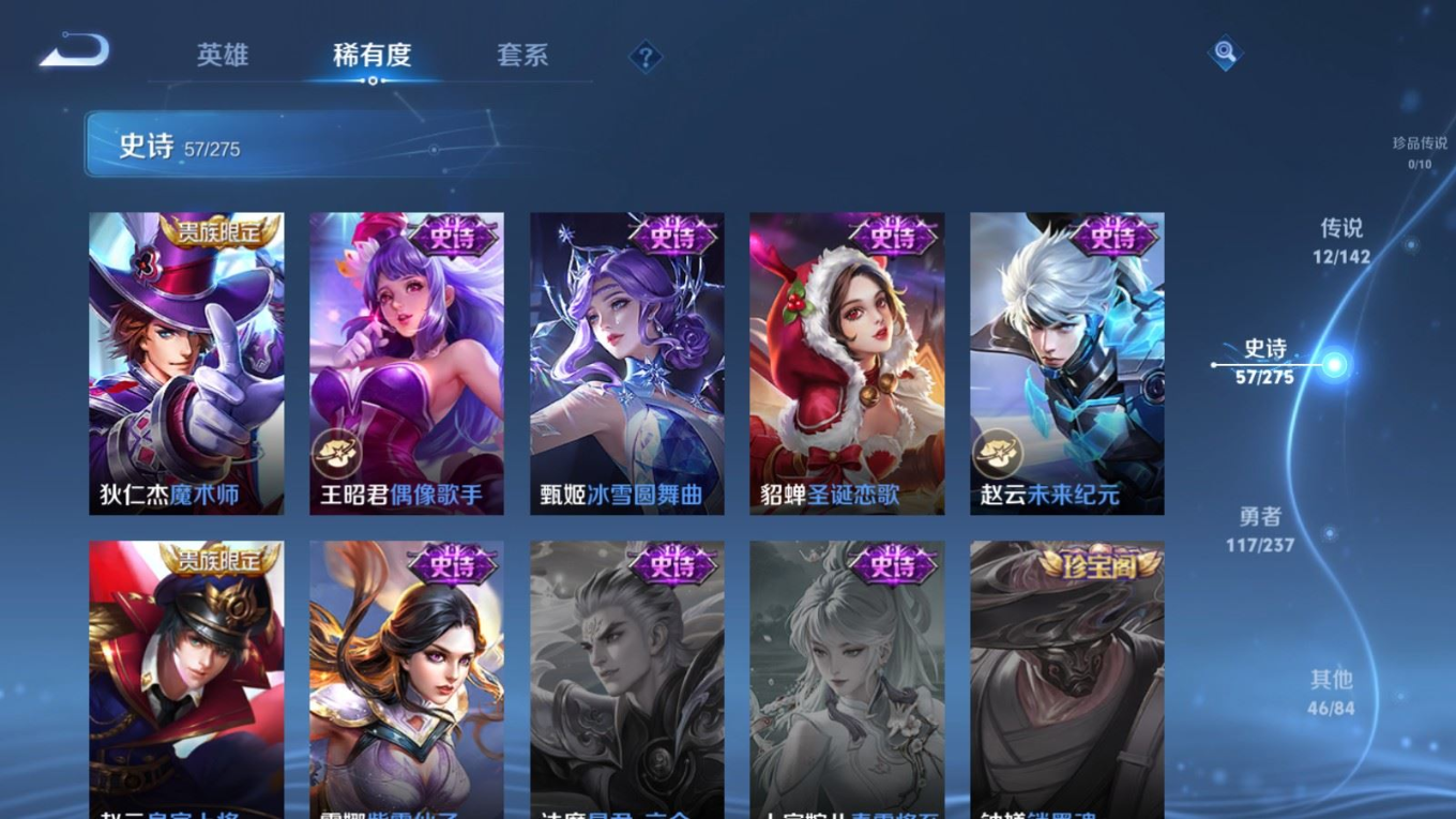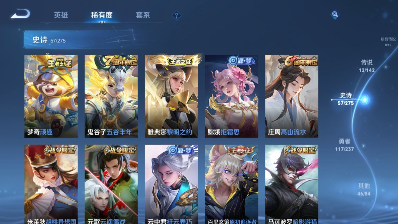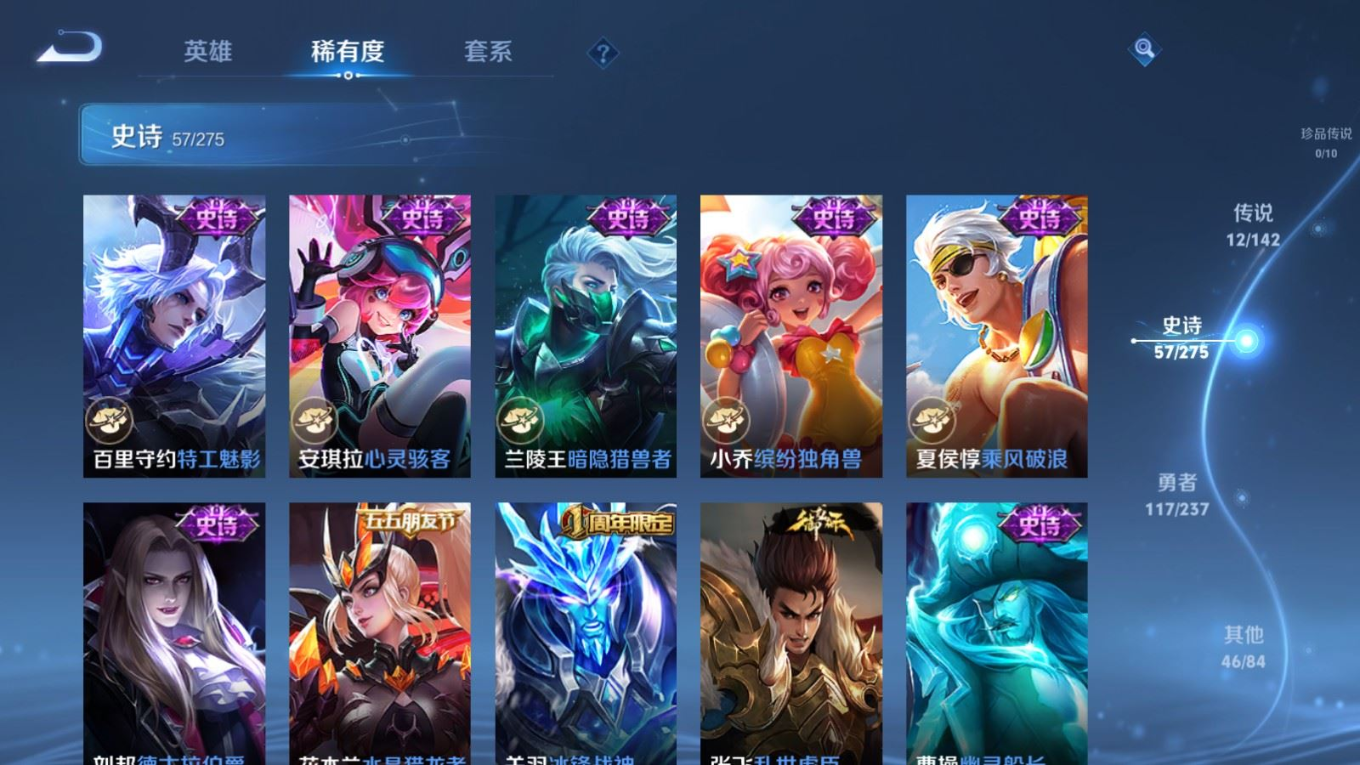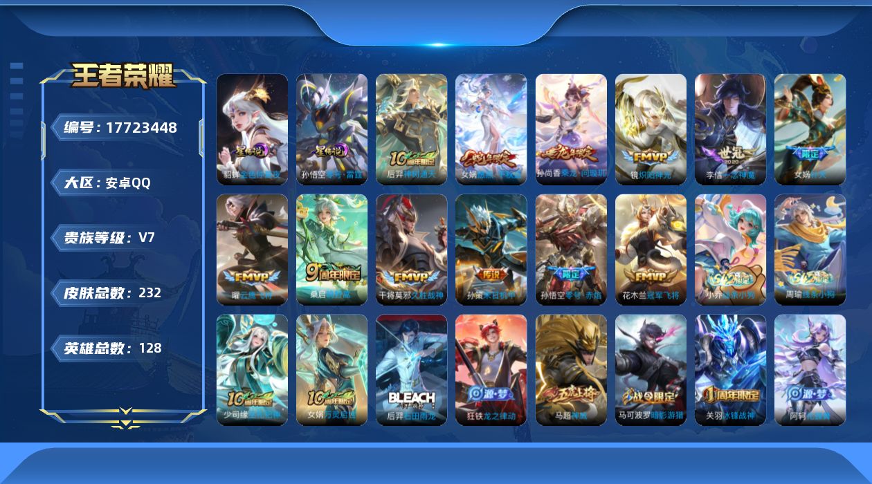 贵族等级:v7皮肤数:232传说品质12 生肖限定2 英雄数:128