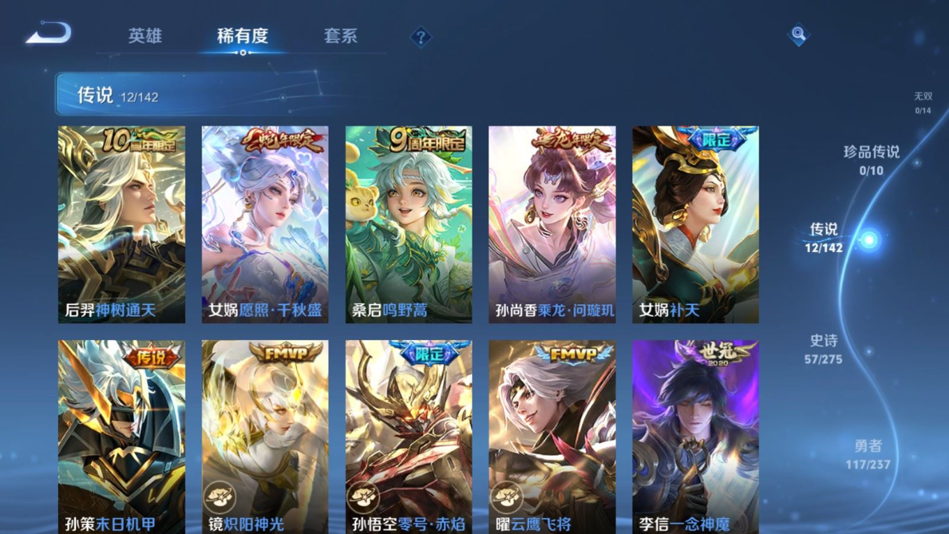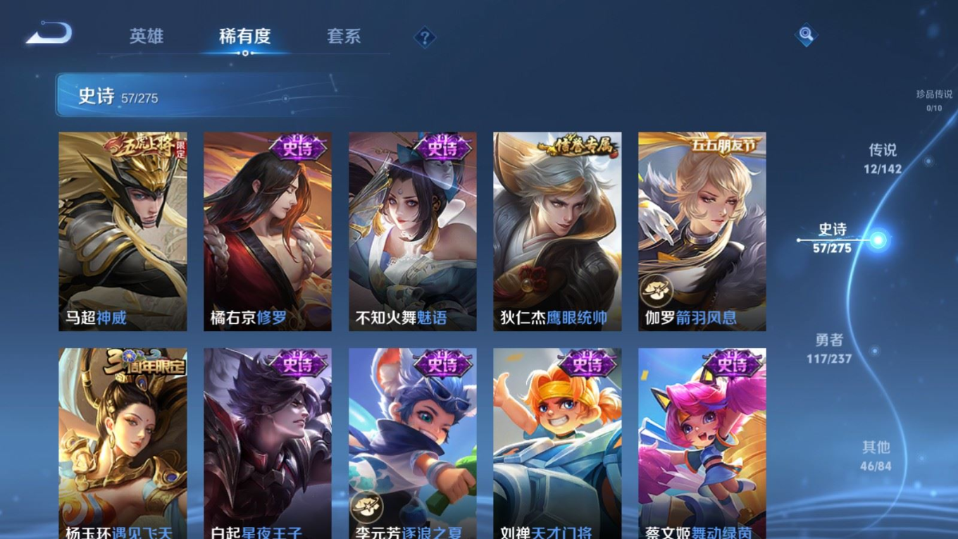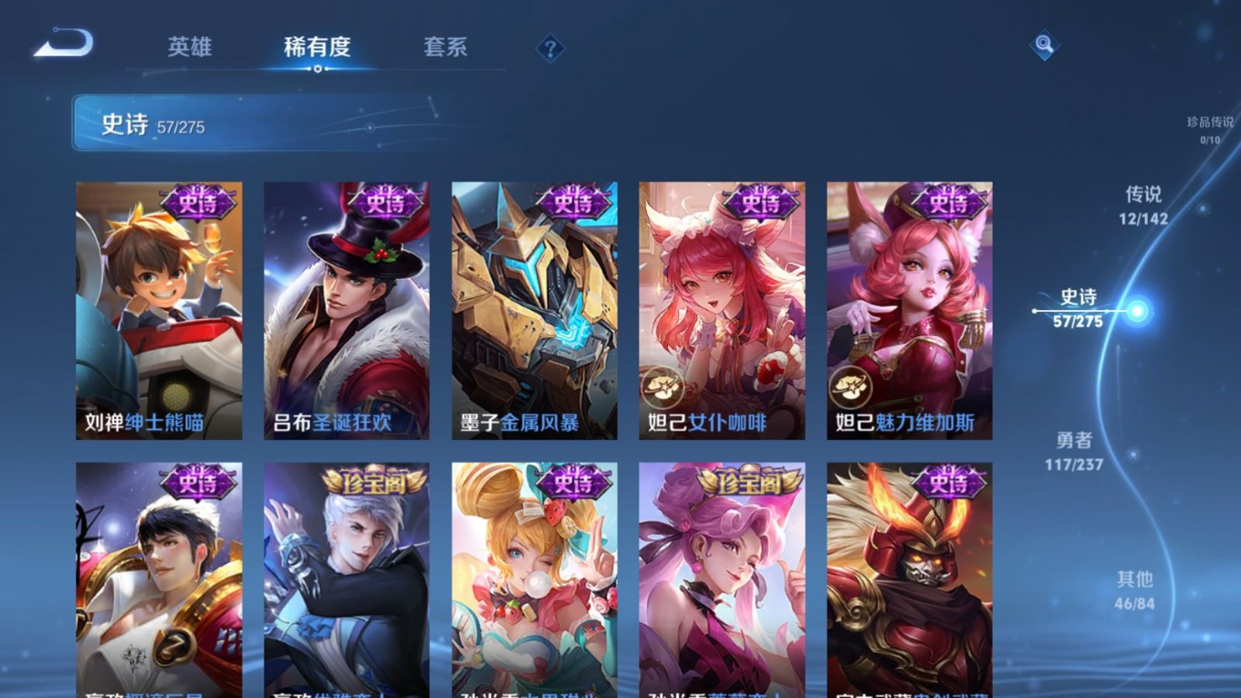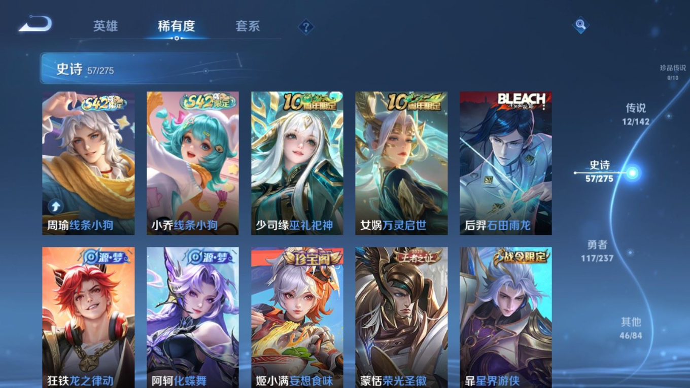贵族等级:v7皮肤数:232传说品质12 生肖限定2 英雄数:128