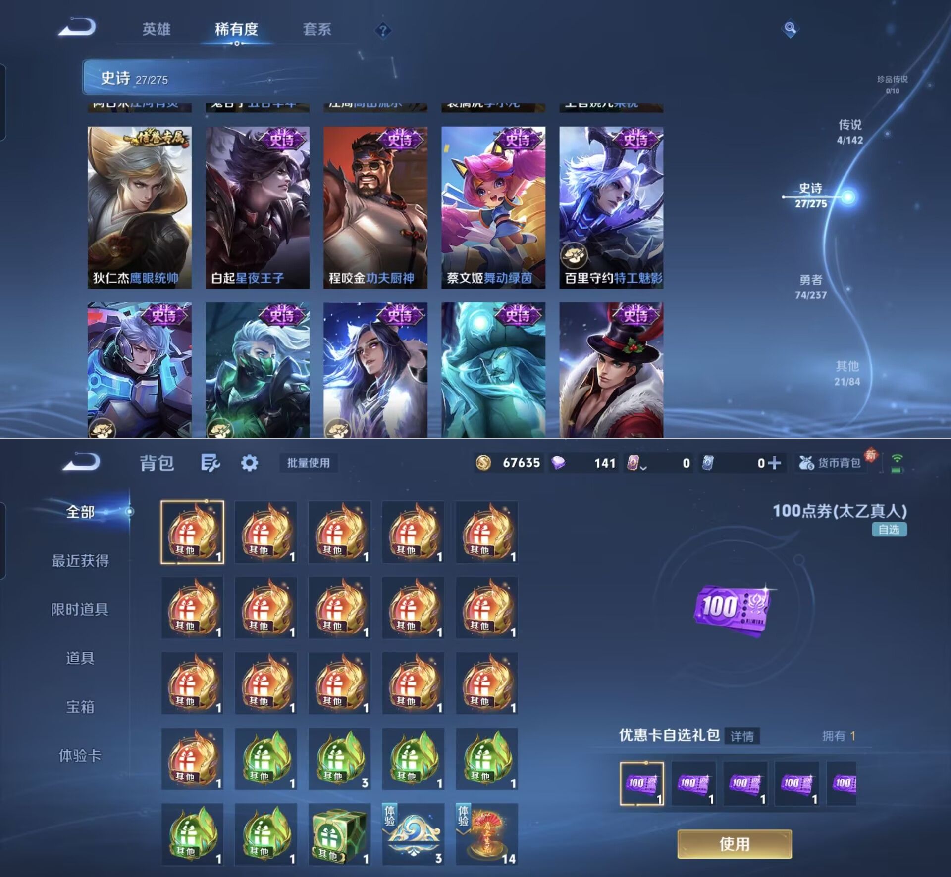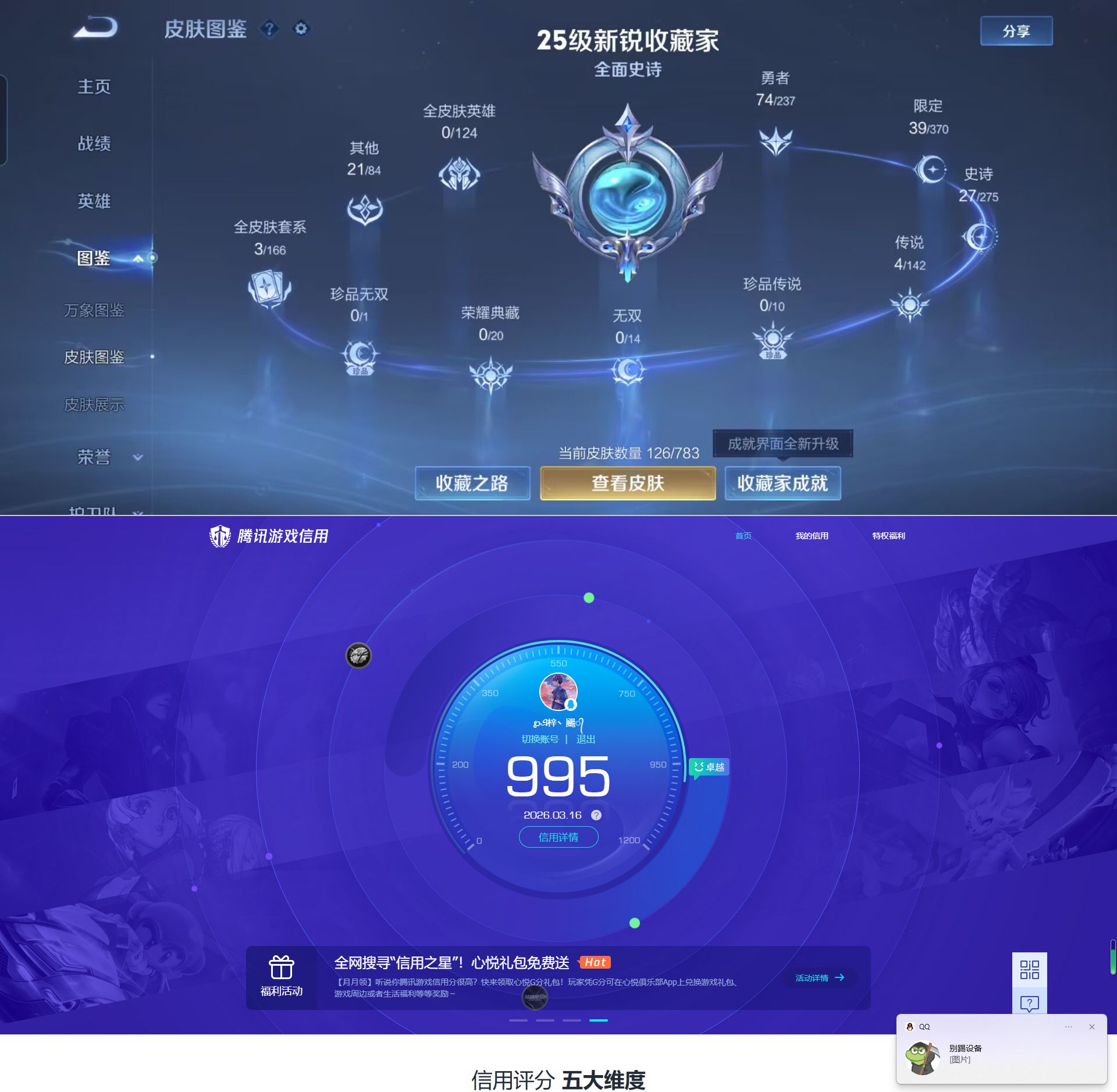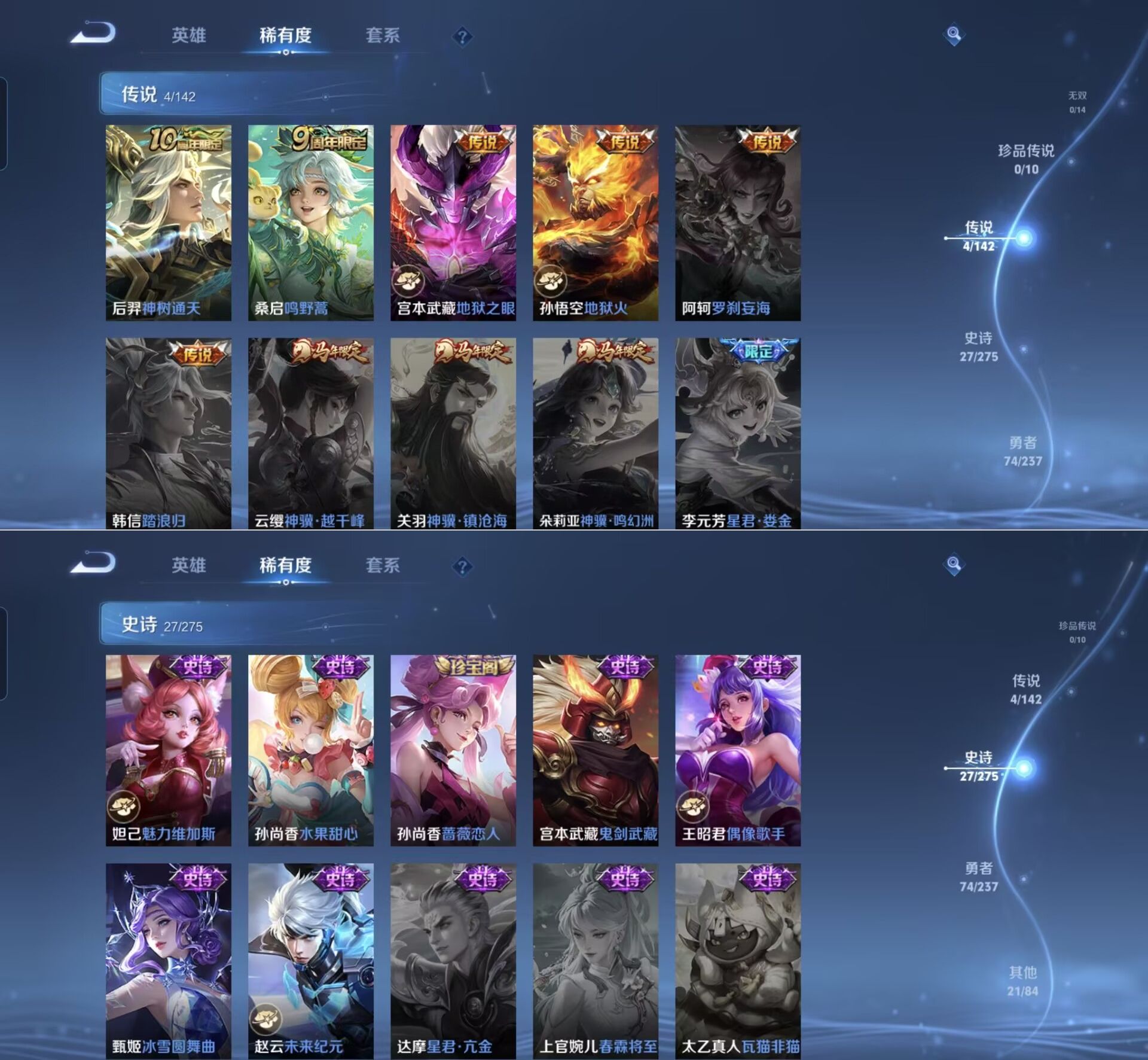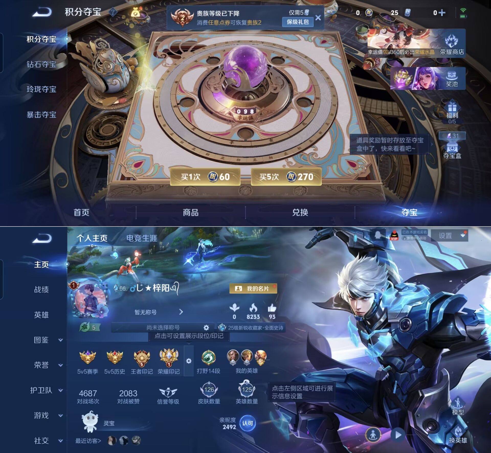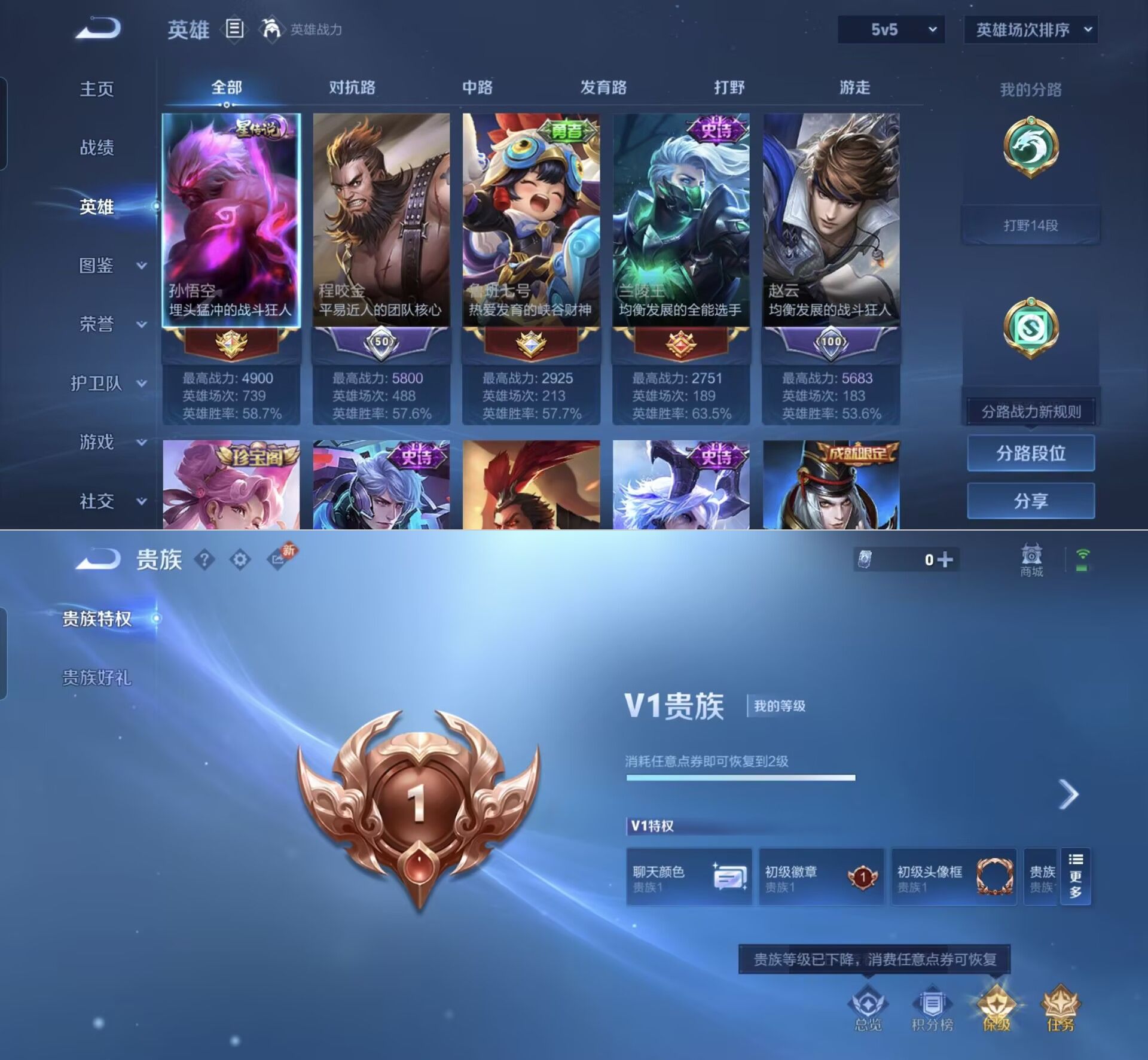 贵族等级:v2皮肤数:126传说品质4 英雄数:125
