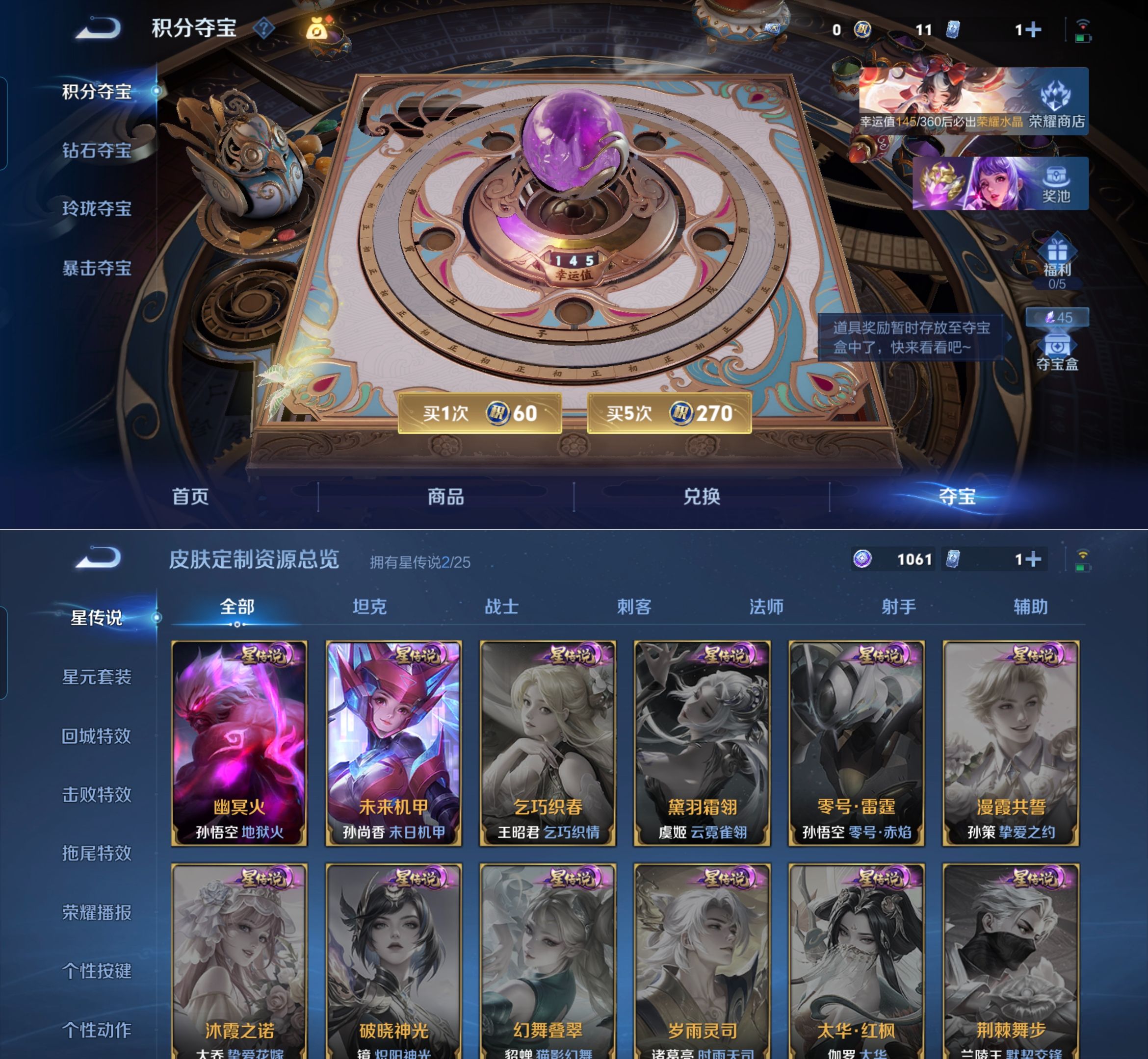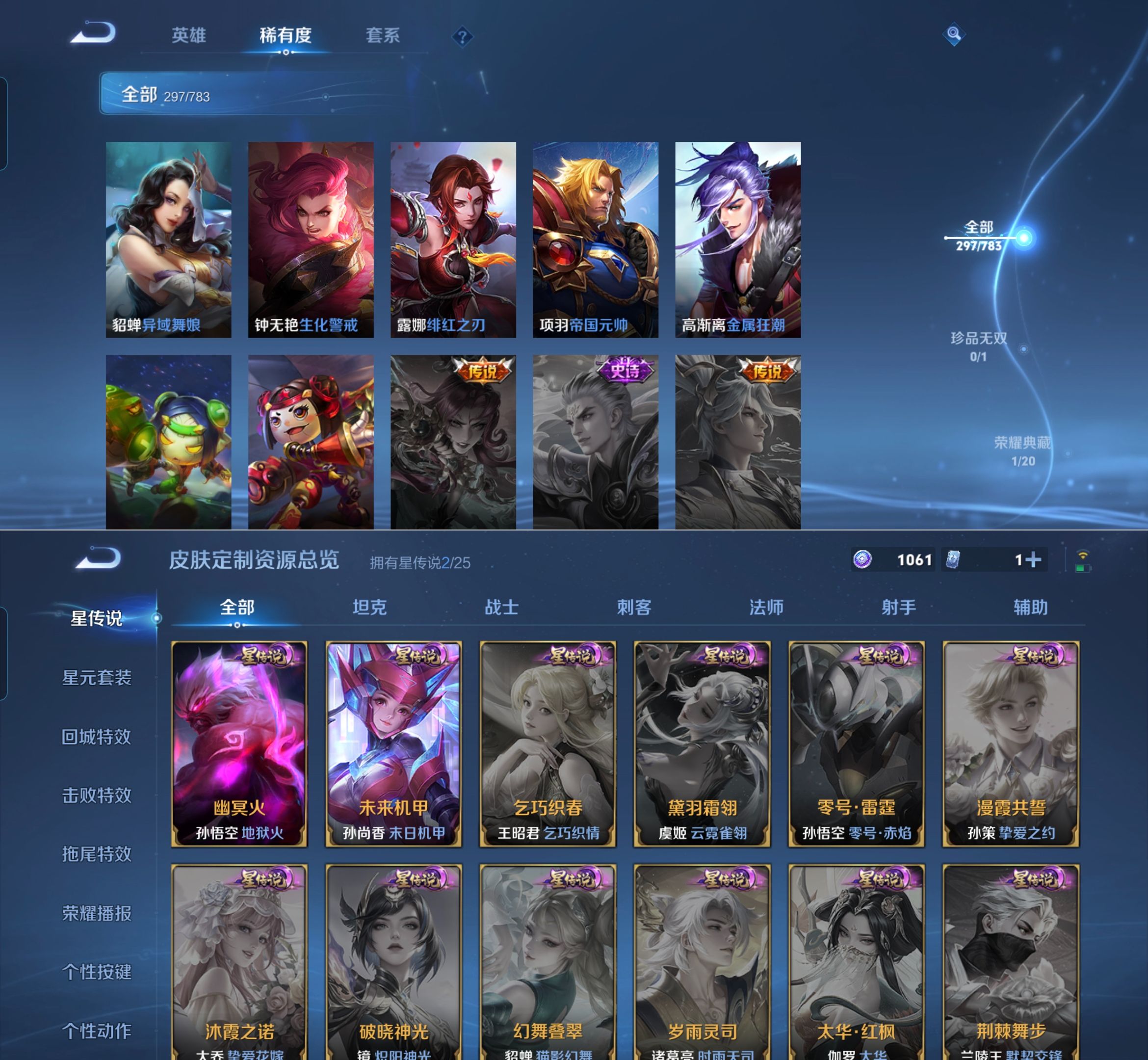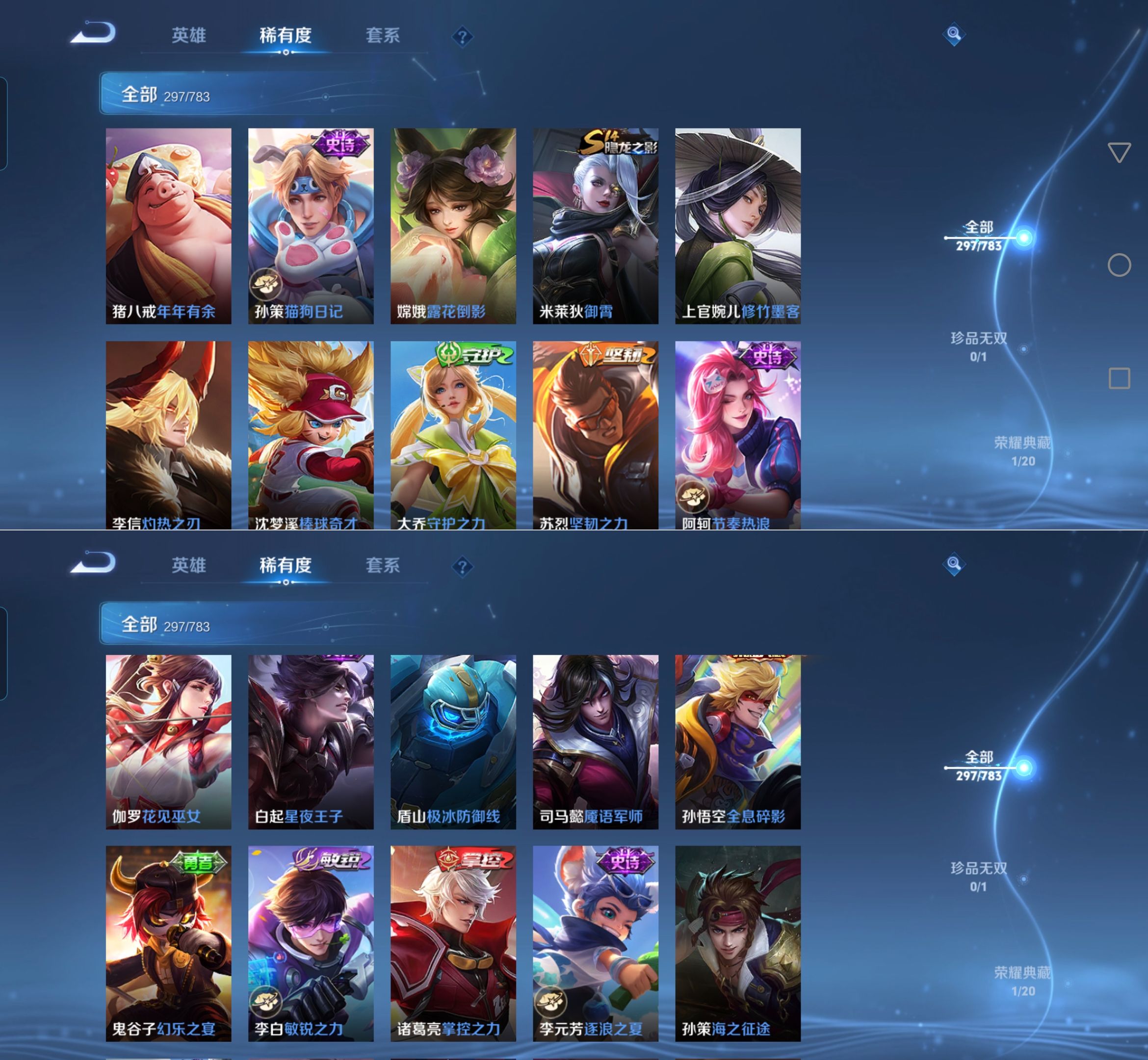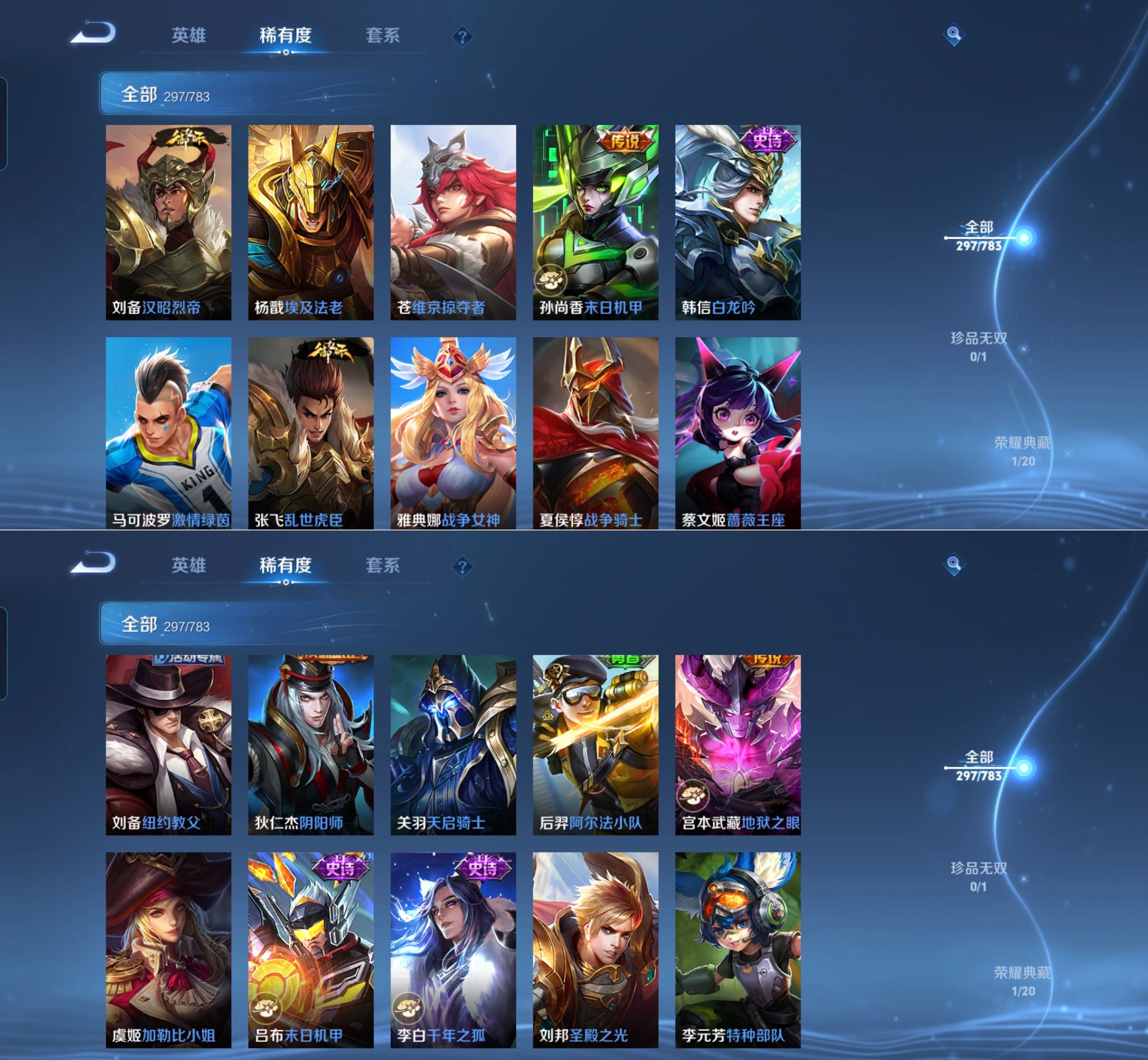 贵族等级:v8皮肤数:297情人节限定2 传说品质7 荣耀典藏1 生肖限定1 英雄数:127