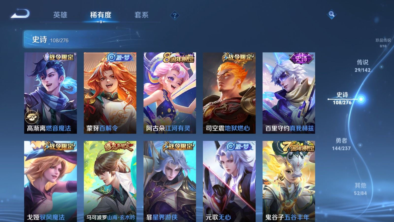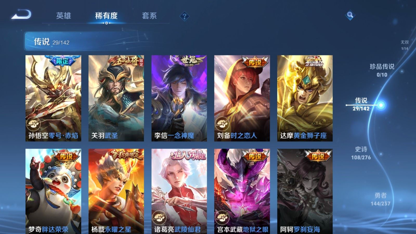 传说品质_后羿_无尽星芒传说品质_后羿_神树通天传说品质_关羽_武圣传说品质_诸葛亮_武陵仙君传说品质_孙悟空_零号·赤焰传说品质_孙悟空_齐天大圣传说品质_马超_琥珀纪元传说品质_马超_无双飞将传说品质_杨戬_永曜之星传说品质_干将莫邪_千山共赴传说品质_宫本武藏_地狱之眼传说品质_镜_炽阳神光传说品质_貂蝉_曦玄引传说品质_李信_一念神魔传说品质_李信_山海·炽霜斩传说品质_夏侯惇_霜北刀传说品质_梦奇_胖达荣荣传说品质_桑启_鸣野蒿传说品质_刘备_时之恋人传说品质_女娲_愿照·千秋盛传说品质_云缨_幻光神枪传说品质_大司命_死亡执政官传说品质_亚连_落雪白狼传说品质_夏洛特_浮生妄传说品质_孙策_挚爱之约传说品质_孙策_乘龙·淬吴钩传说品质_达摩_黄金狮子座传说品质_虞姬_启明星使传说品质_裴擒虎_寅虎·赤拳