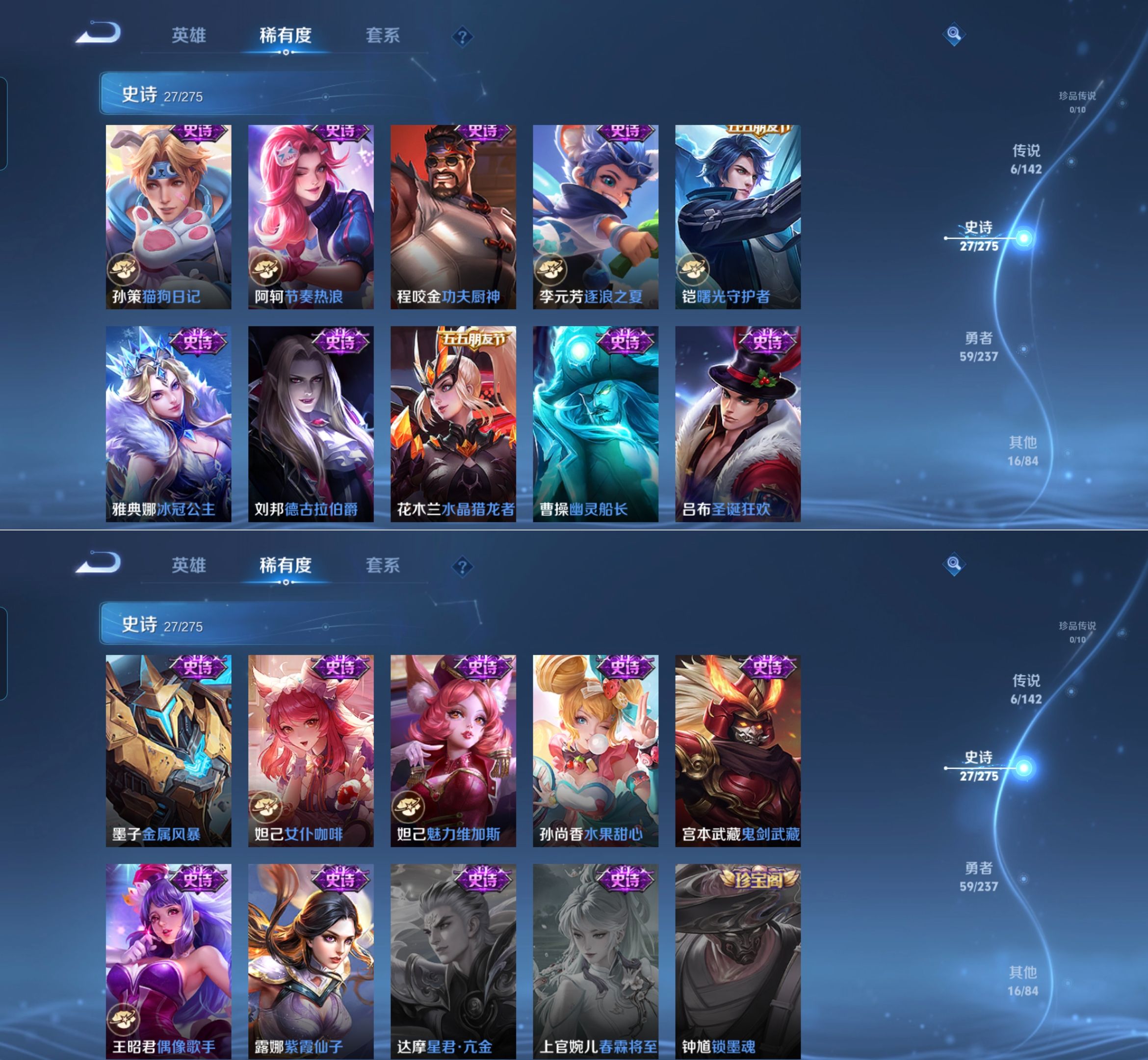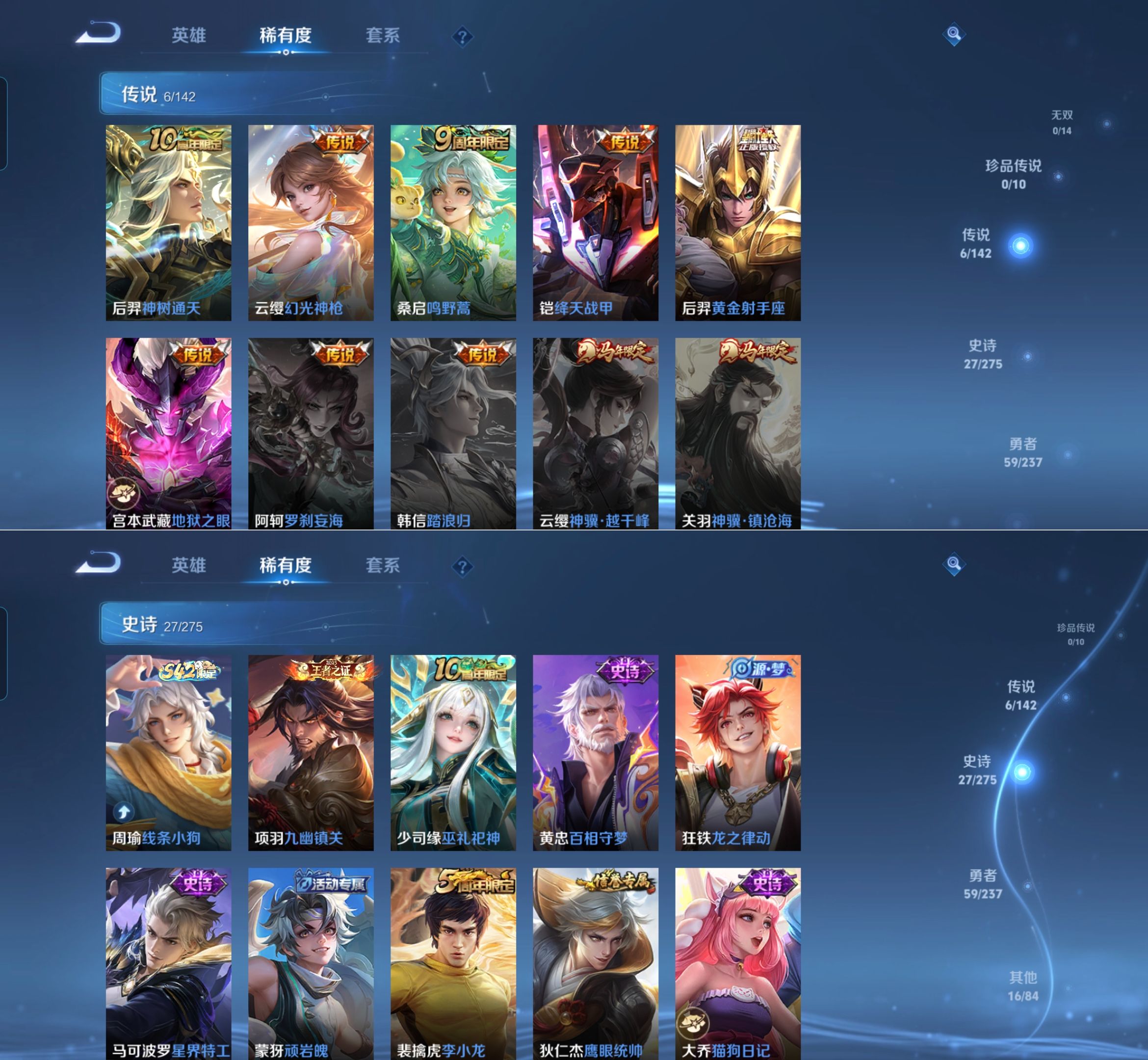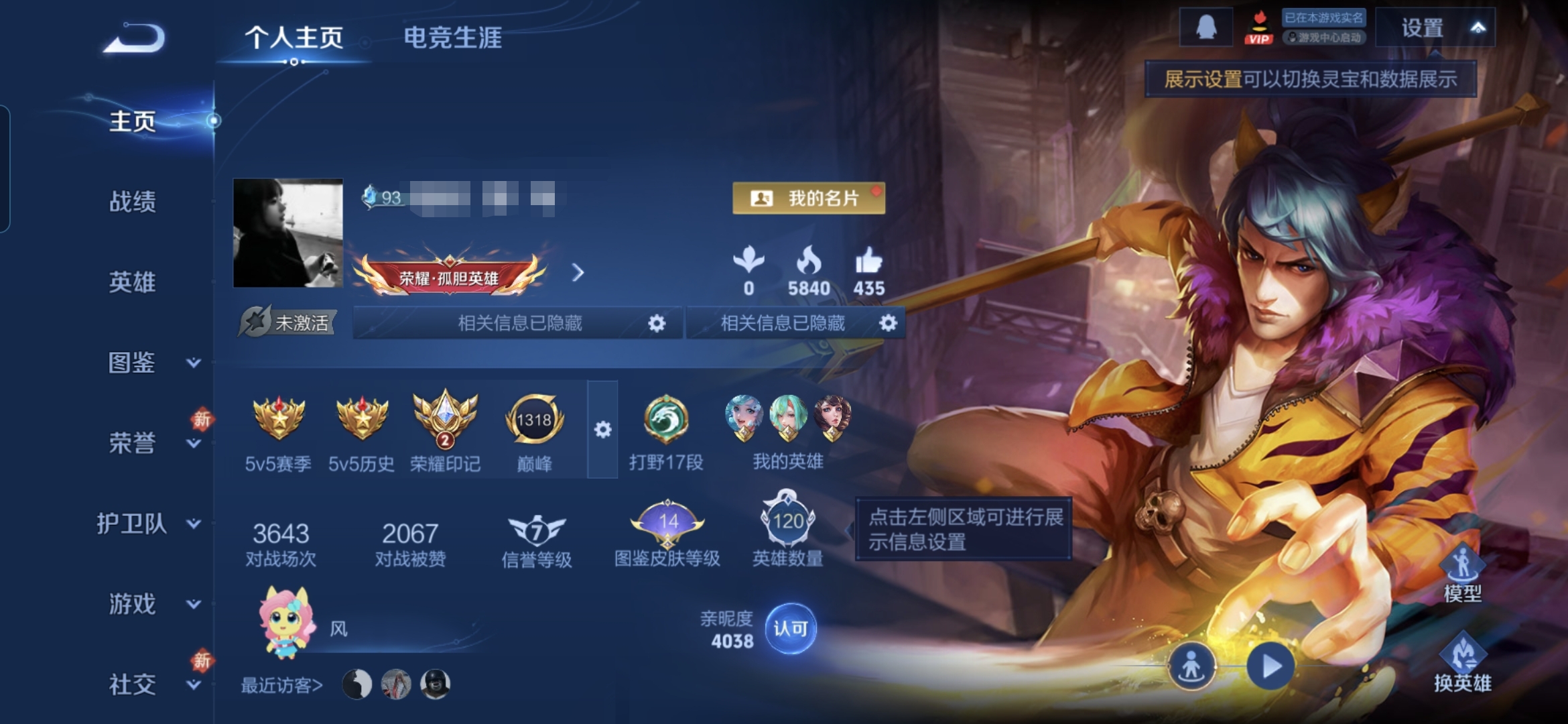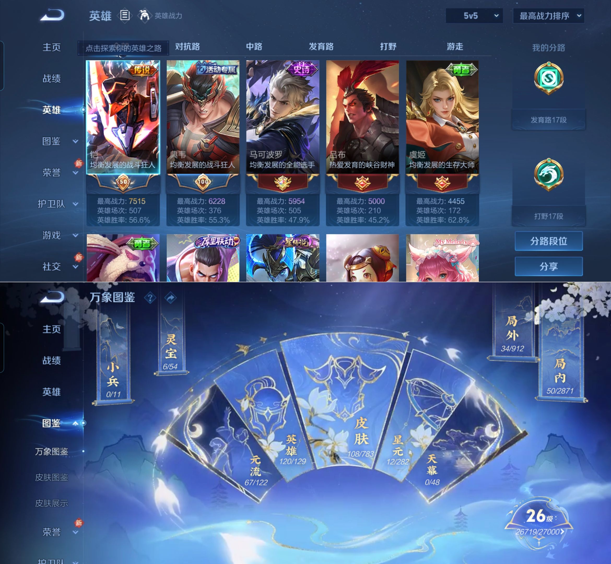 贵族等级:v3皮肤数:108传说品质6 英雄数:120