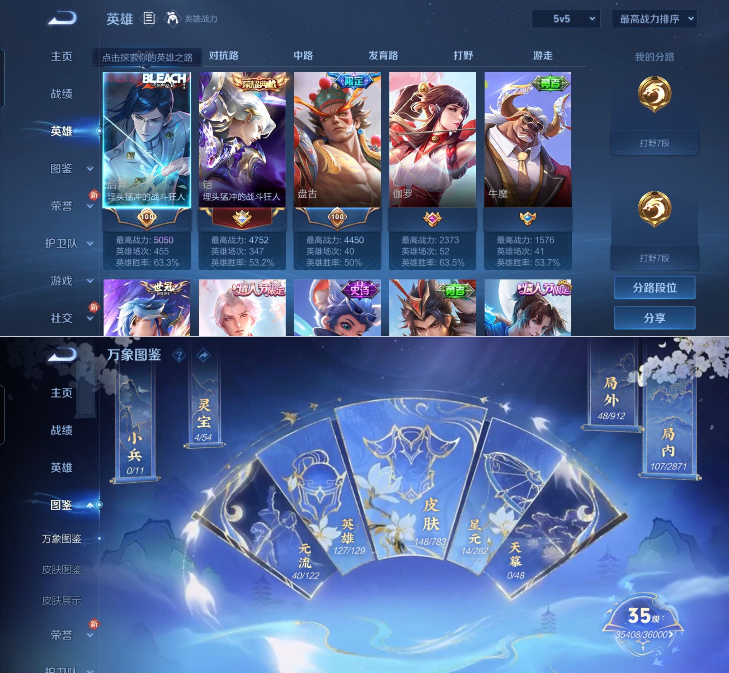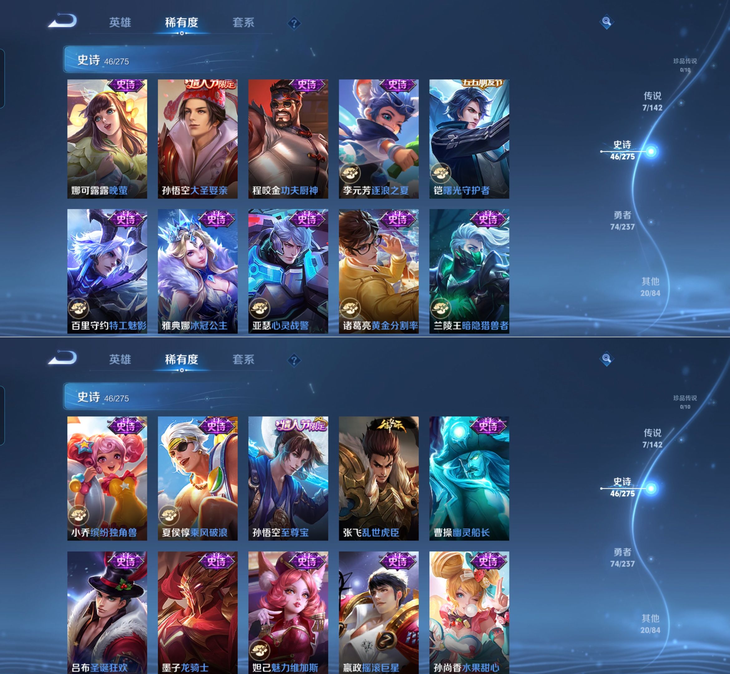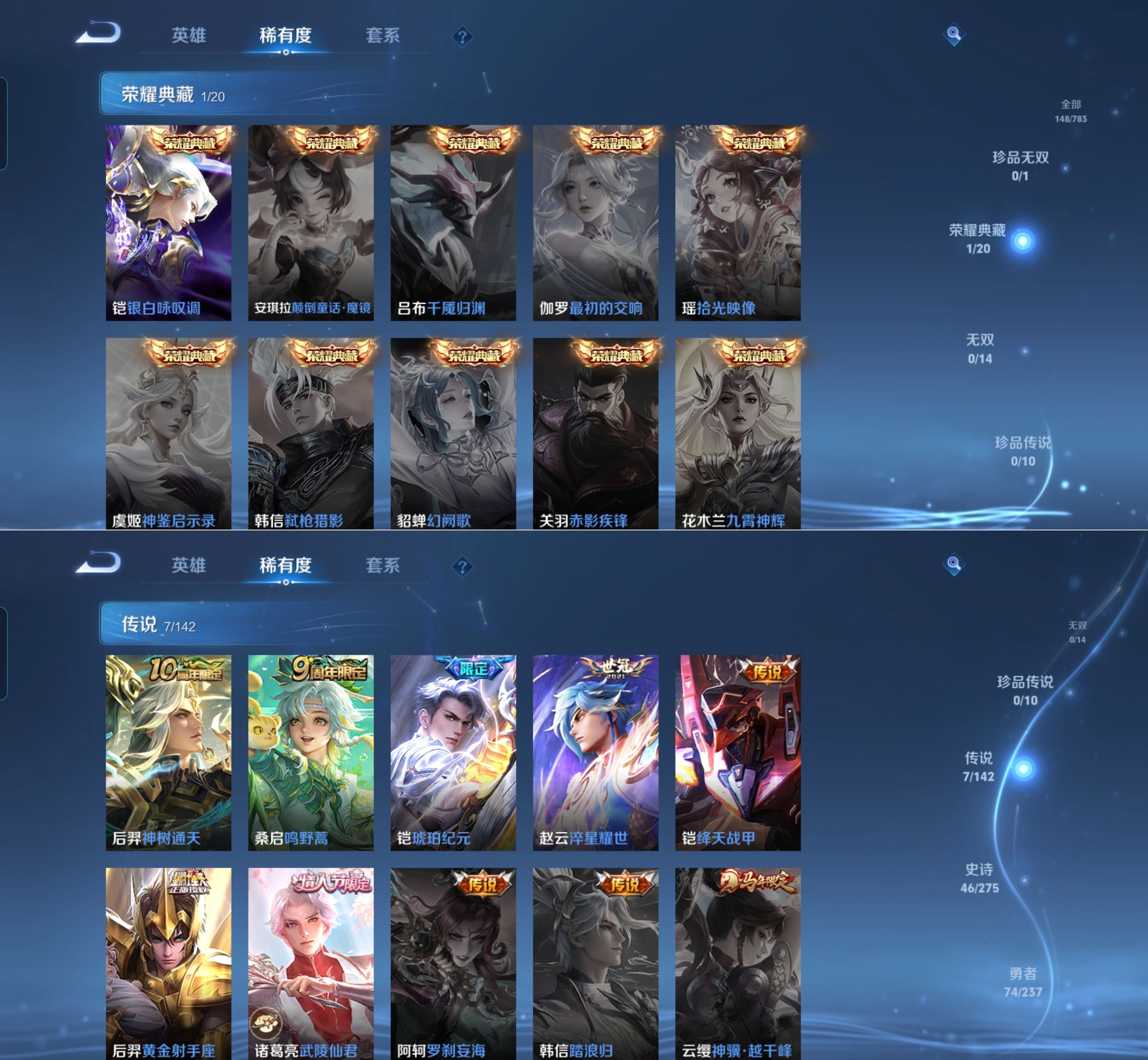 贵族等级:v7皮肤数:150传说品质7 情人节限定3 荣耀典藏1 英雄数:127