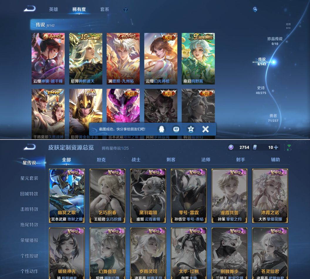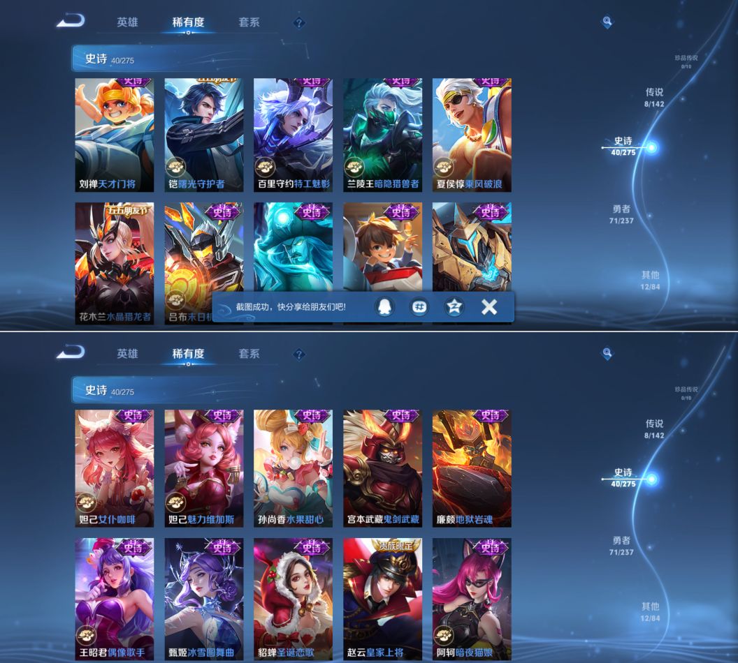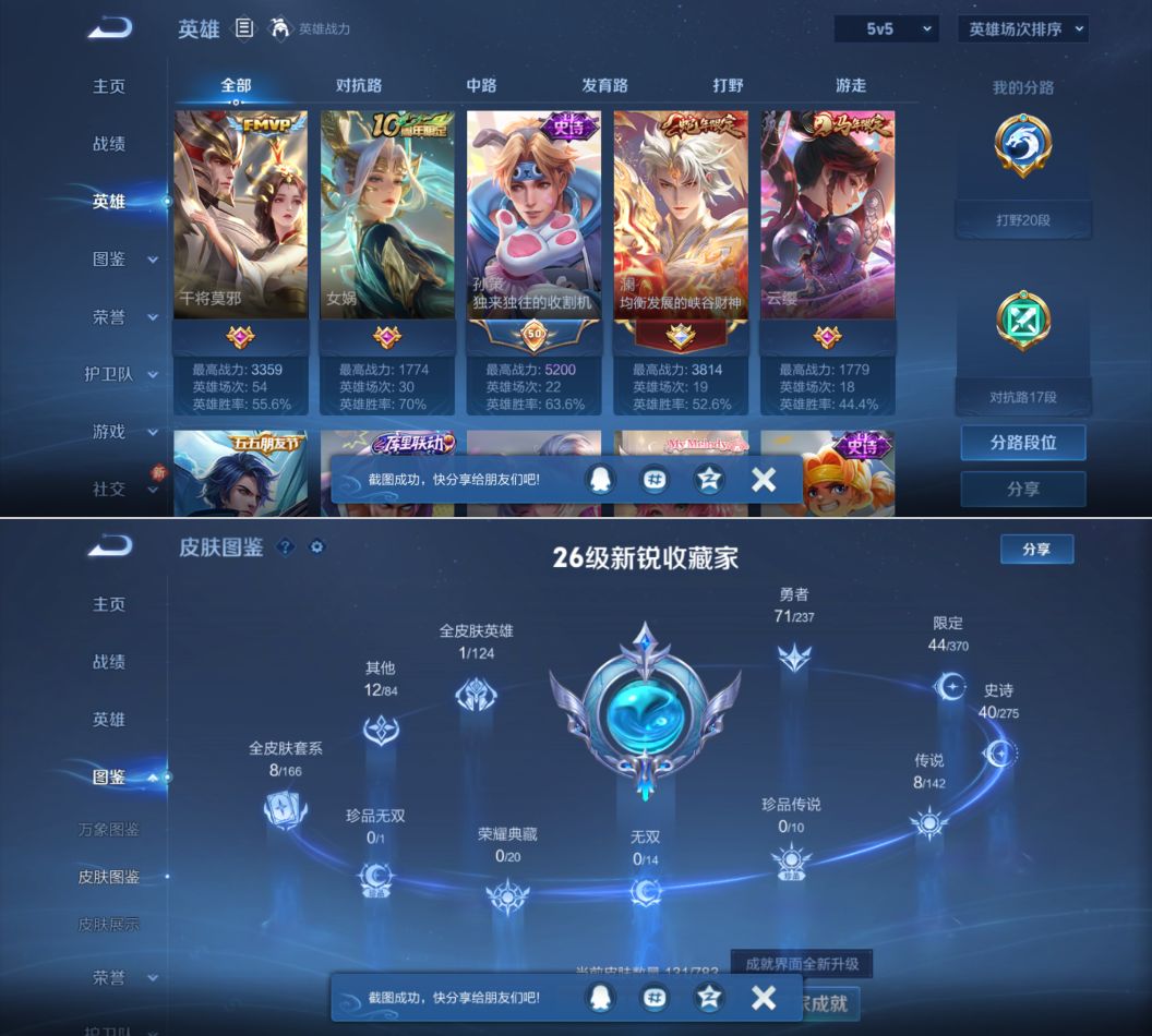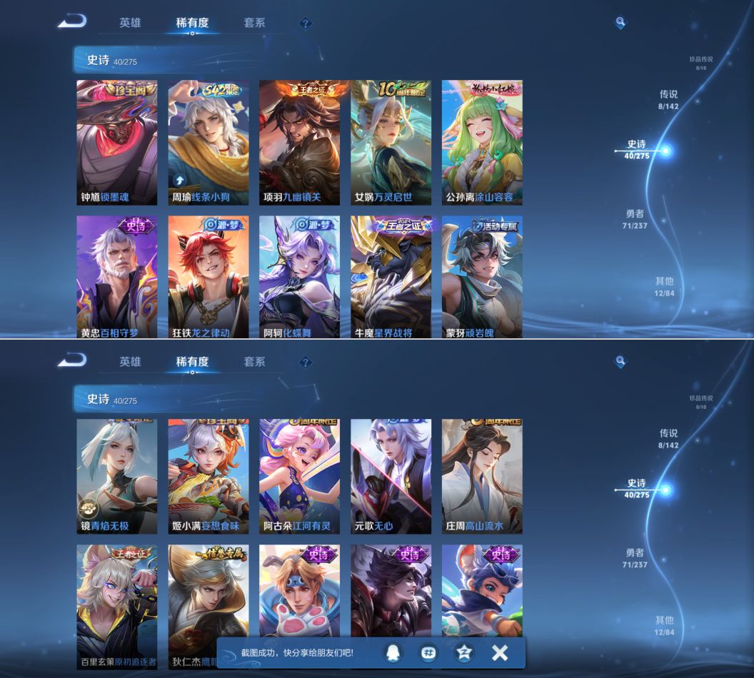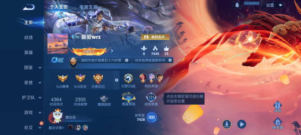 贵族等级:v5皮肤数:131传说品质8 生肖限定2 英雄数:125
