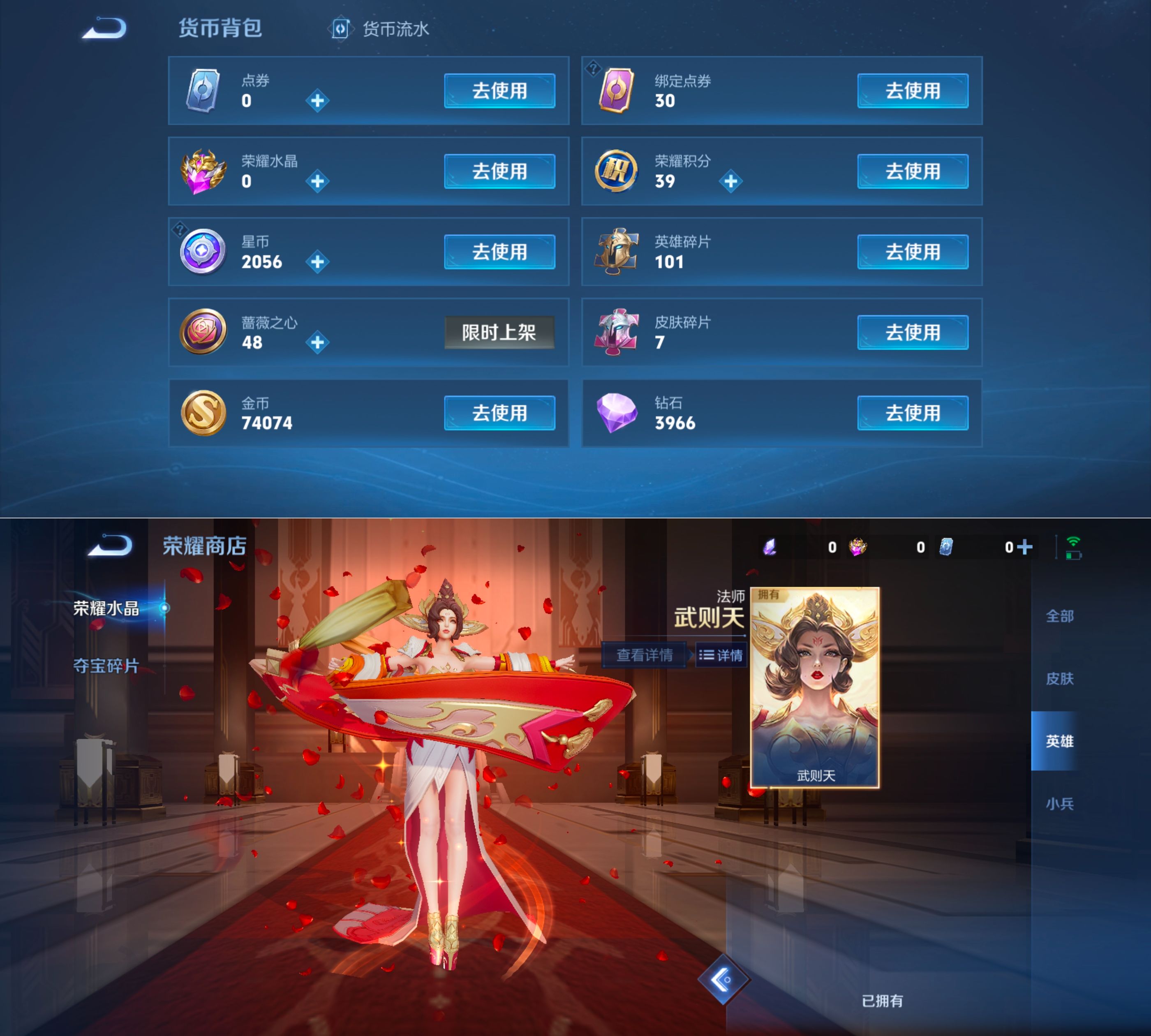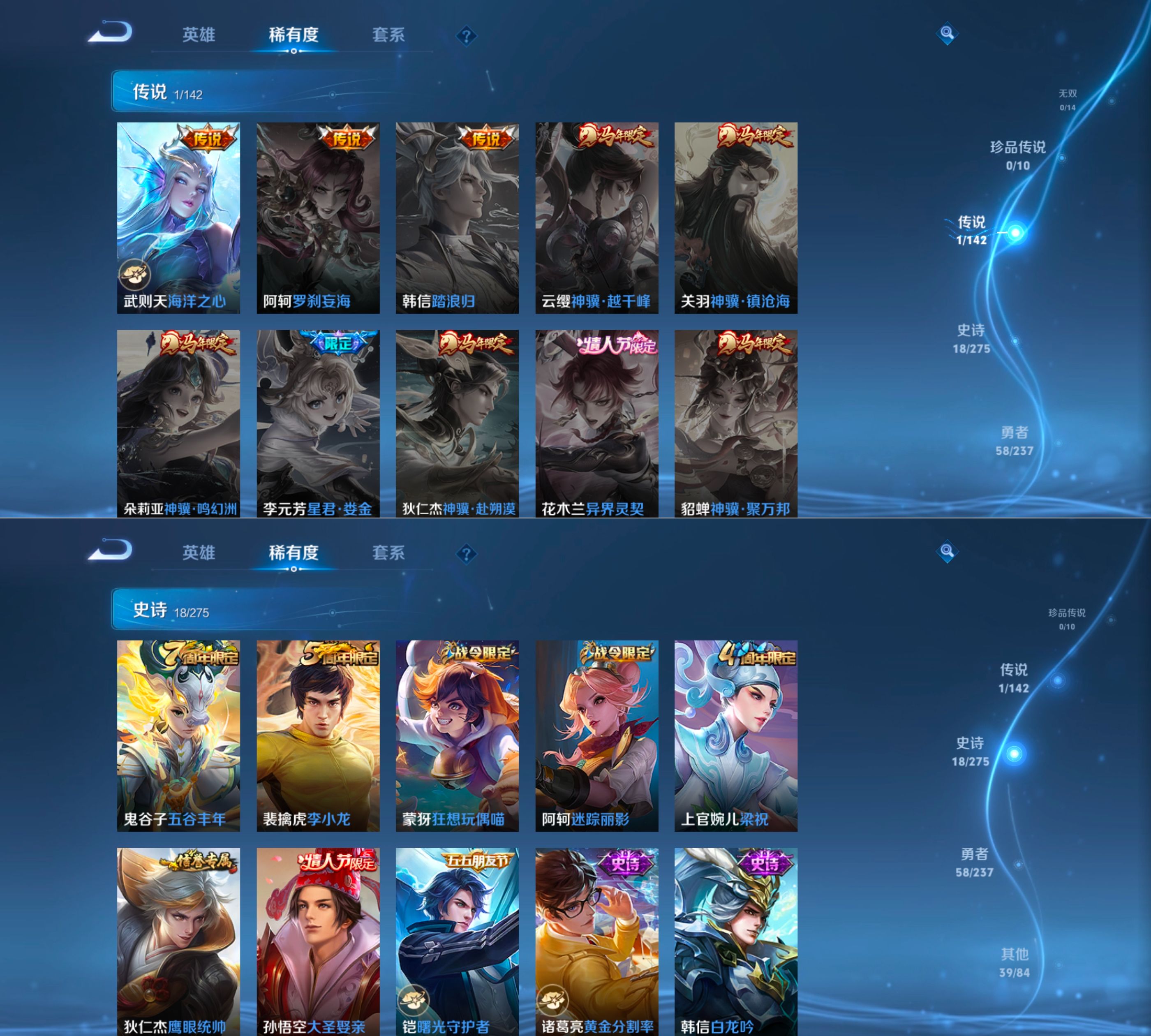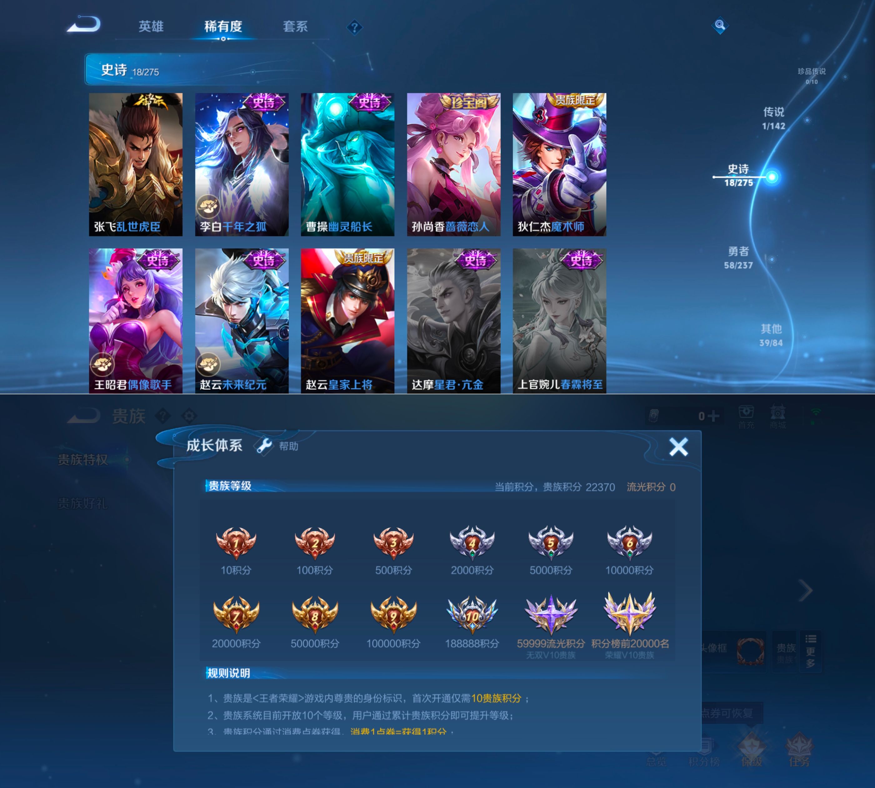 贵族等级:v7皮肤数:116情人节限定1 传说品质1 英雄数:119