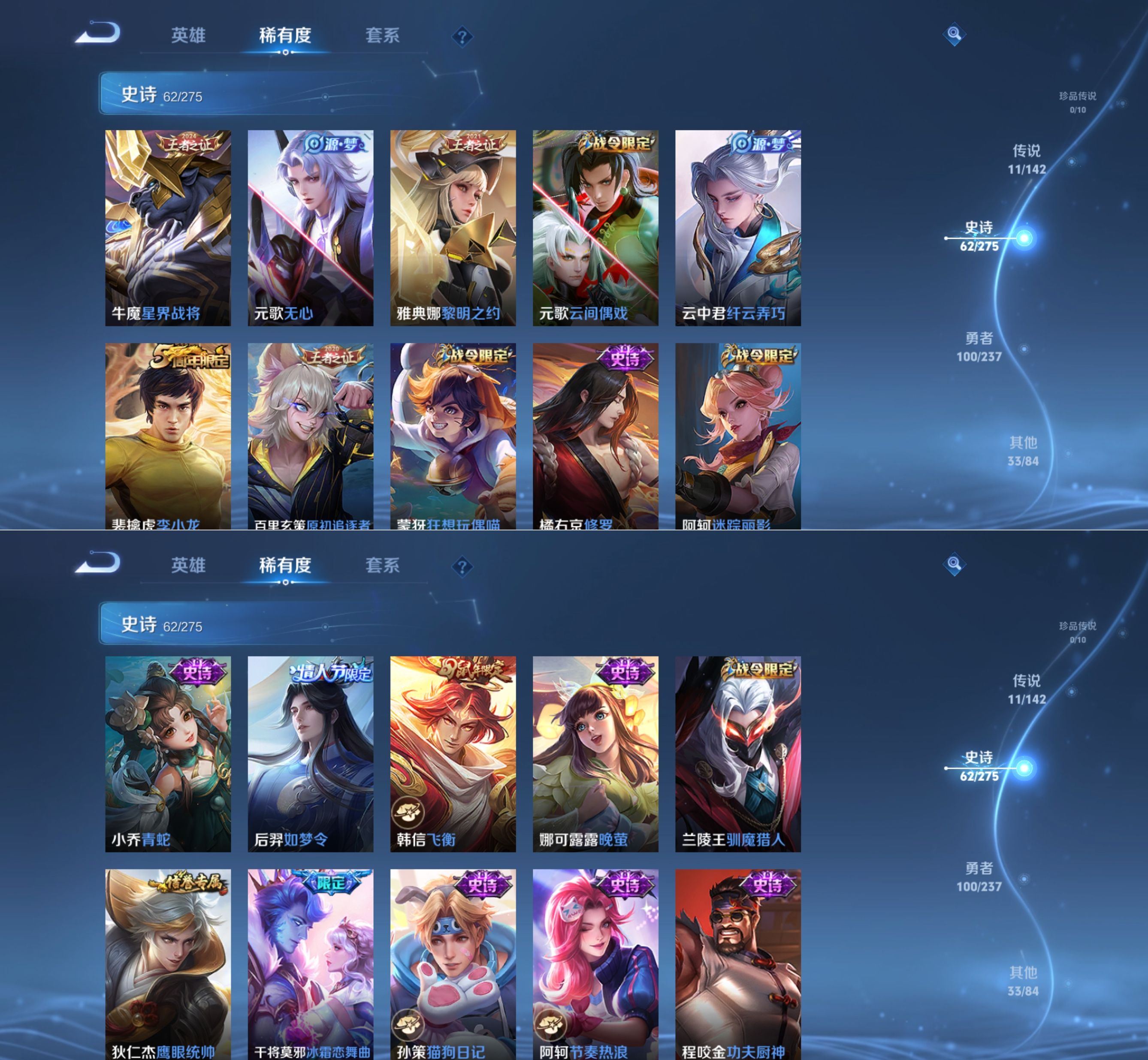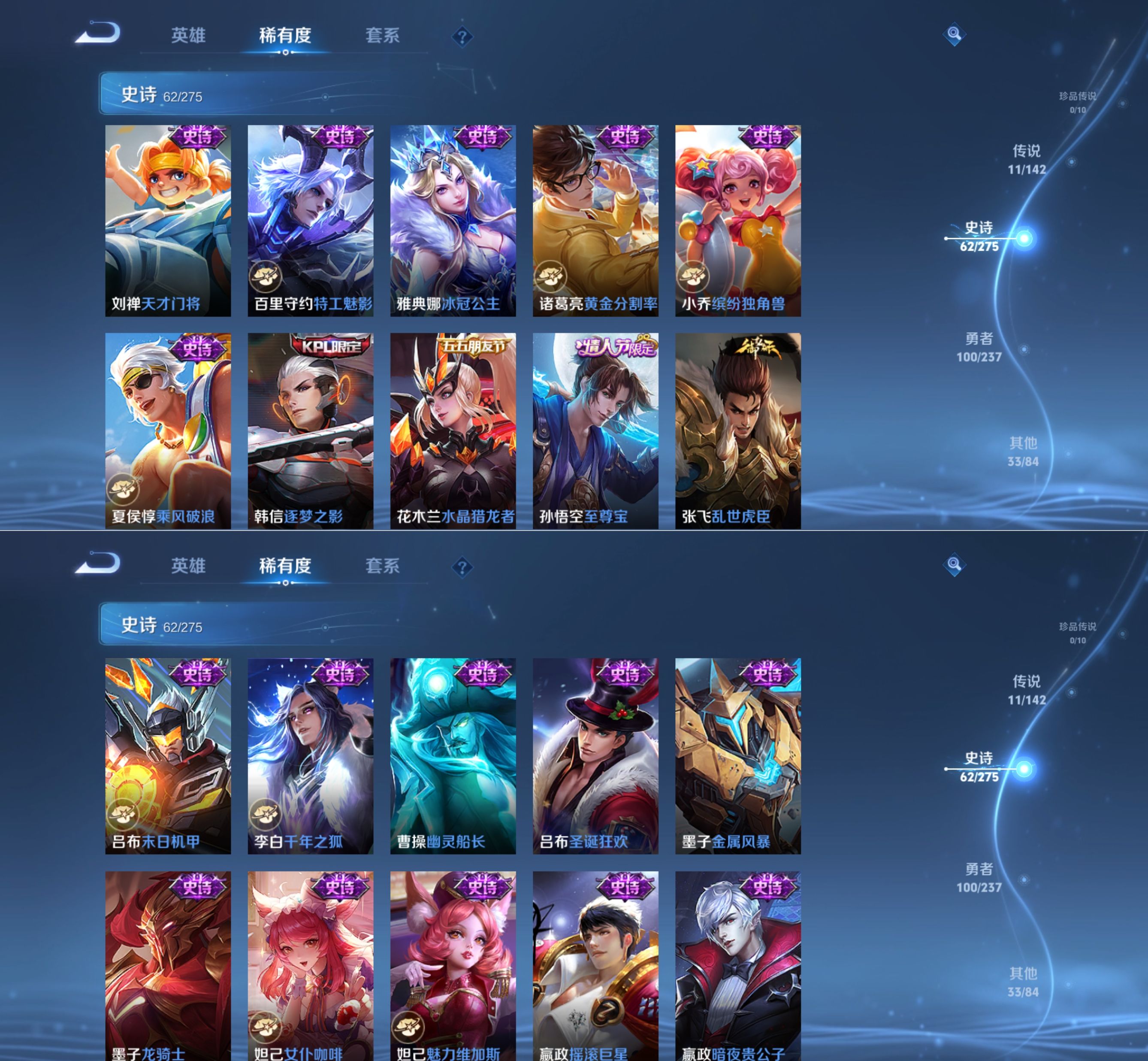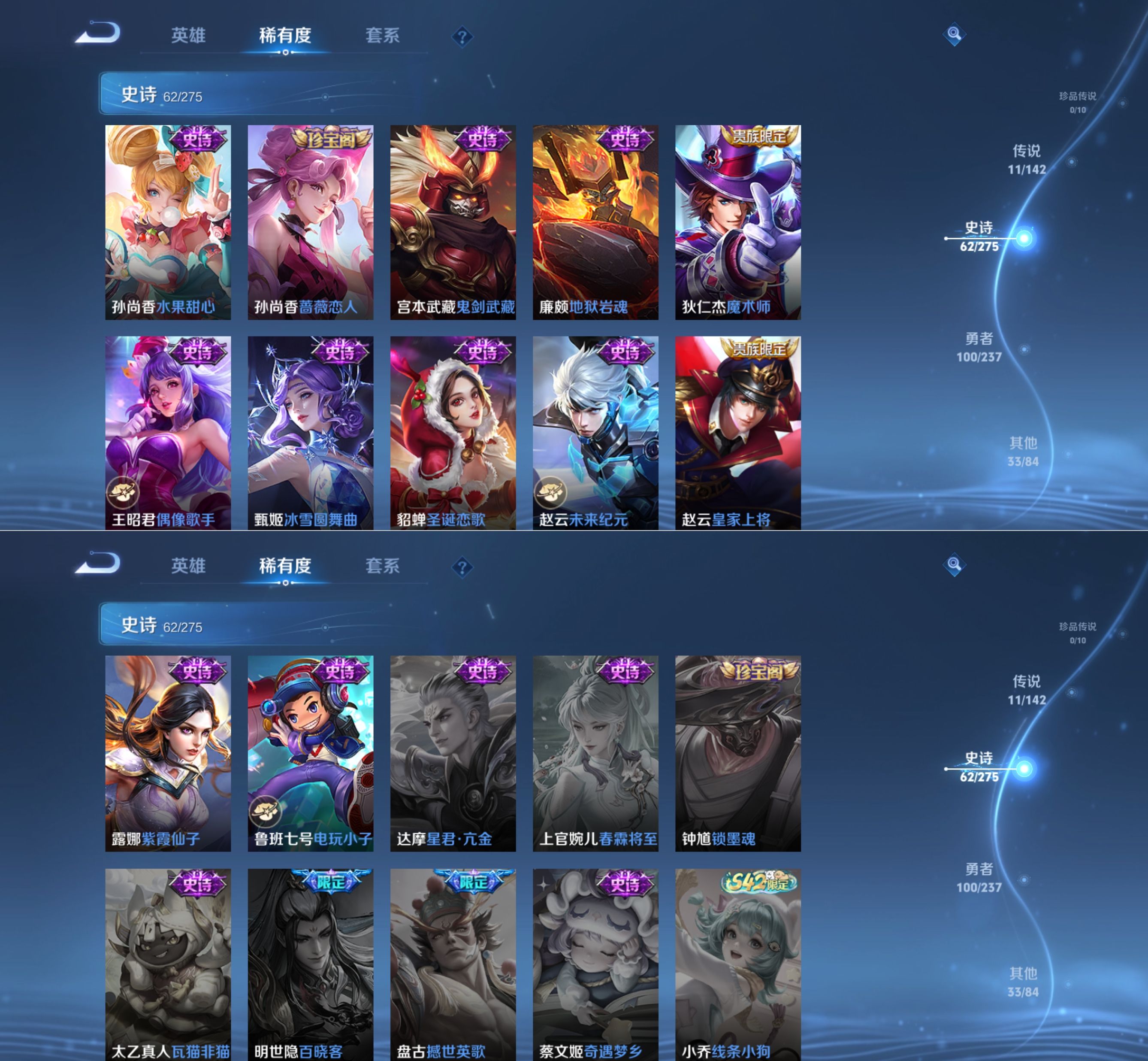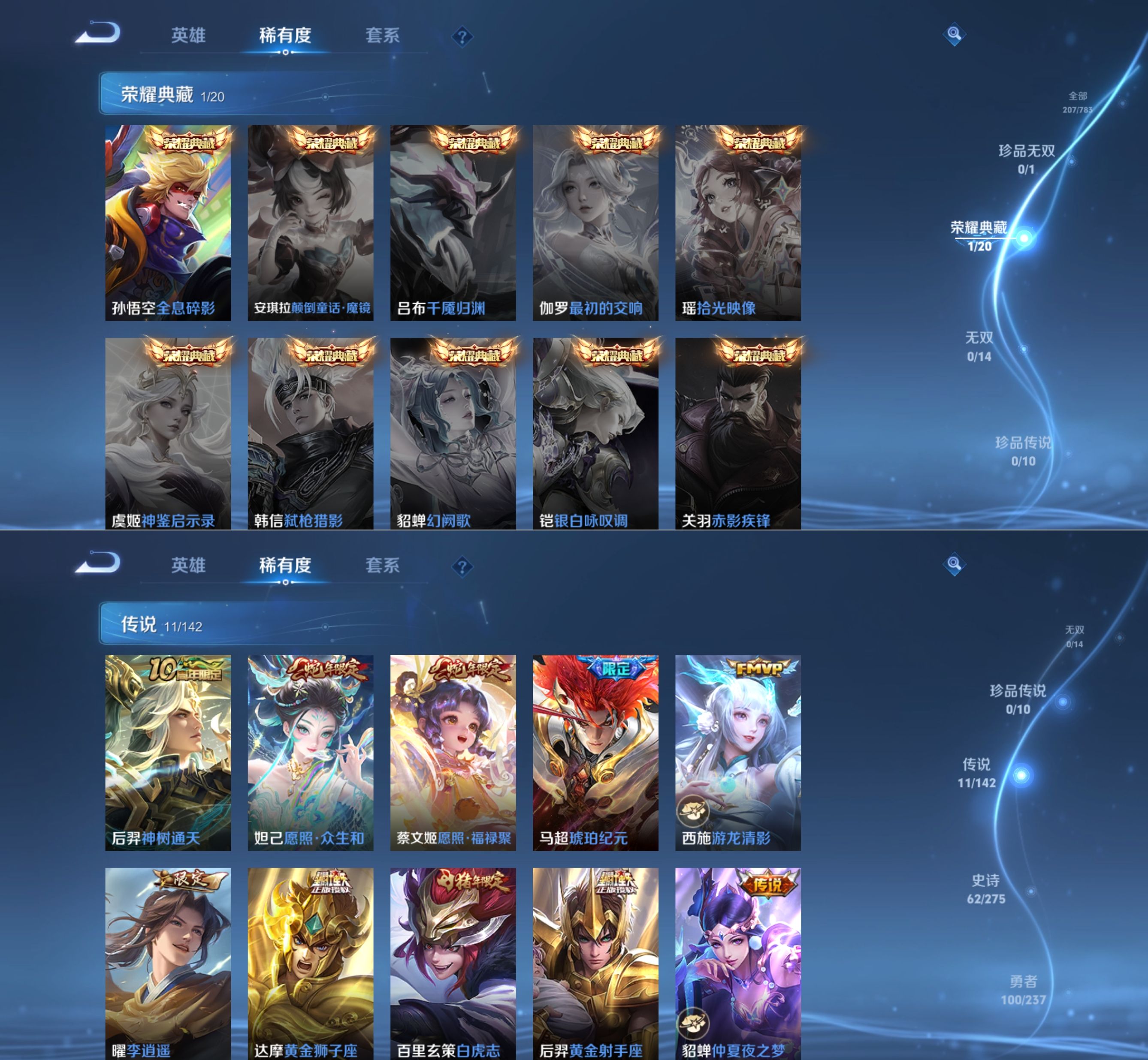 贵族等级:v7皮肤数:207传说品质11 情人节限定2 荣耀典藏1 生肖限定4 英雄数:126