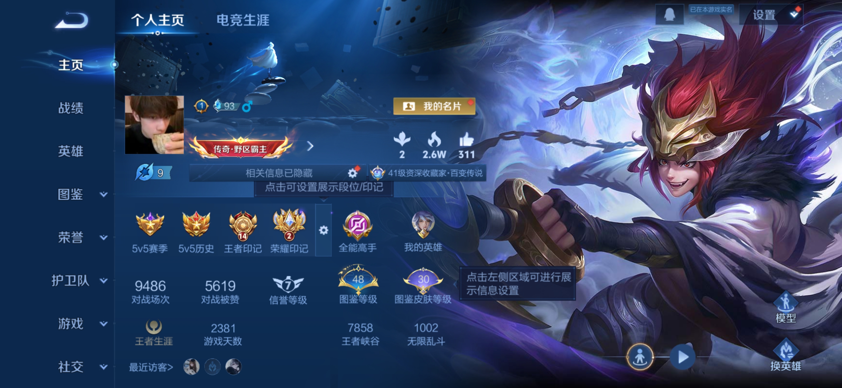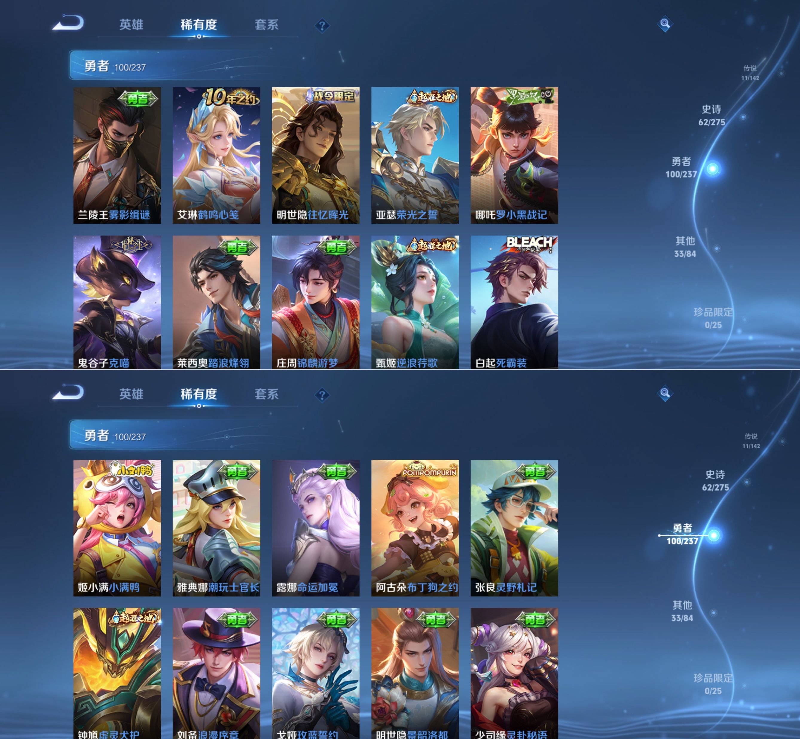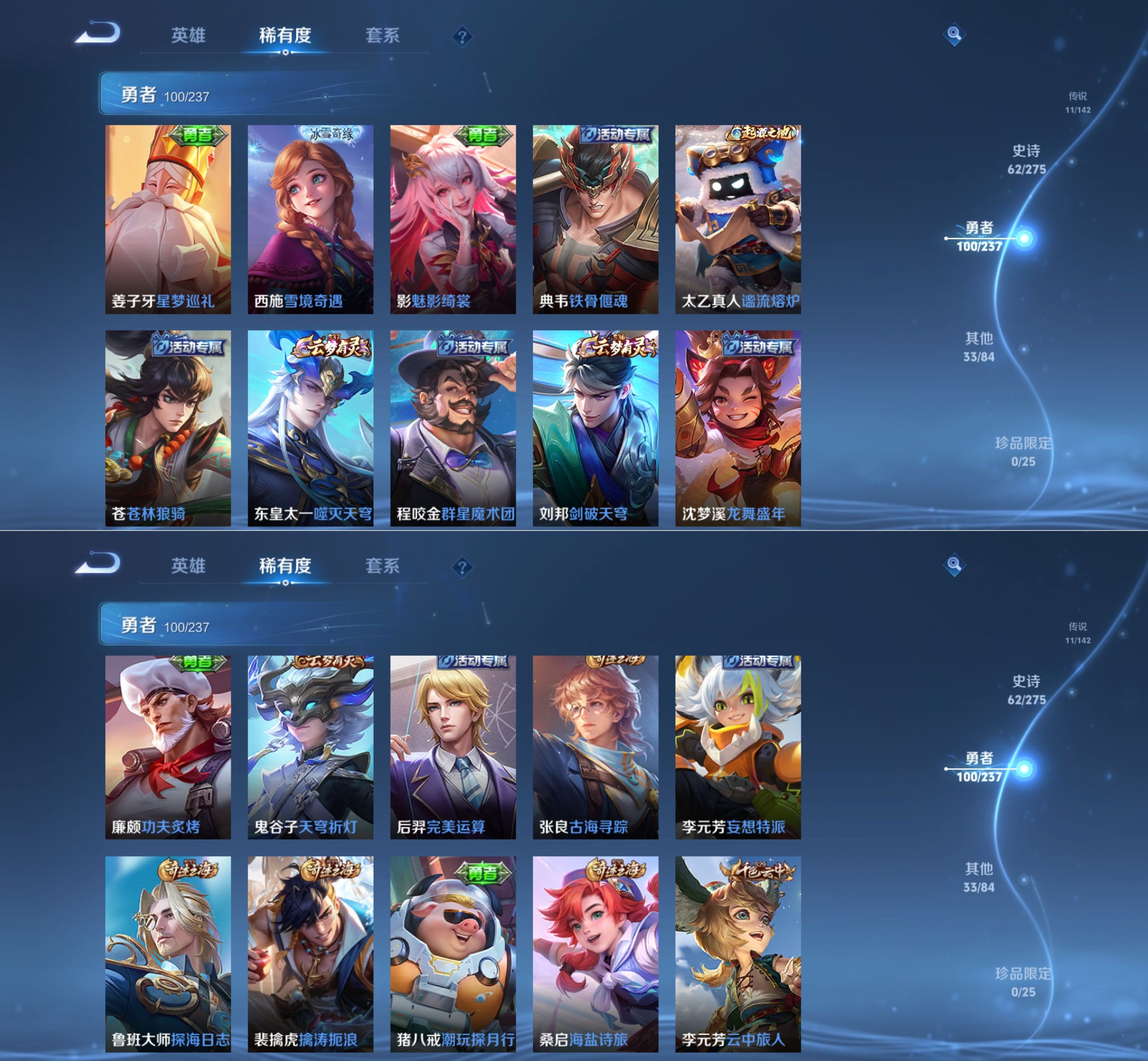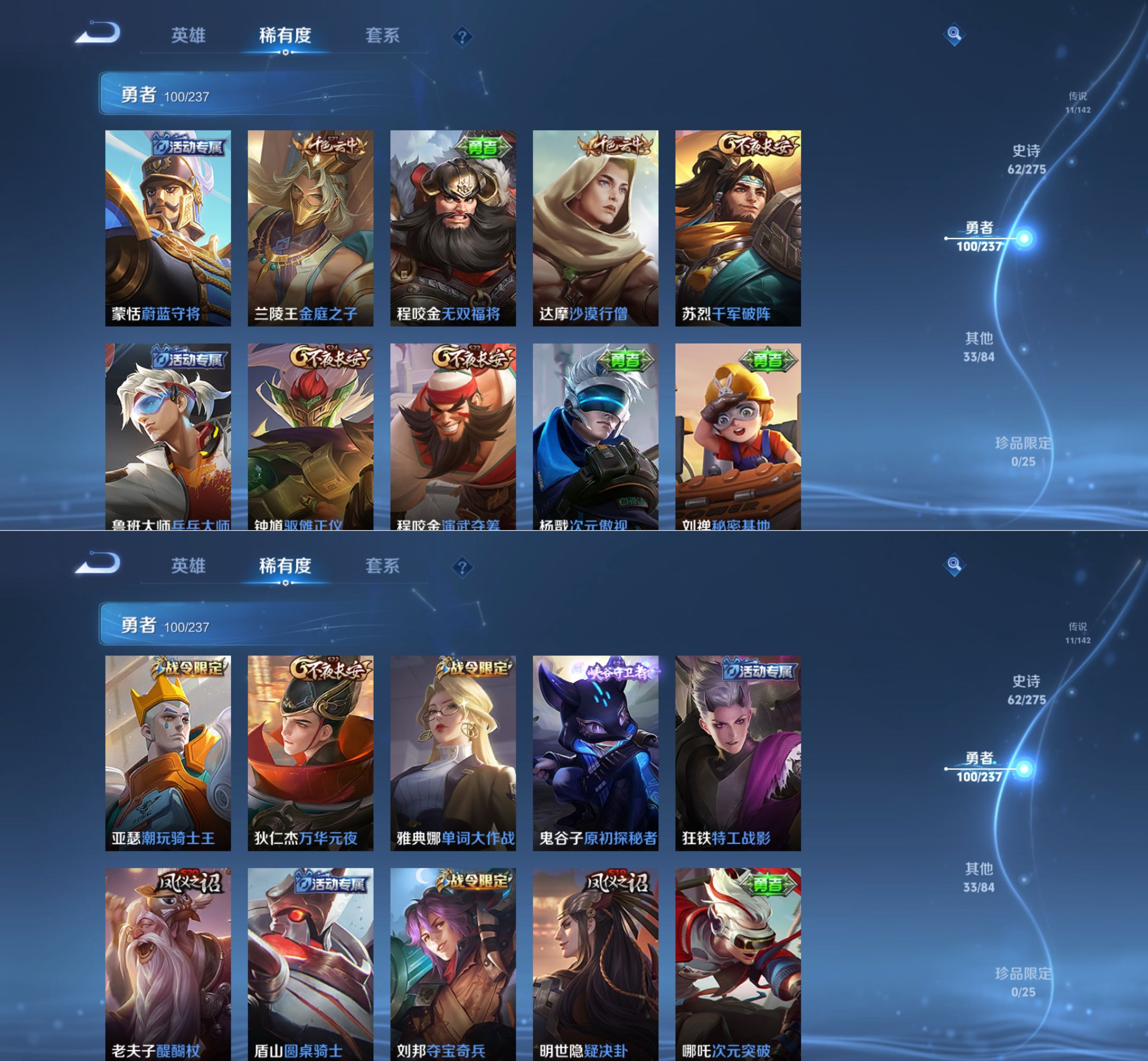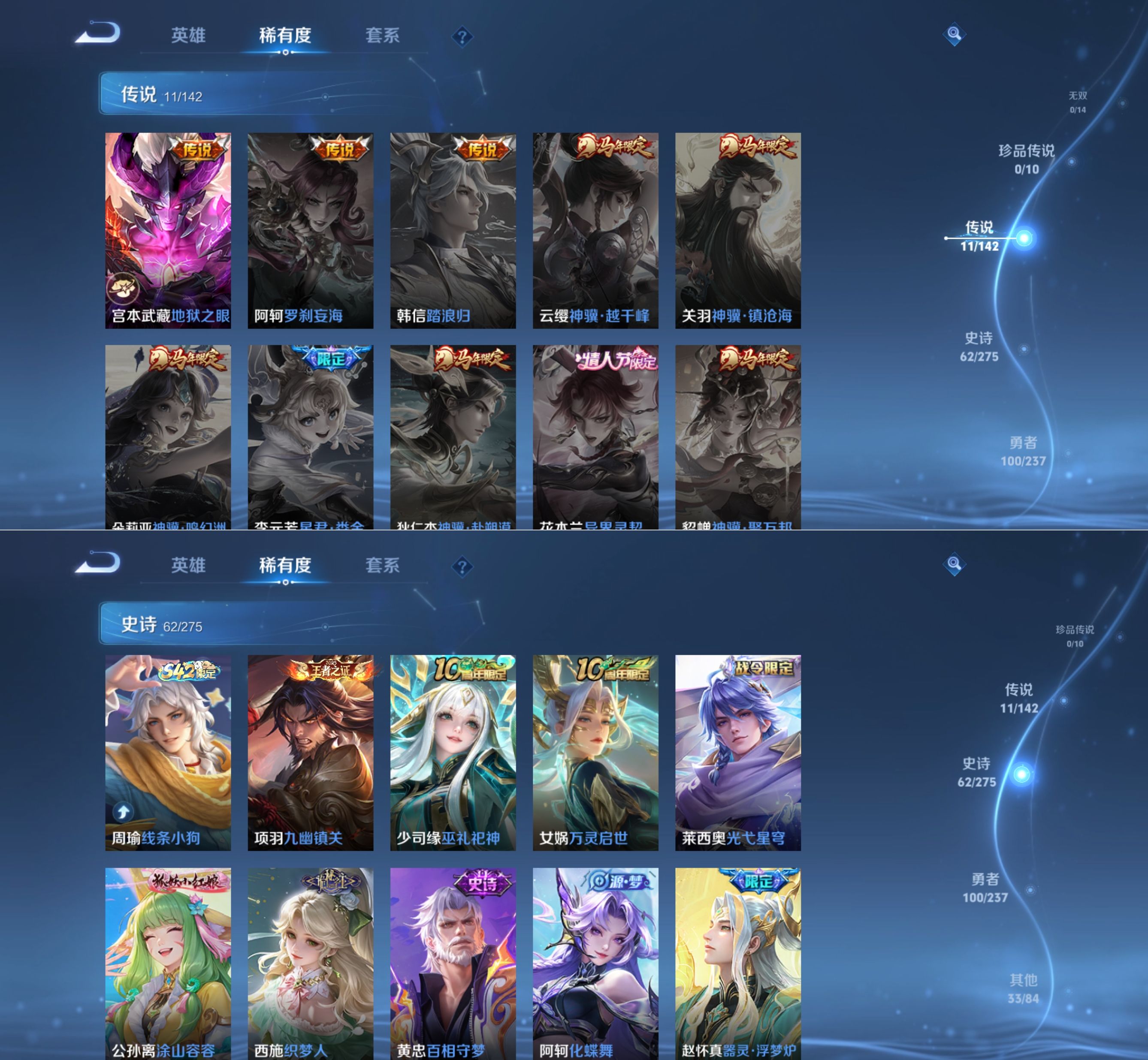 贵族等级:v7皮肤数:207传说品质11 情人节限定2 荣耀典藏1 生肖限定4 英雄数:126