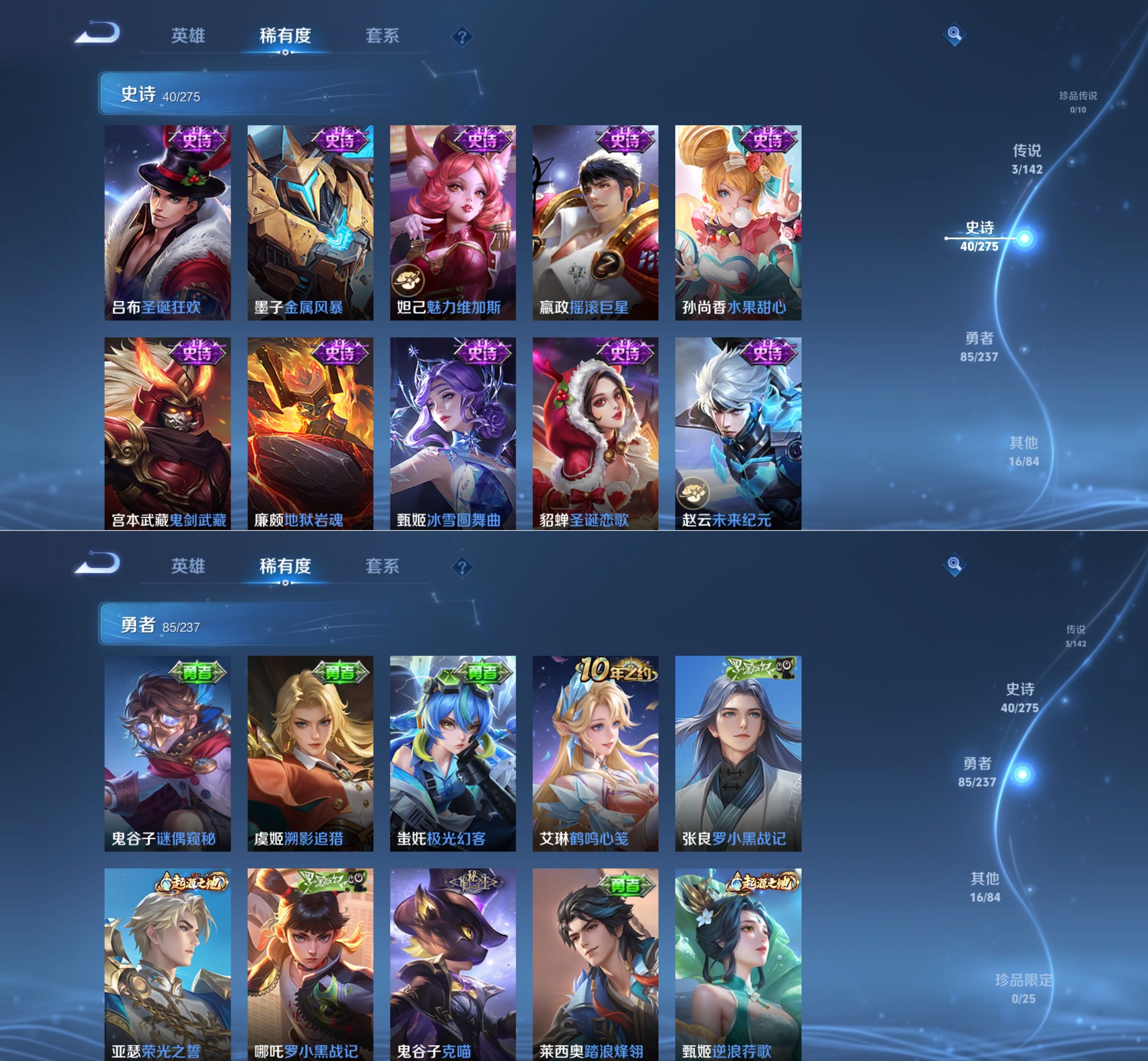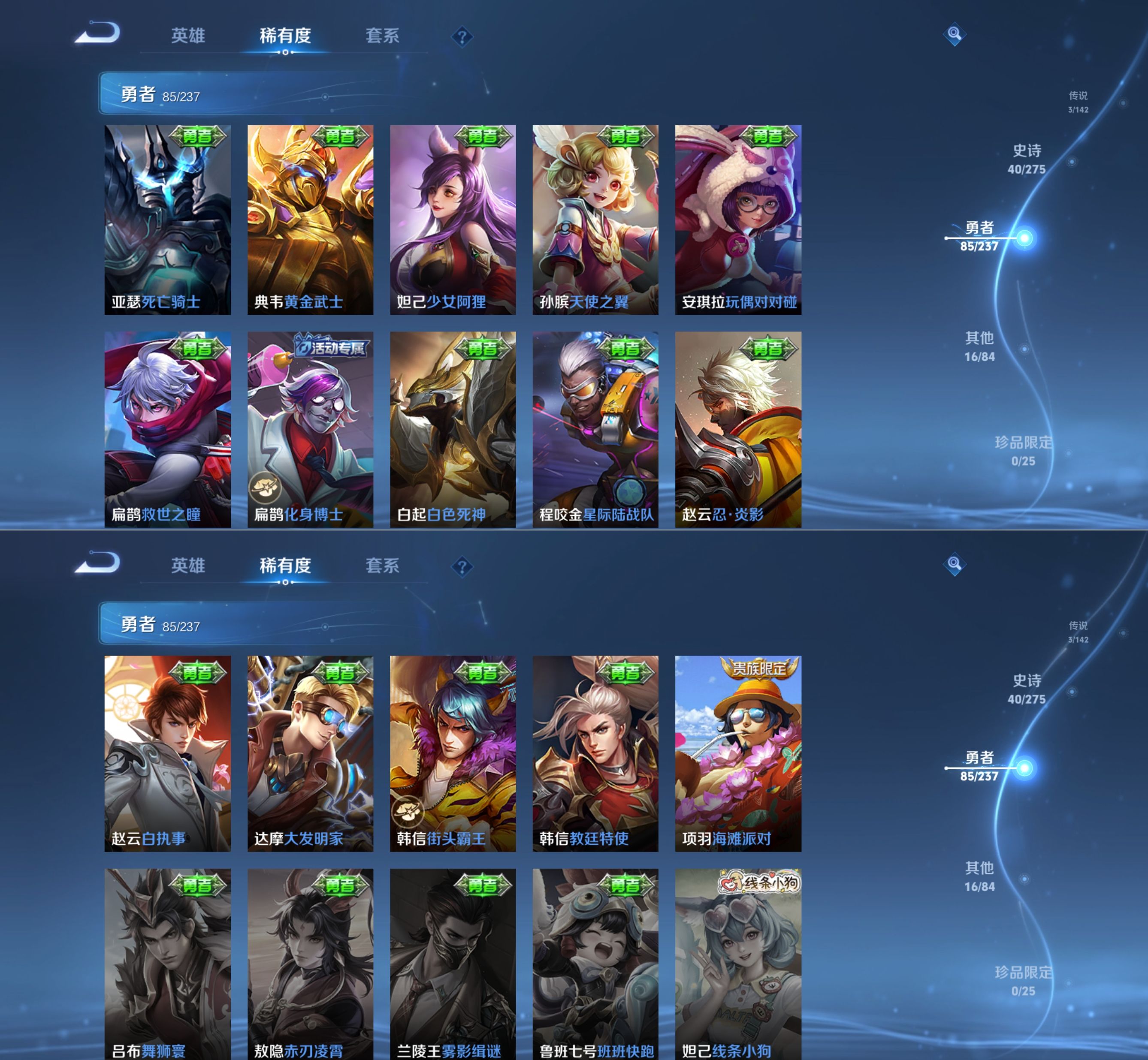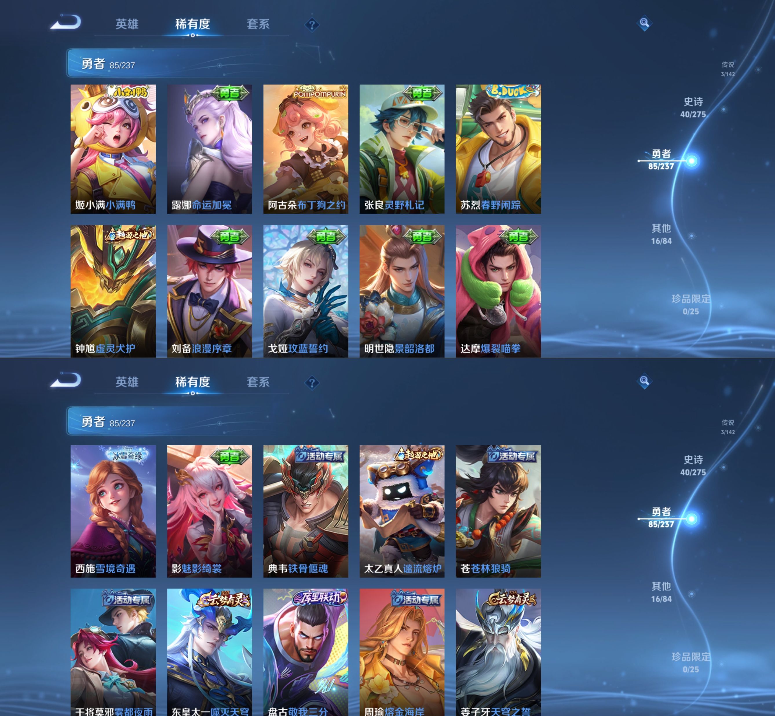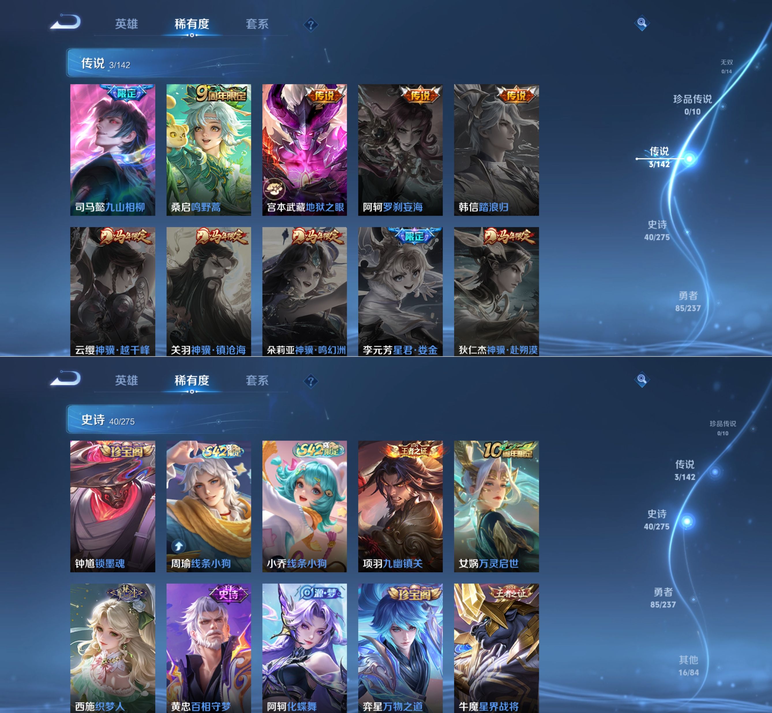 贵族等级:v4皮肤数:144情人节限定1 传说品质3 英雄数:126