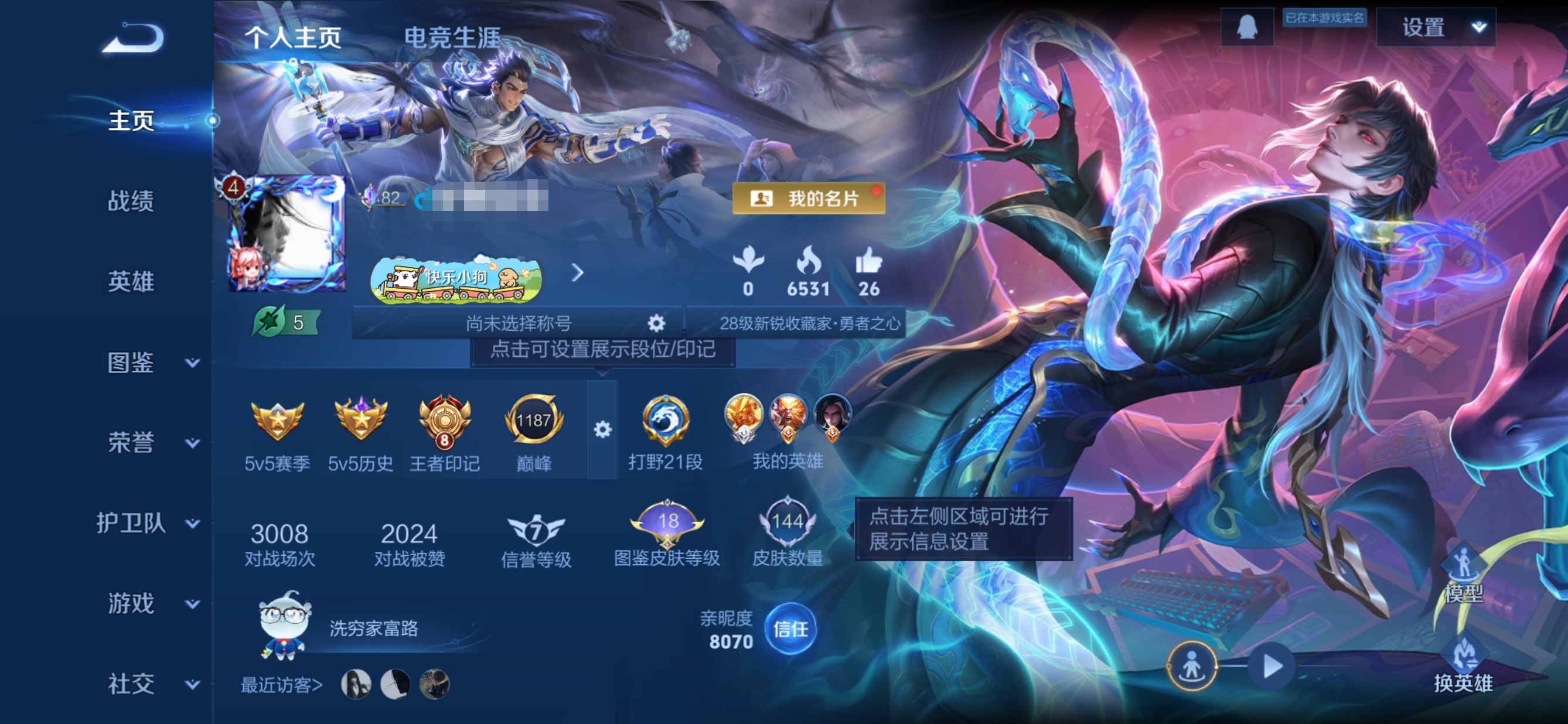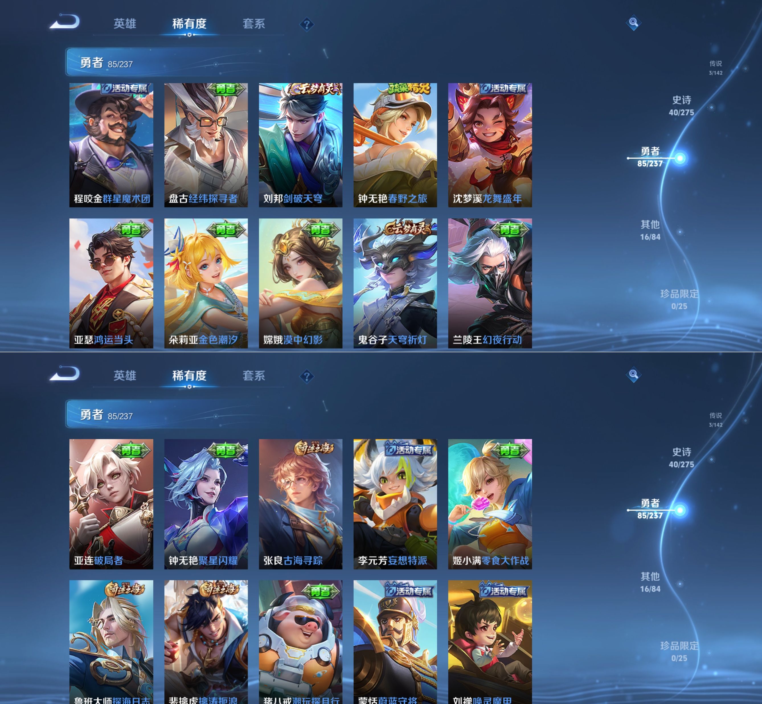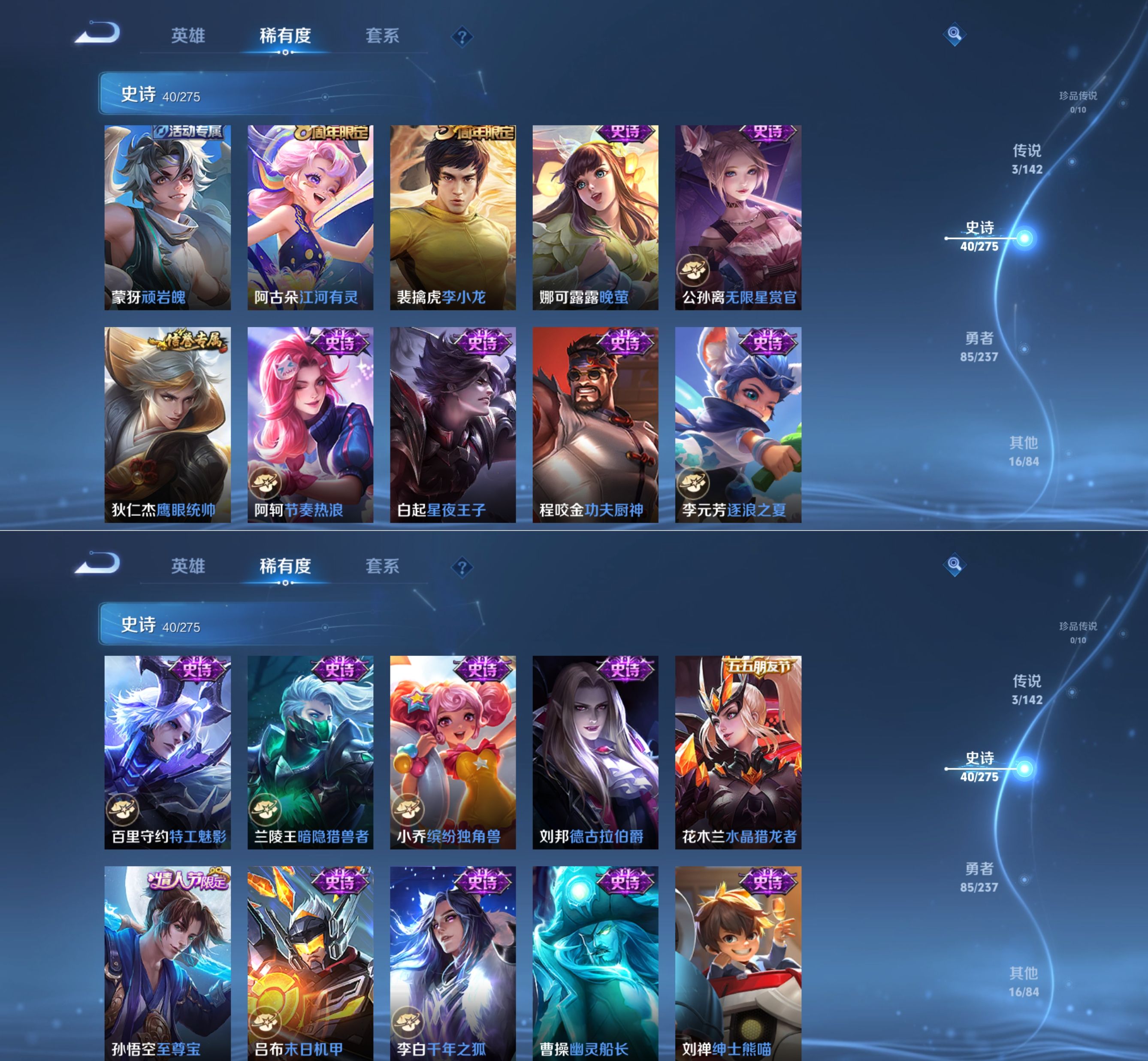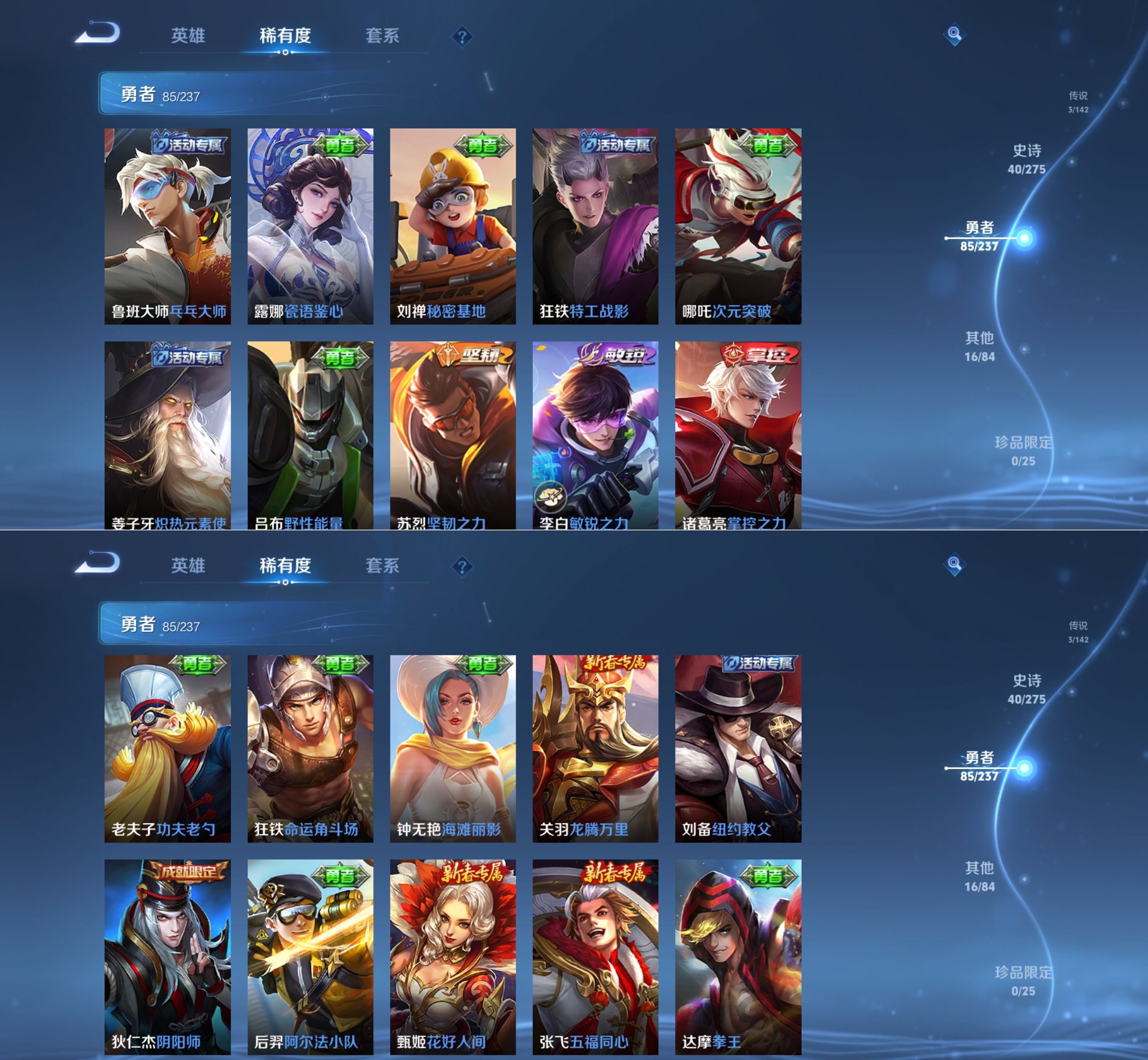 贵族等级:v4皮肤数:144情人节限定1 传说品质3 英雄数:126