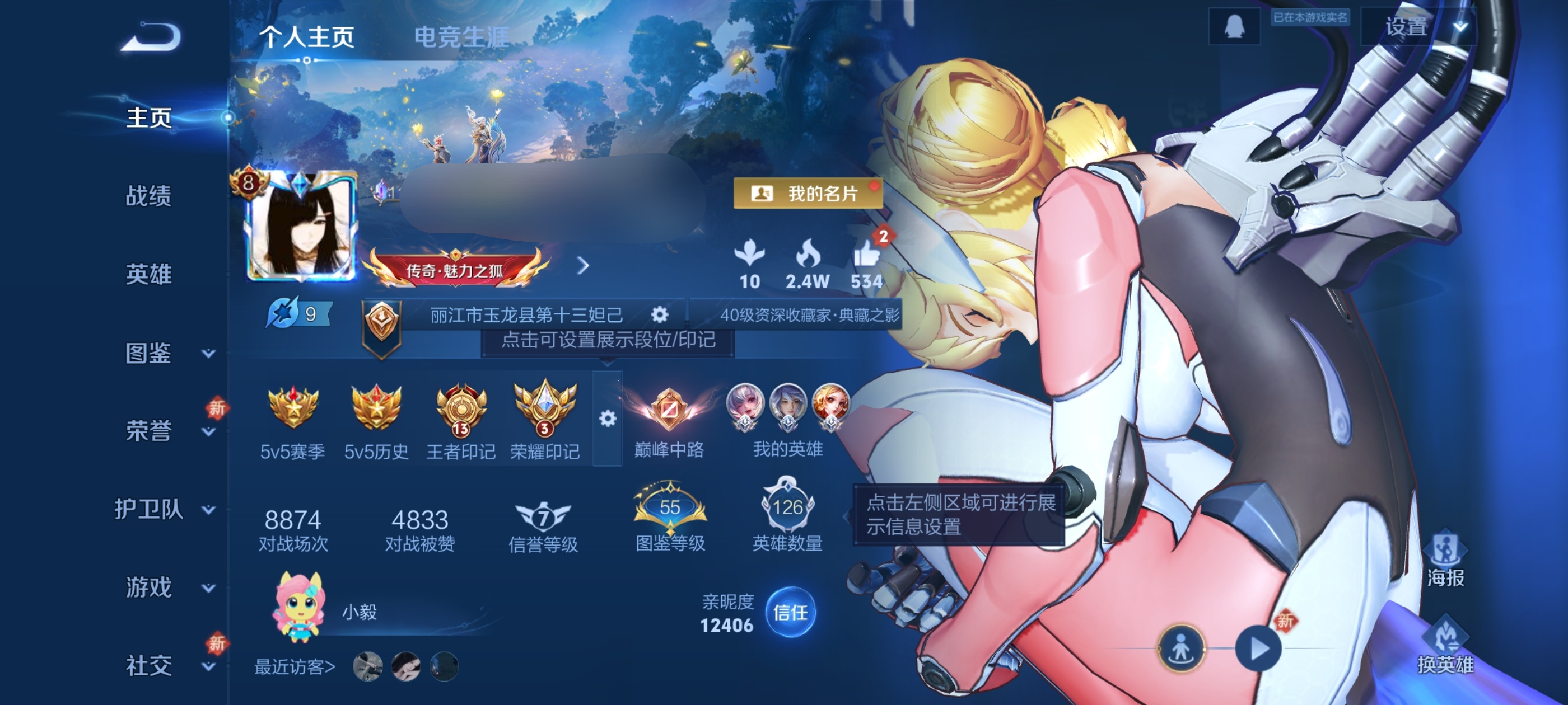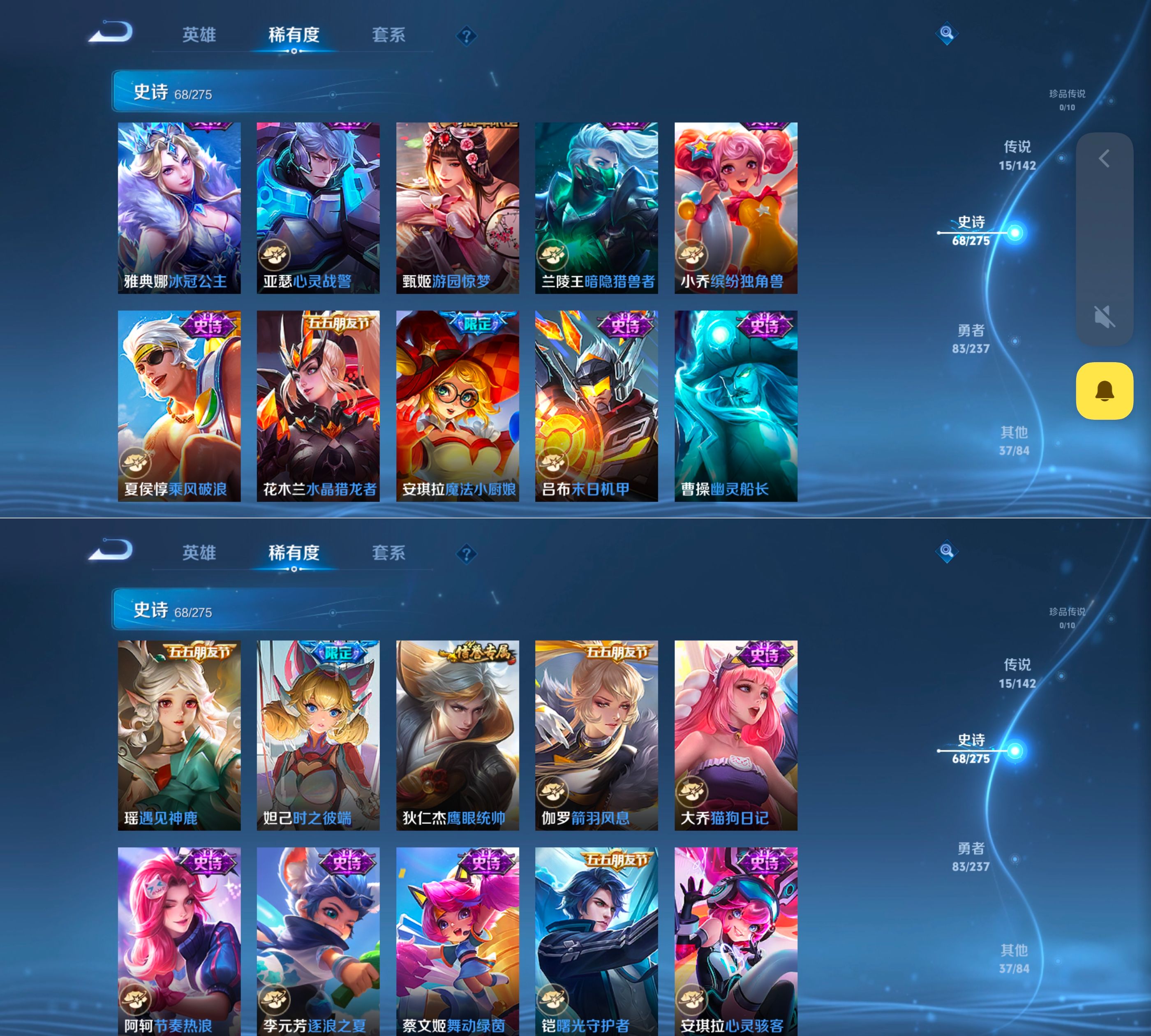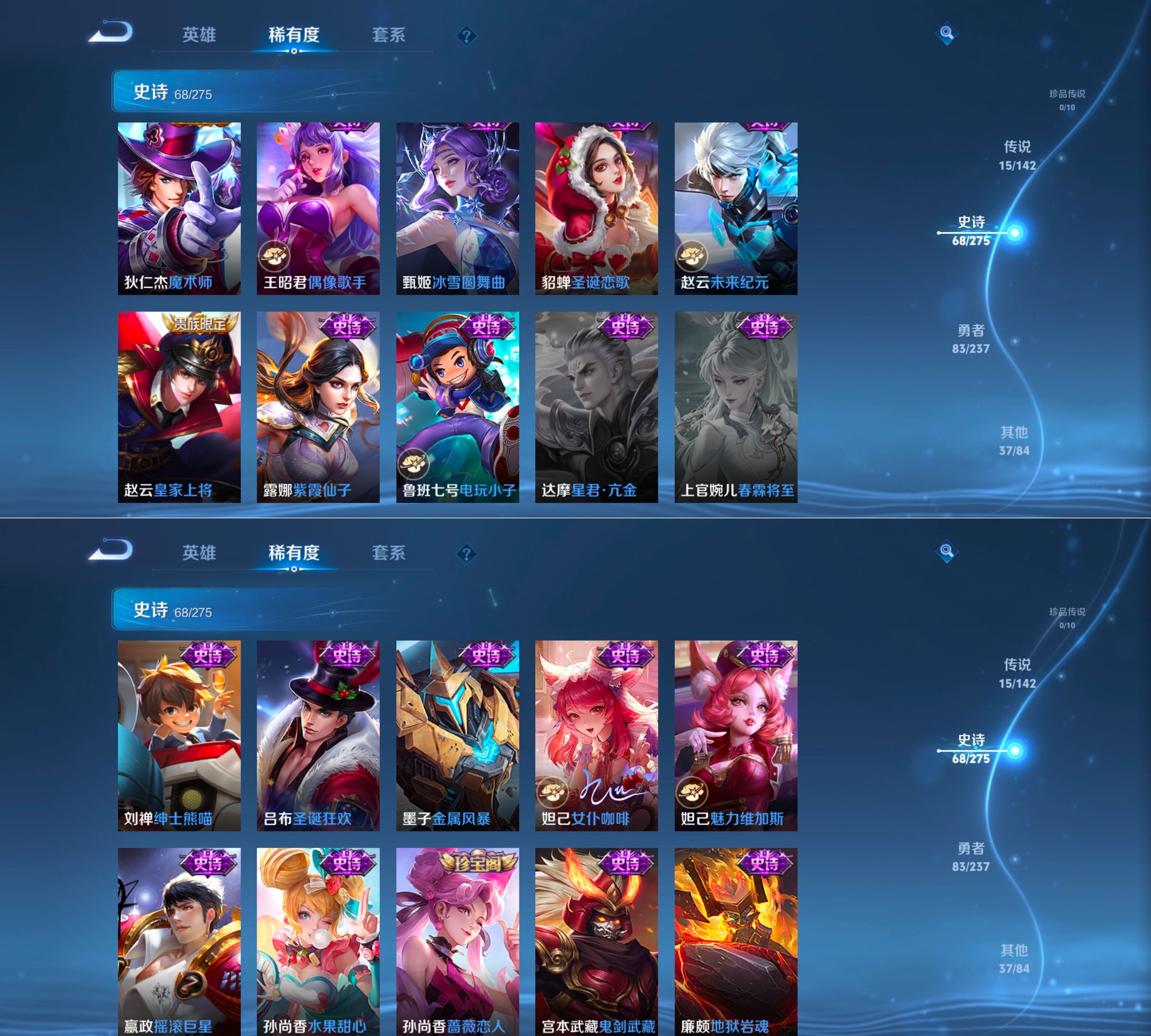 贵族等级:v8皮肤数:204传说品质15 生肖限定8 荣耀典藏1 英雄数:126