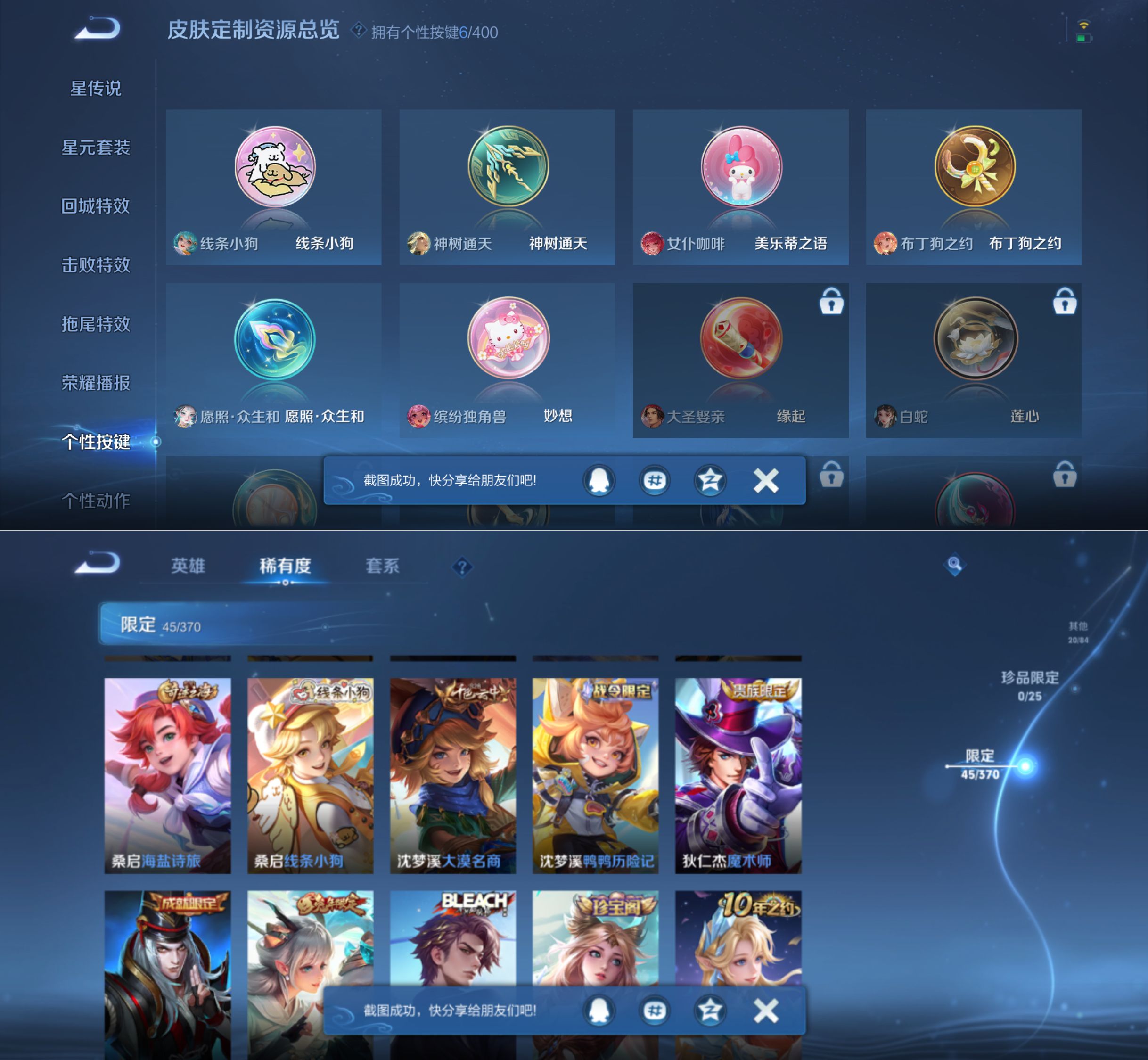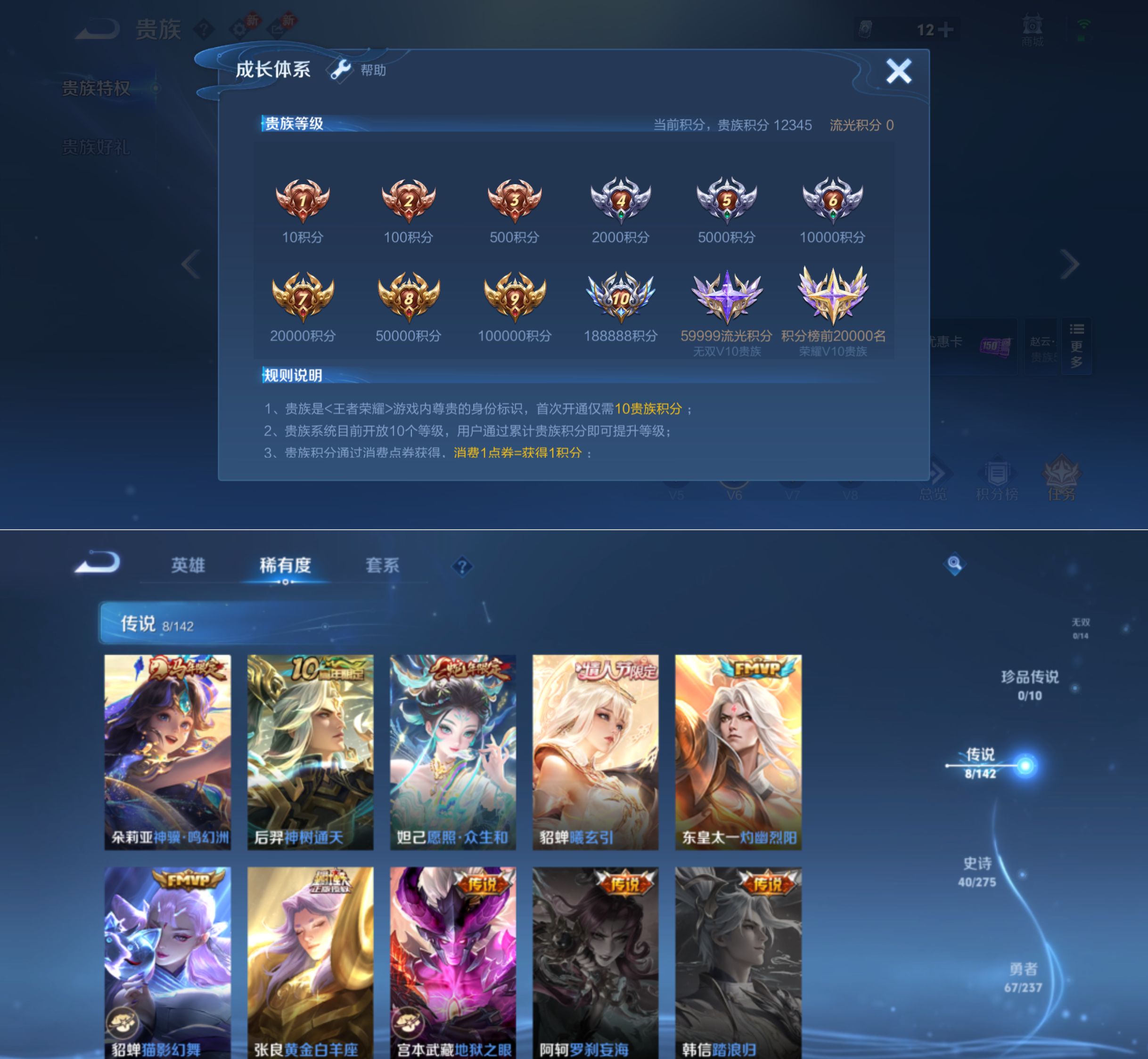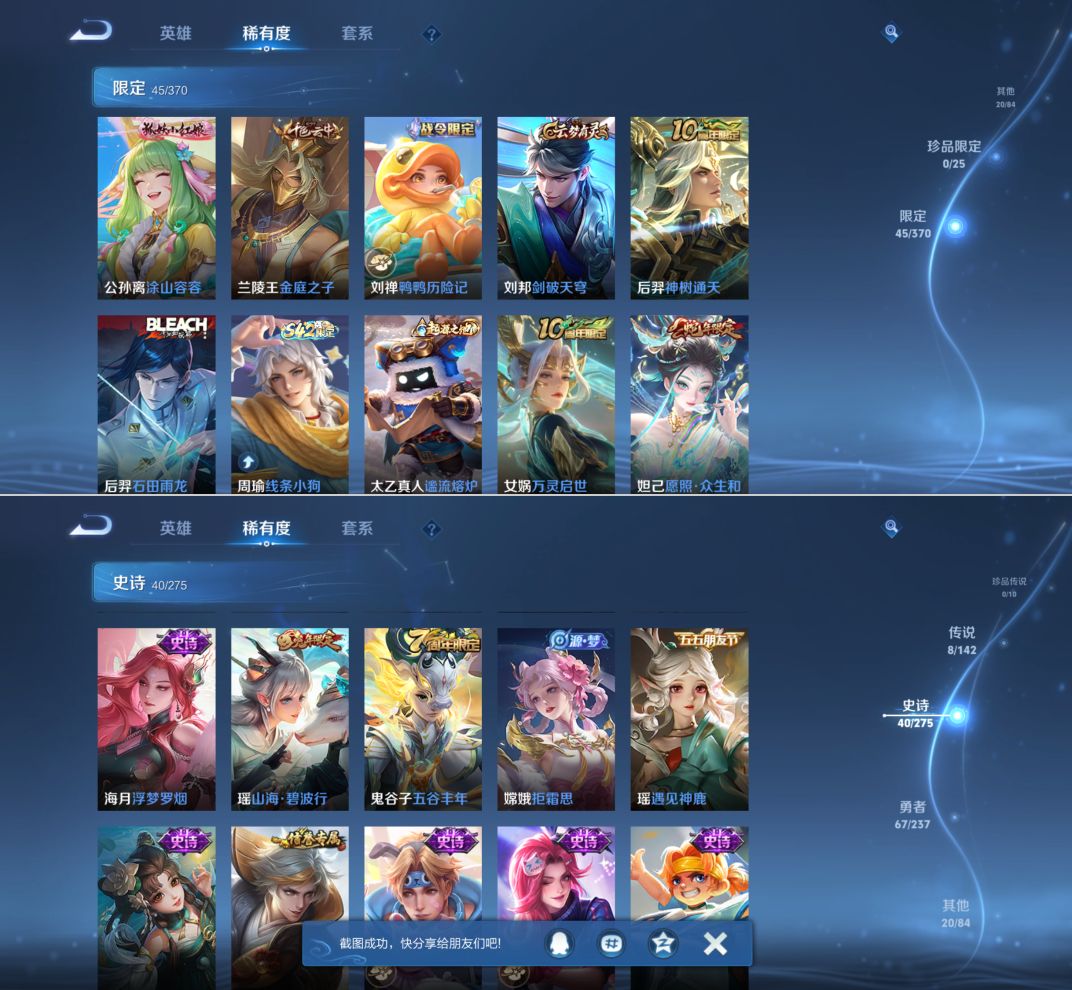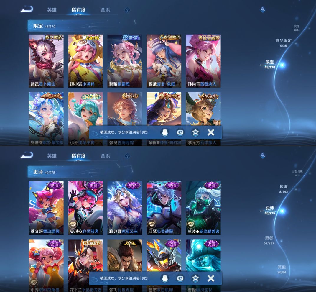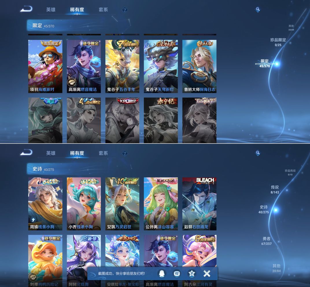 贵族等级:v6皮肤数:135传说品质8 情人节限定1 生肖限定4 英雄数:117