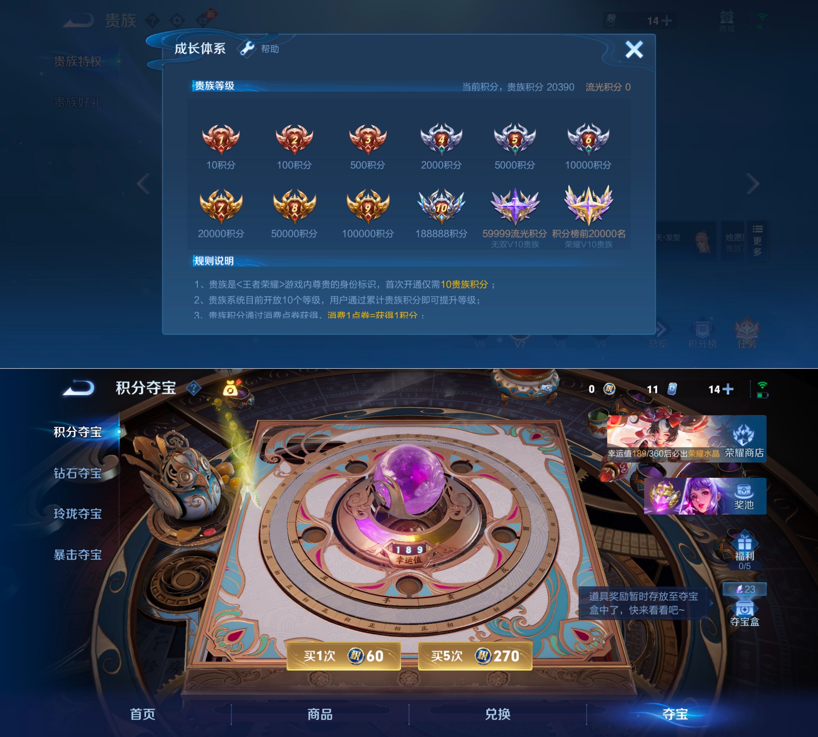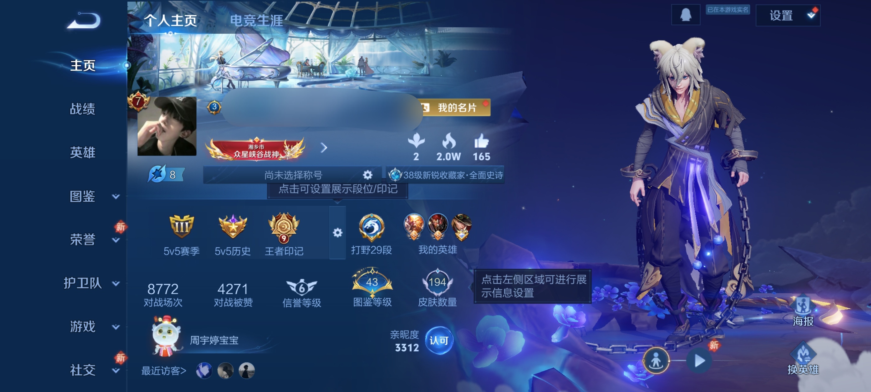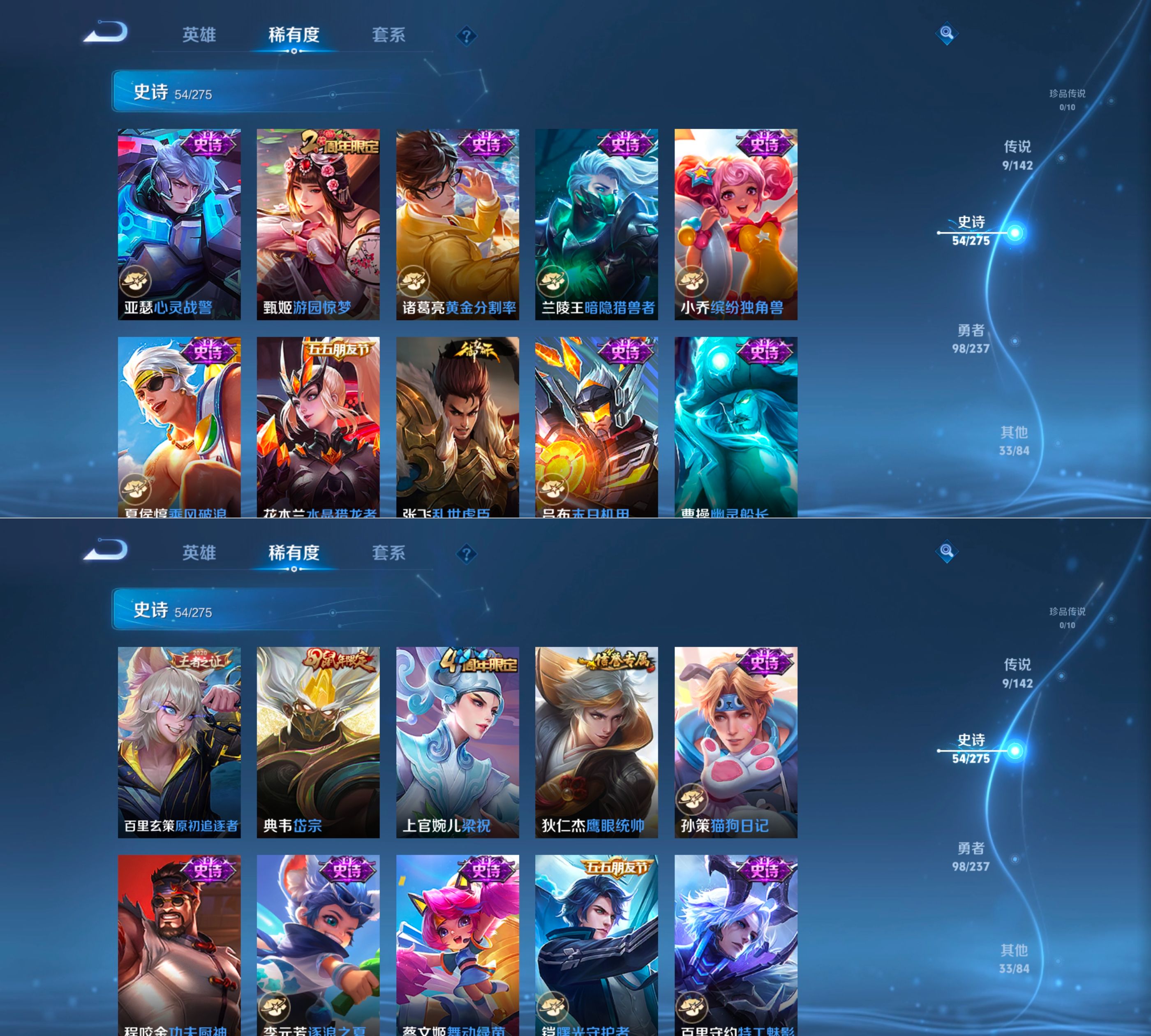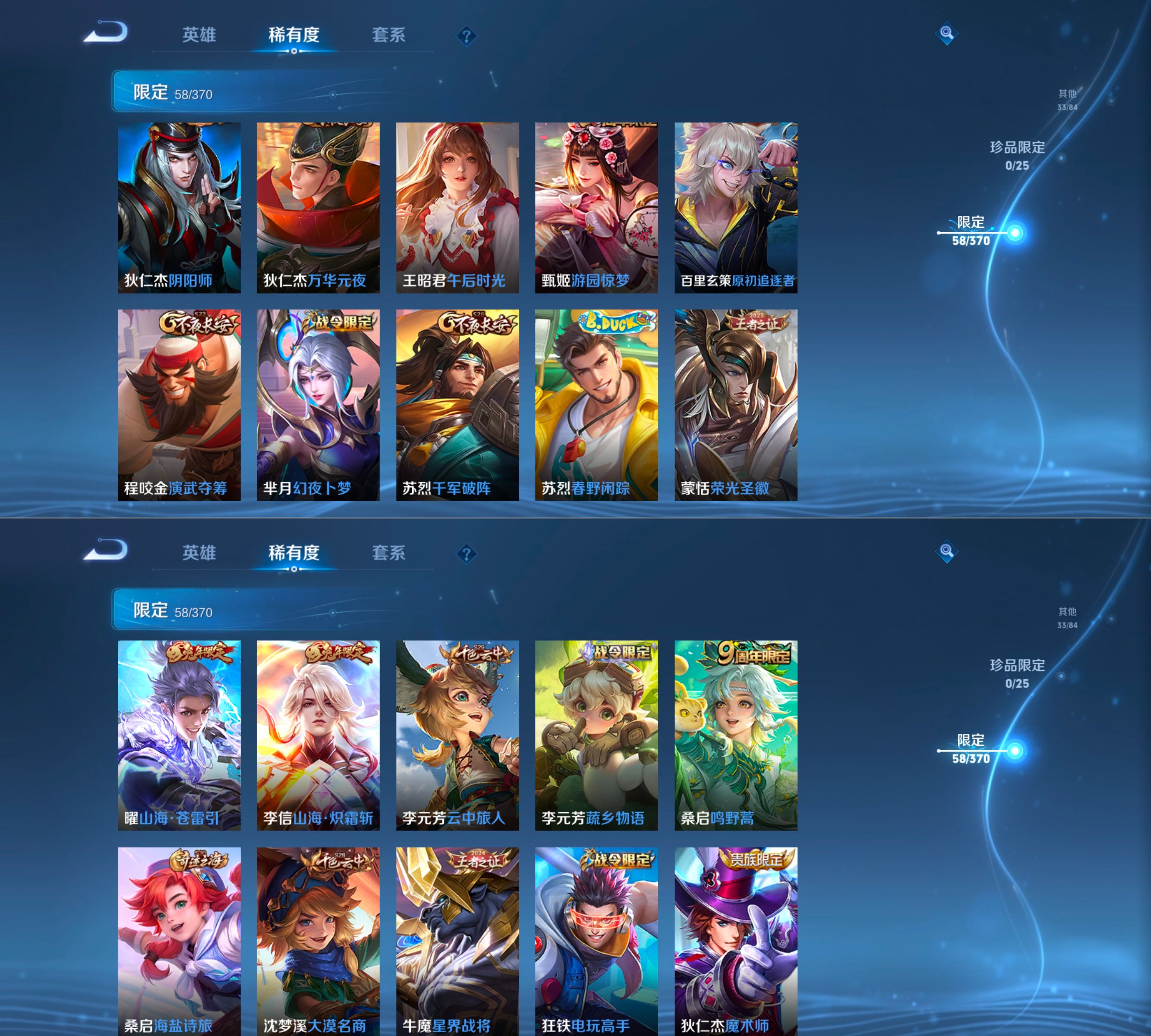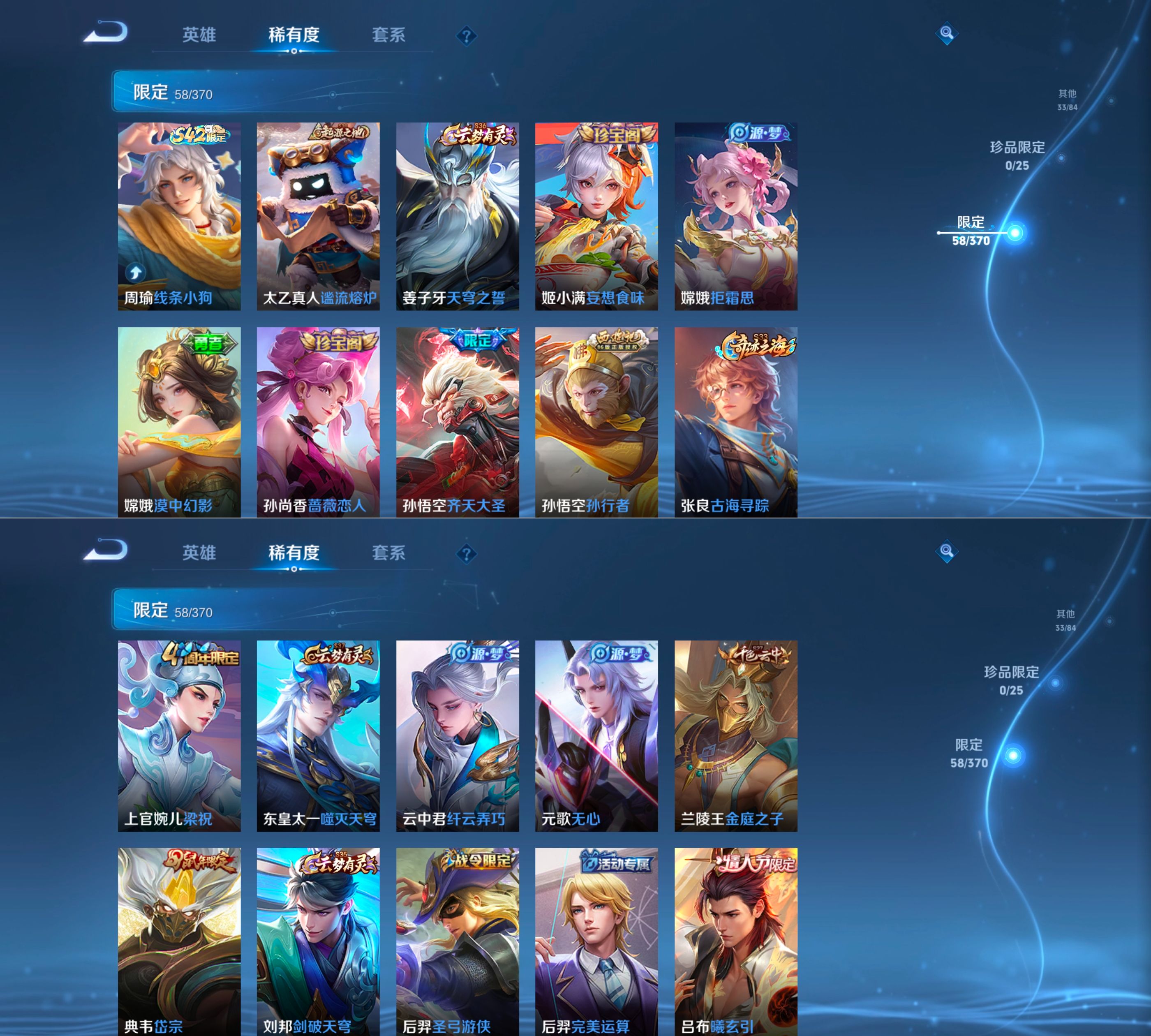 贵族等级:v7皮肤数:194生肖限定5 传说品质9 情人节限定1 英雄数:128