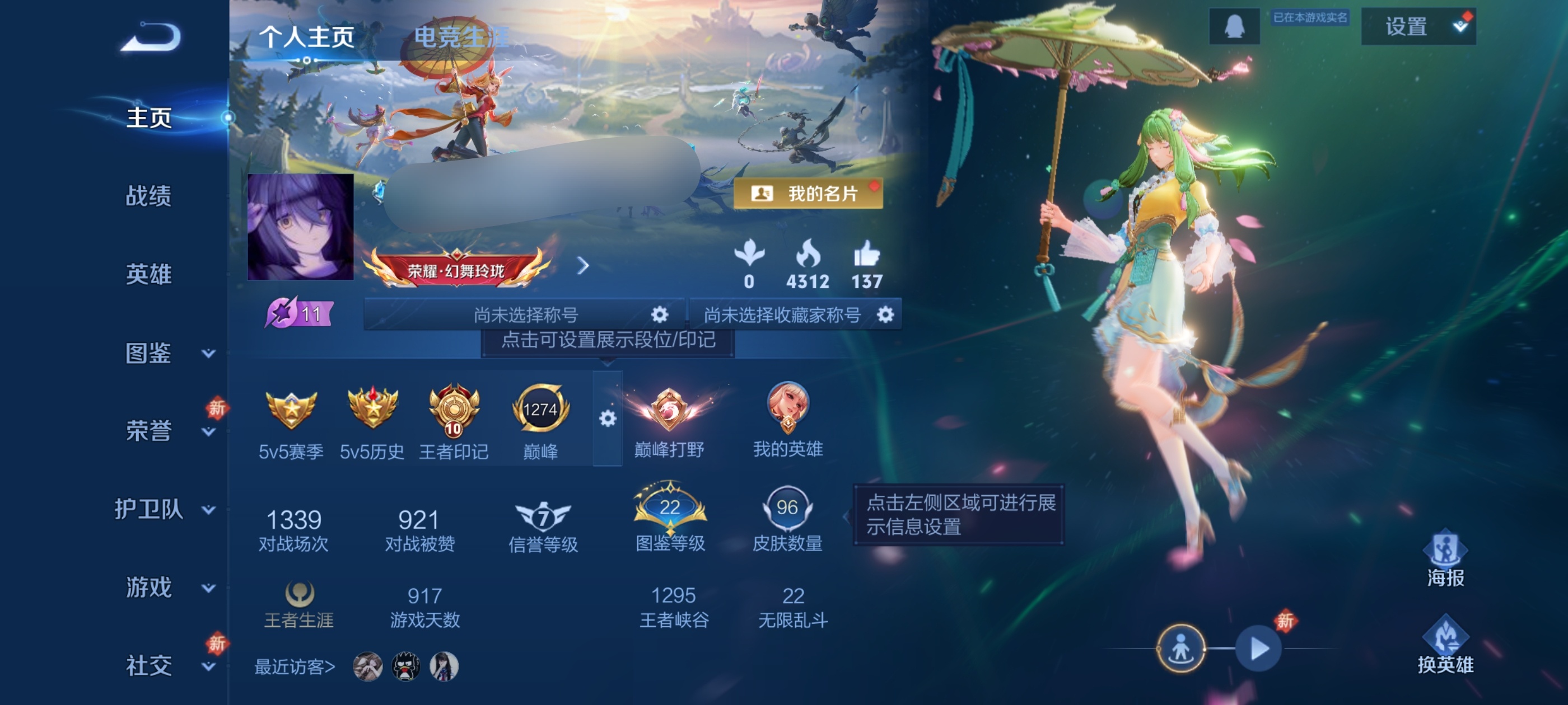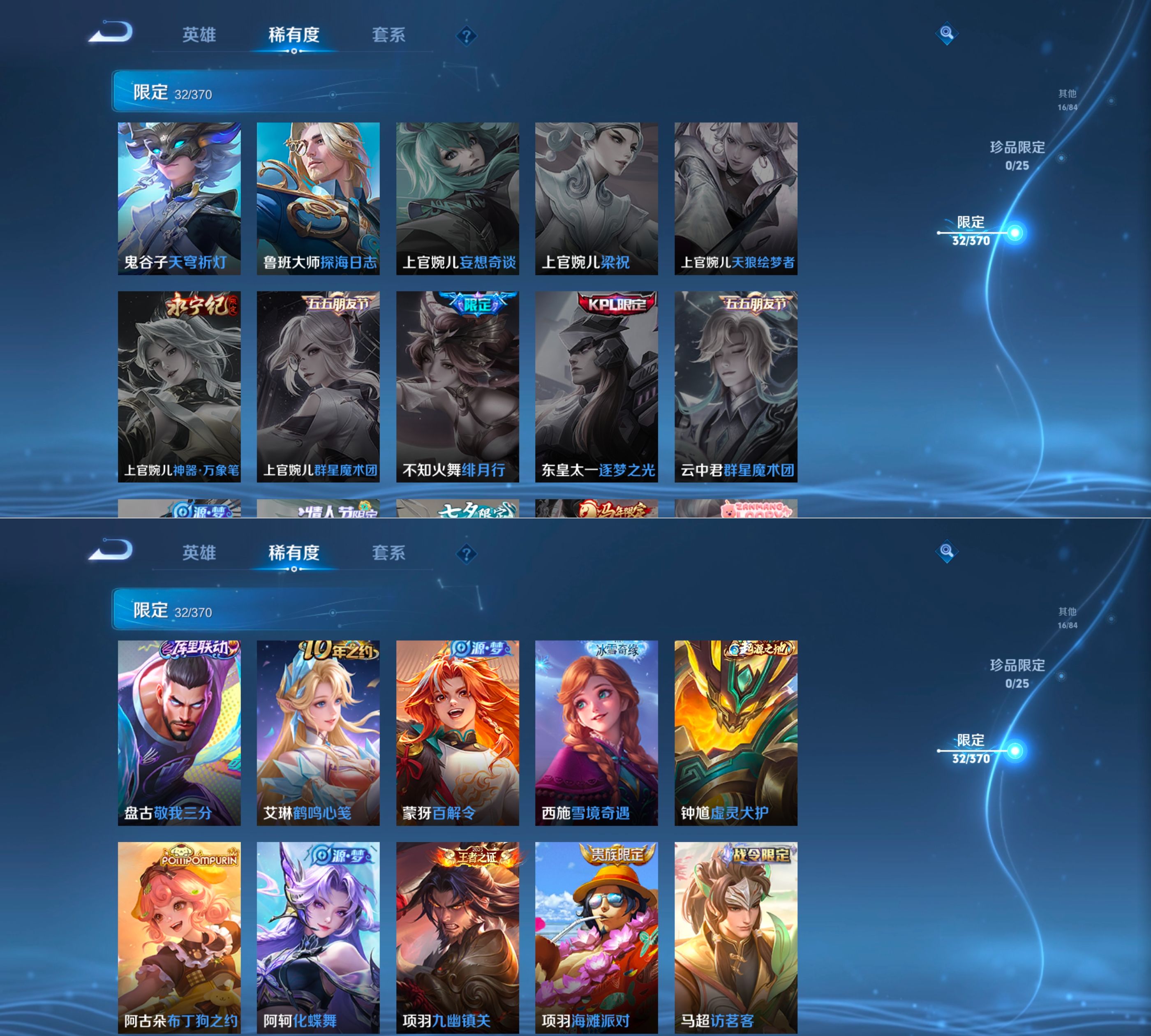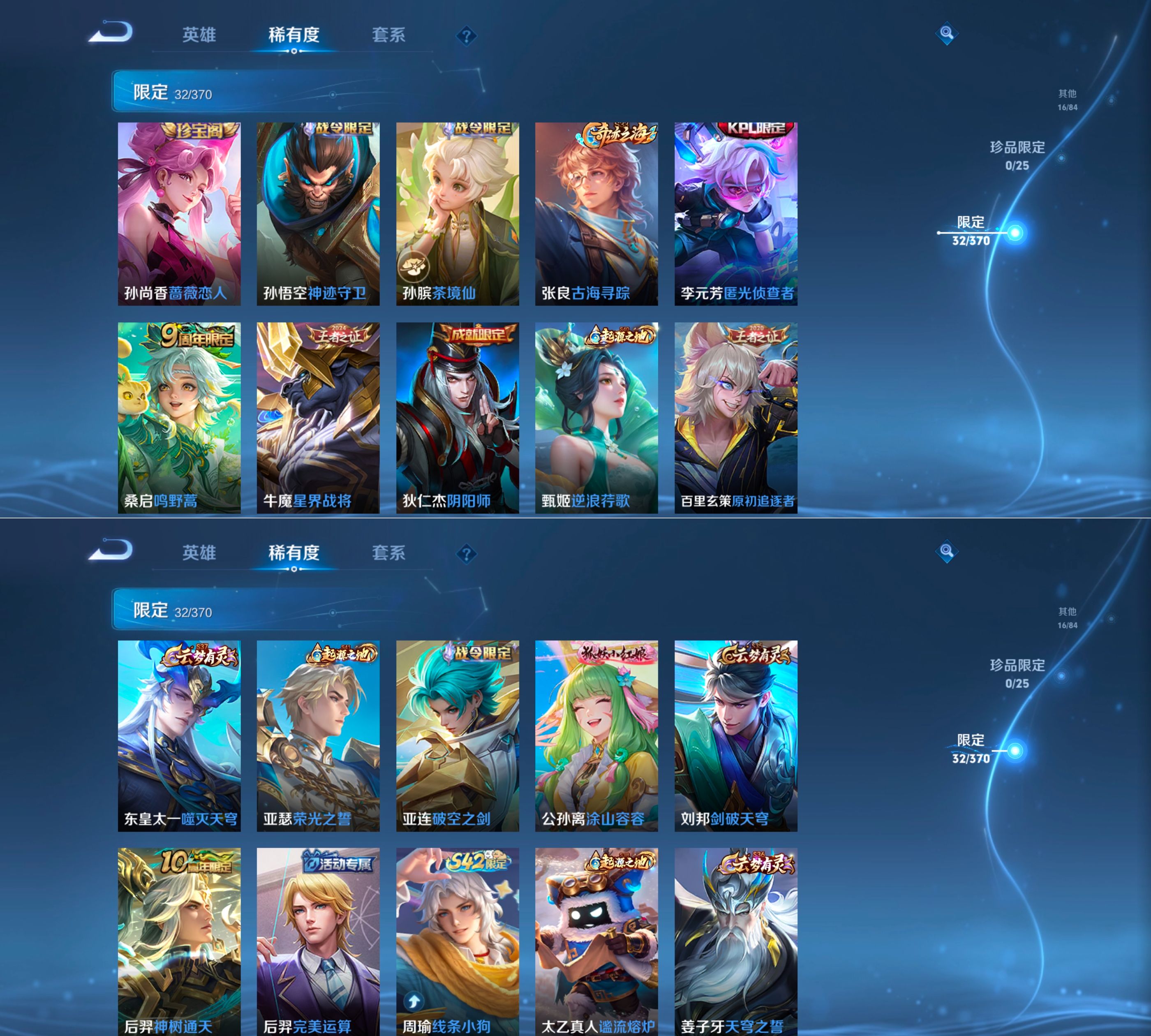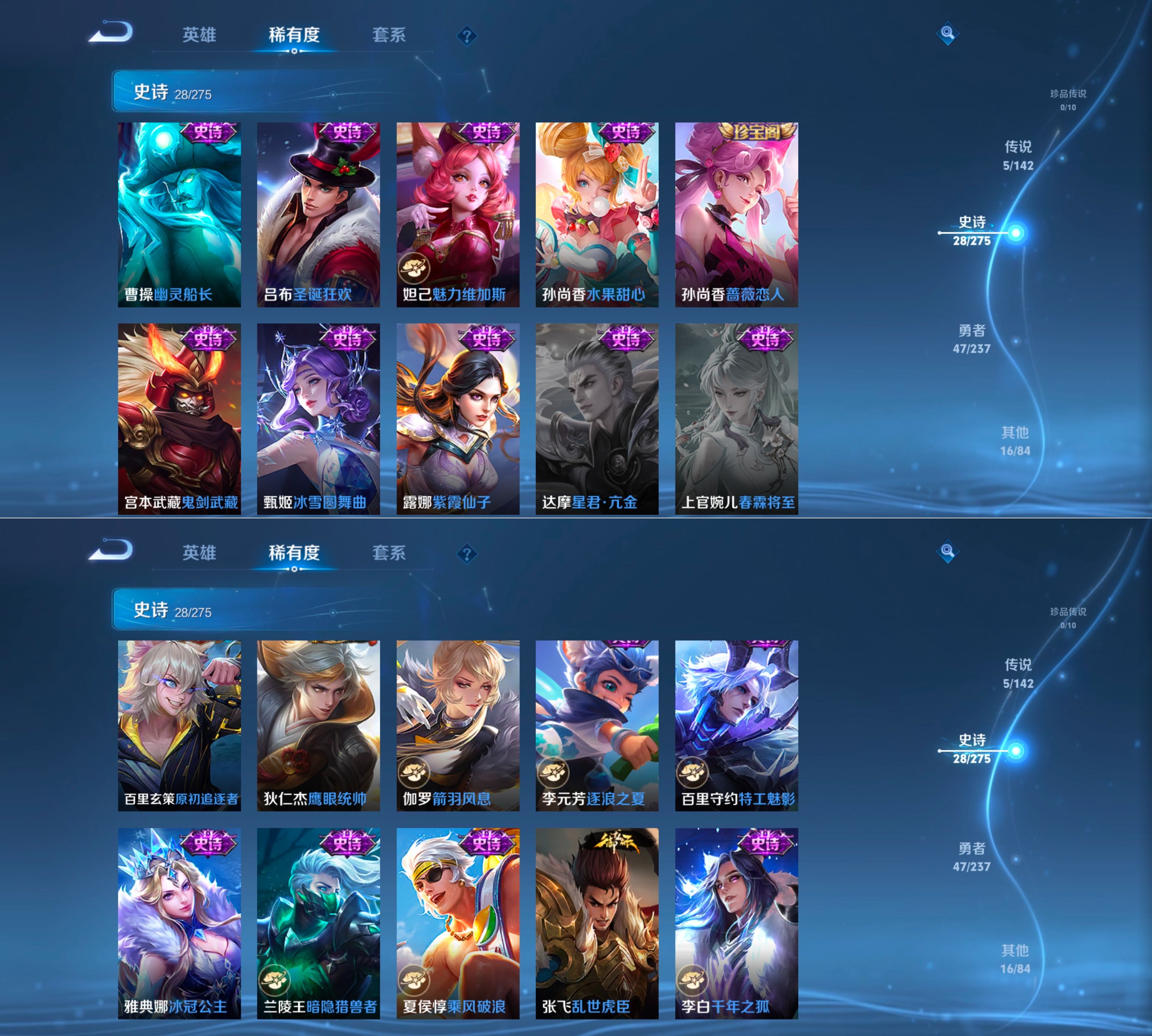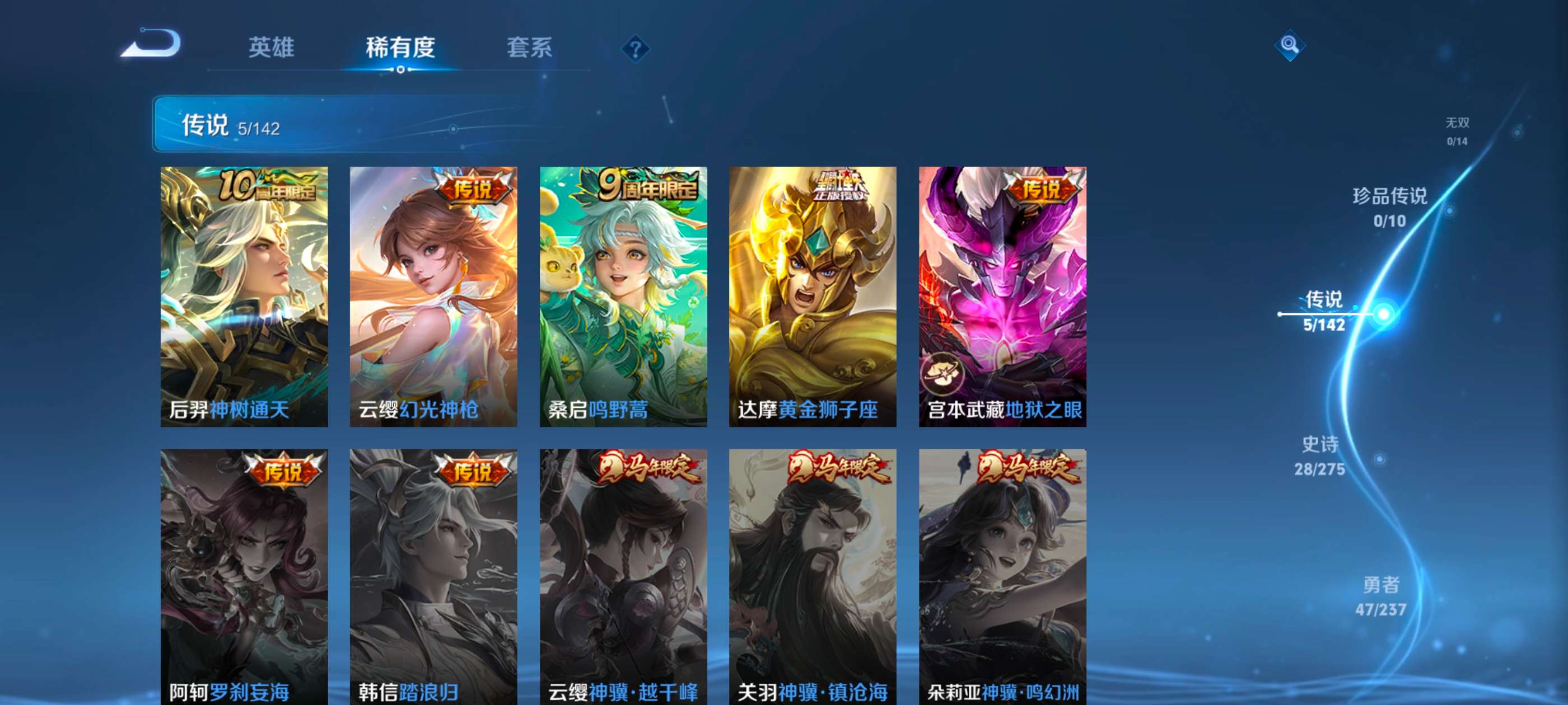 贵族等级:v4皮肤数:96传说品质5 英雄数:98