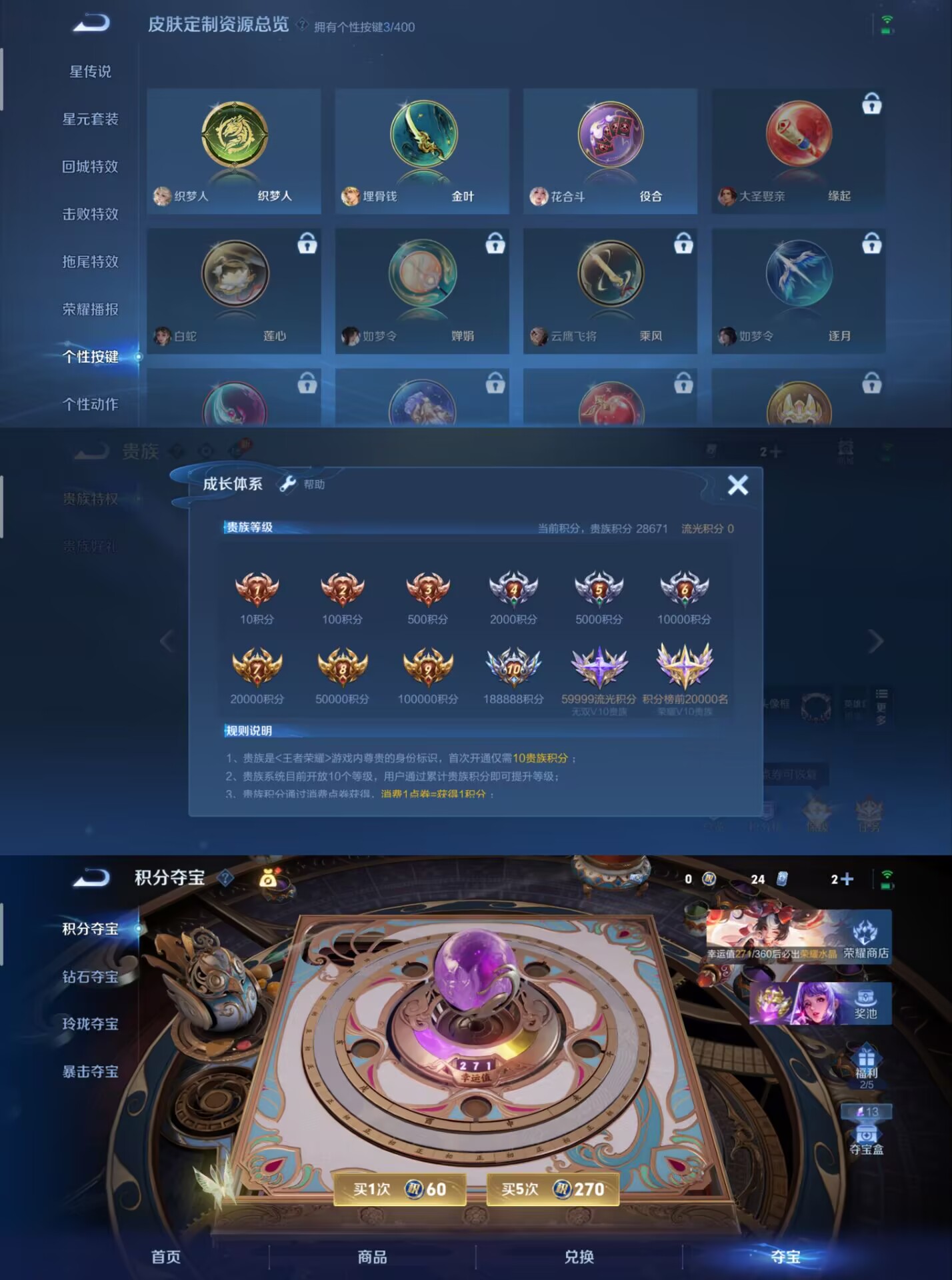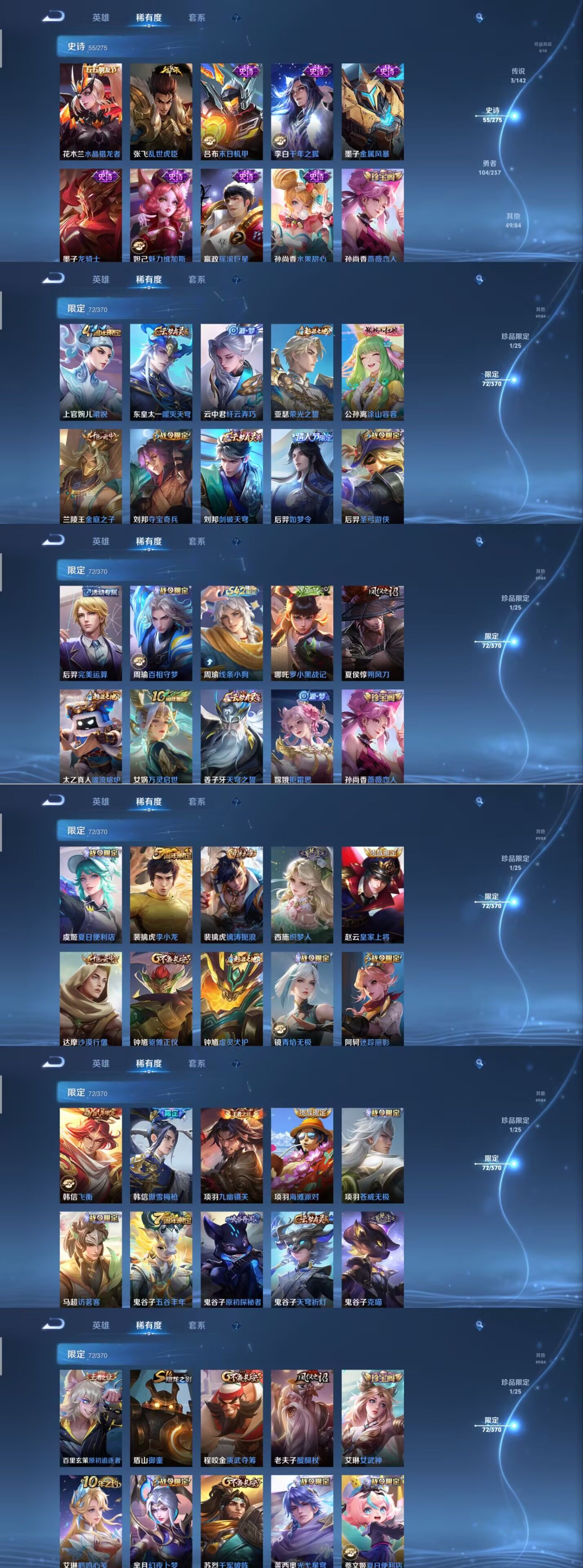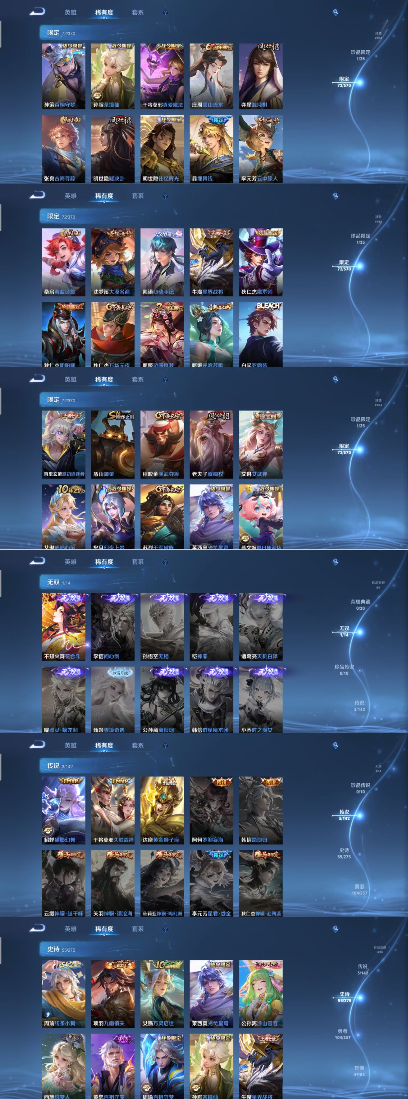 贵族等级:v7皮肤数:212情人节限定1 传说品质3 无双1 生肖限定1 英雄数:125