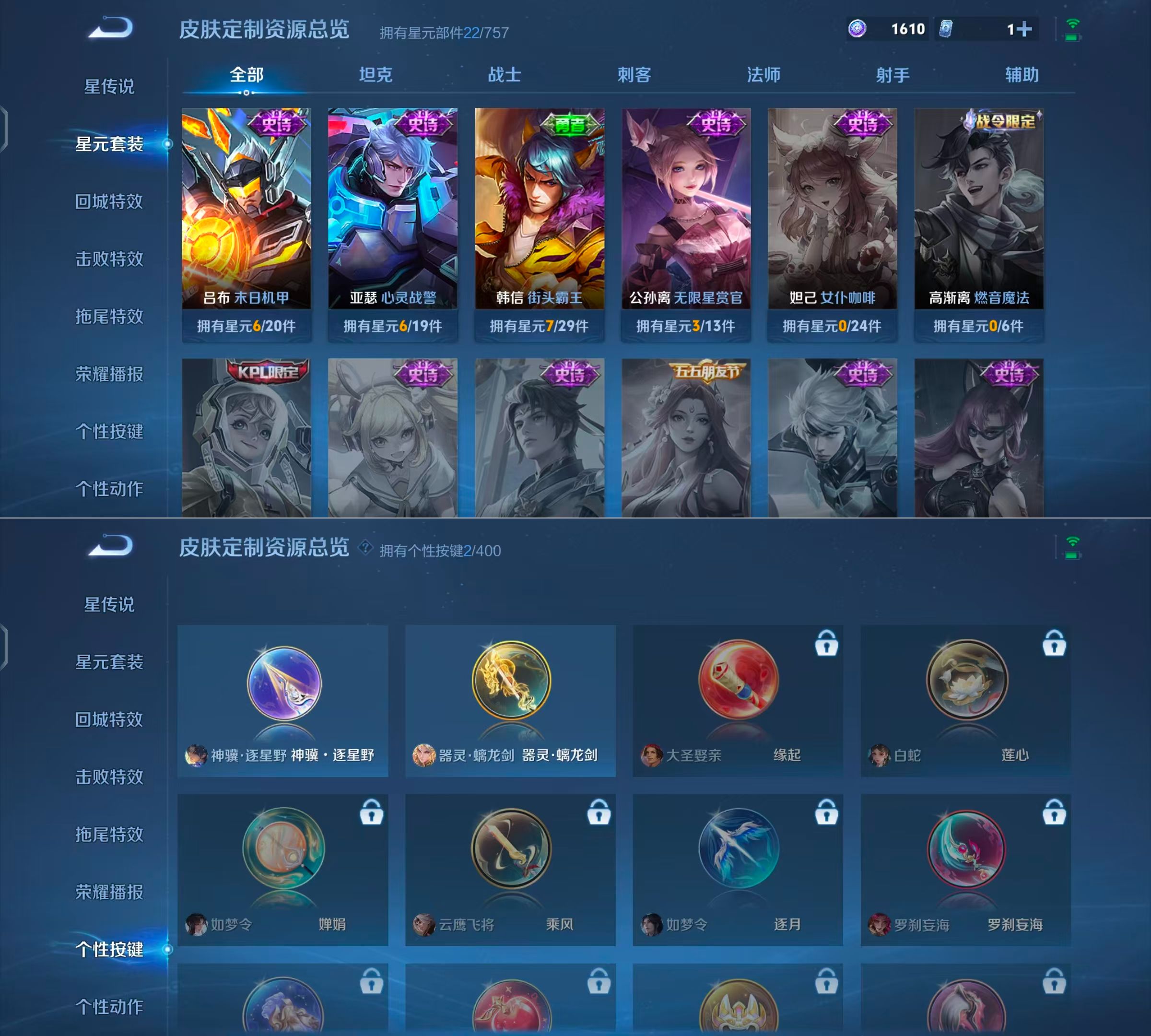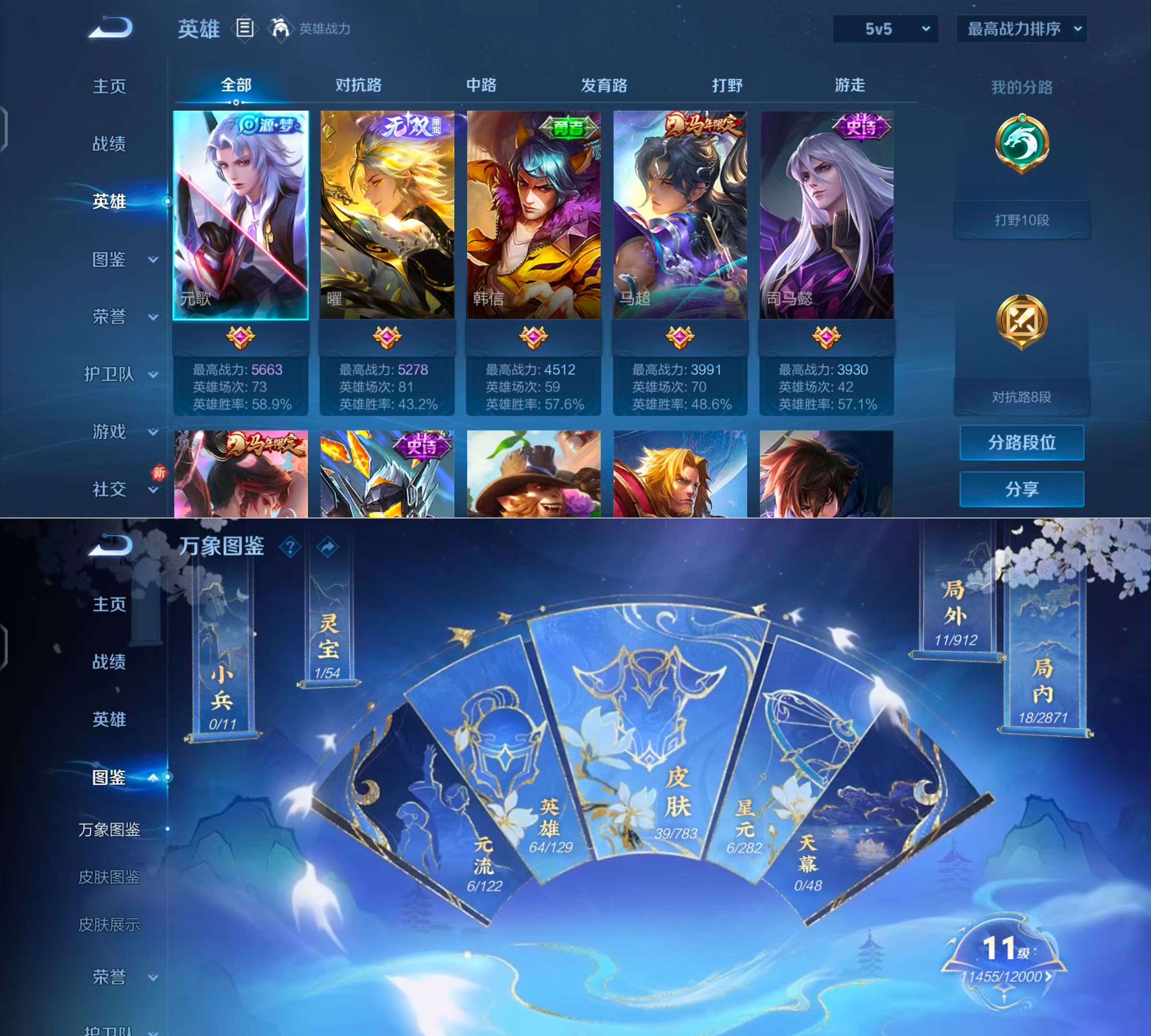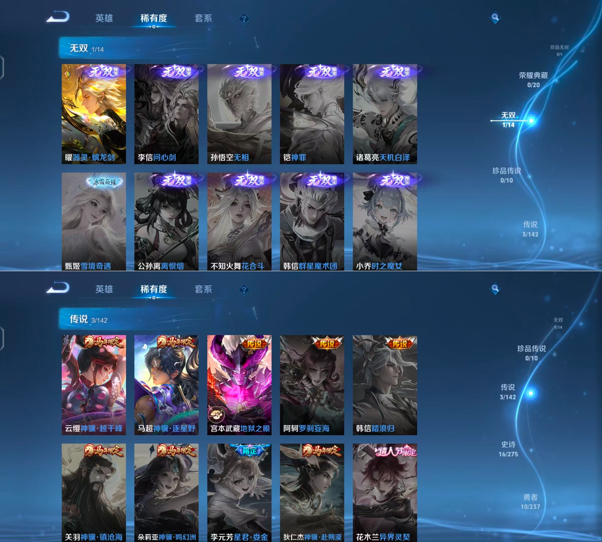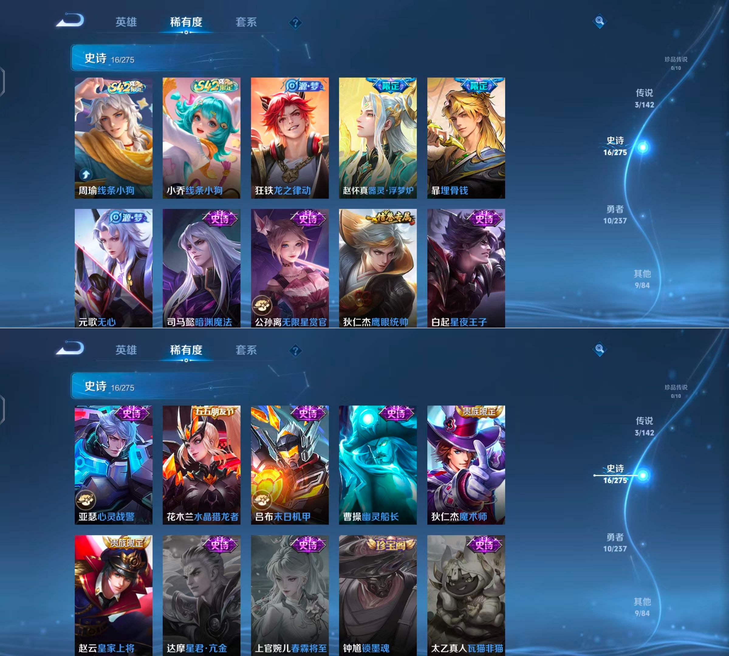 贵族等级:v6皮肤数:39传说品质3 生肖限定2 无双1 英雄数:64