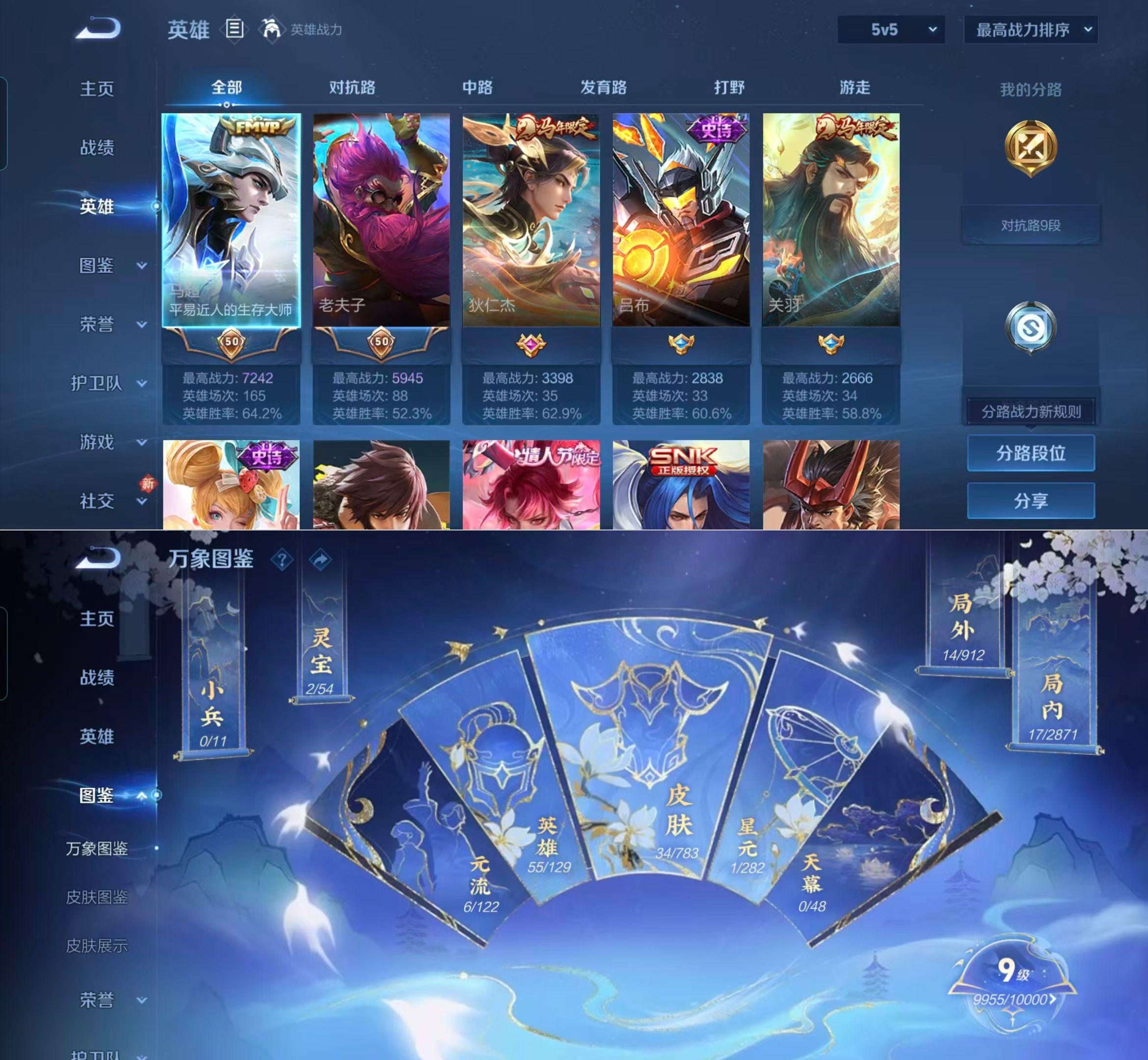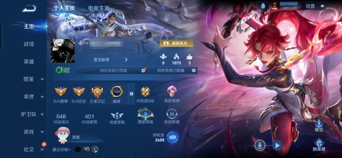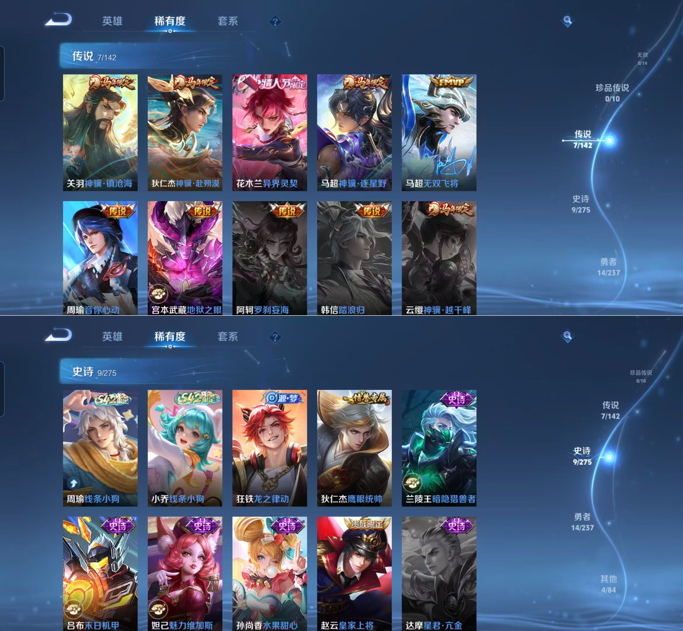 贵族等级:v5皮肤数:34传说品质7 生肖限定3 情人节限定1 英雄数:55