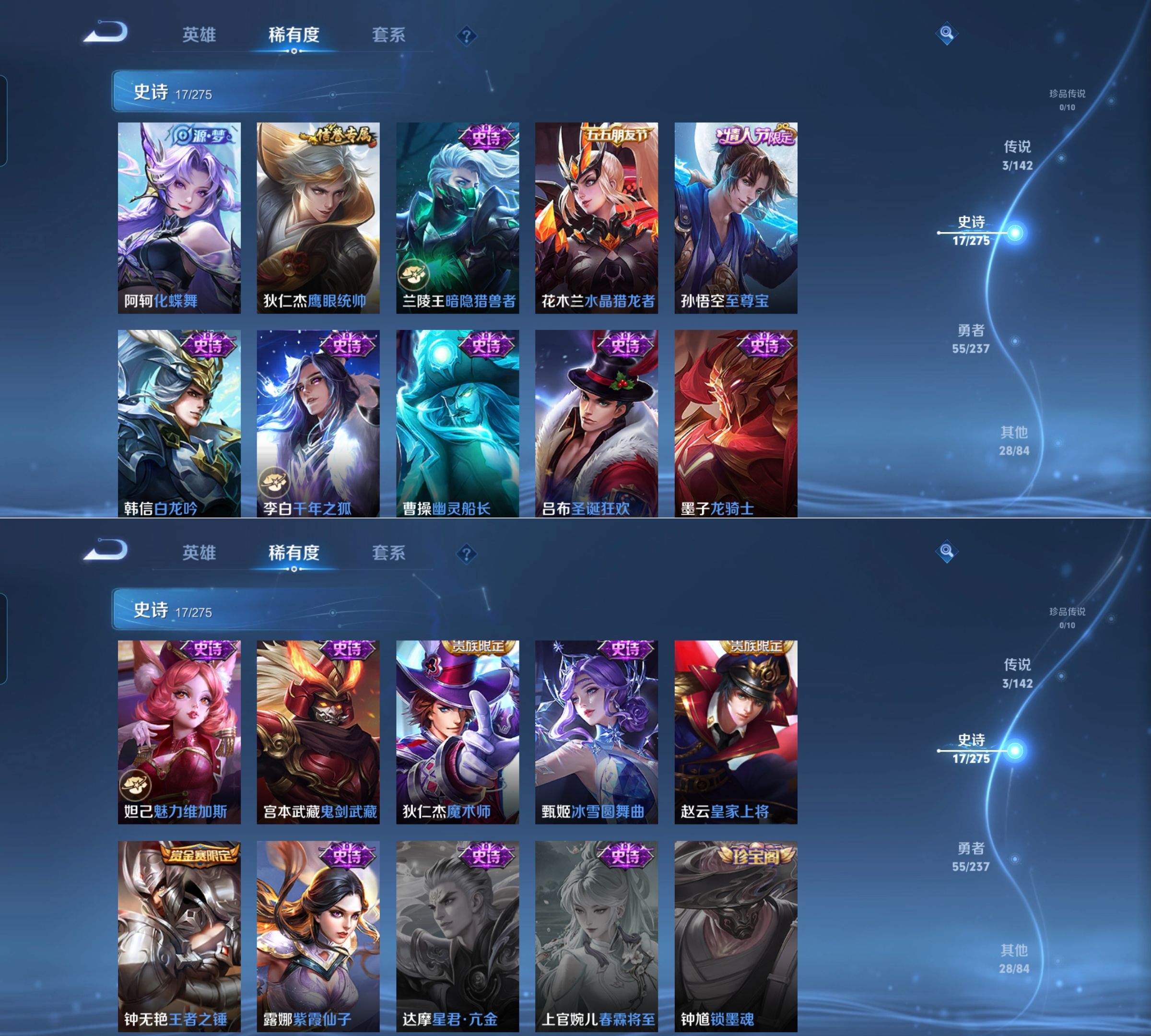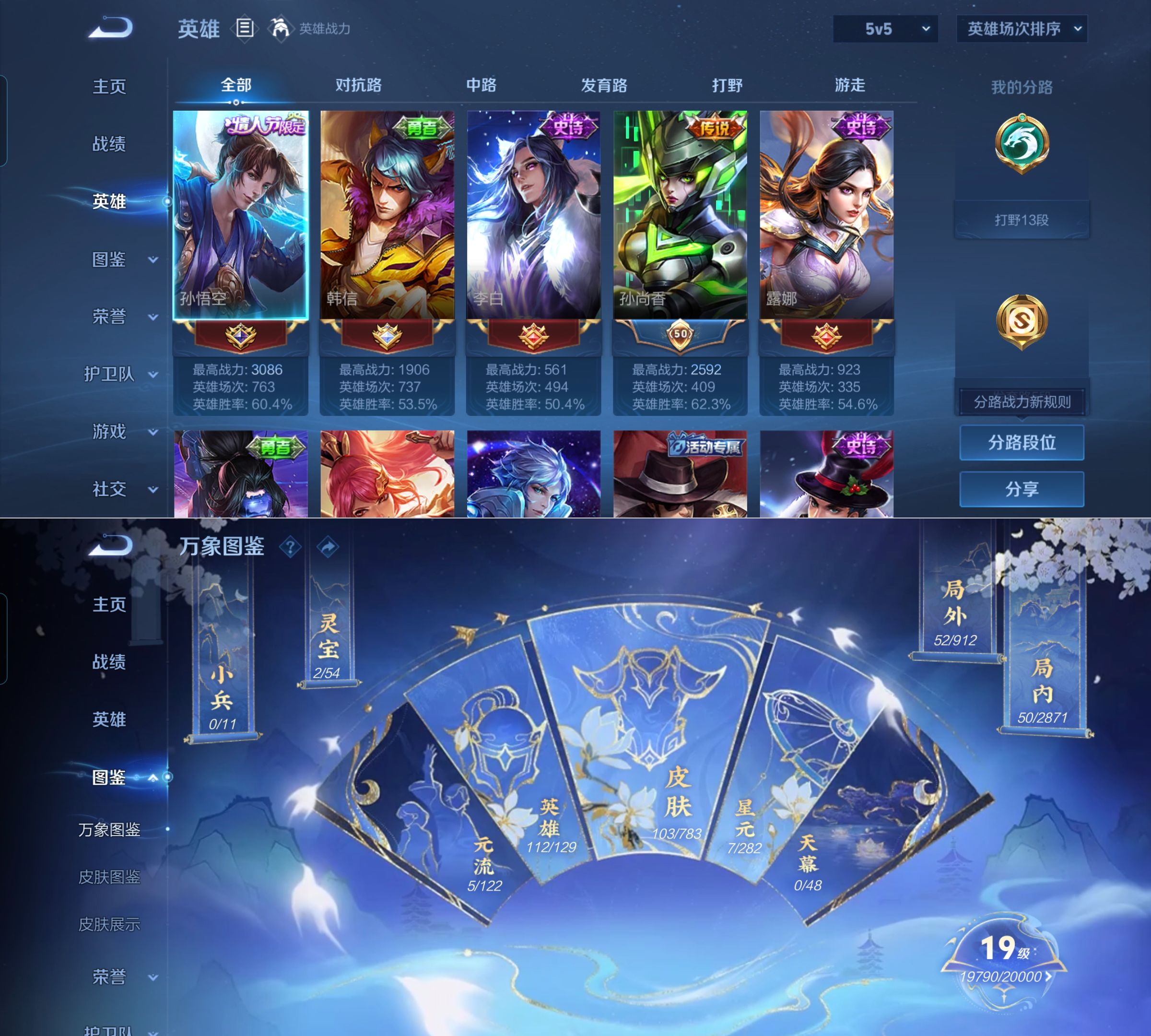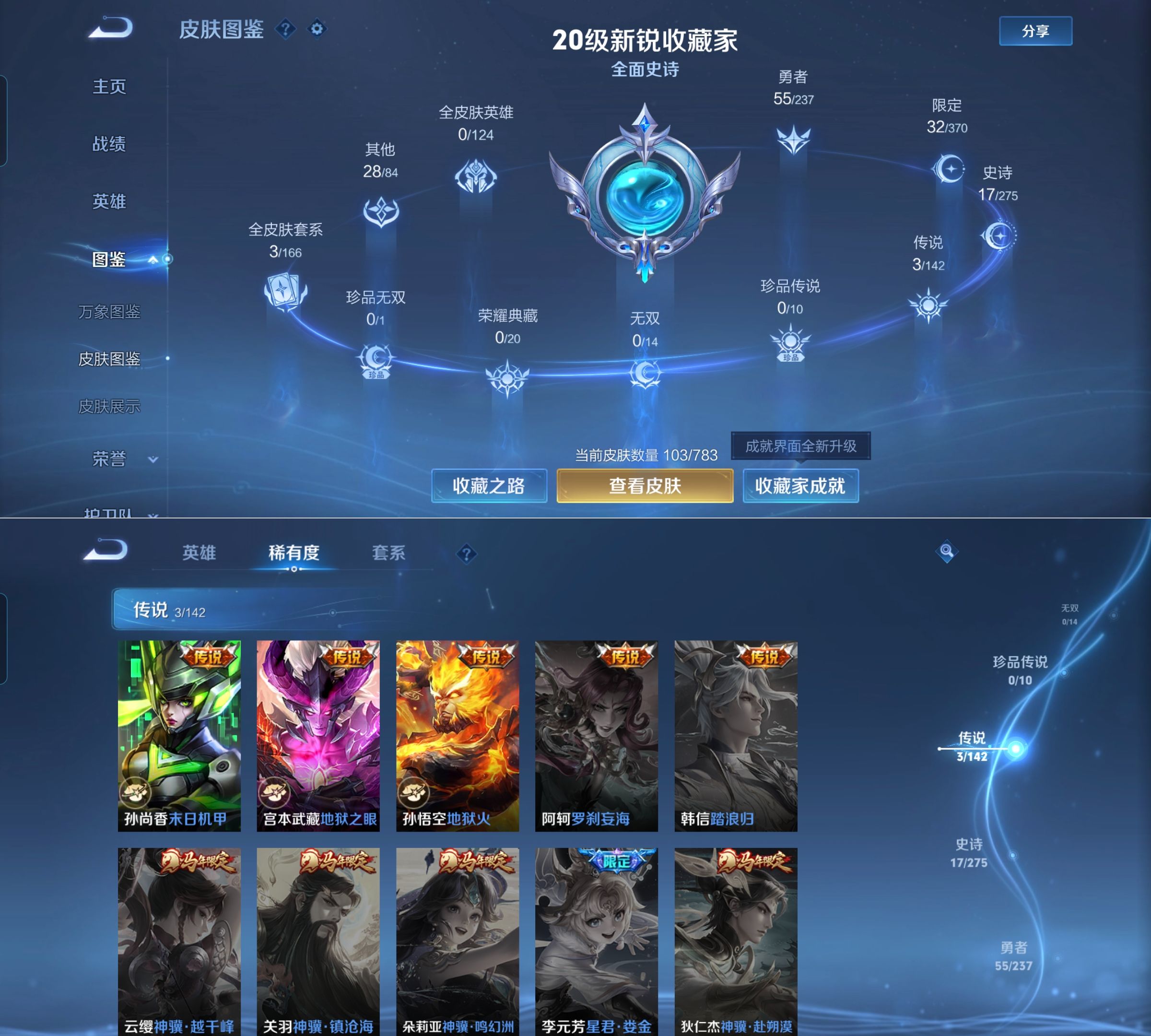 贵族等级:v7皮肤数:106情人节限定1 传说品质3 英雄数:112