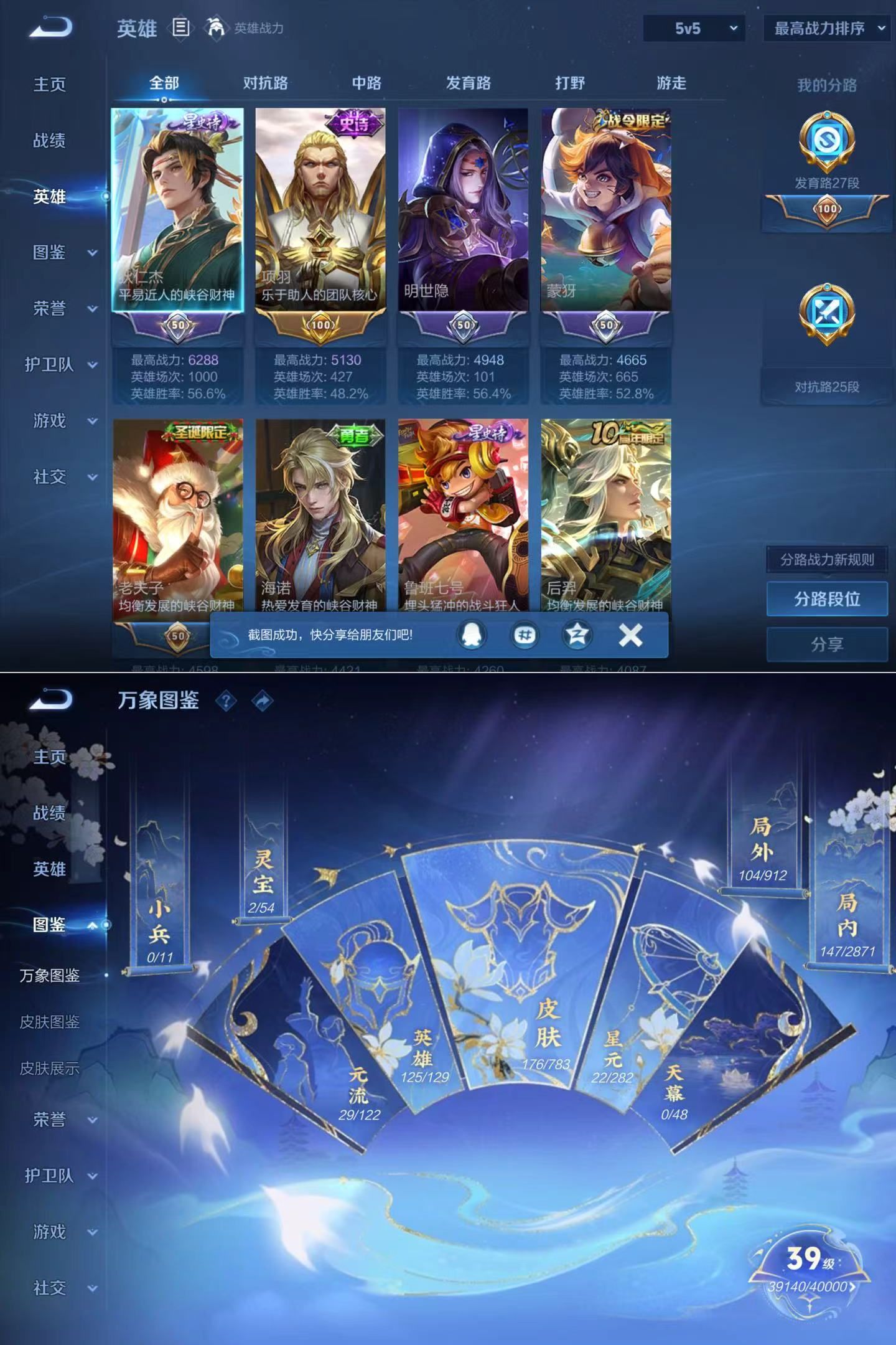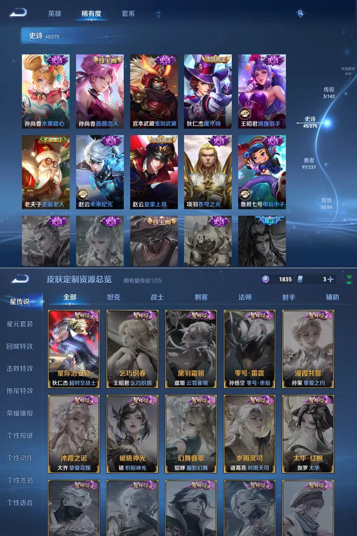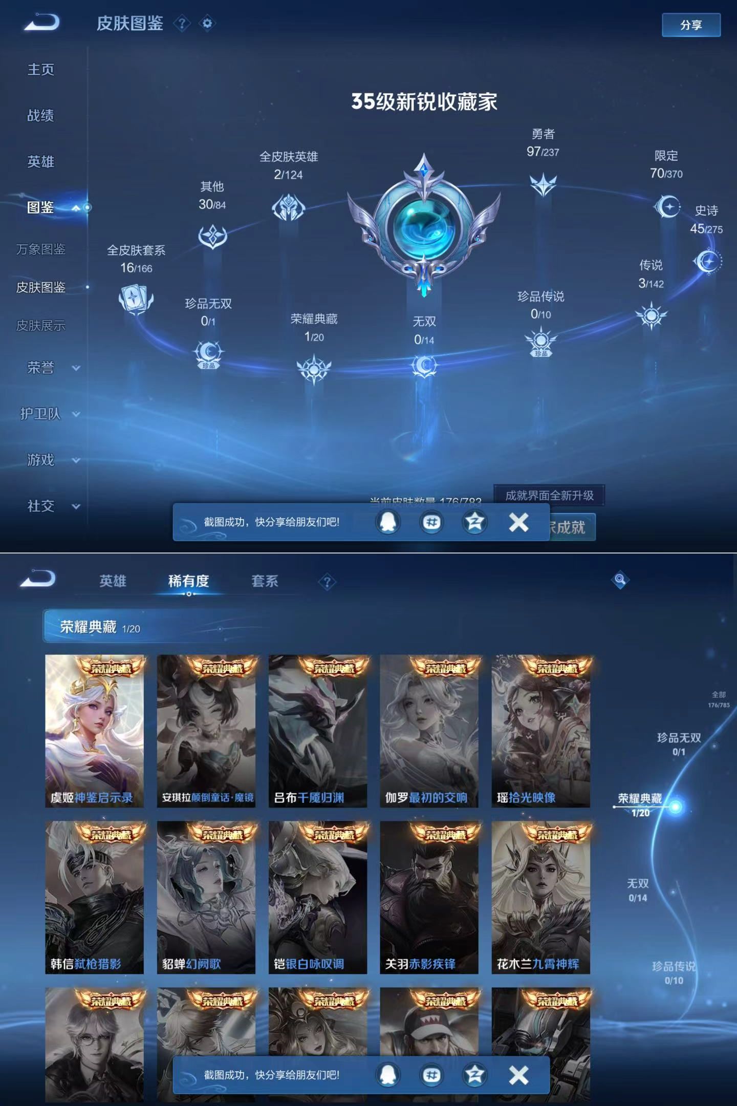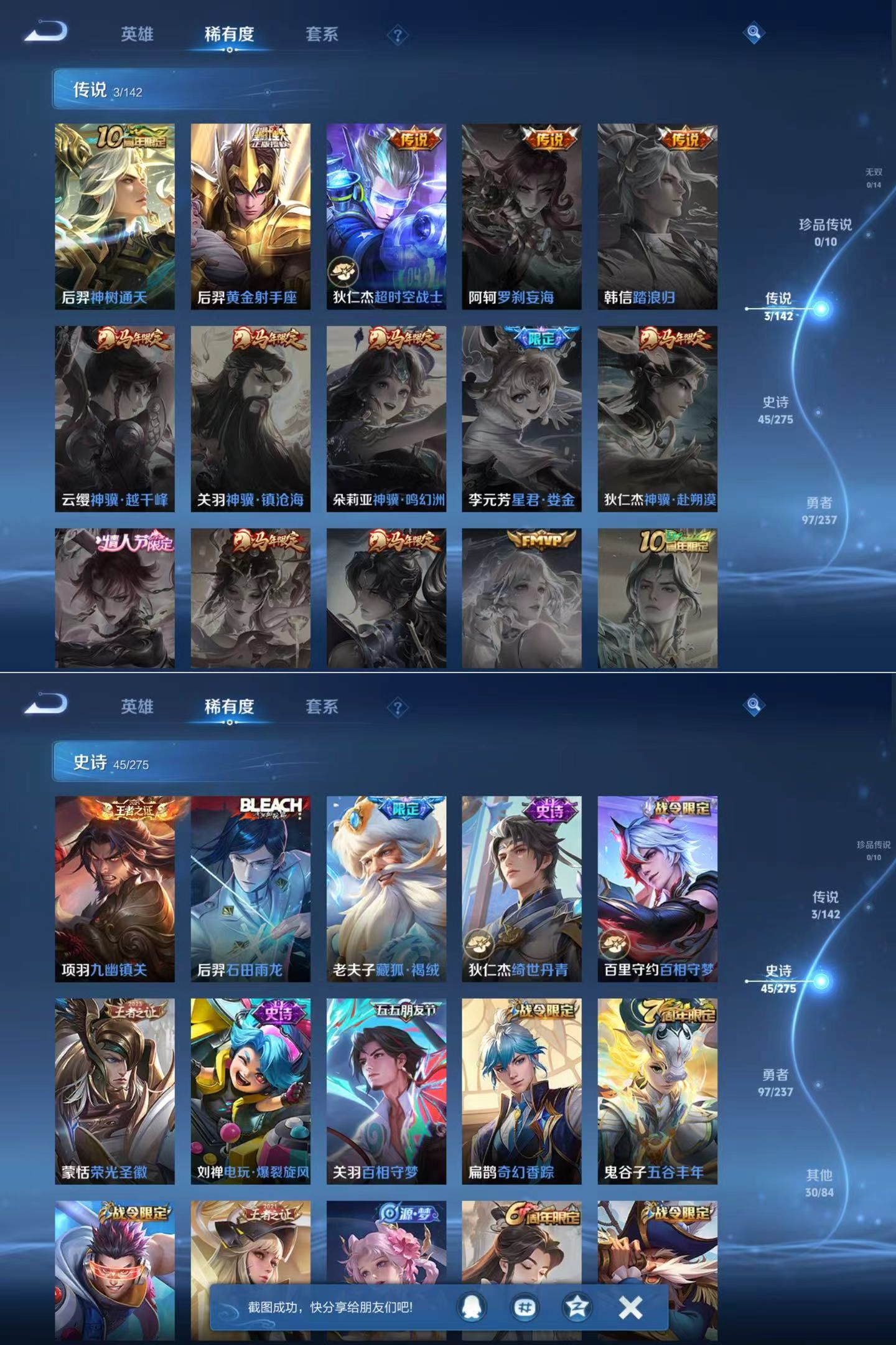 贵族等级:v7皮肤数:176生肖限定1 传说品质3 情人节限定1 荣耀典藏1 英雄数:125