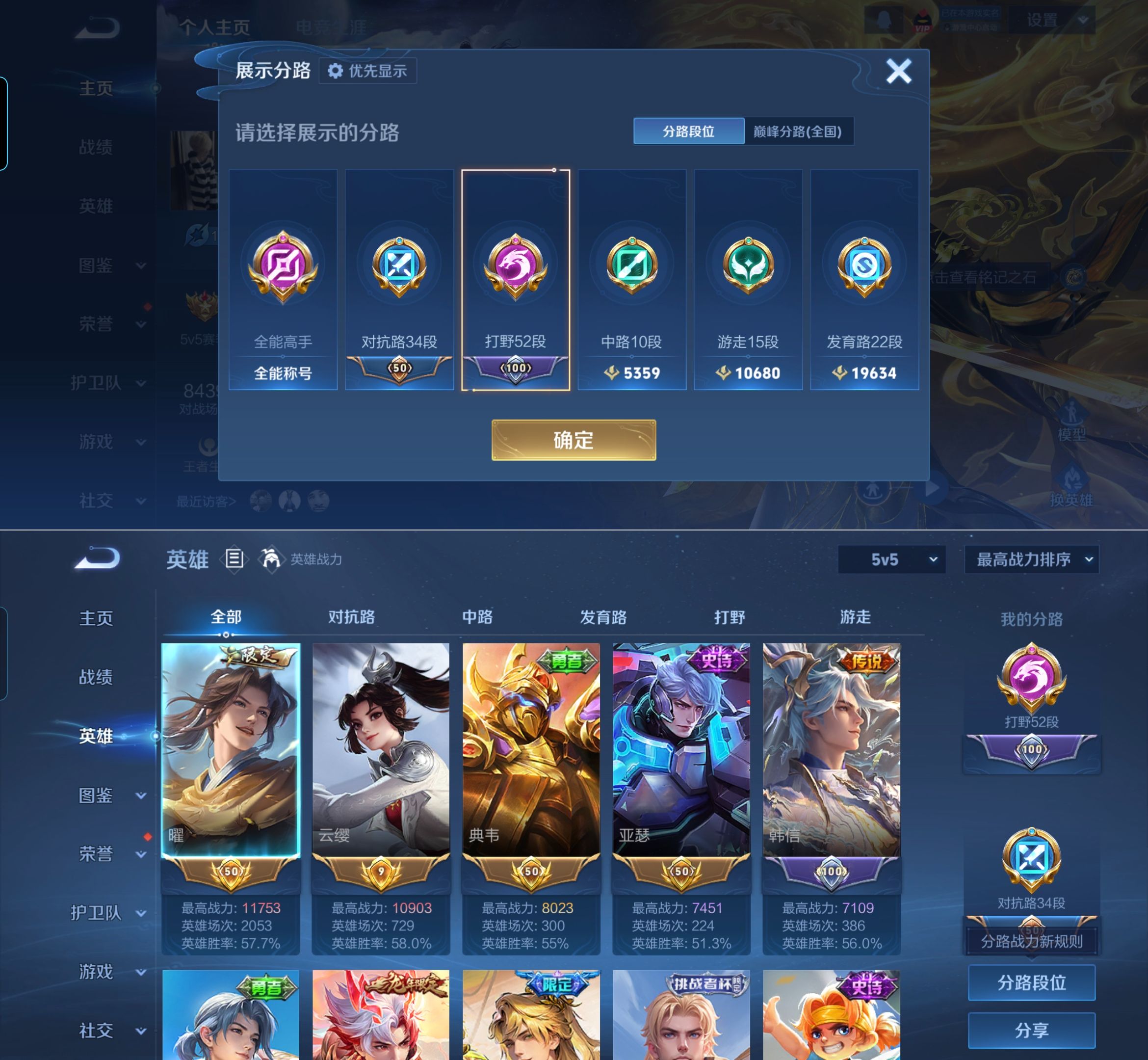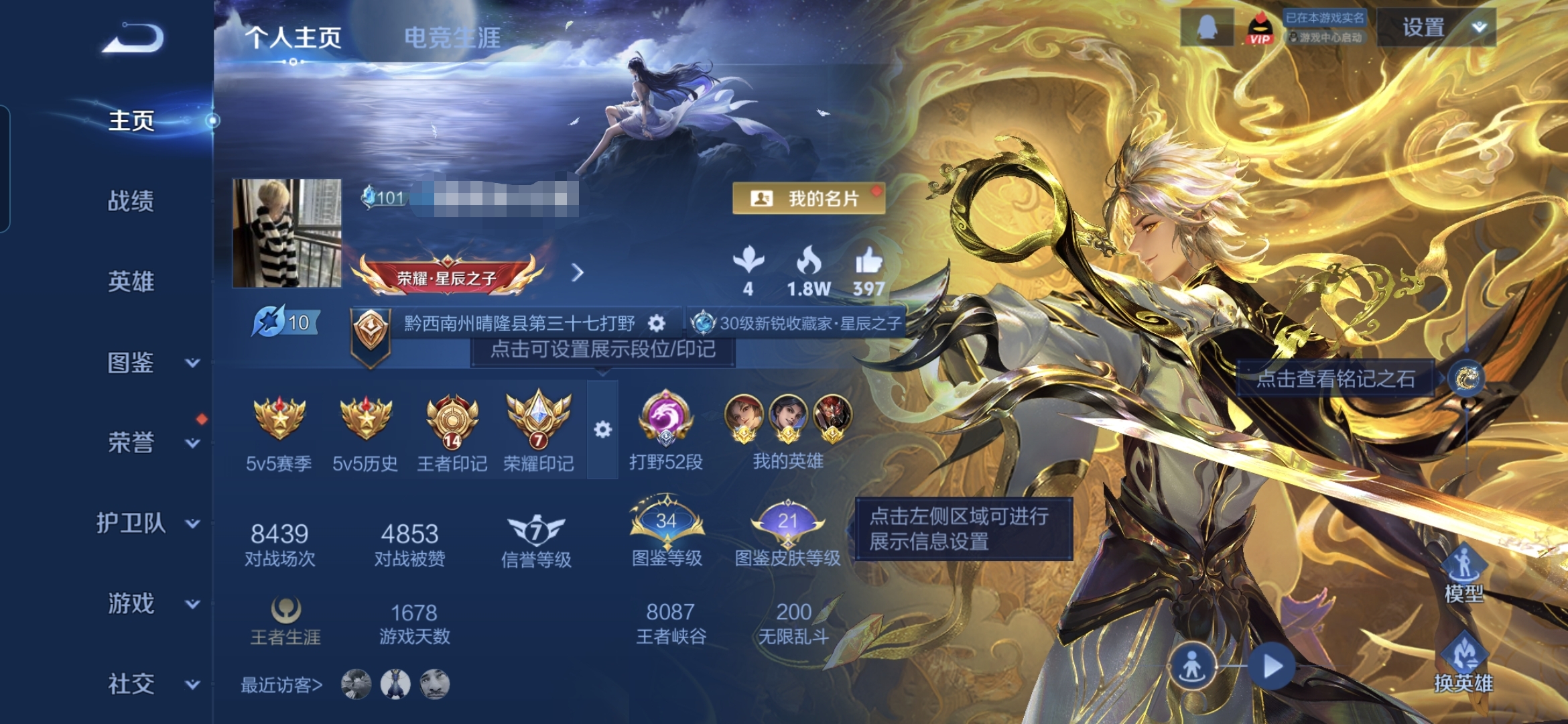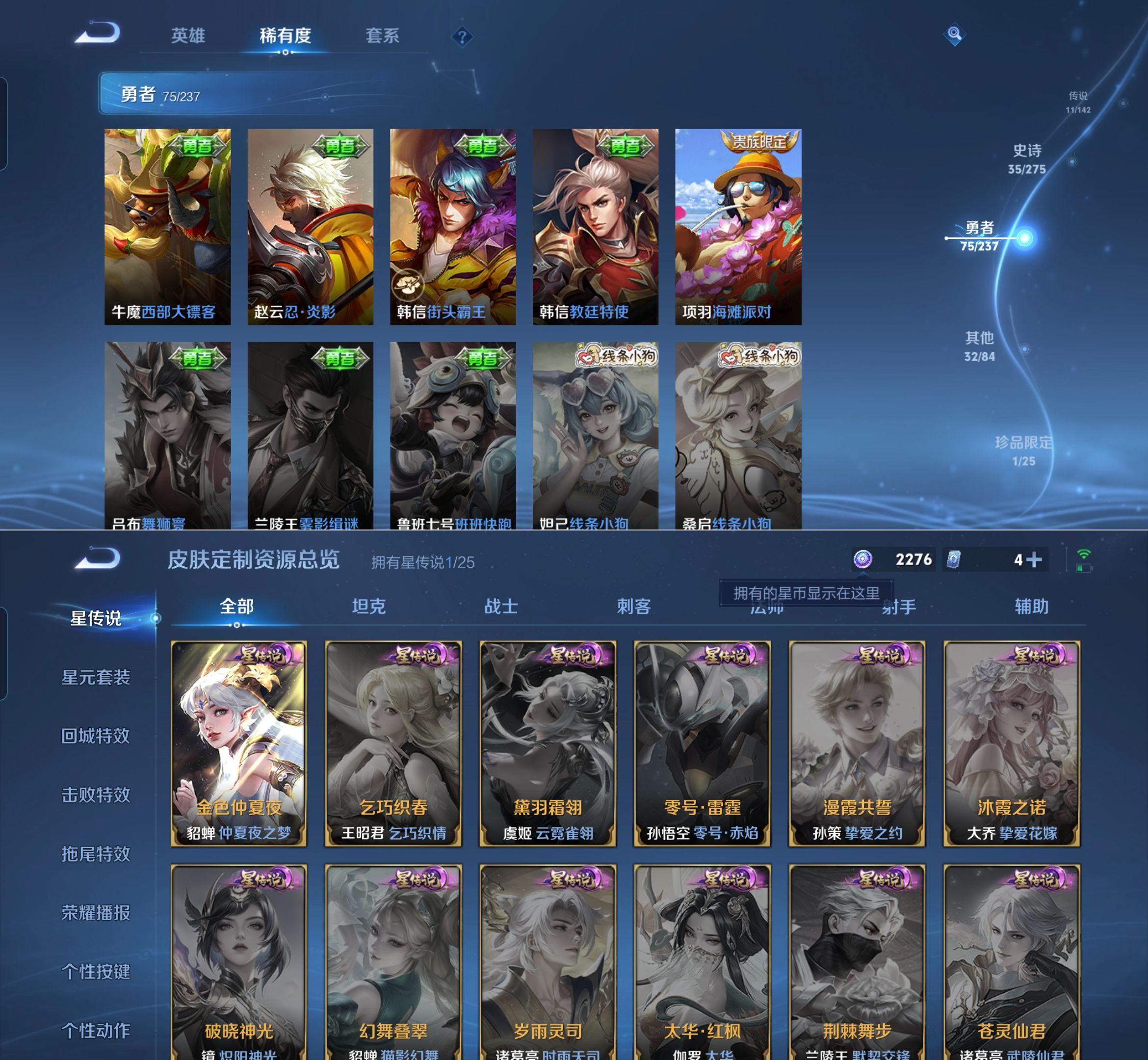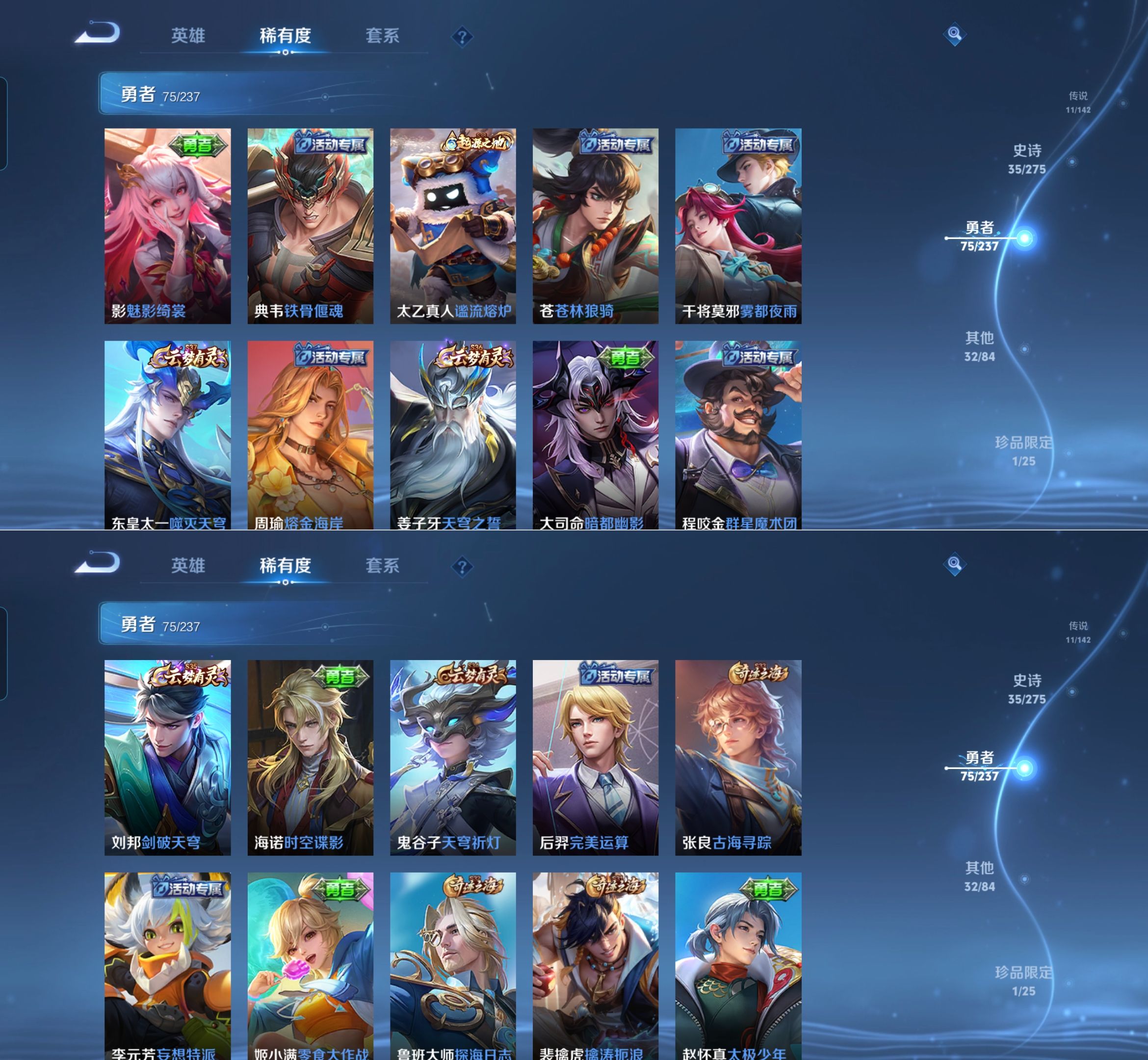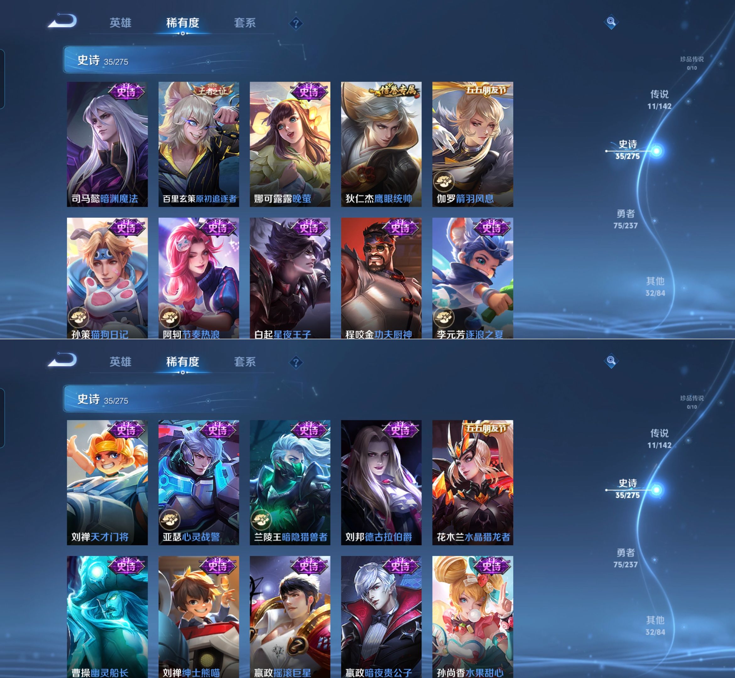 贵族等级:v7皮肤数:154传说品质11 生肖限定4 无双1 英雄数:127