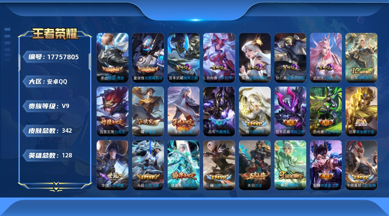 传说品质_后羿_黄金射手座传说品质_后羿_神树通天传说品质_关羽_武圣传说品质_诸葛亮_时雨天司传说品质_孙悟空_零号·赤焰传说品质_孙悟空_地狱火传说品质_吕布_天魔缭乱传说品质_马超_无双飞将传说品质_武则天_海洋之心传说品质_干将莫邪_久胜战神传说品质_宫本武藏_地狱之眼传说品质_周瑜_音你心动传说品质_花木兰_冠军飞将传说品质_镜_炽阳神光传说品质_貂蝉_仲夏夜之梦传说品质_李信_一念神魔传说品质_孙尚香_末日机甲传说品质_小乔_音你心动传说品质_桑启_鸣野蒿传说品质_东皇太一_灼幽烈阳传说品质_张良_黄金白羊座传说品质_李白_凤求凰传说品质_曜_云鹰飞将传说品质_曜_李逍遥 传说品质_狄仁杰_超时空战士传说品质_达摩_黄金狮子座传说品质_铠_绛天战甲传说品质_虞姬_启明星使传说品质_李元芳_飞鸢探春传说品质_百里玄策_白虎志