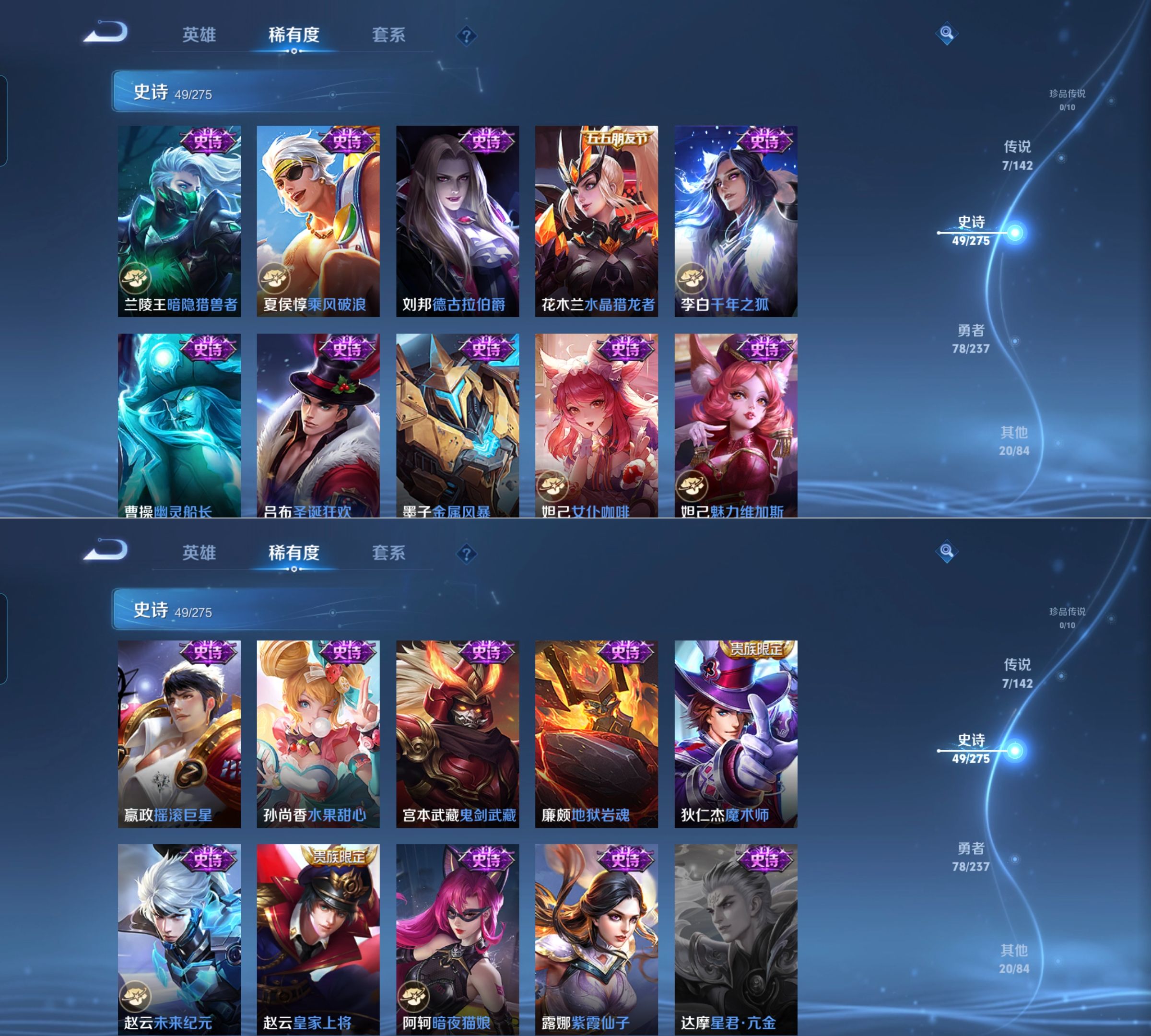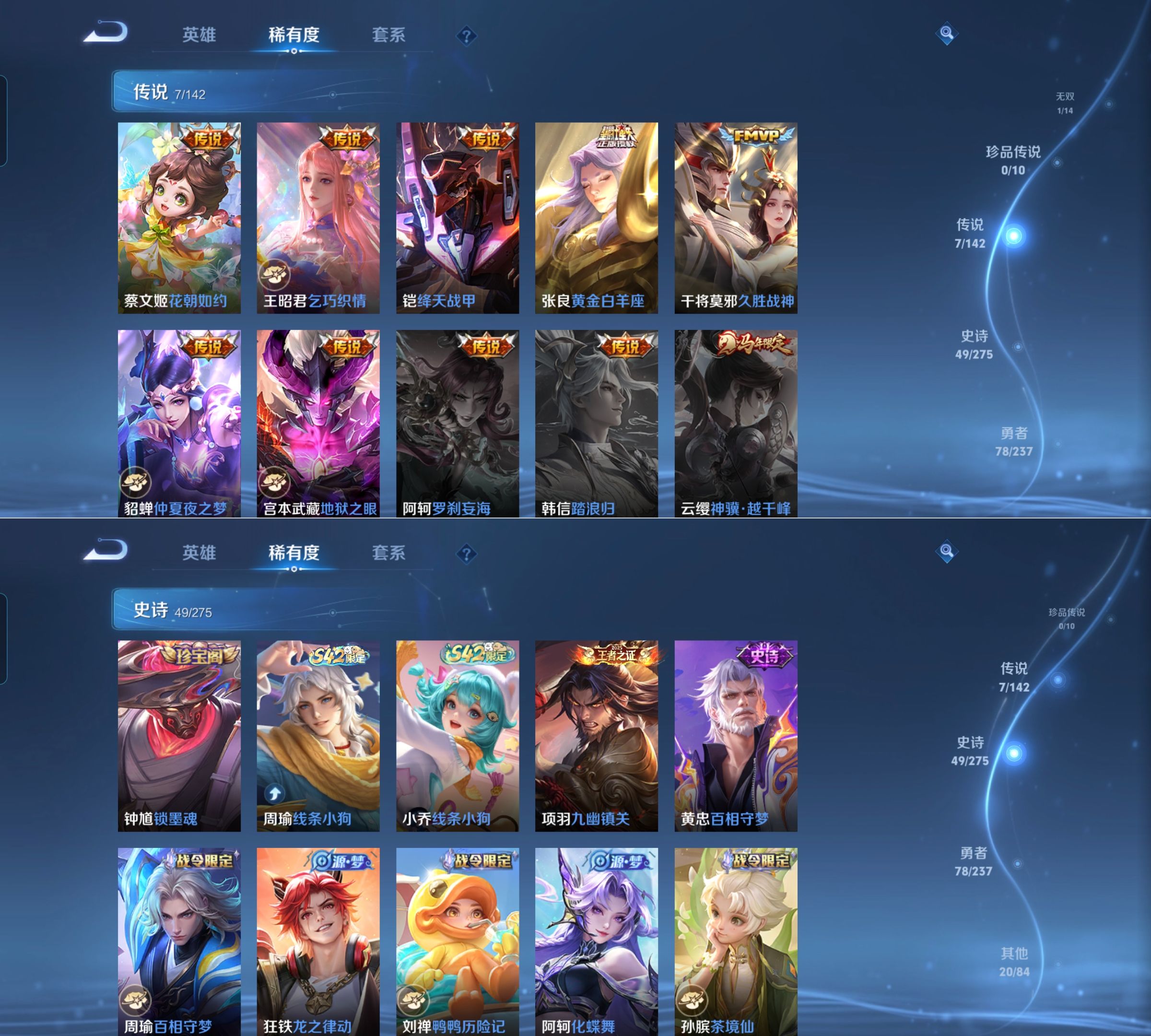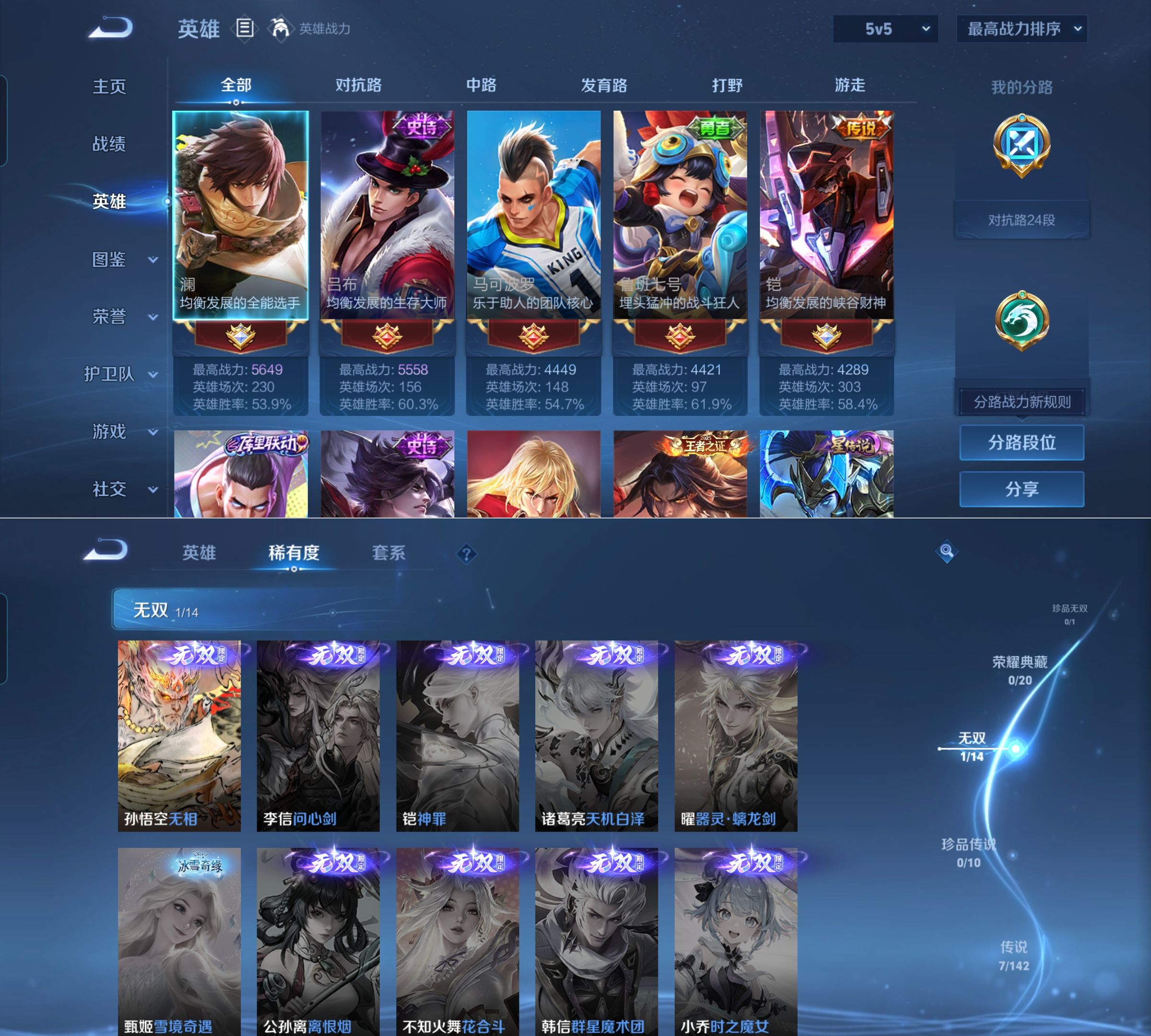 贵族等级:v6皮肤数:155无双1 传说品质7 英雄数:126