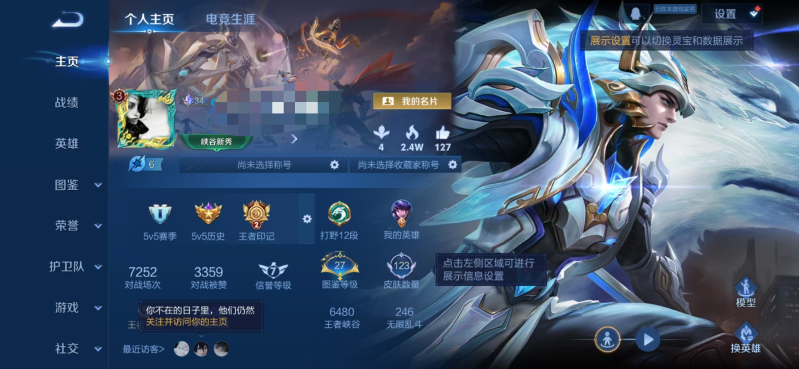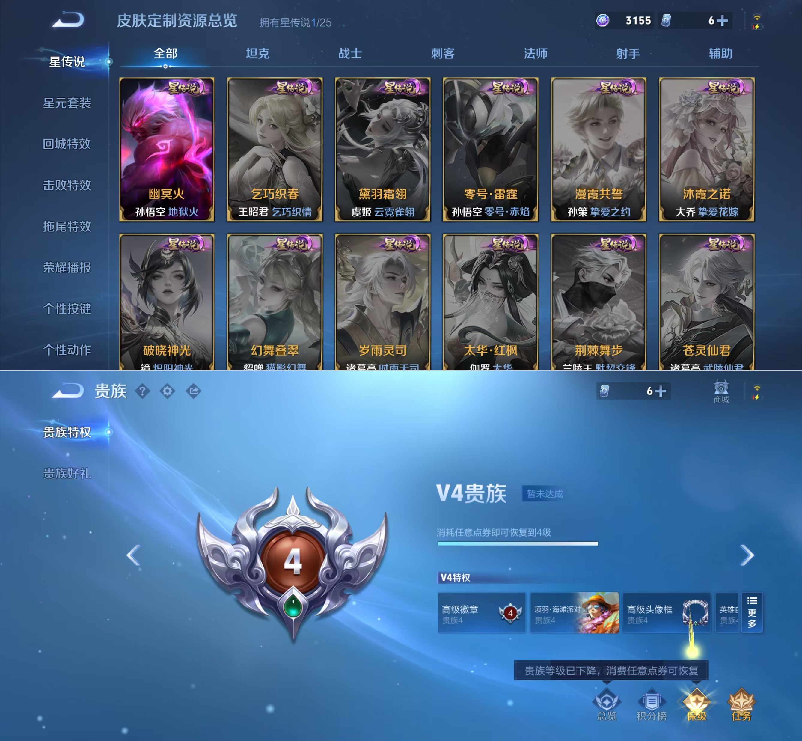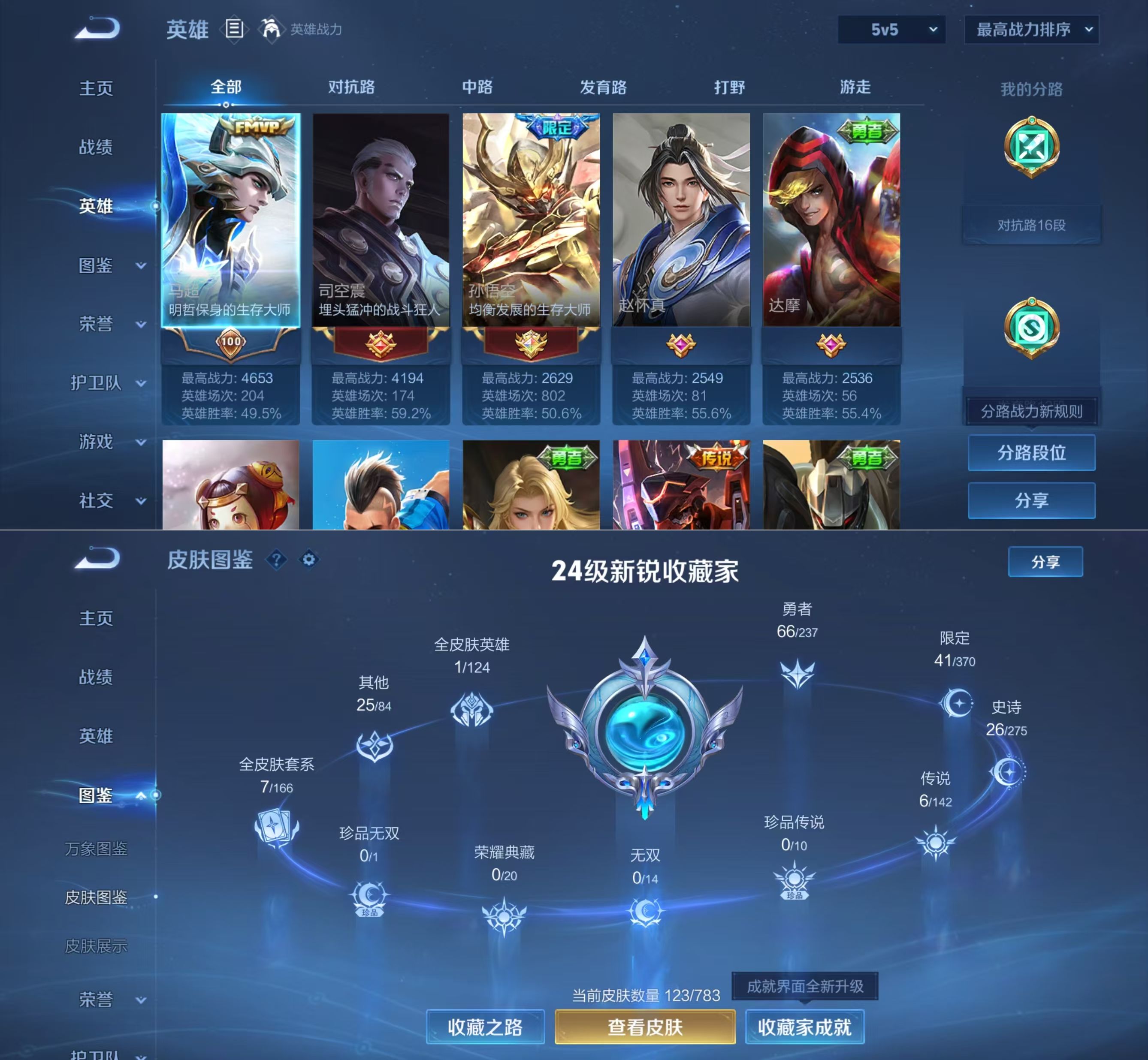 贵族等级:v4皮肤数:123传说品质6 英雄数:126