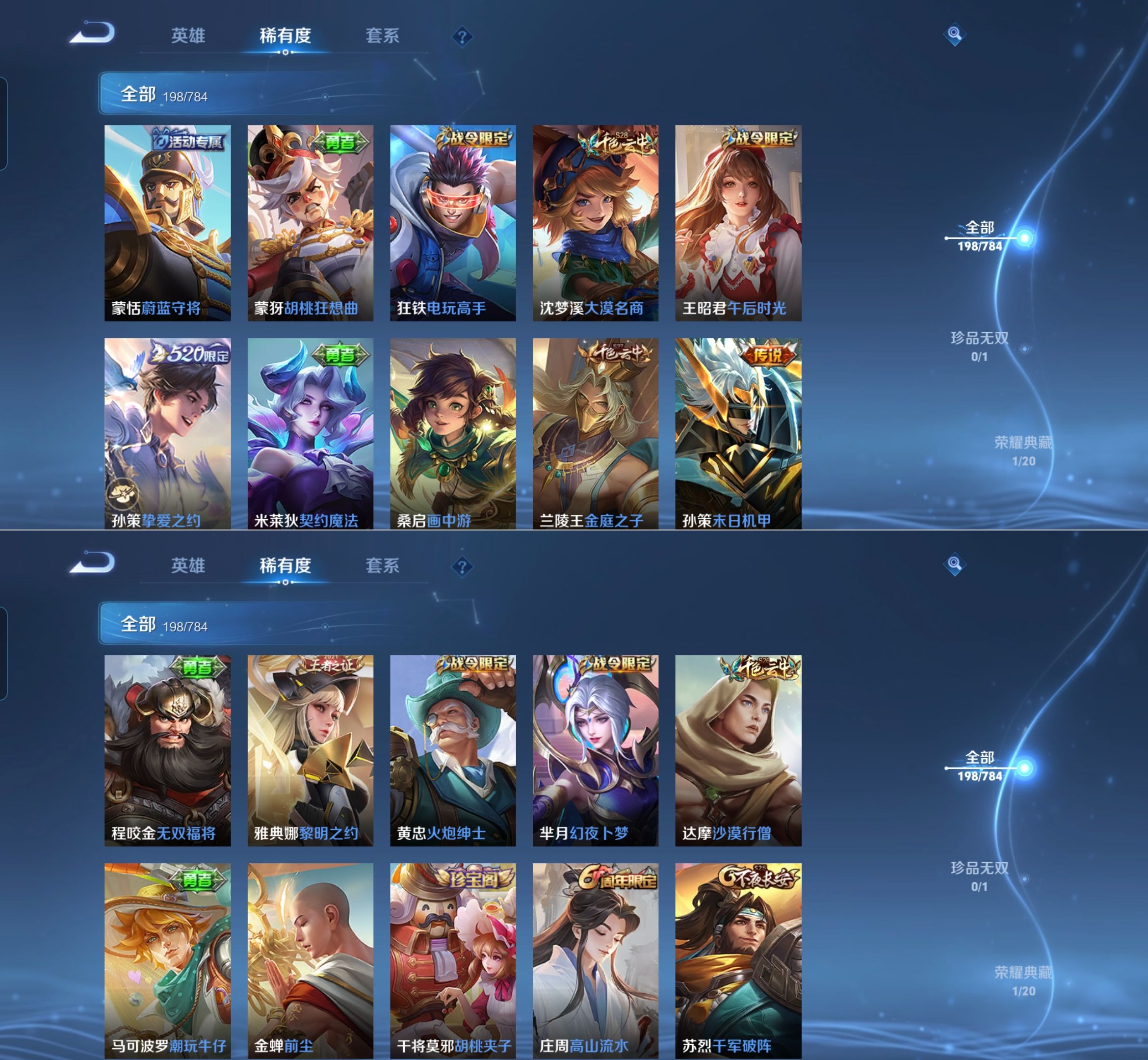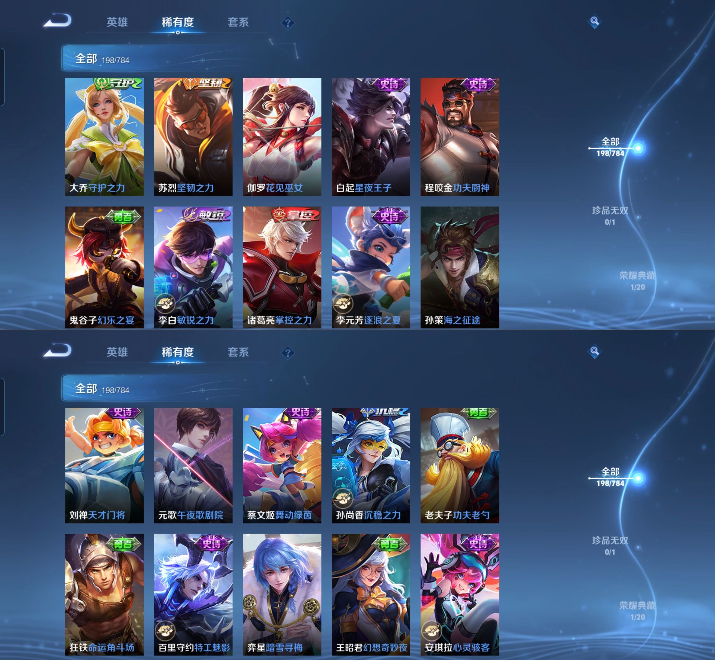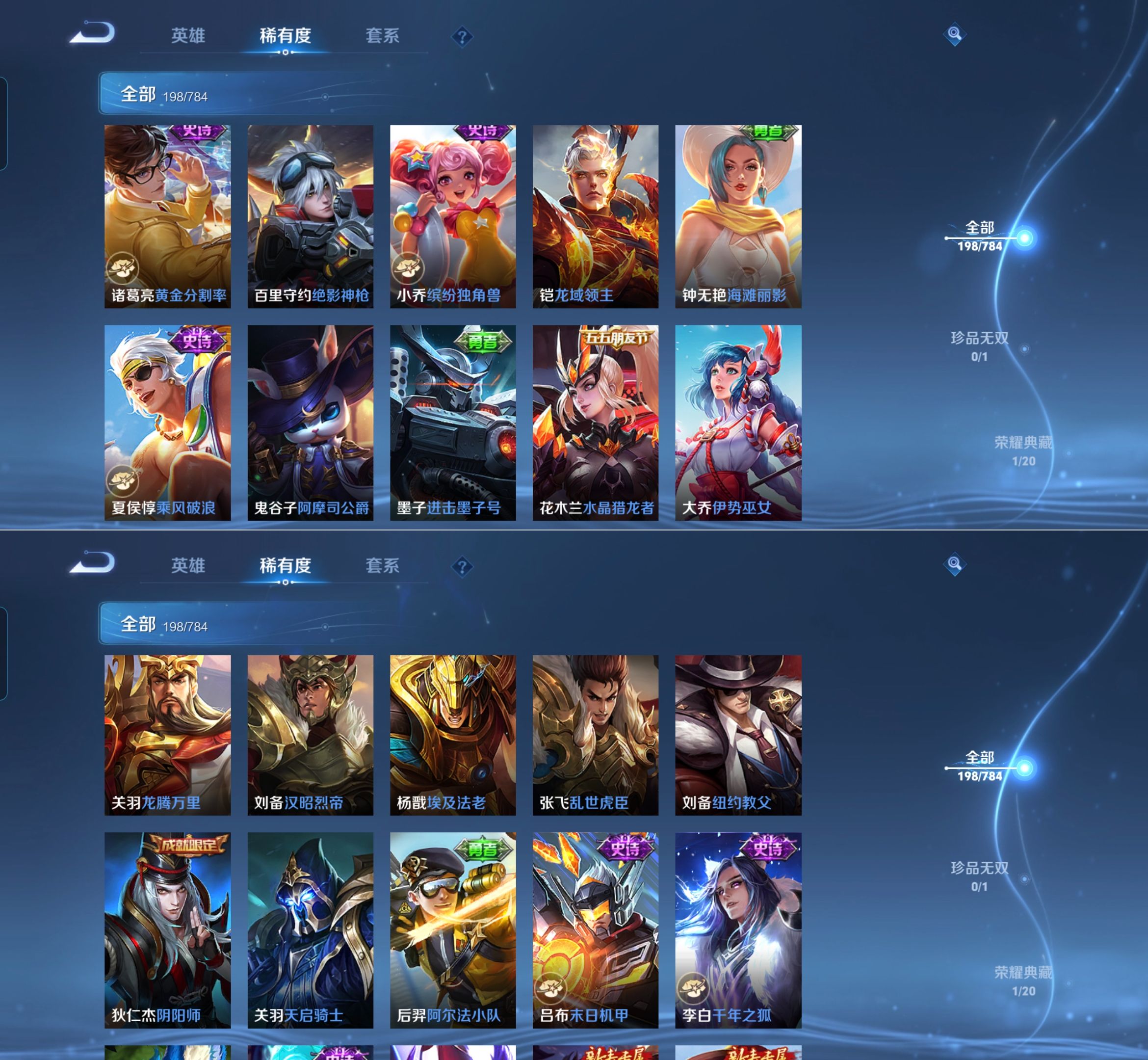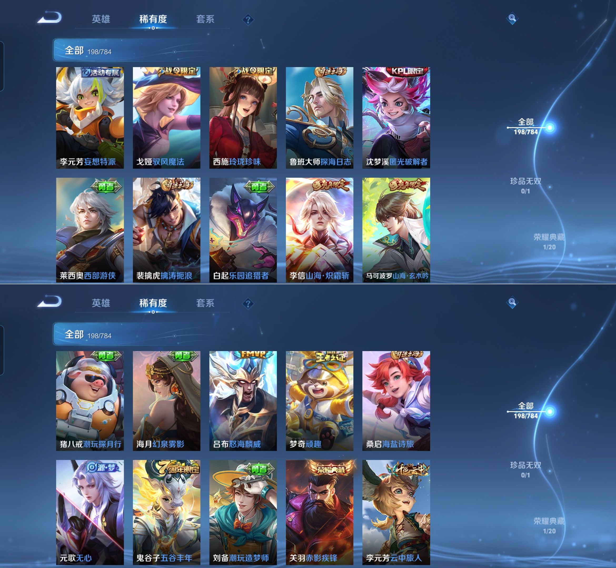 贵族等级:v7皮肤数:201荣耀典藏1 传说品质8 生肖限定2 英雄数:127