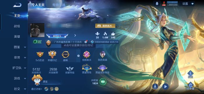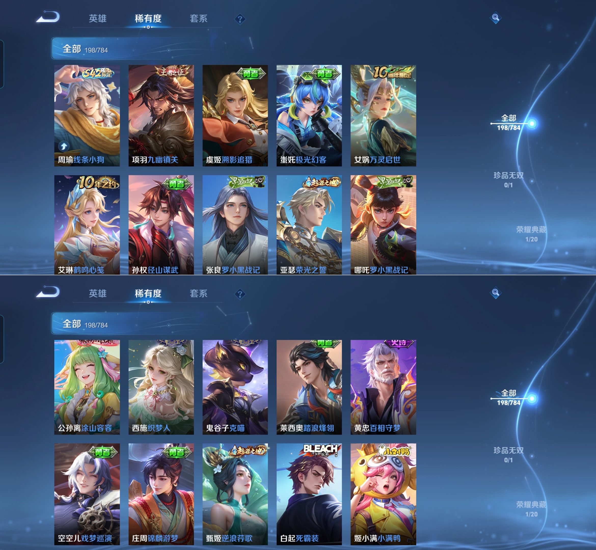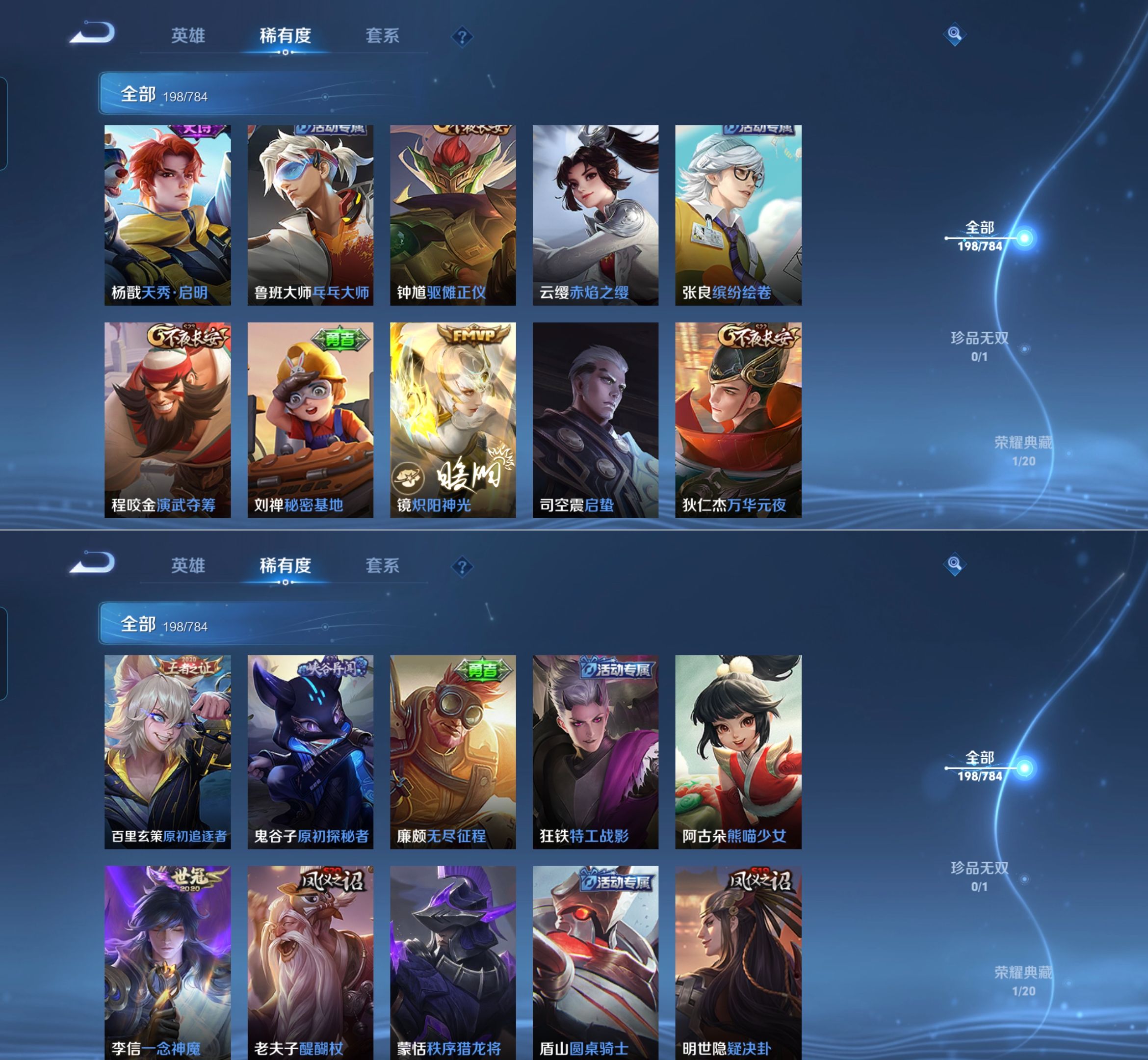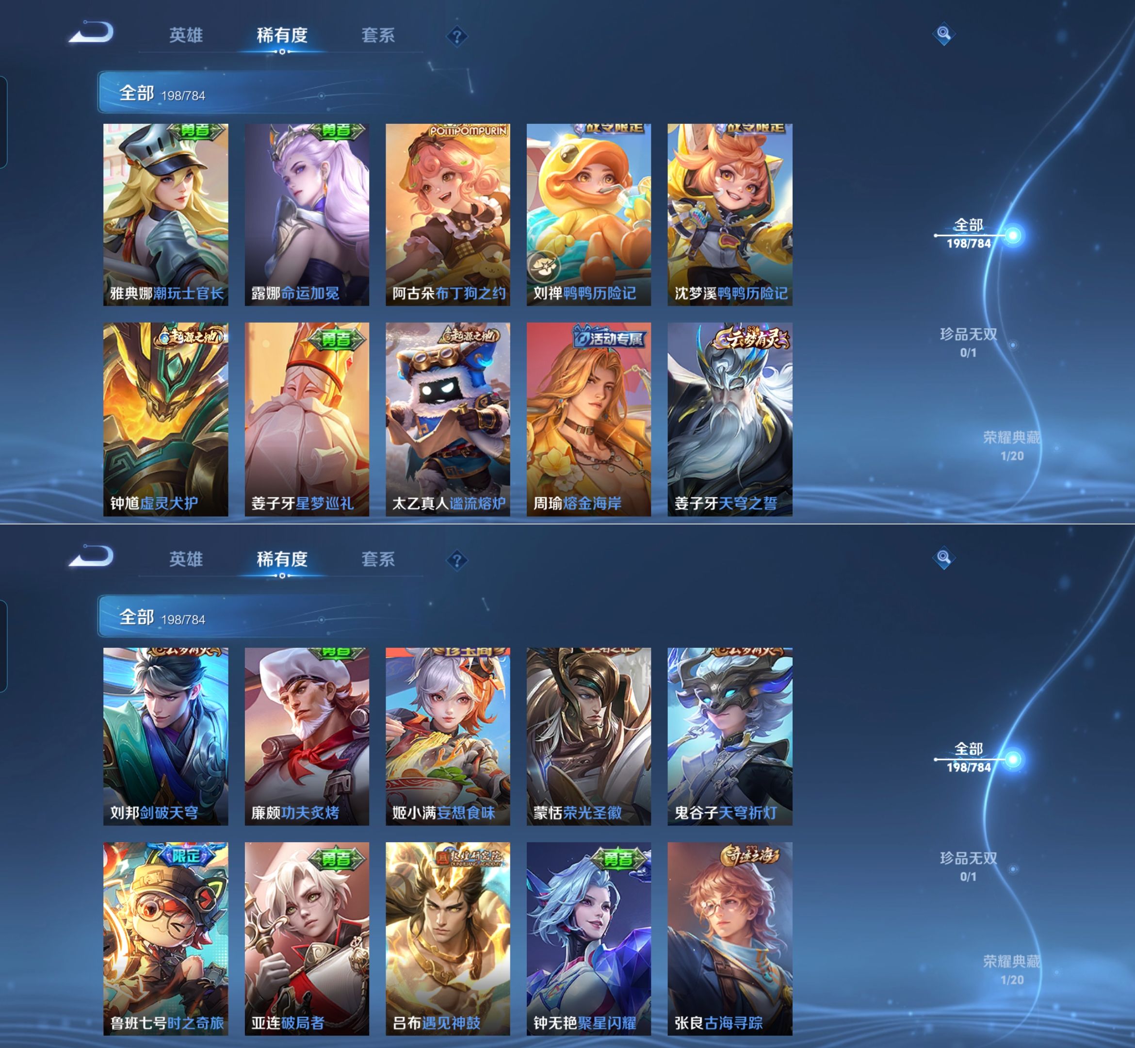 贵族等级:v7皮肤数:201荣耀典藏1 传说品质8 生肖限定2 英雄数:127