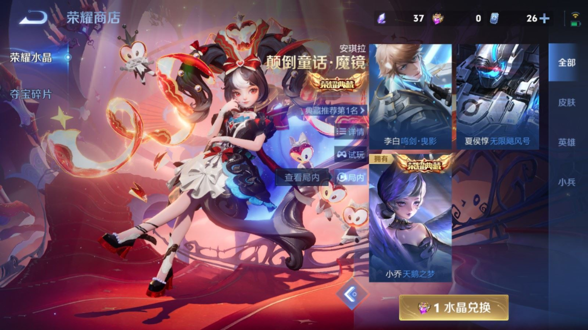 荣耀典藏_孙悟空_全息碎影荣耀典藏_夏侯惇_无限飓风号荣耀典藏_小乔_天鹅之梦荣耀典藏_李白_鸣剑·曳影荣耀典藏_韩信_弑枪猎影
