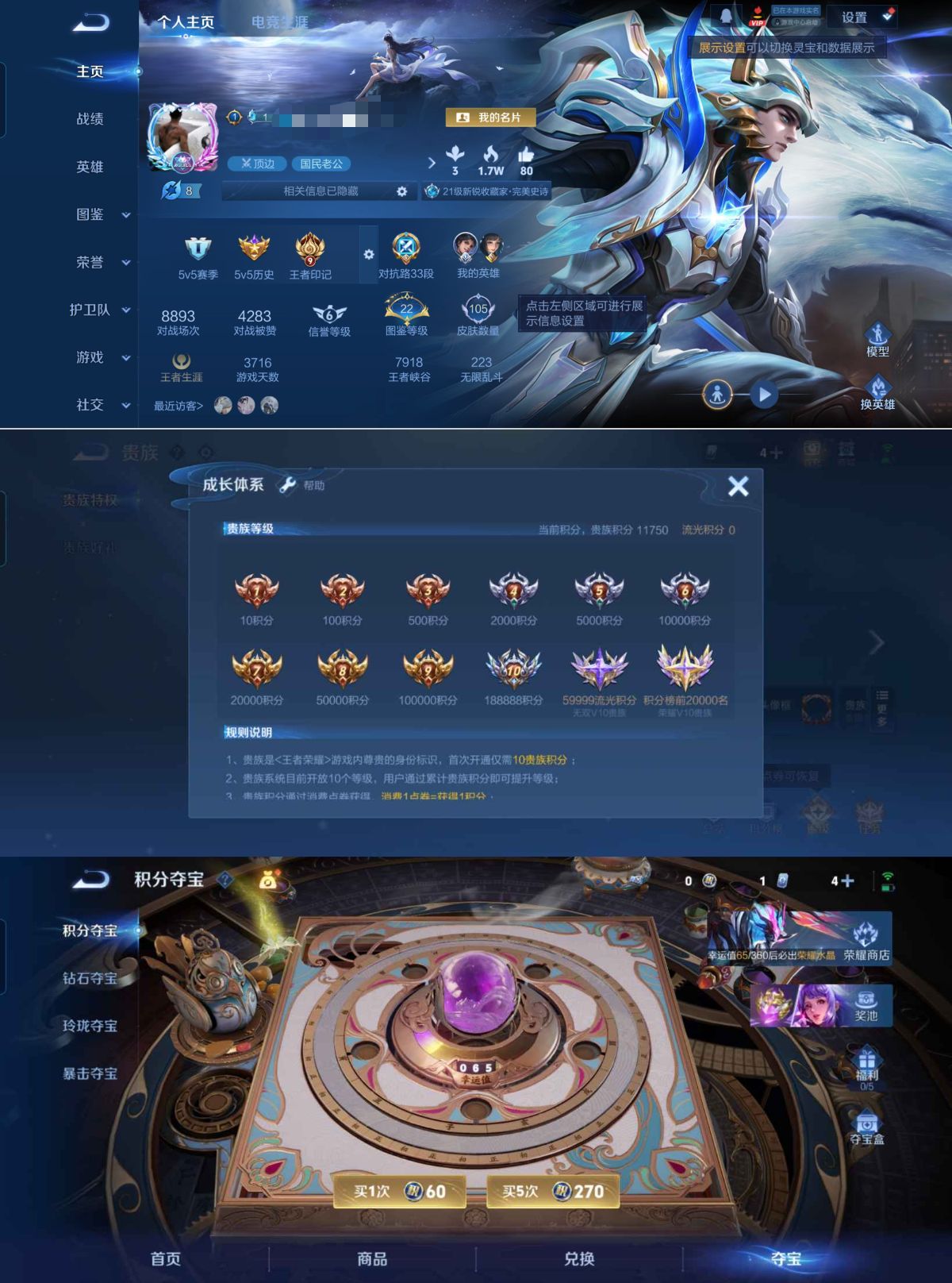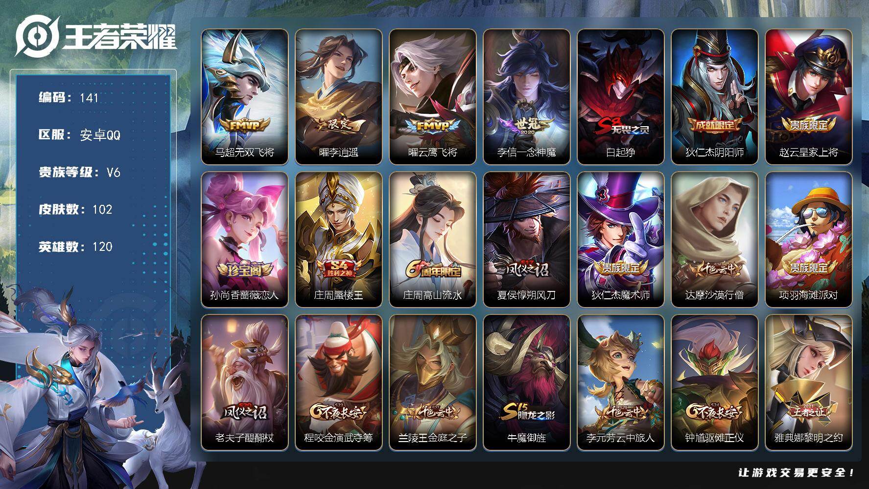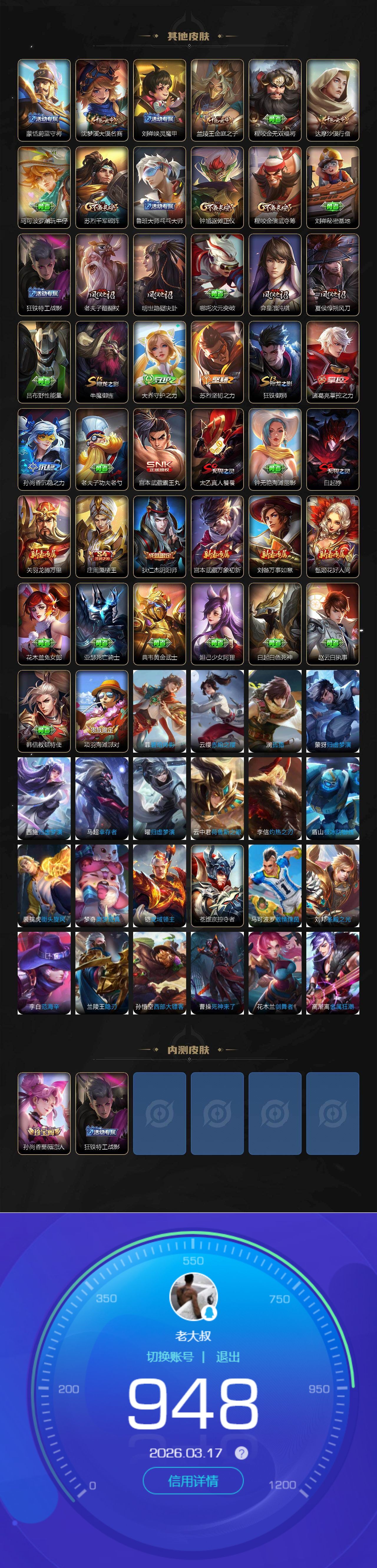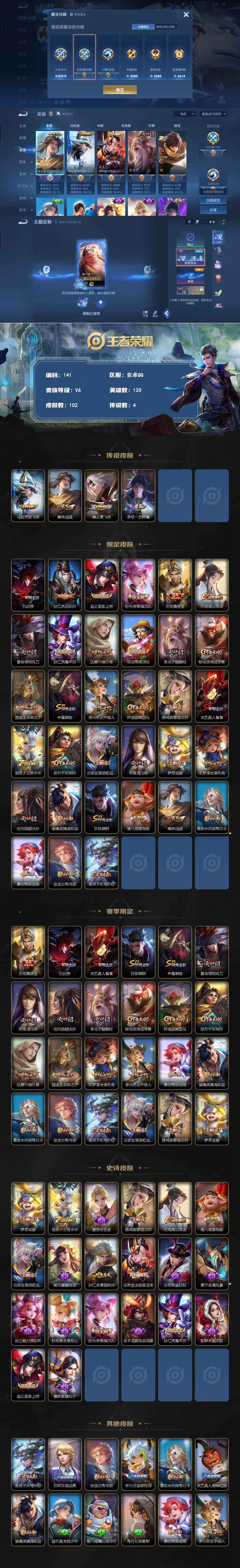 贵族等级:v6皮肤数:105传说品质4 英雄数:121