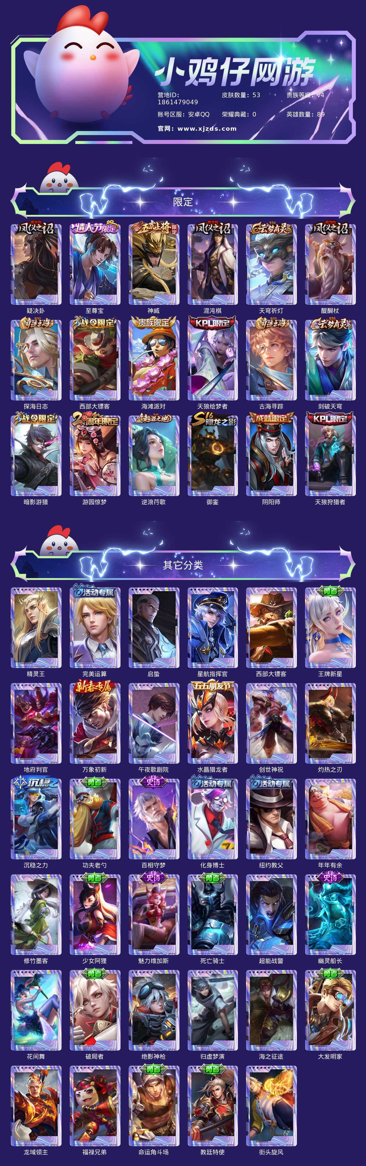 贵族等级:v4皮肤数:53情人节限定1 英雄数:89
