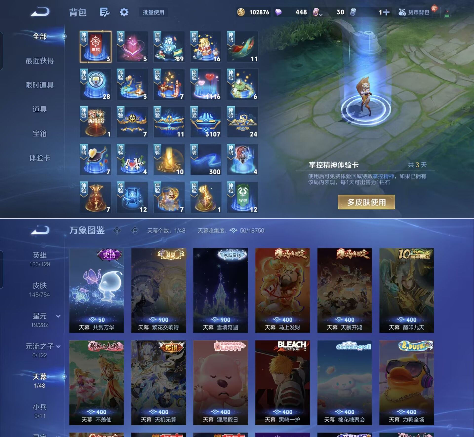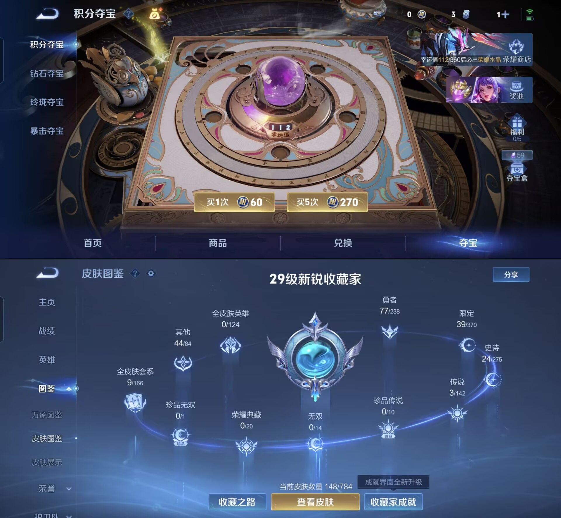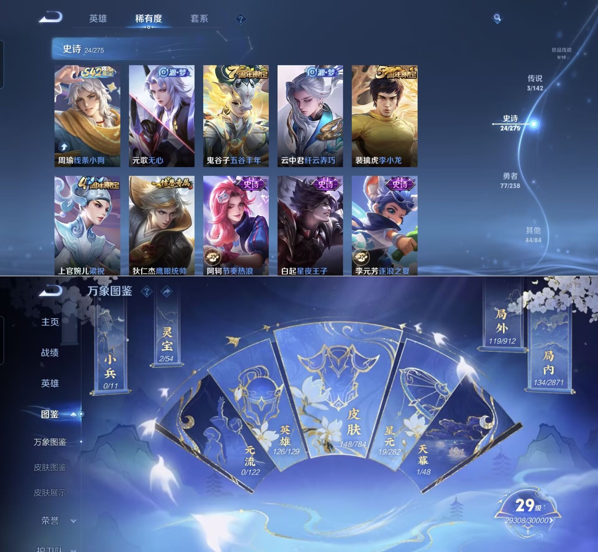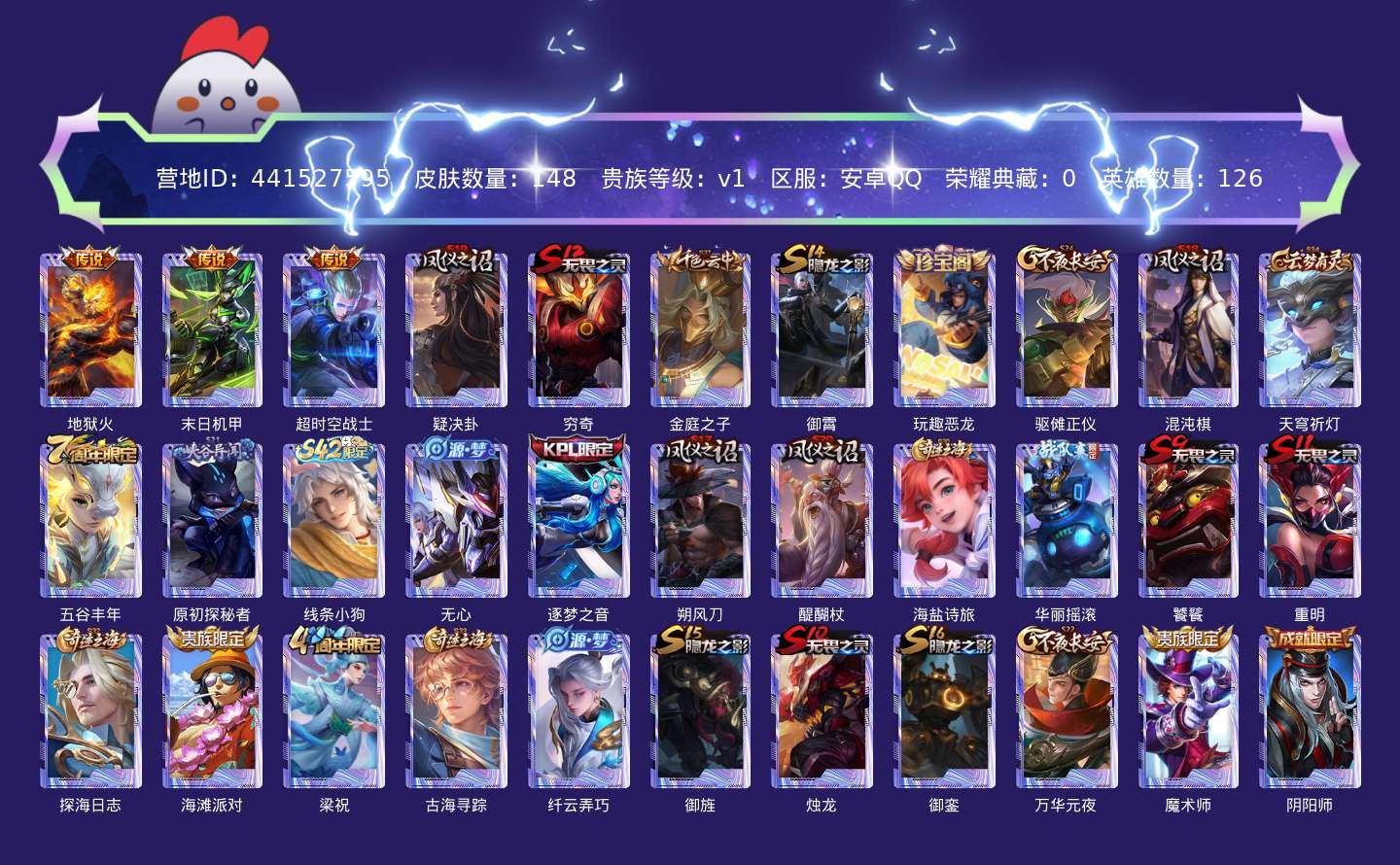 贵族等级:v1皮肤数:148传说品质3 英雄数:126