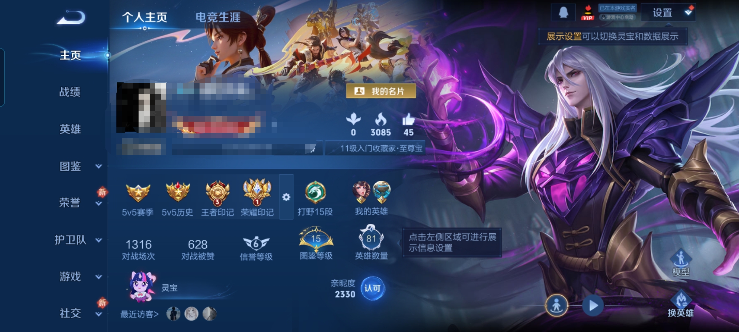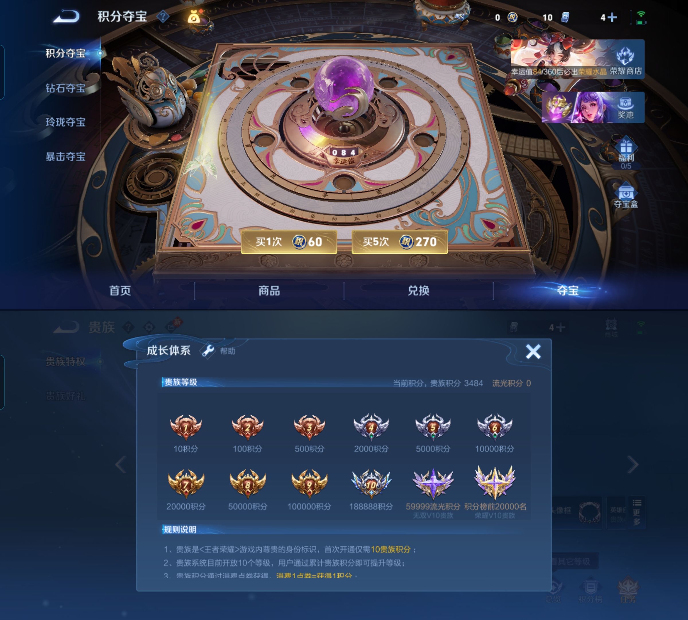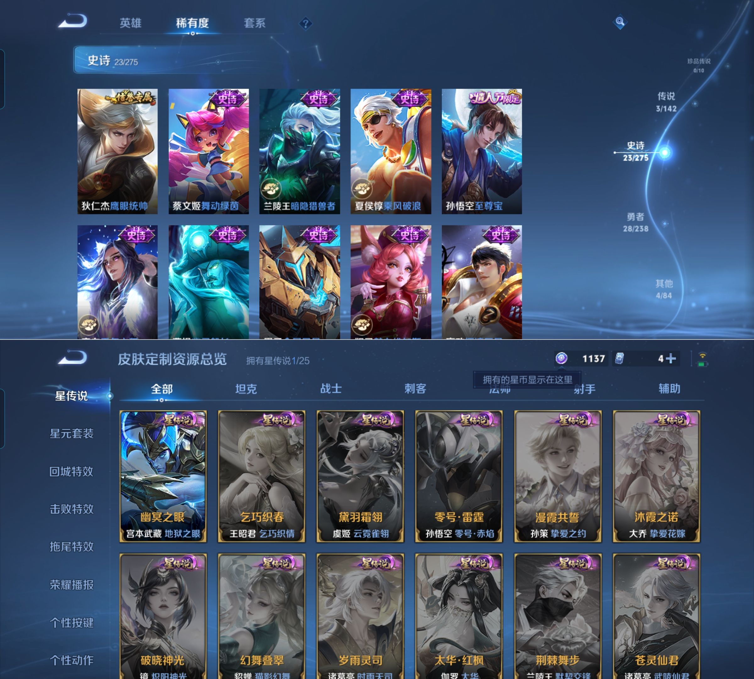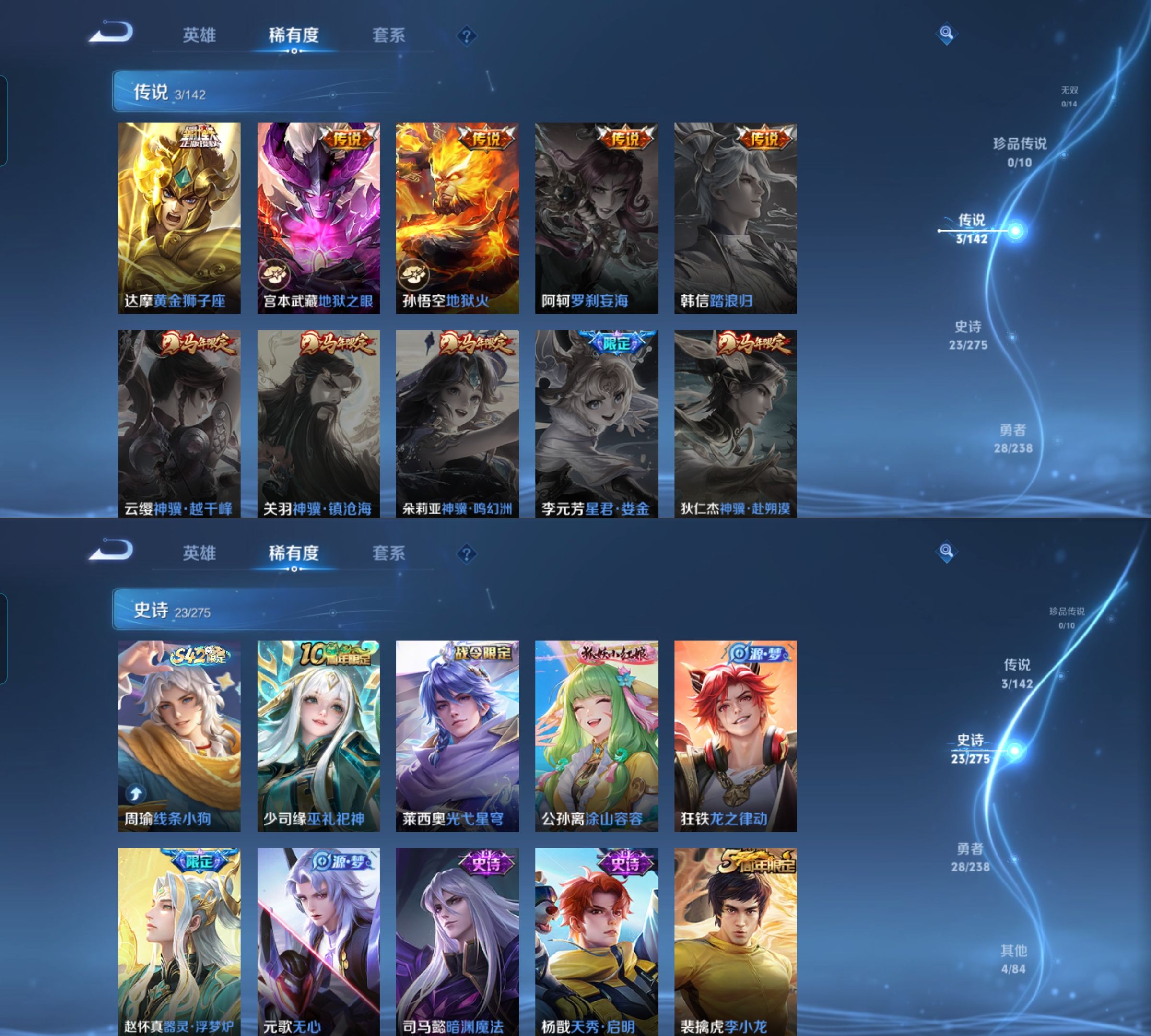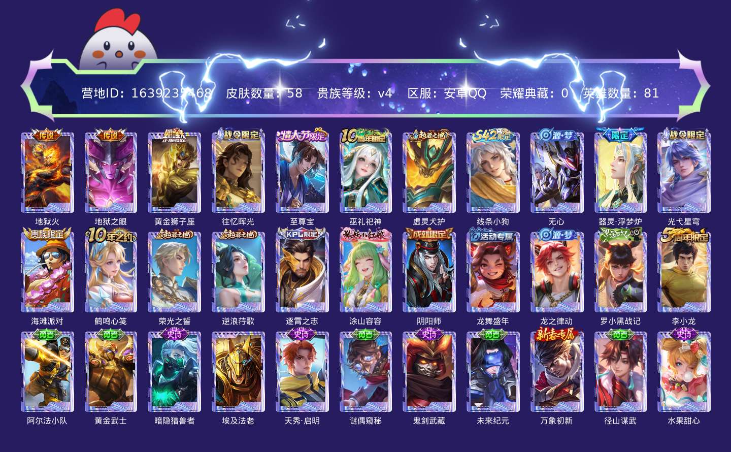贵族等级:v4皮肤数:58情人节限定1 传说品质3 英雄数:81