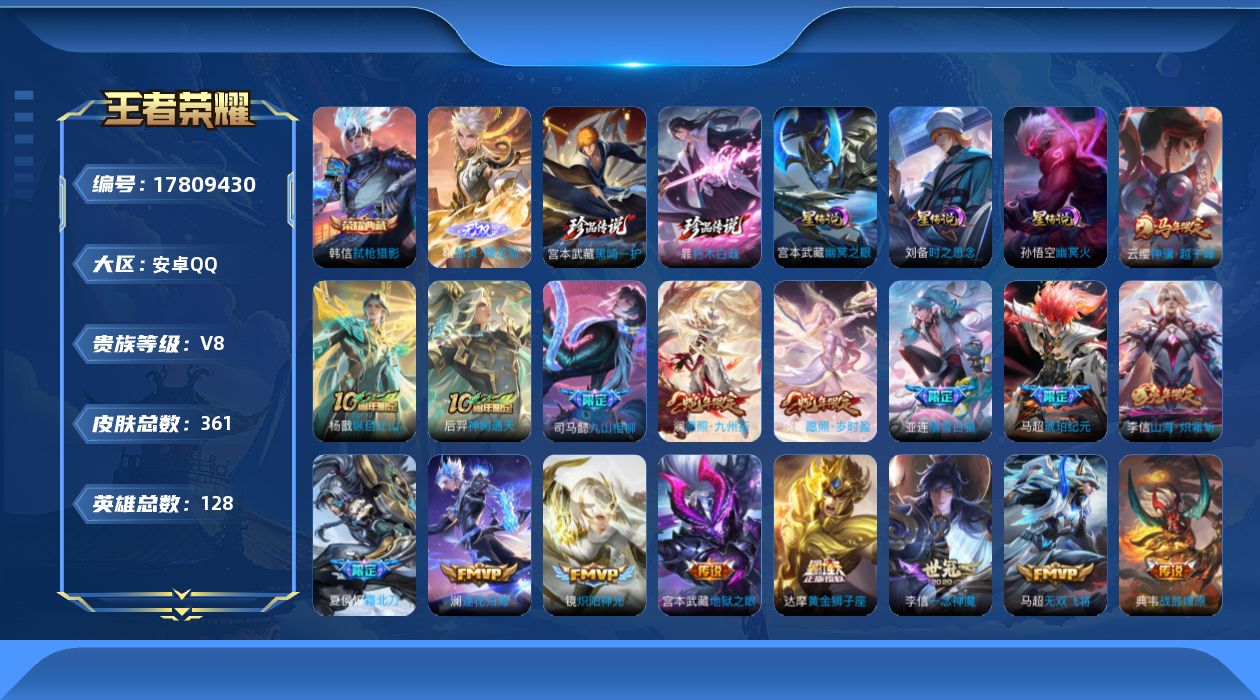传说品质_后羿_黄金射手座传说品质_后羿_无尽星芒传说品质_后羿_神树通天传说品质_澜_逐花归海传说品质_澜_愿照·九州拓传说品质_典韦_战鼓燎原传说品质_孙悟空_零号·赤焰传说品质_孙悟空_齐天大圣传说品质_孙悟空_地狱火传说品质_马超_琥珀纪元传说品质_马超_无双飞将传说品质_杨戬_纵目迁山传说品质_干将莫邪_久胜战神传说品质_宫本武藏_地狱之眼传说品质_花木兰_冠军飞将传说品质_镜_炽阳神光传说品质_李信_一念神魔传说品质_李信_山海·炽霜斩传说品质_夏侯惇_霜北刀传说品质_司马懿_九山相柳传说品质_桑启_鸣野蒿传说品质_刘备_时之恋人传说品质_张良_黄金白羊座传说品质_云缨_幻光神枪传说品质_云缨_神骥·越千峰传说品质_亚连_落雪白狼传说品质_曜_云鹰飞将传说品质_达摩_黄金狮子座传说品质_铠_绛天战甲传说品质_虞姬_愿照·岁时盈传说品质_虞姬_启明星使传说品质_嬴政_玄雷天君传说品质_赵云_淬星耀世