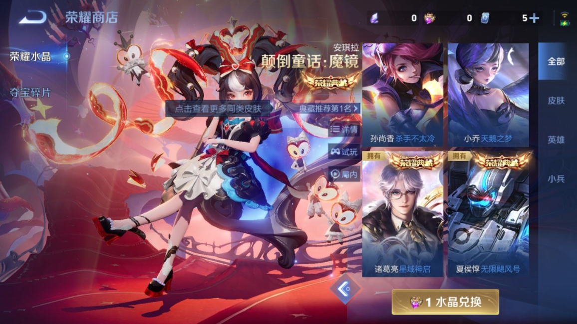 传说品质_后羿_黄金射手座传说品质_后羿_神树通天传说品质_司空震_愿照·山河定传说品质_澜_愿照·九州拓传说品质_诸葛亮_时雨天司传说品质_孙悟空_零号·赤焰传说品质_孙悟空_齐天大圣传说品质_孙悟空_地狱火传说品质_武则天_海洋之心传说品质_宫本武藏_地狱之眼传说品质_镜_炽阳神光传说品质_不知火舞_绯月行传说品质_李信_一念神魔传说品质_李信_山海·炽霜斩传说品质_孙尚香_末日机甲传说品质_孙尚香_乘龙·问璇玑传说品质_夏侯惇_霜北刀传说品质_桑启_鸣野蒿传说品质_王昭君_映山客传说品质_张良_黄金白羊座传说品质_女娲_愿照·千秋盛传说品质_墨子_黄金天蝎座传说品质_马可波罗_妄想实况传说品质_妲己_愿照·众生和传说品质_云缨_幻光神枪传说品质_蔡文姬_愿照·福禄聚传说品质_公孙离_祈雪灵祝传说品质_伽罗_炽翼辉光传说品质_夏洛特_浮生妄传说品质_曜_云鹰飞将传说品质_狄仁杰_超时空战士传说品质_虞姬_愿照·岁时盈传说品质_虞姬_启明星使传说品质_嬴政_玄雷天君传说品质_百里玄策_白虎志传说品质_裴擒虎_祥瑞亨通