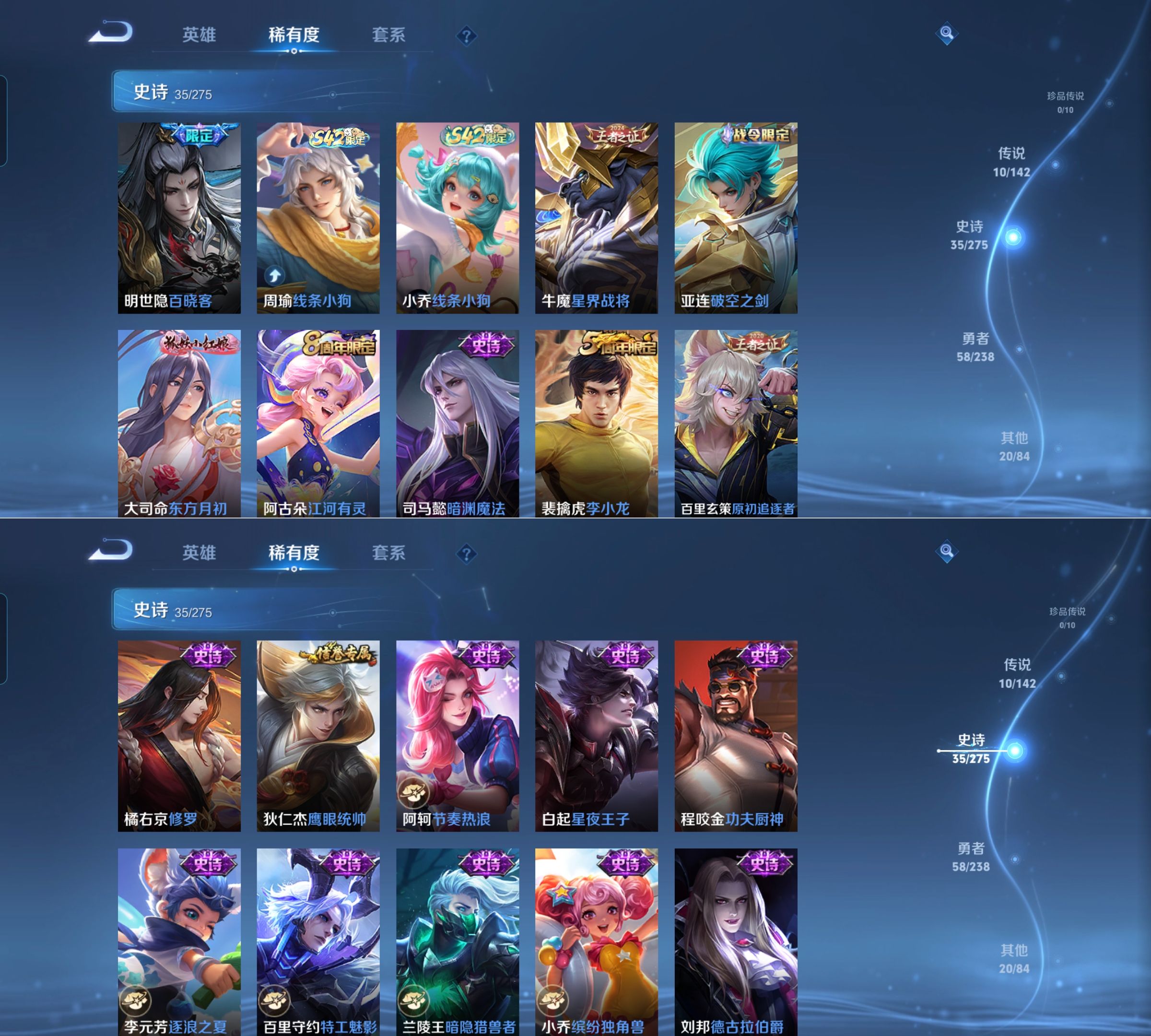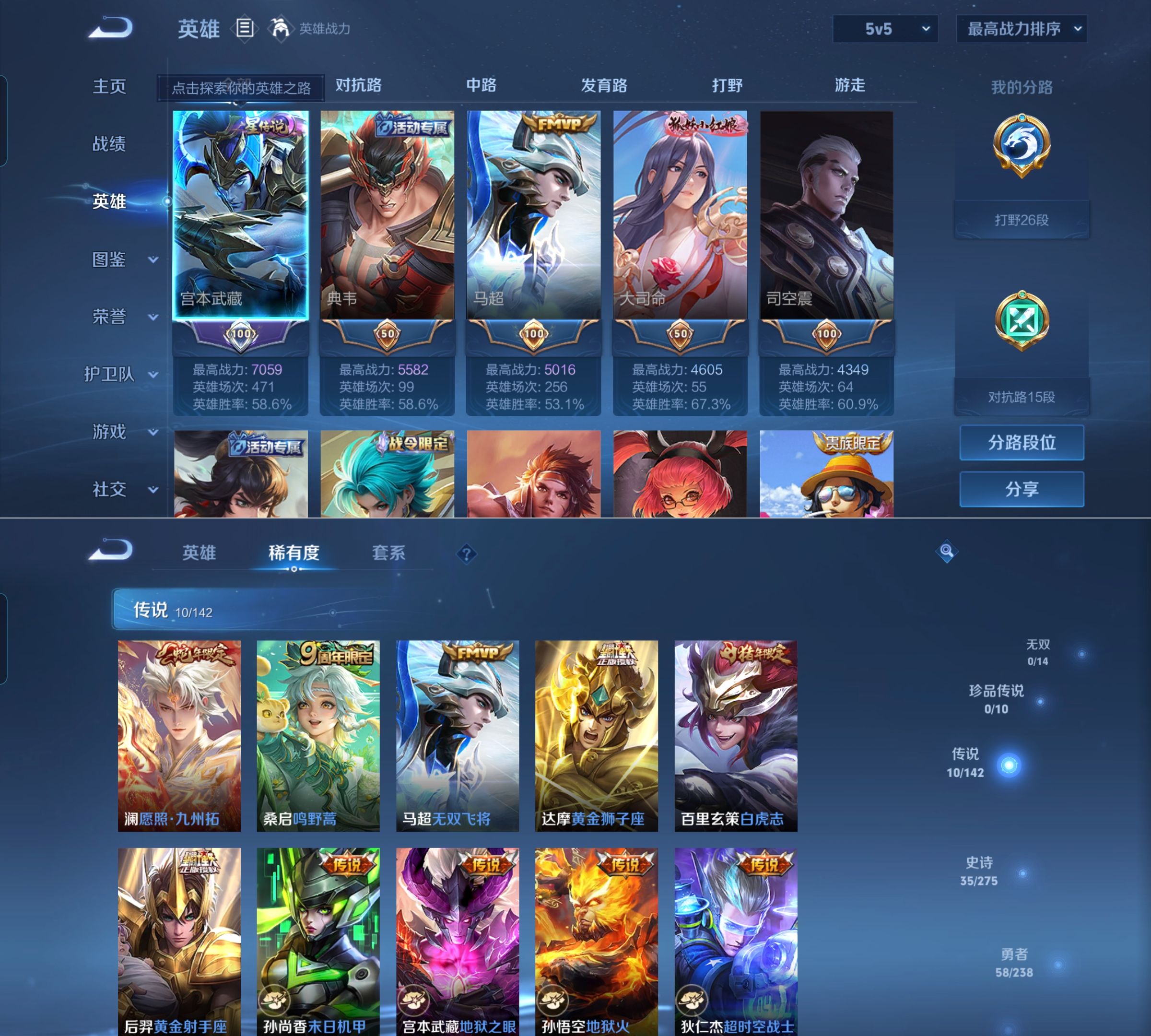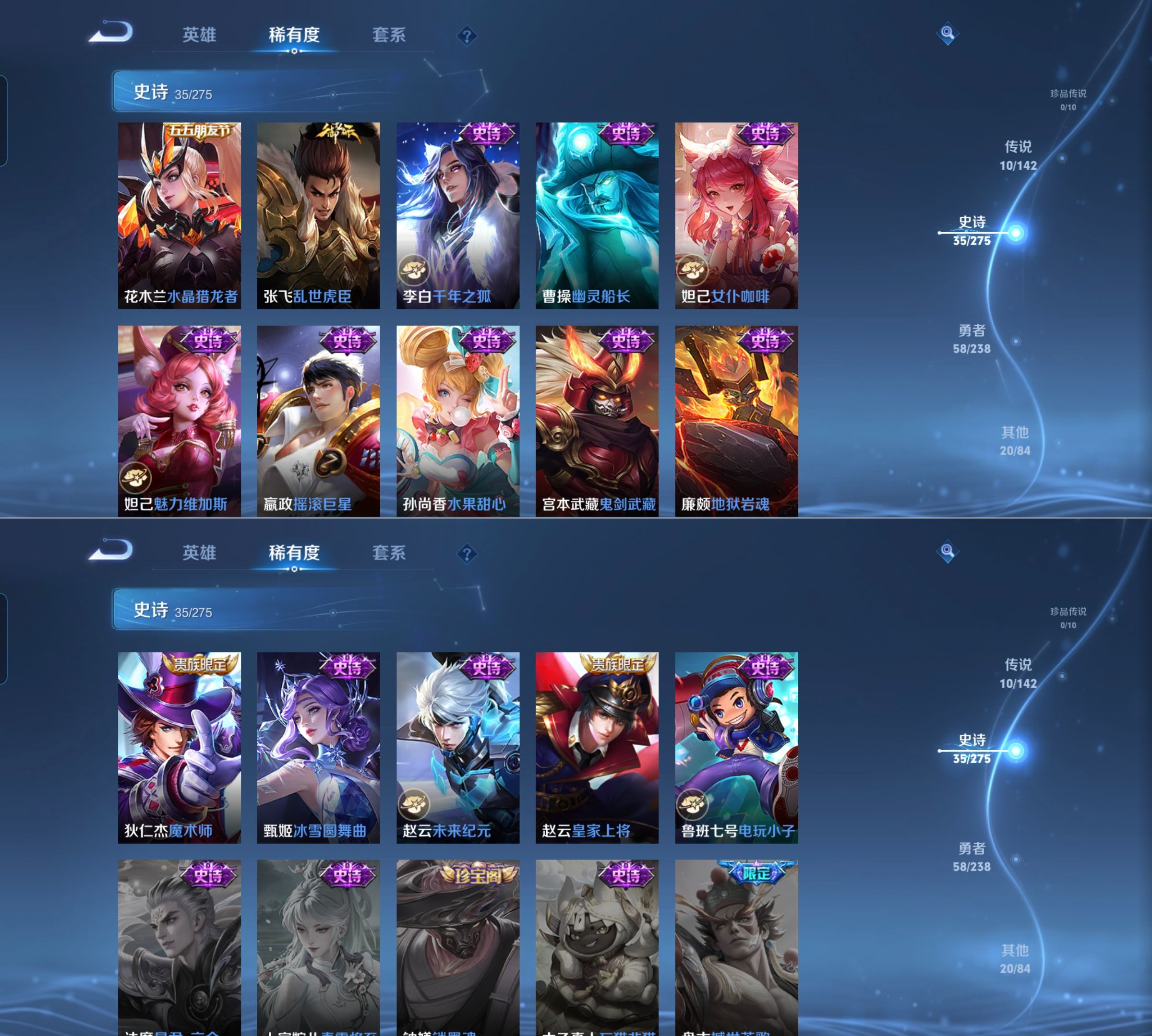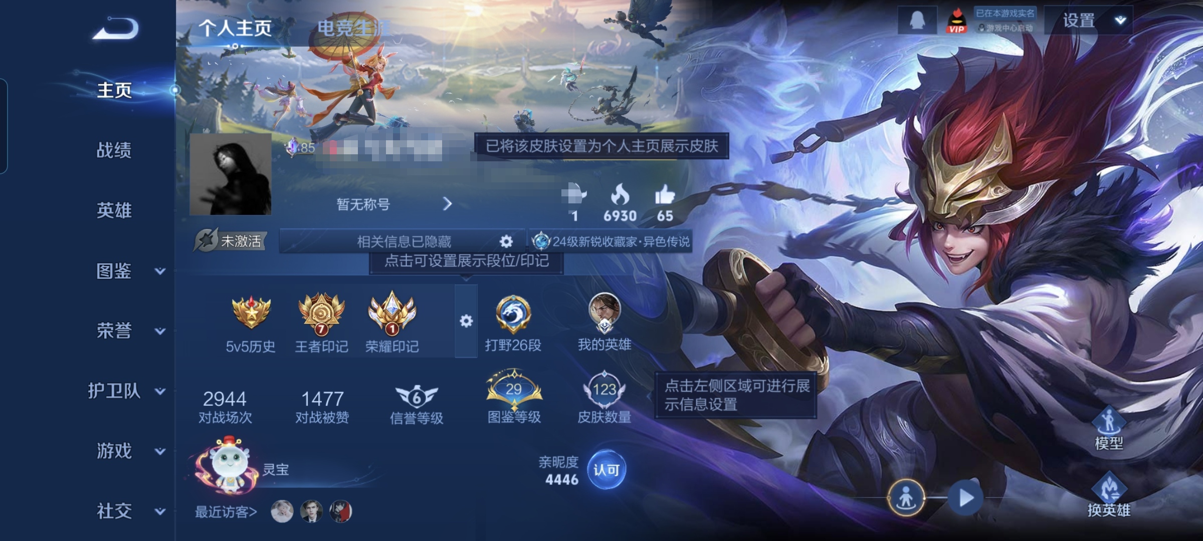 贵族等级:v7皮肤数:123传说品质10 生肖限定2 英雄数:126