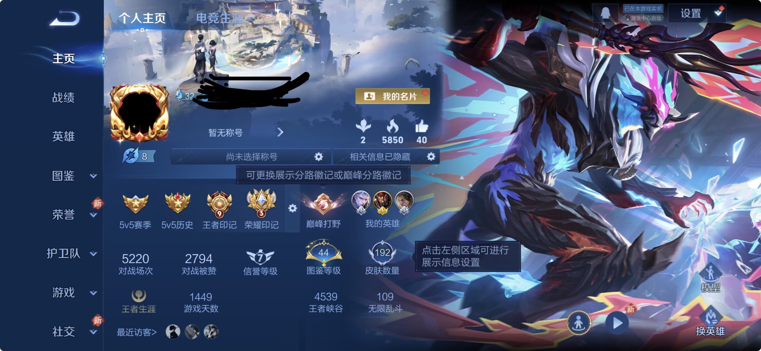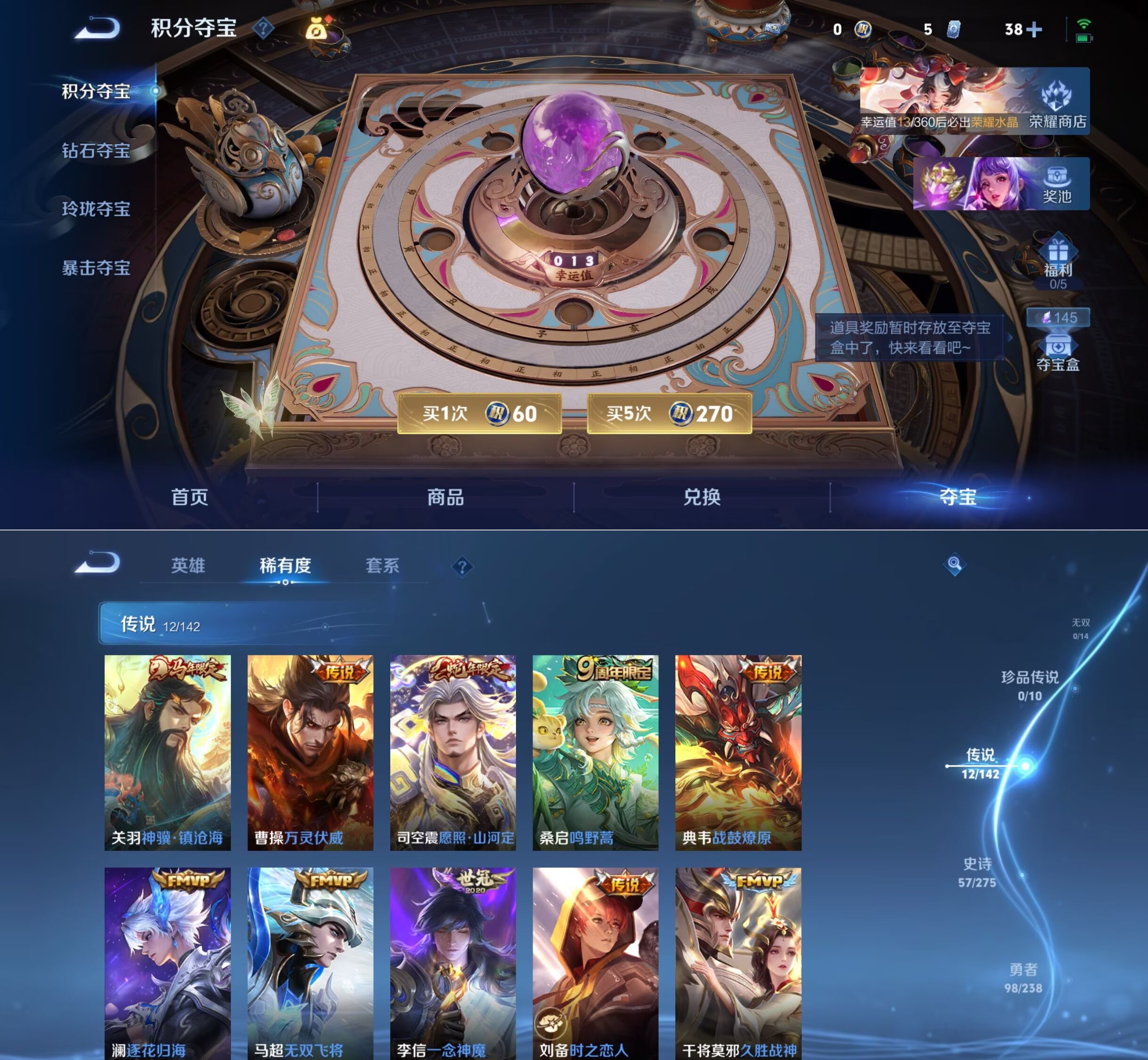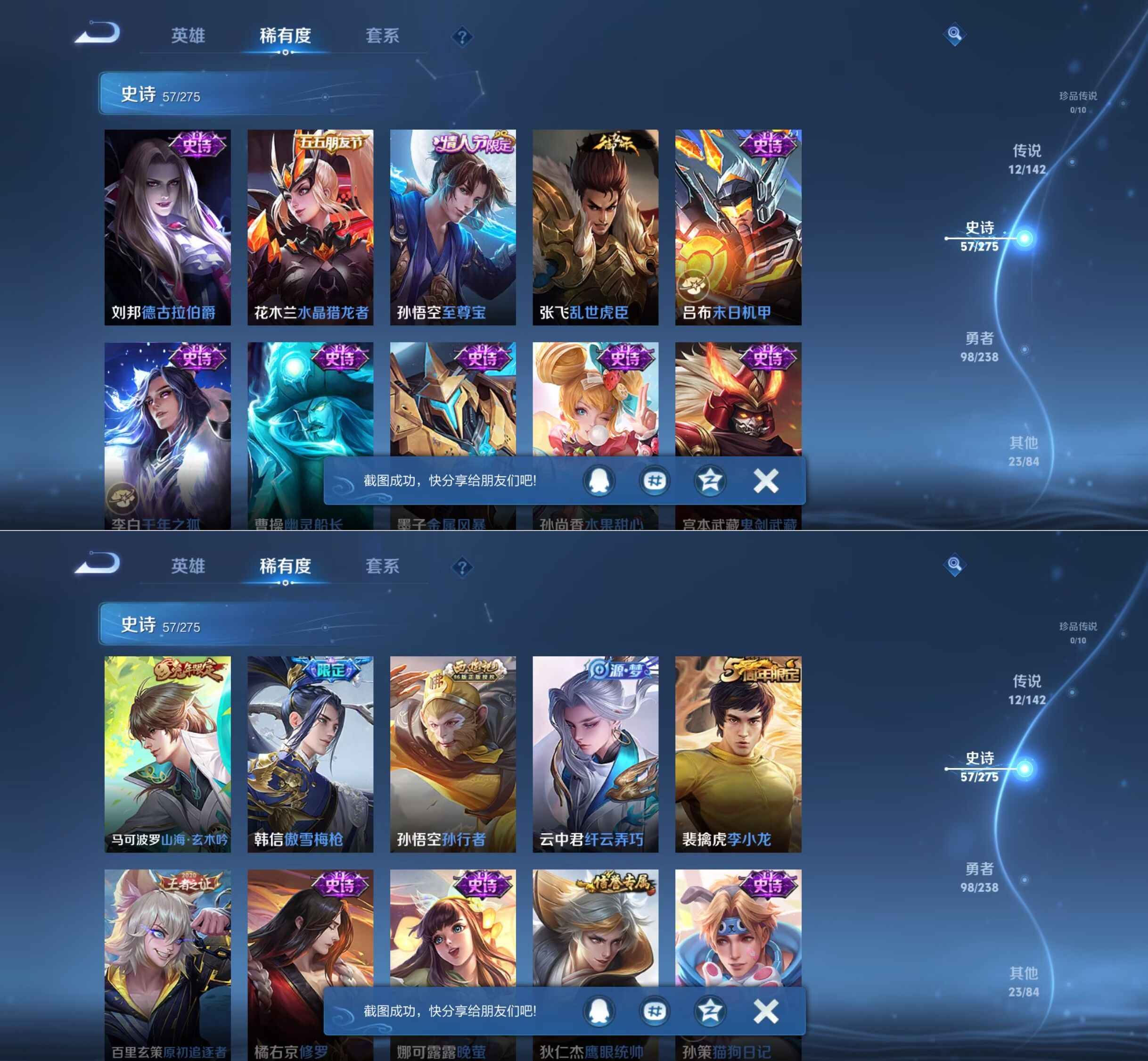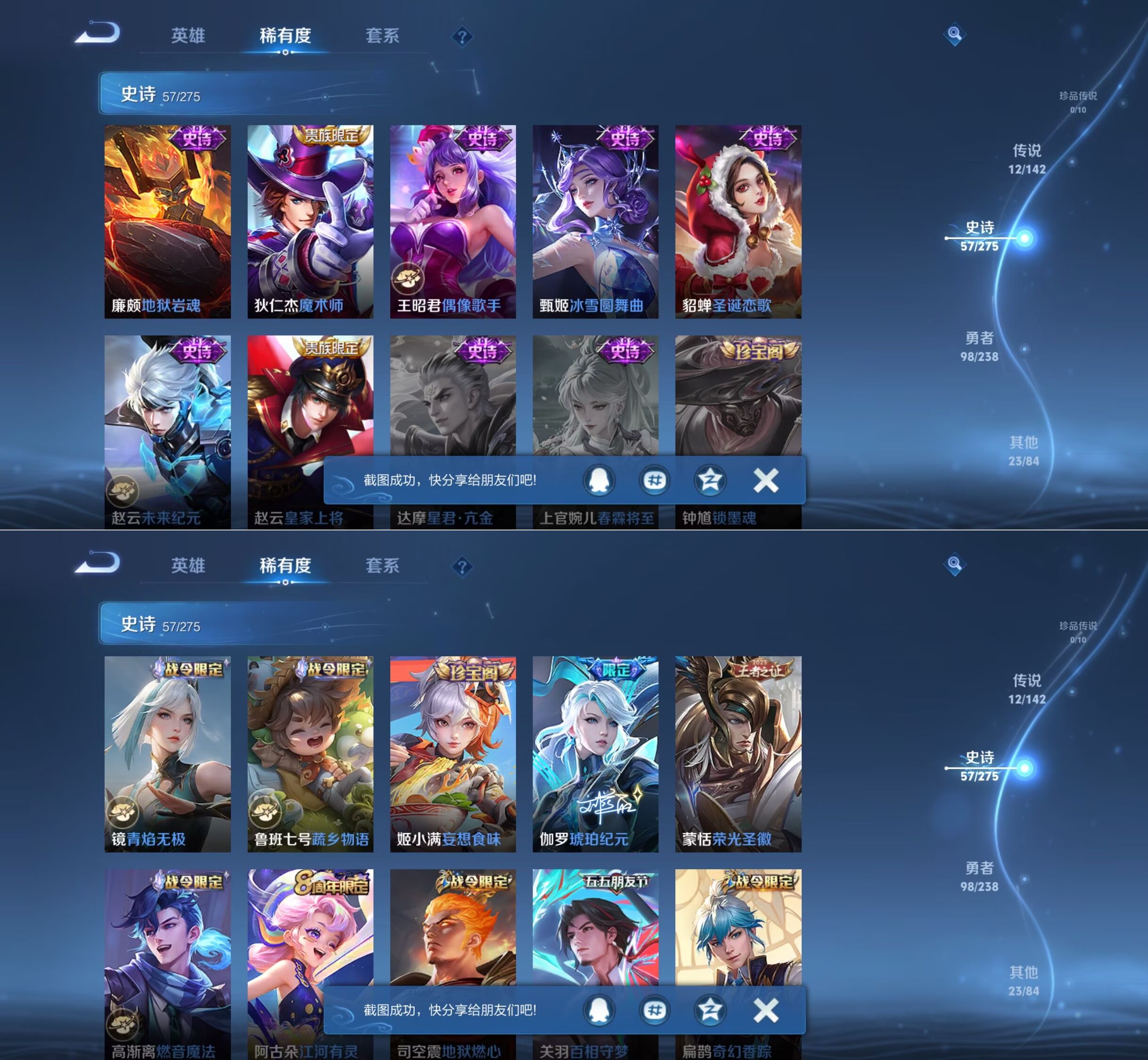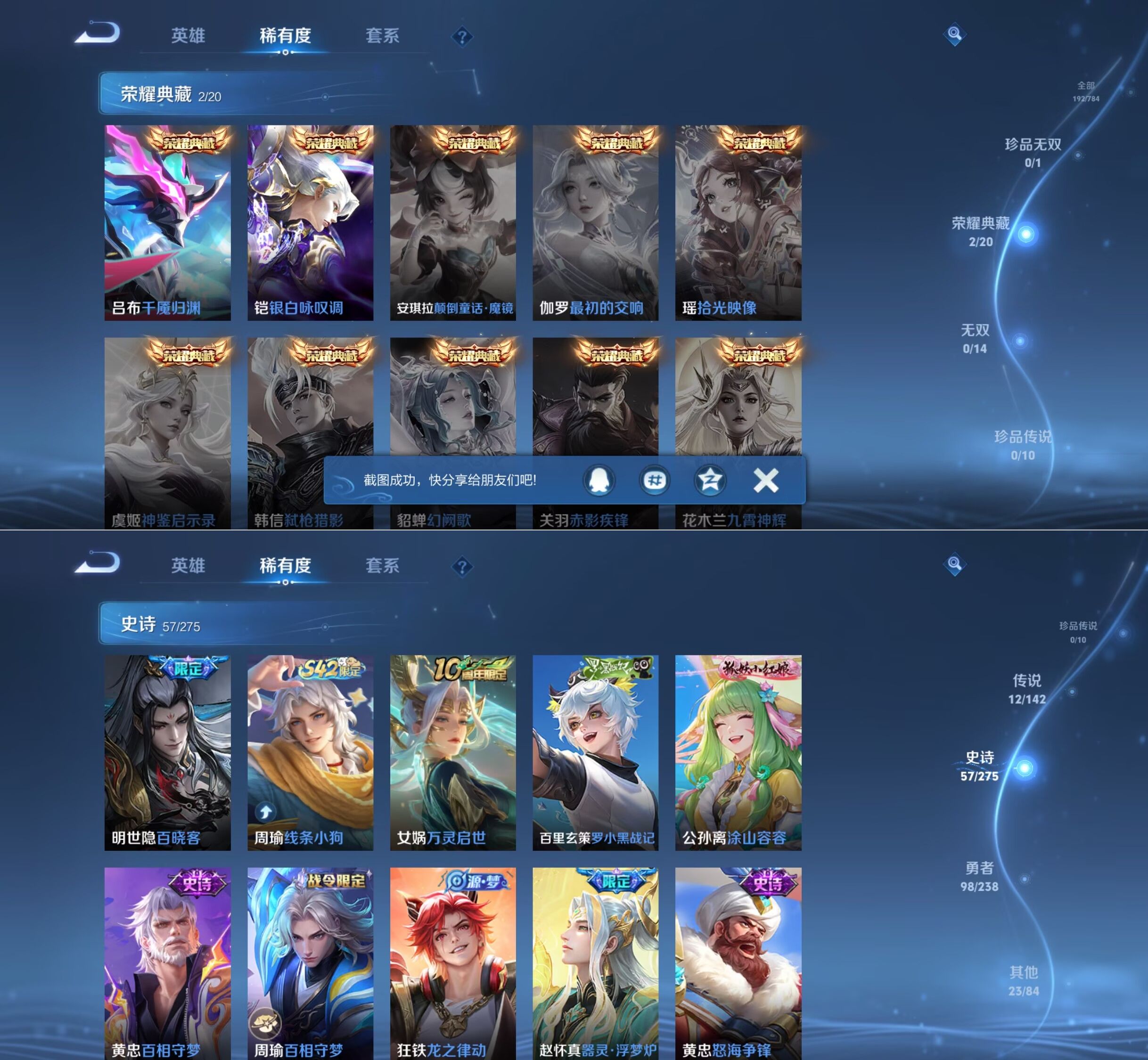 贵族等级:v7皮肤数:29传说品质1 英雄数:44