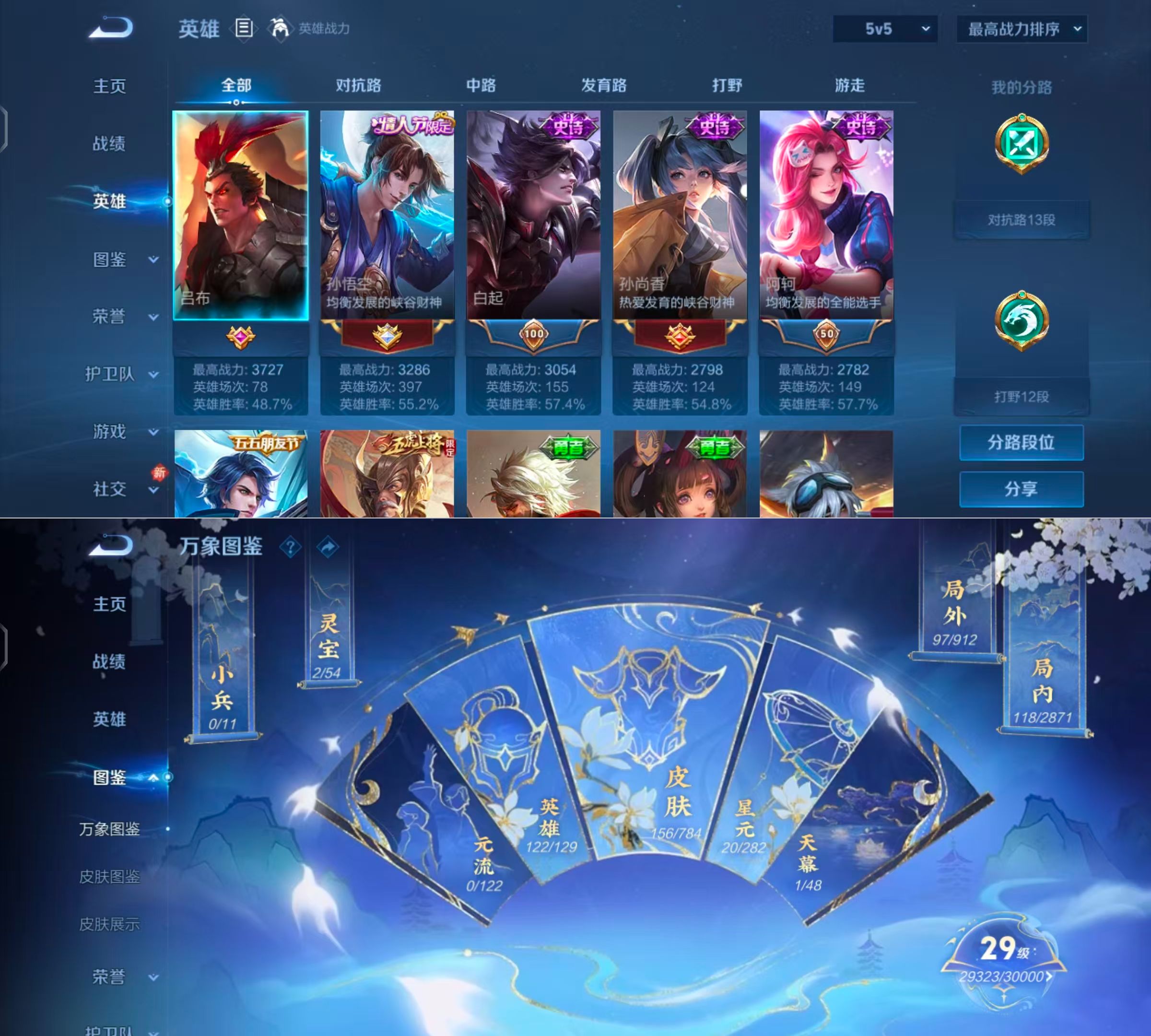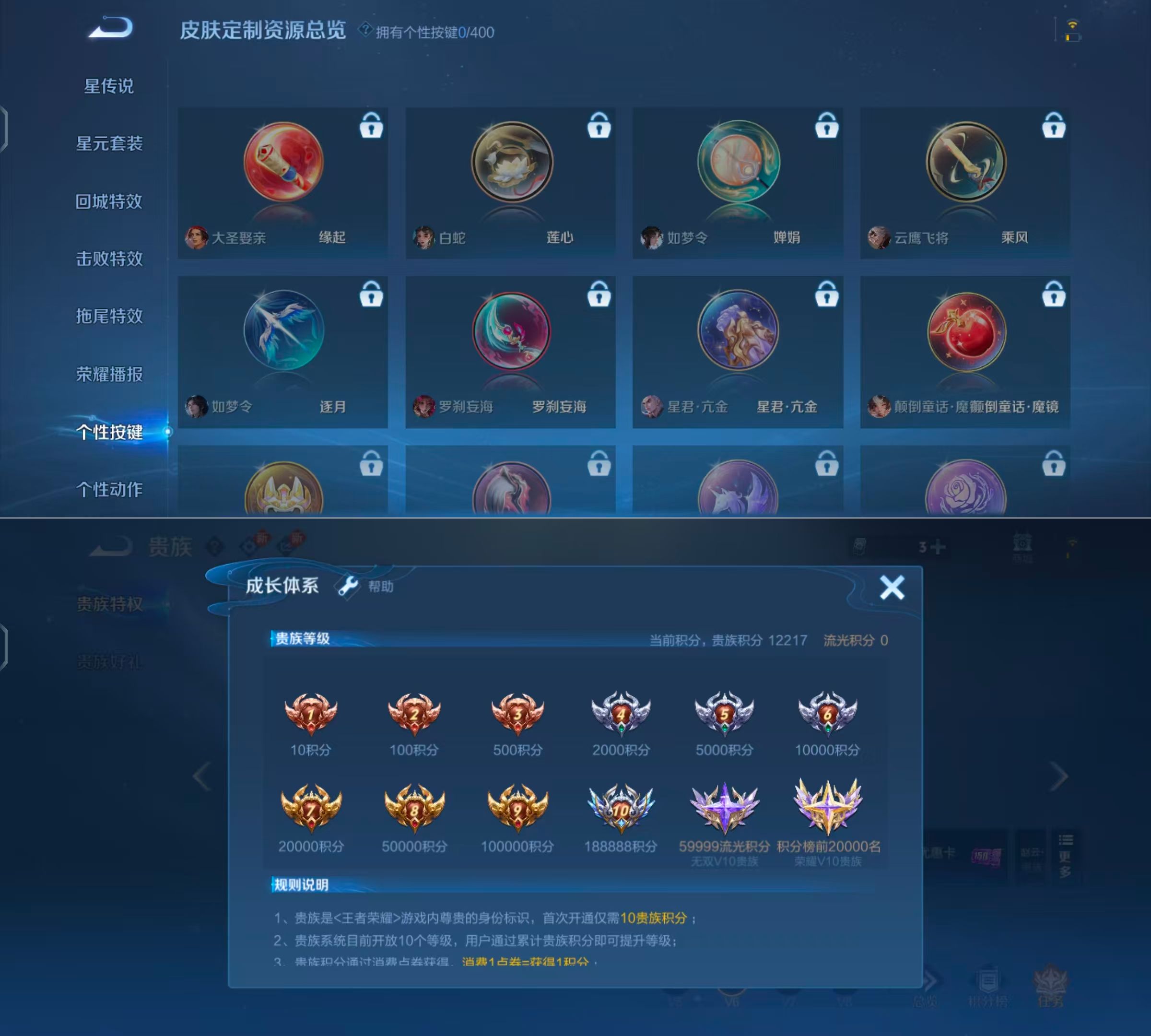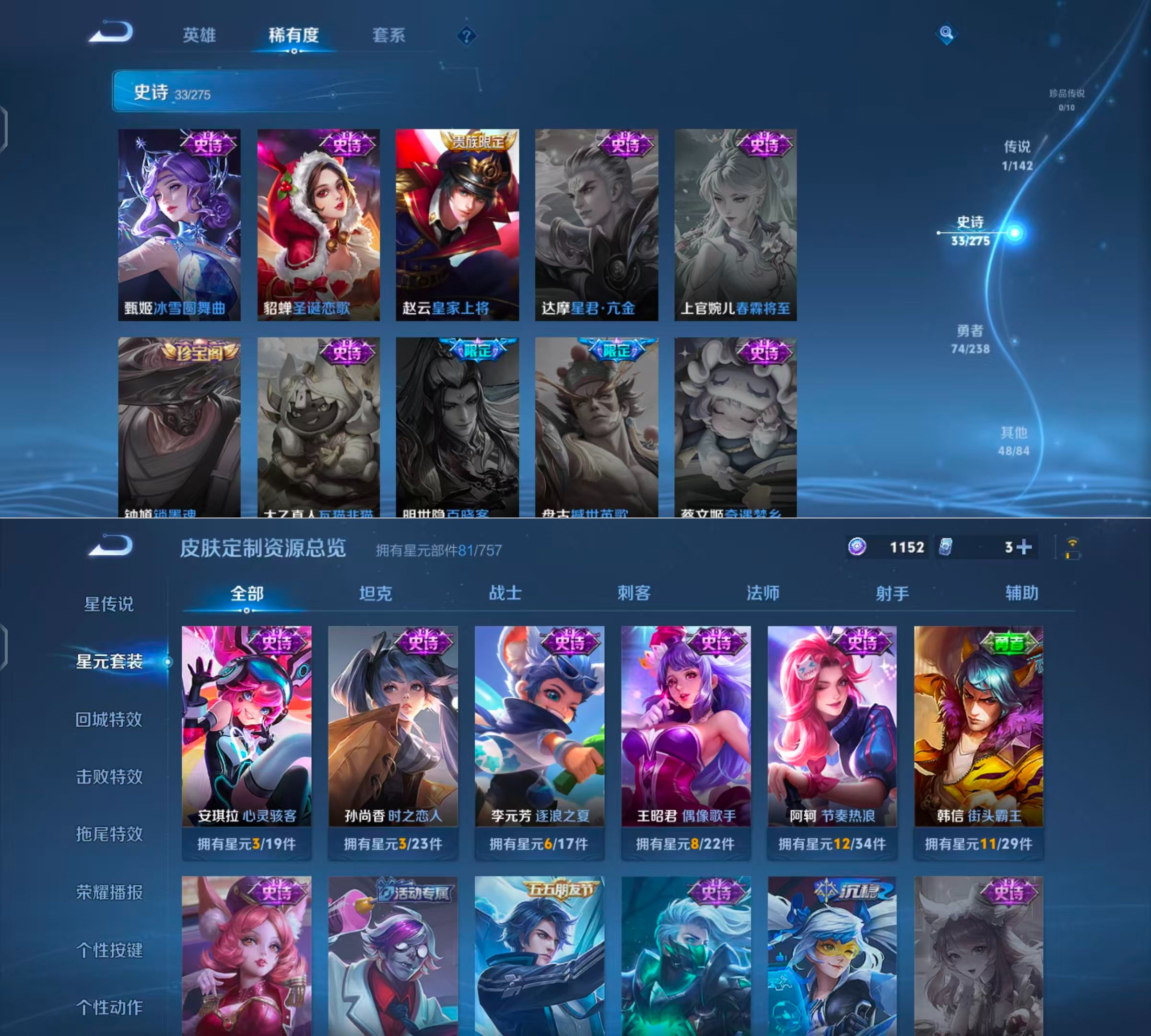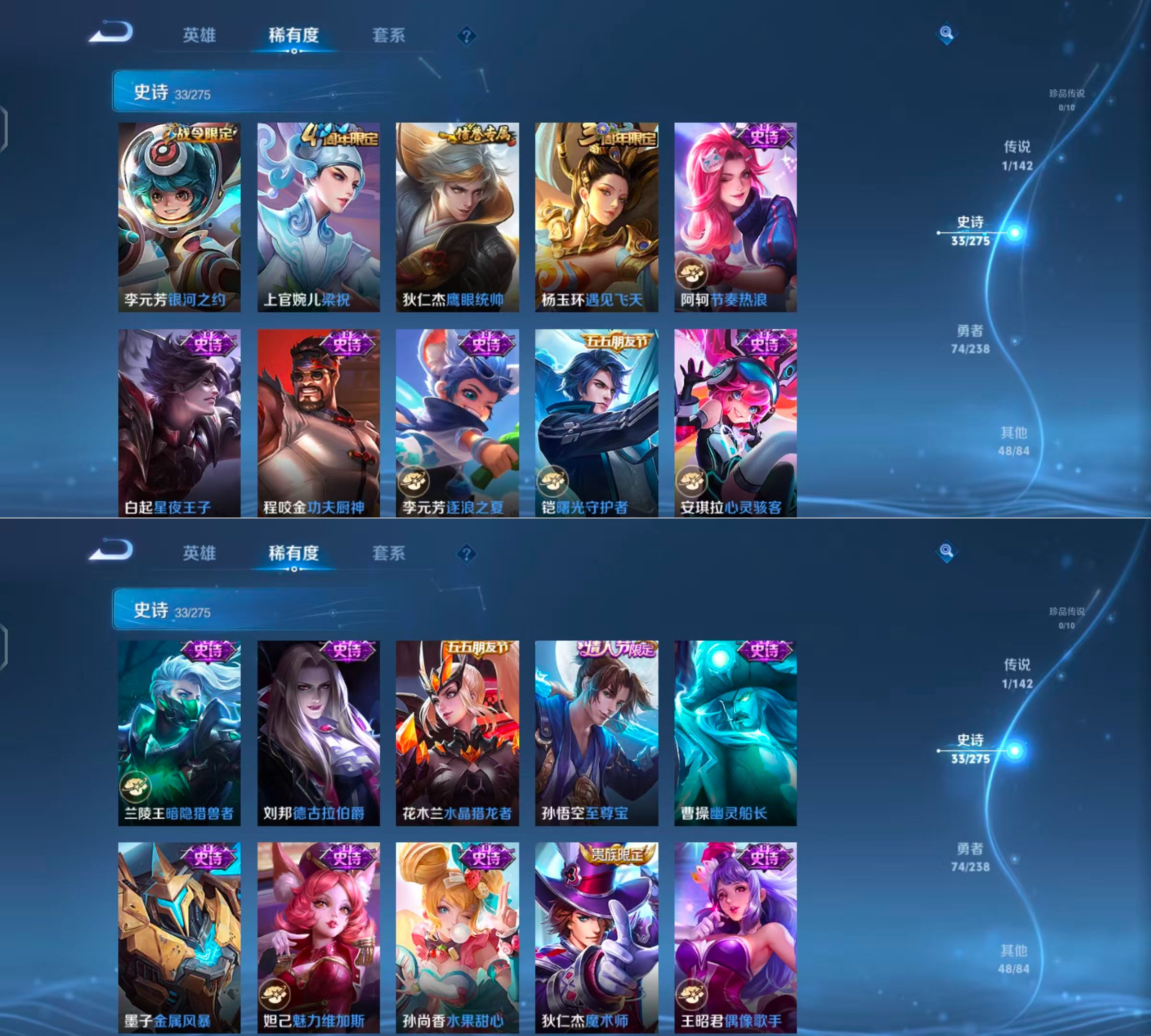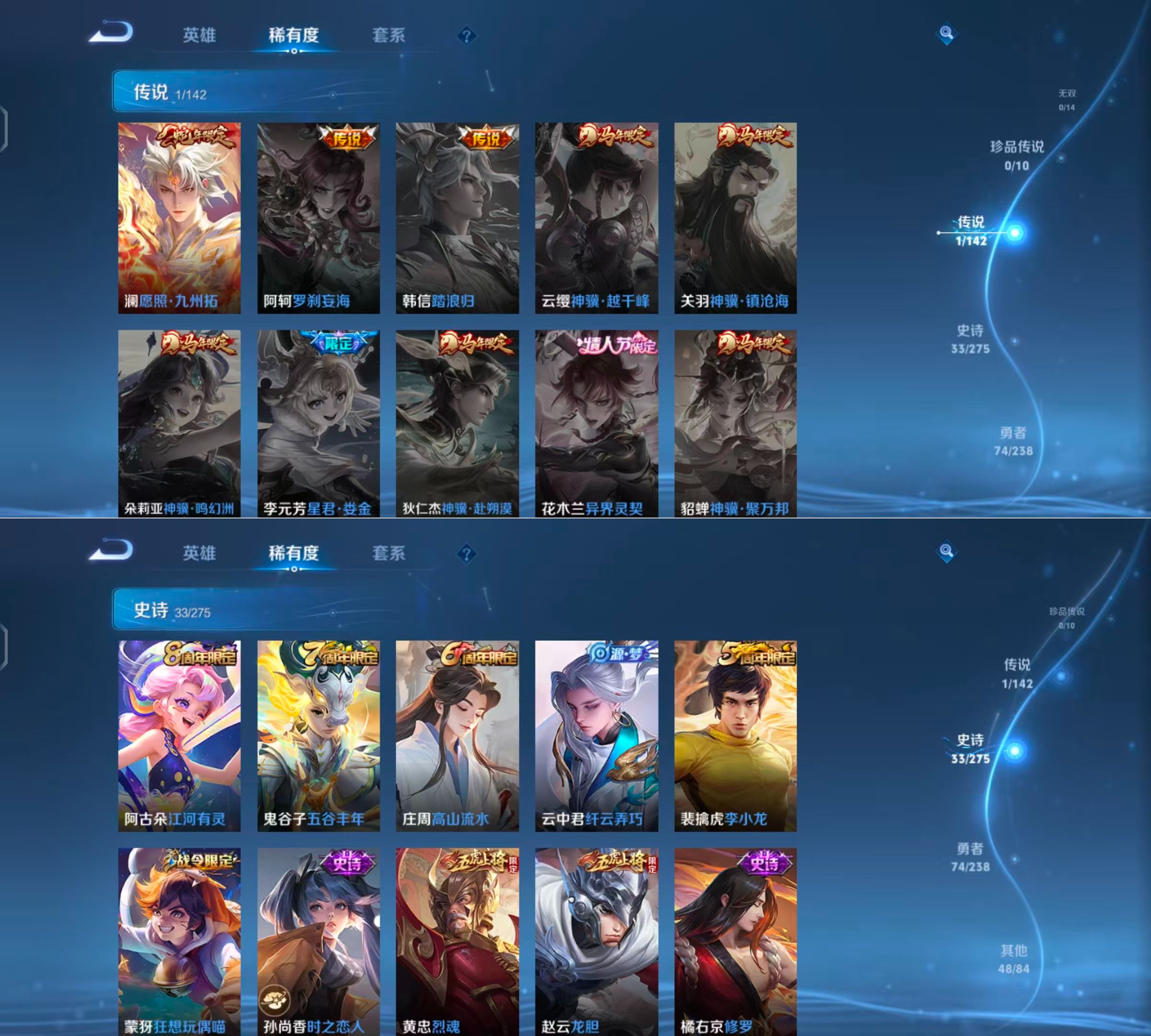 贵族等级:v6皮肤数:156传说品质1 生肖限定1 情人节限定1 英雄数:122