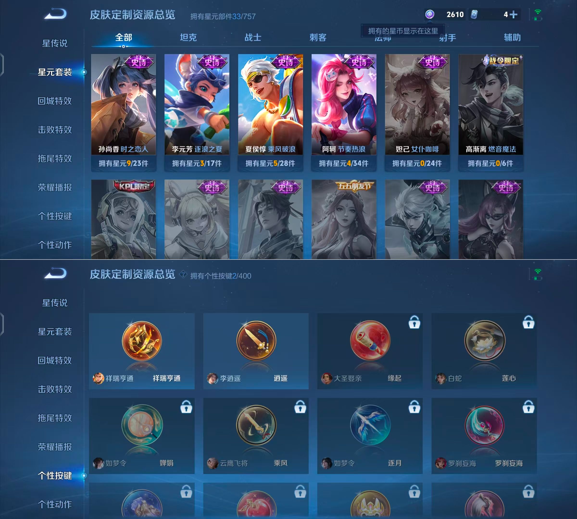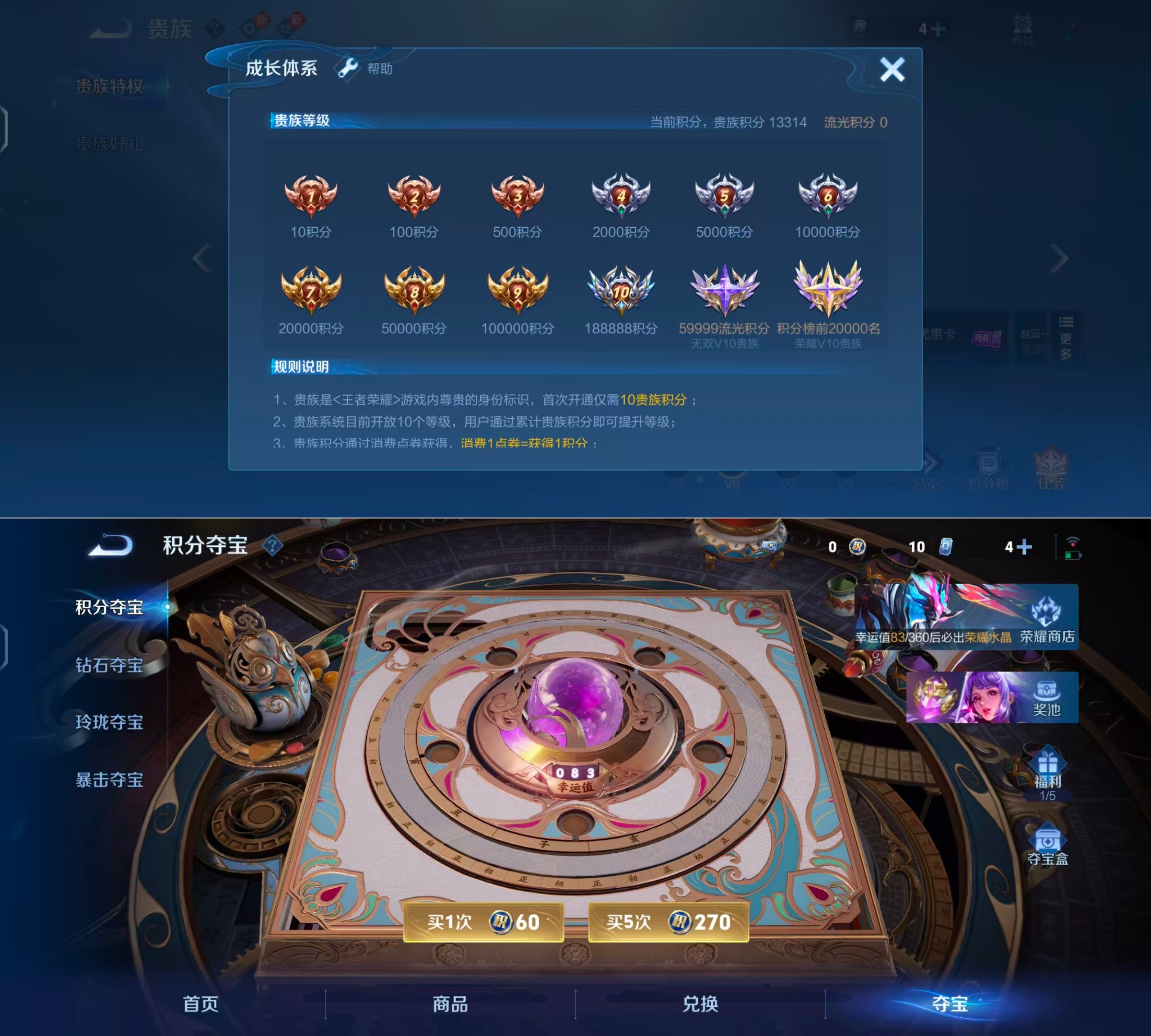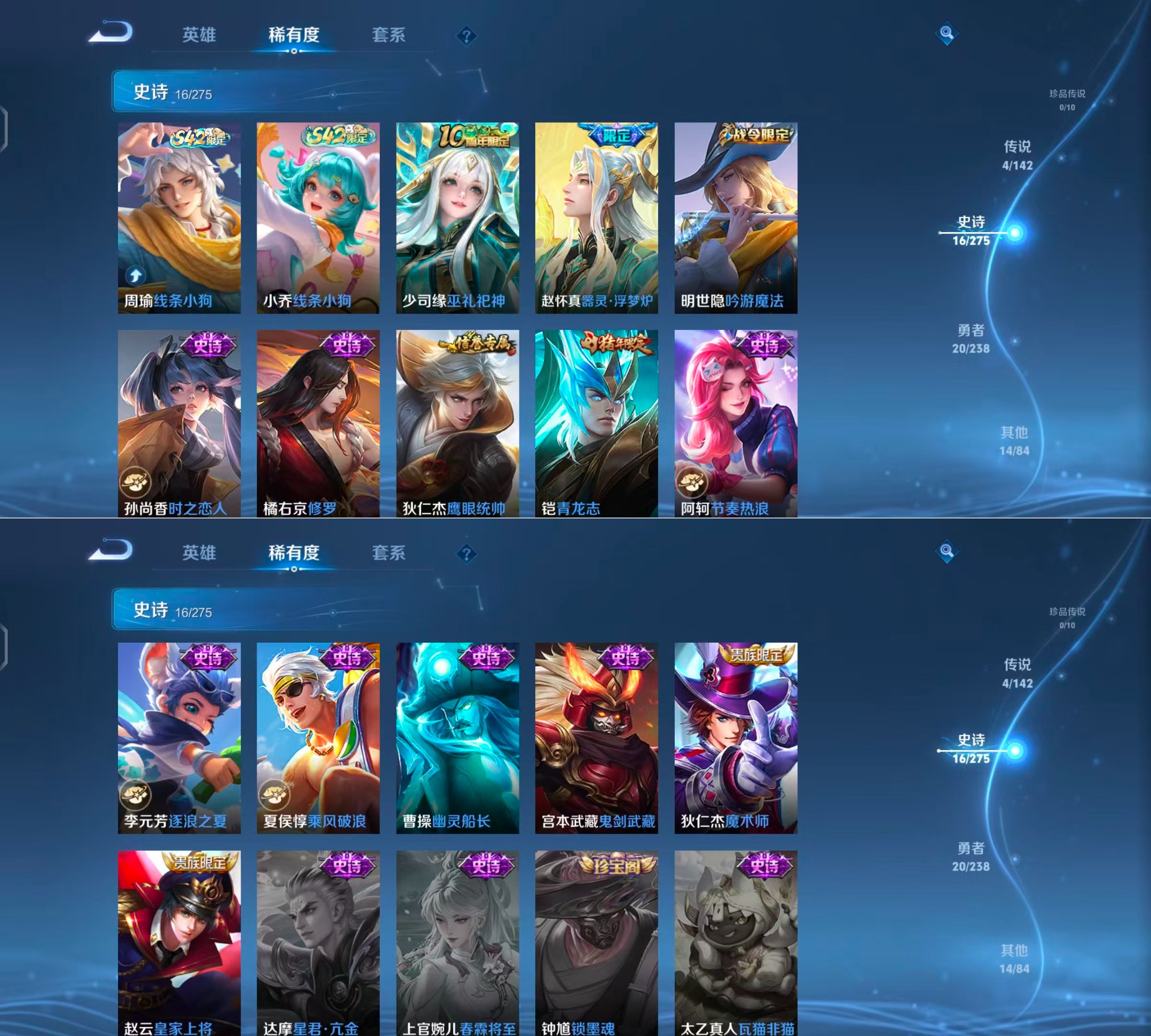 贵族等级:v6皮肤数:55传说品质4 无双1 生肖限定1 英雄数:84