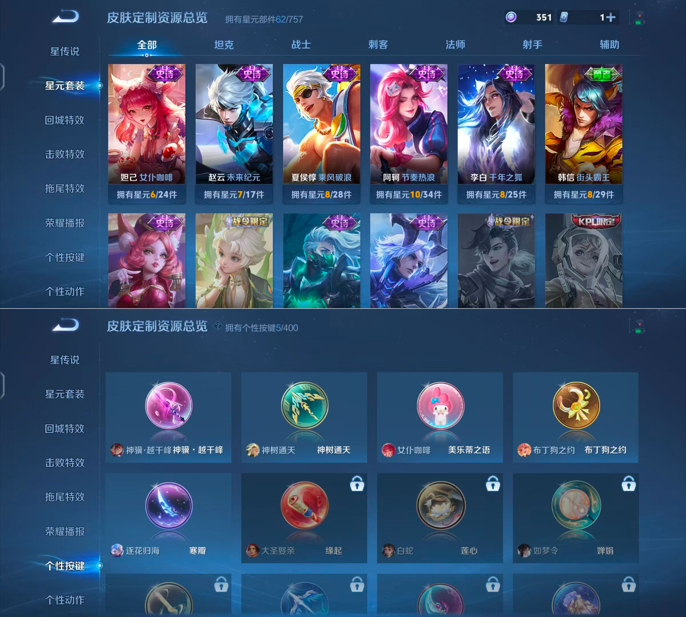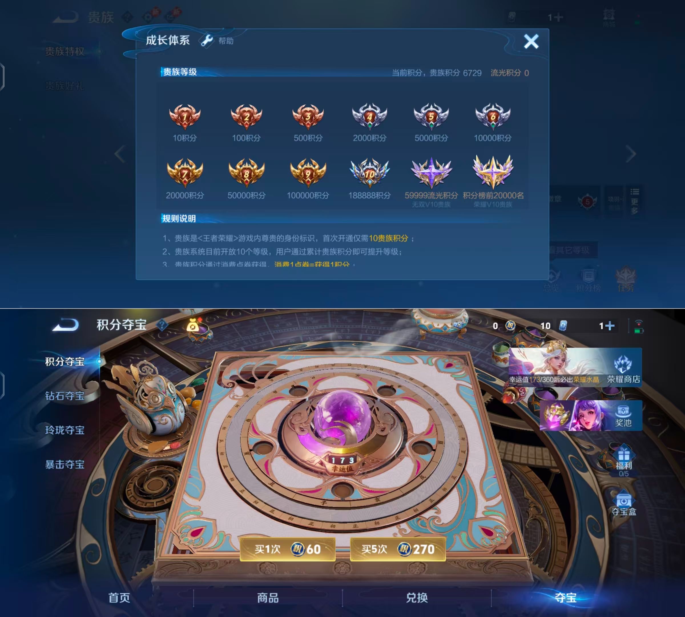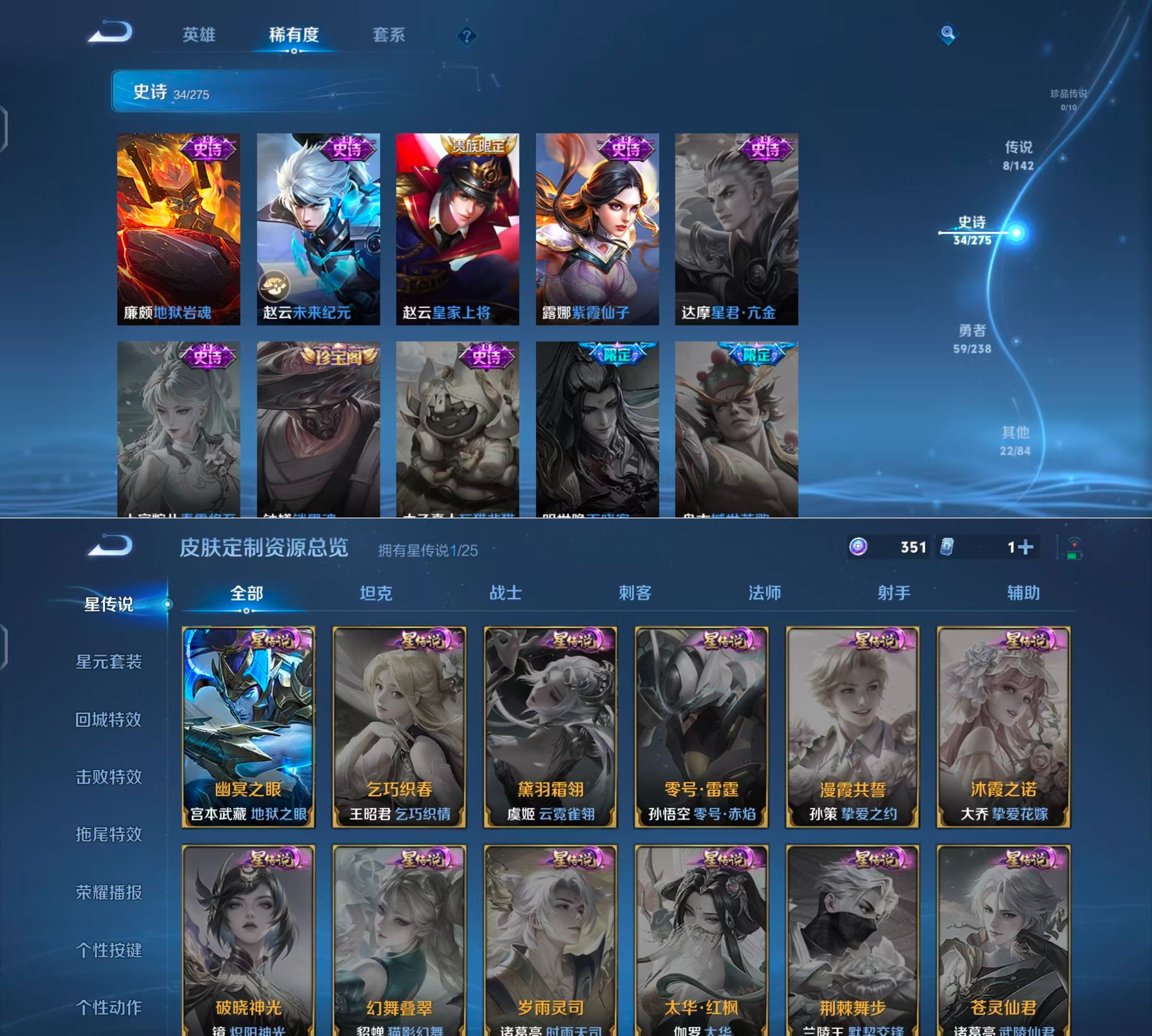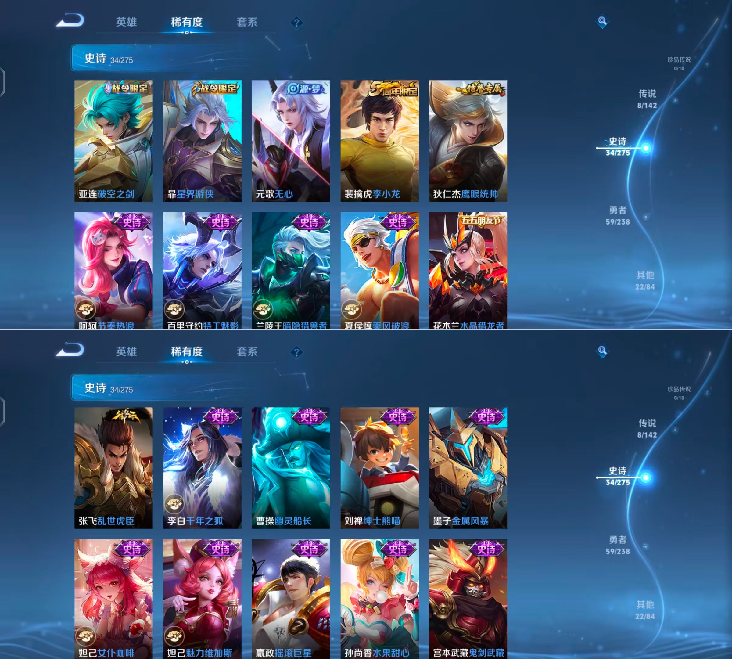 贵族等级:v5皮肤数:123传说品质8 生肖限定2 英雄数:126