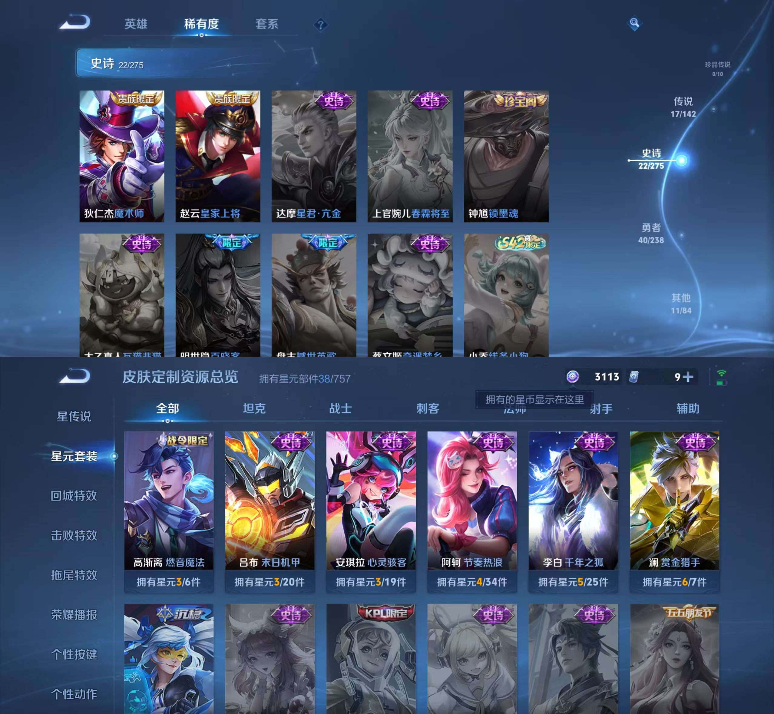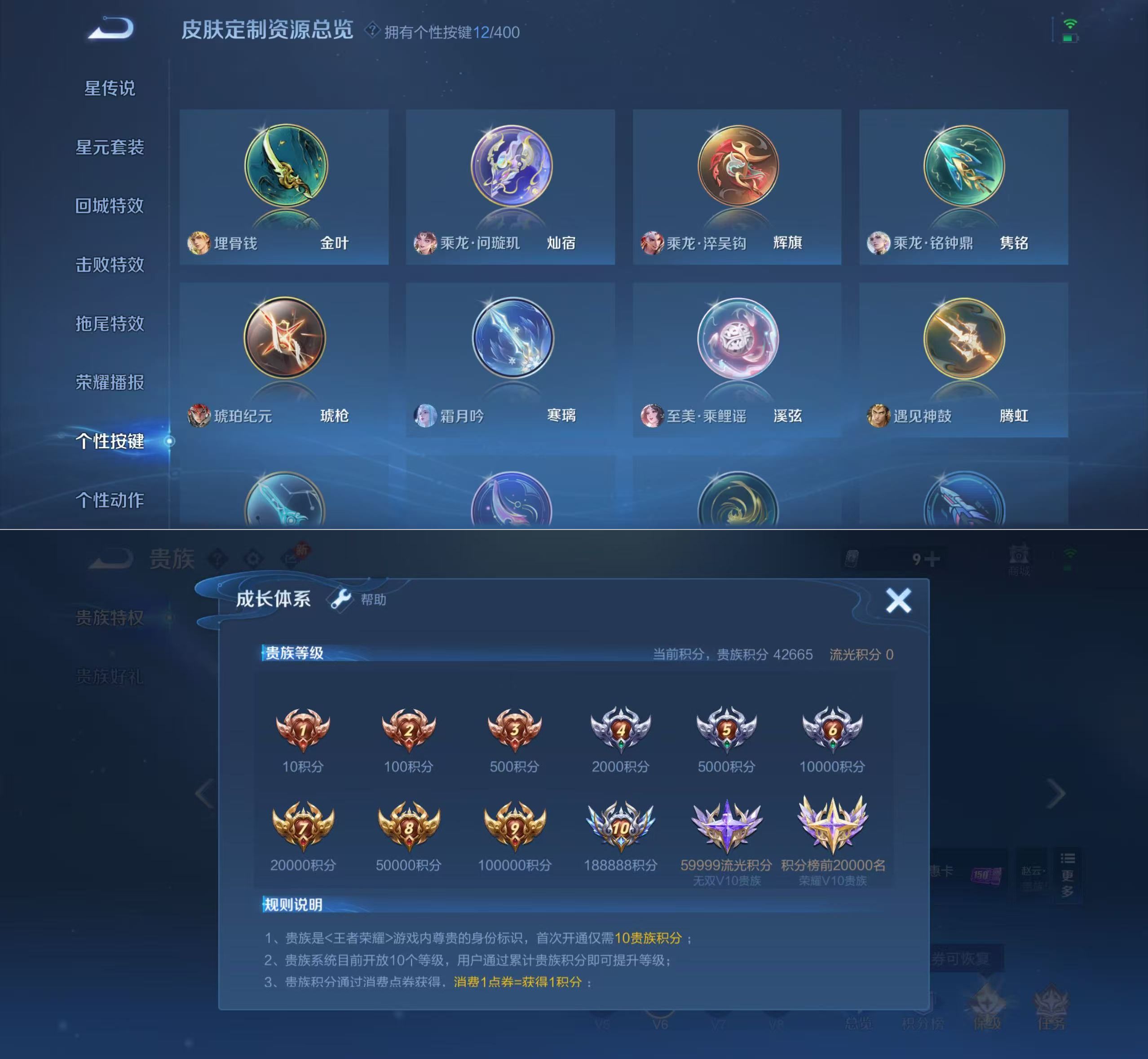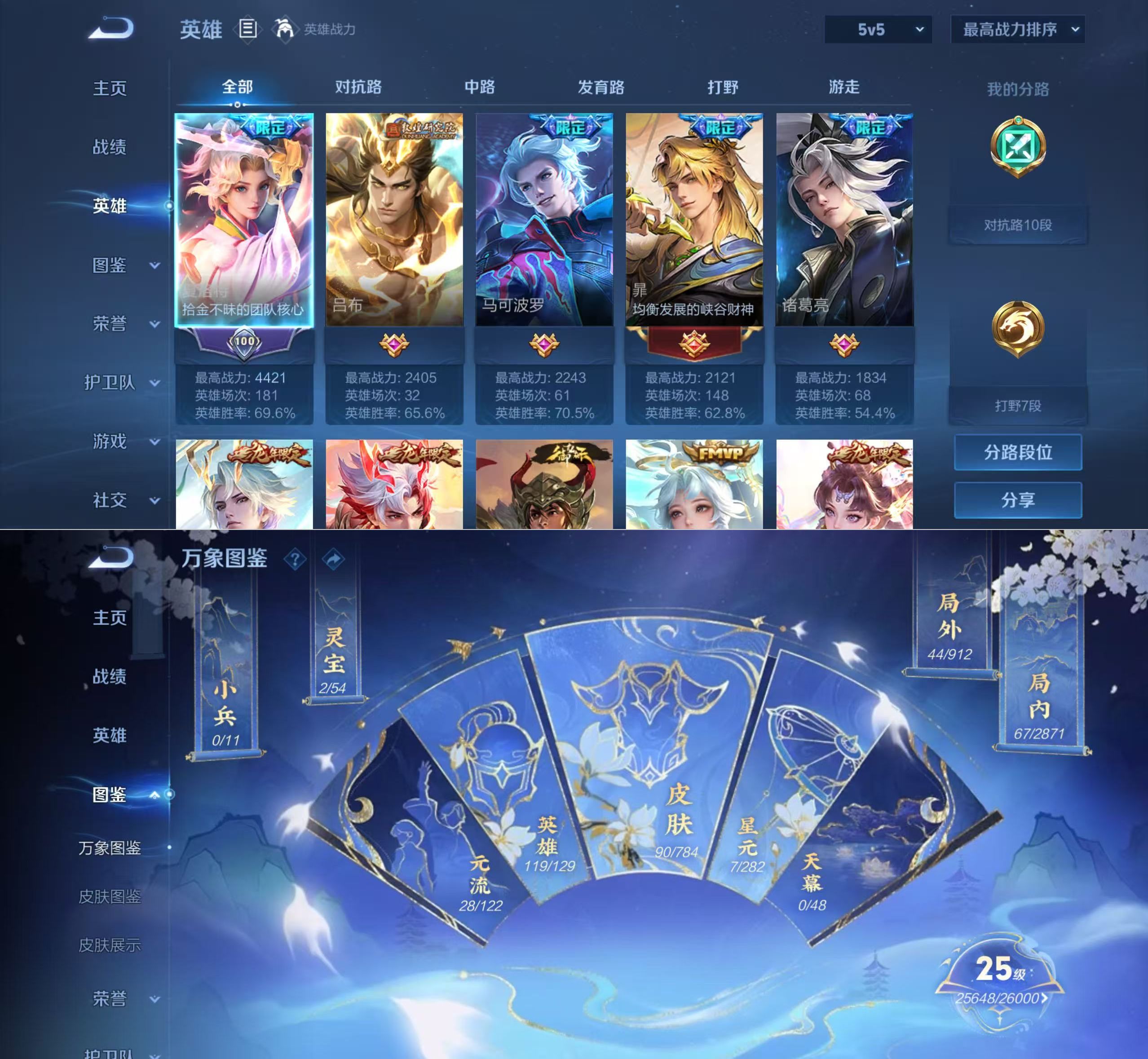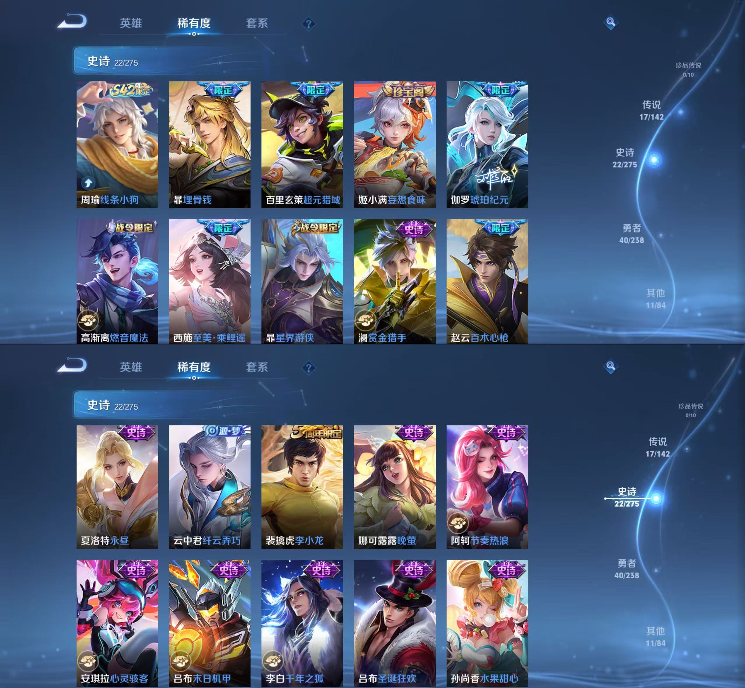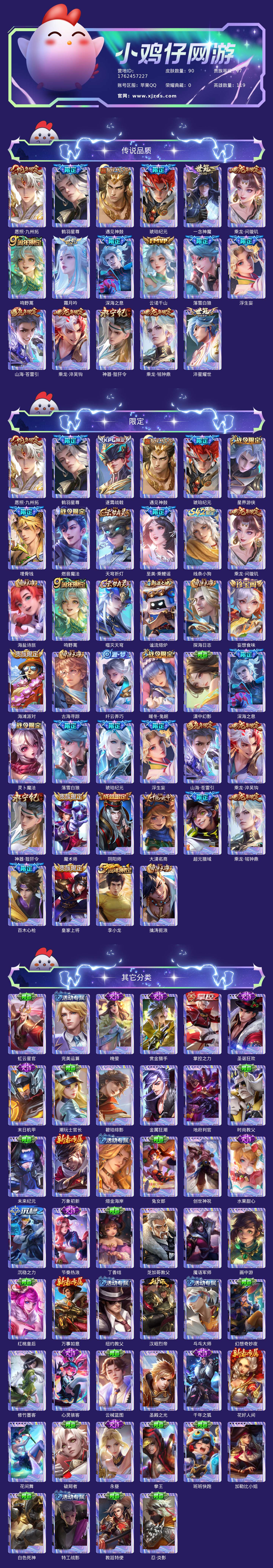 贵族等级:v7皮肤数:90传说品质17 生肖限定5 英雄数:119