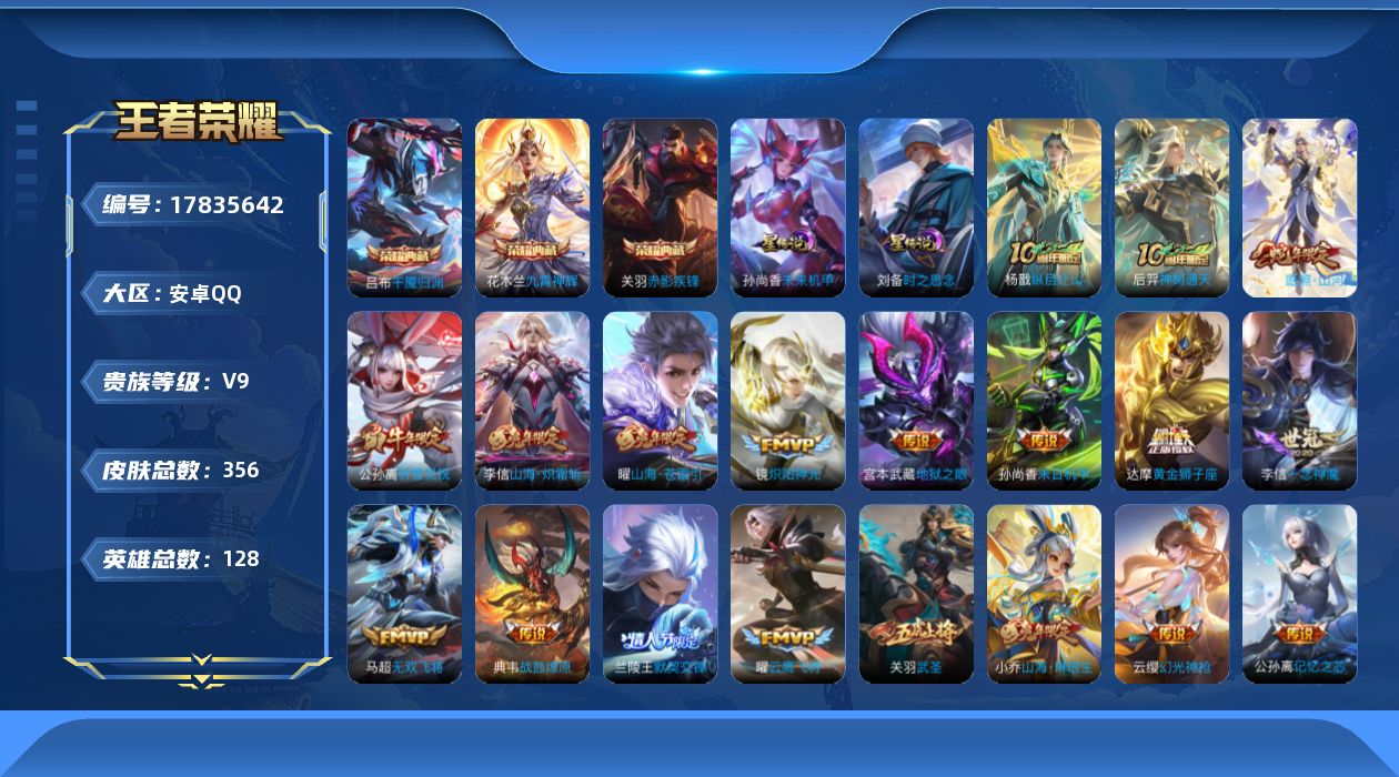 传说品质_后羿_黄金射手座传说品质_后羿_神树通天传说品质_关羽_武圣传说品质_司空震_愿照·山河定传说品质_典韦_战鼓燎原传说品质_兰陵王_默契交锋传说品质_孙悟空_齐天大圣传说品质_孙悟空_地狱火传说品质_吕布_怒海麟威传说品质_马超_无双飞将传说品质_杨戬_纵目迁山传说品质_干将莫邪_久胜战神传说品质_宫本武藏_地狱之眼传说品质_周瑜_音你心动传说品质_镜_炽阳神光传说品质_貂蝉_猫影幻舞传说品质_李信_一念神魔传说品质_李信_山海·炽霜斩传说品质_孙尚香_末日机甲传说品质_小乔_山海·琳琅生传说品质_梦奇_胖达荣荣传说品质_桑启_鸣野蒿传说品质_东皇太一_灼幽烈阳传说品质_刘备_时之恋人传说品质_张良_黄金白羊座传说品质_云缨_幻光神枪传说品质_公孙离_祈雪灵祝传说品质_公孙离_记忆之芯传说品质_曜_云鹰飞将传说品质_曜_山海·苍雷引传说品质_孙策_末日机甲传说品质_狄仁杰_超时空战士传说品质_达摩_黄金狮子座传说品质_铠_绛天战甲传说品质_虞姬_启明星使传说品质_赵云_淬星耀世传说品质_王昭君_乞巧织情