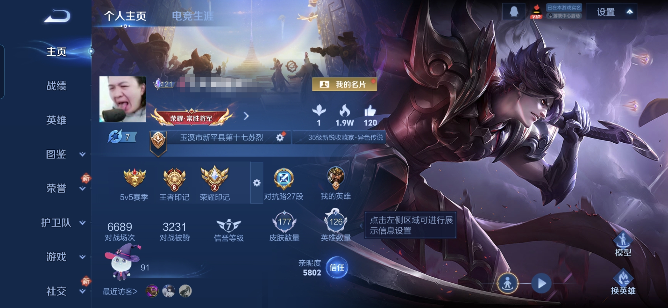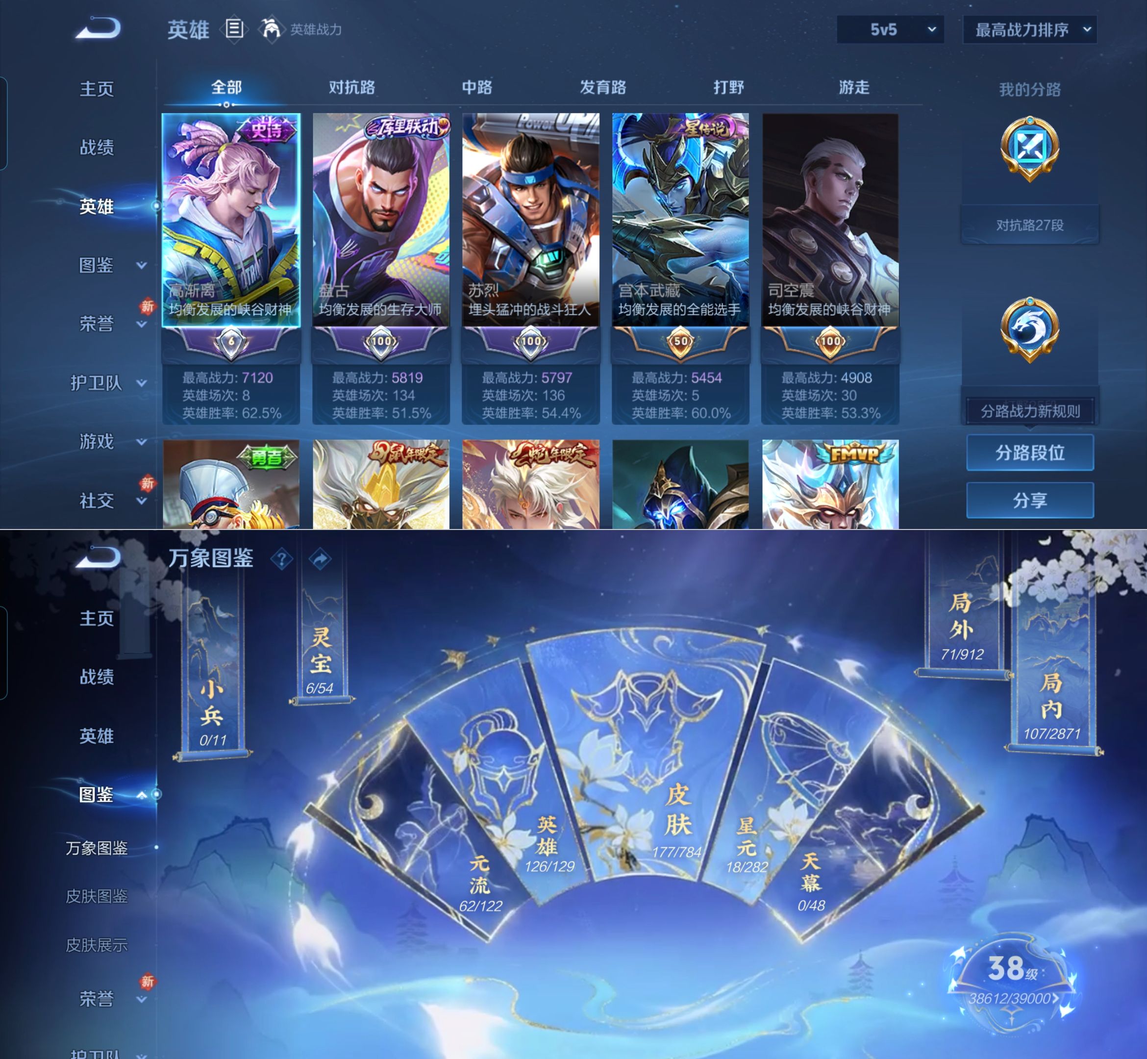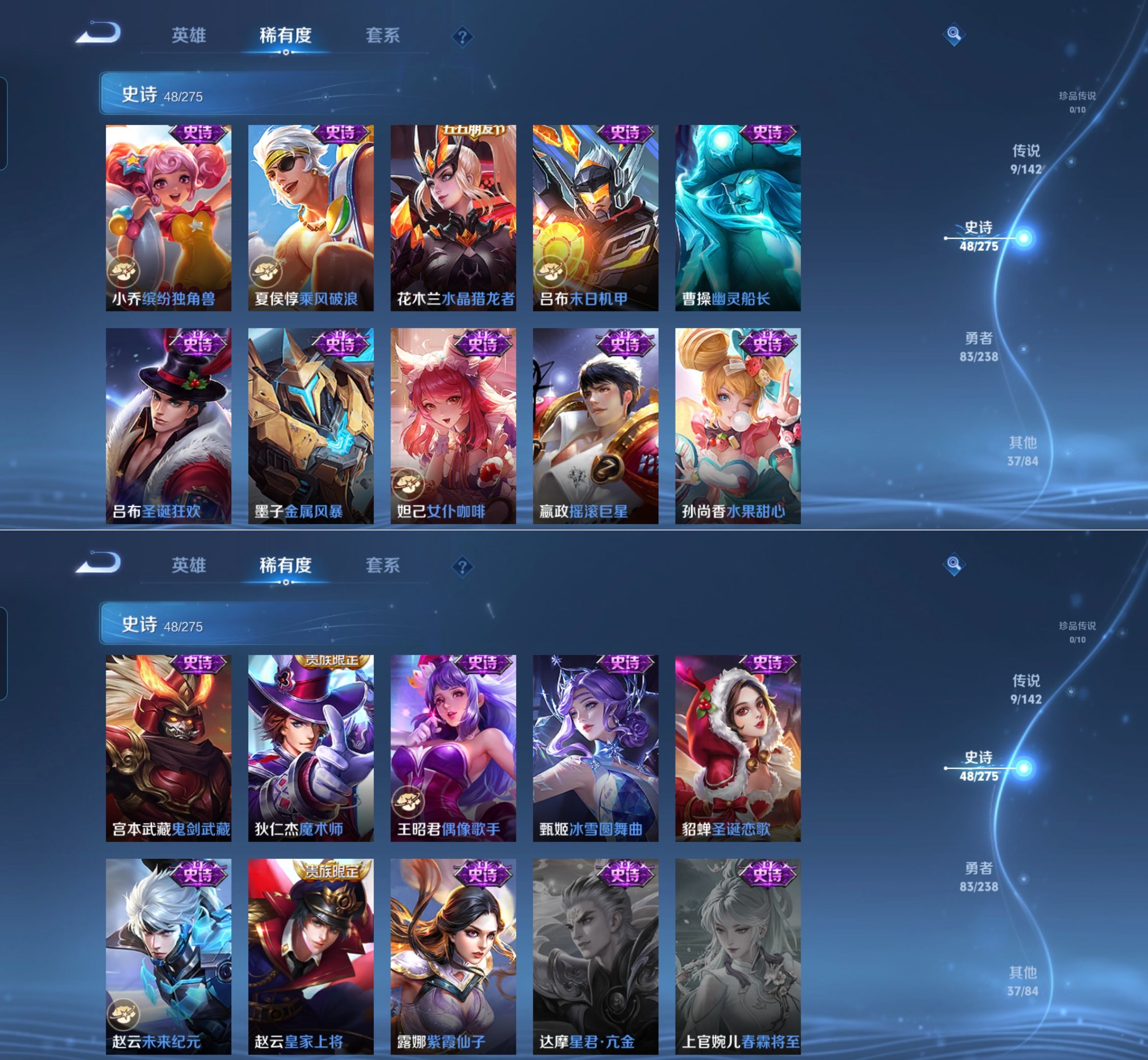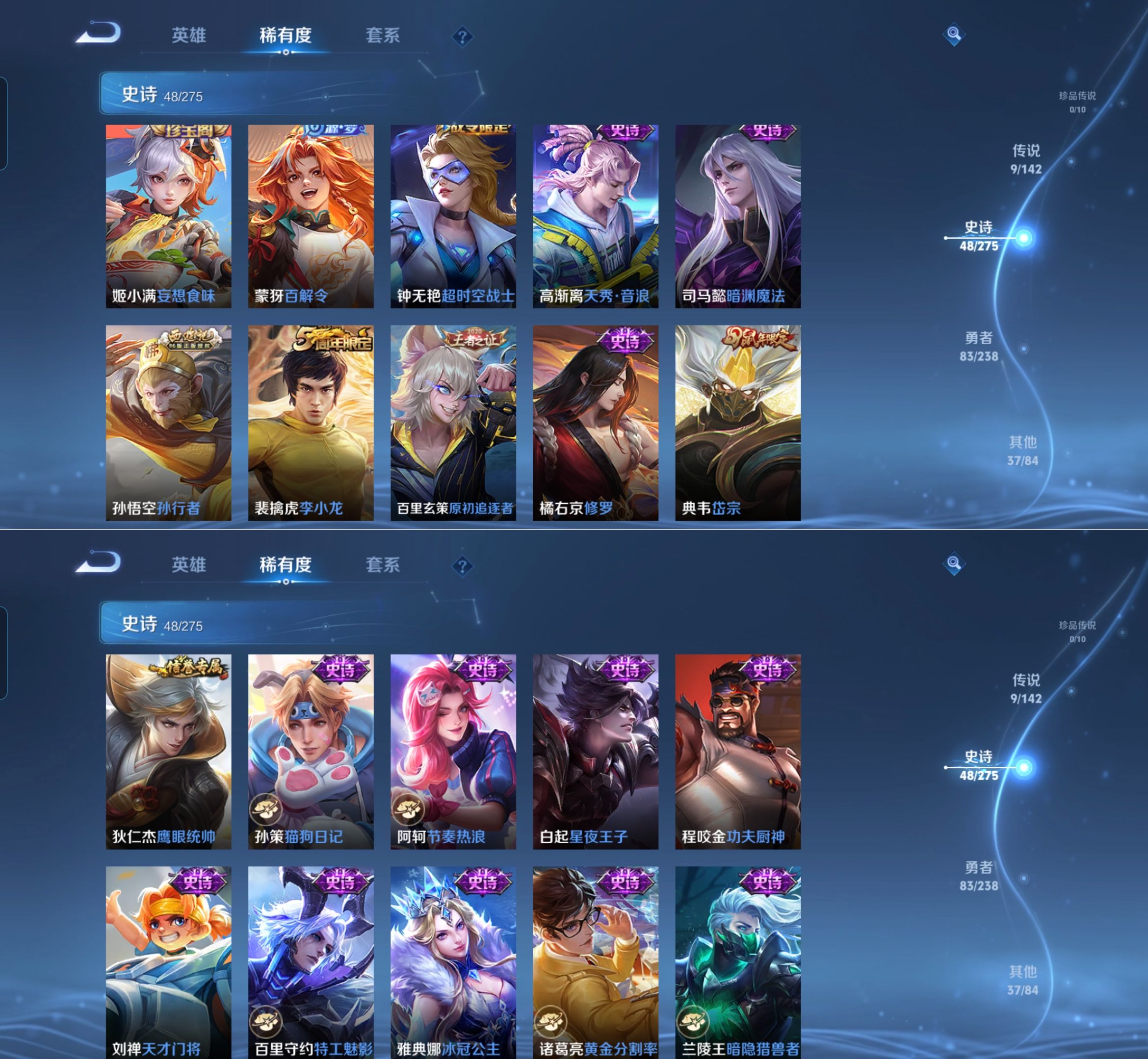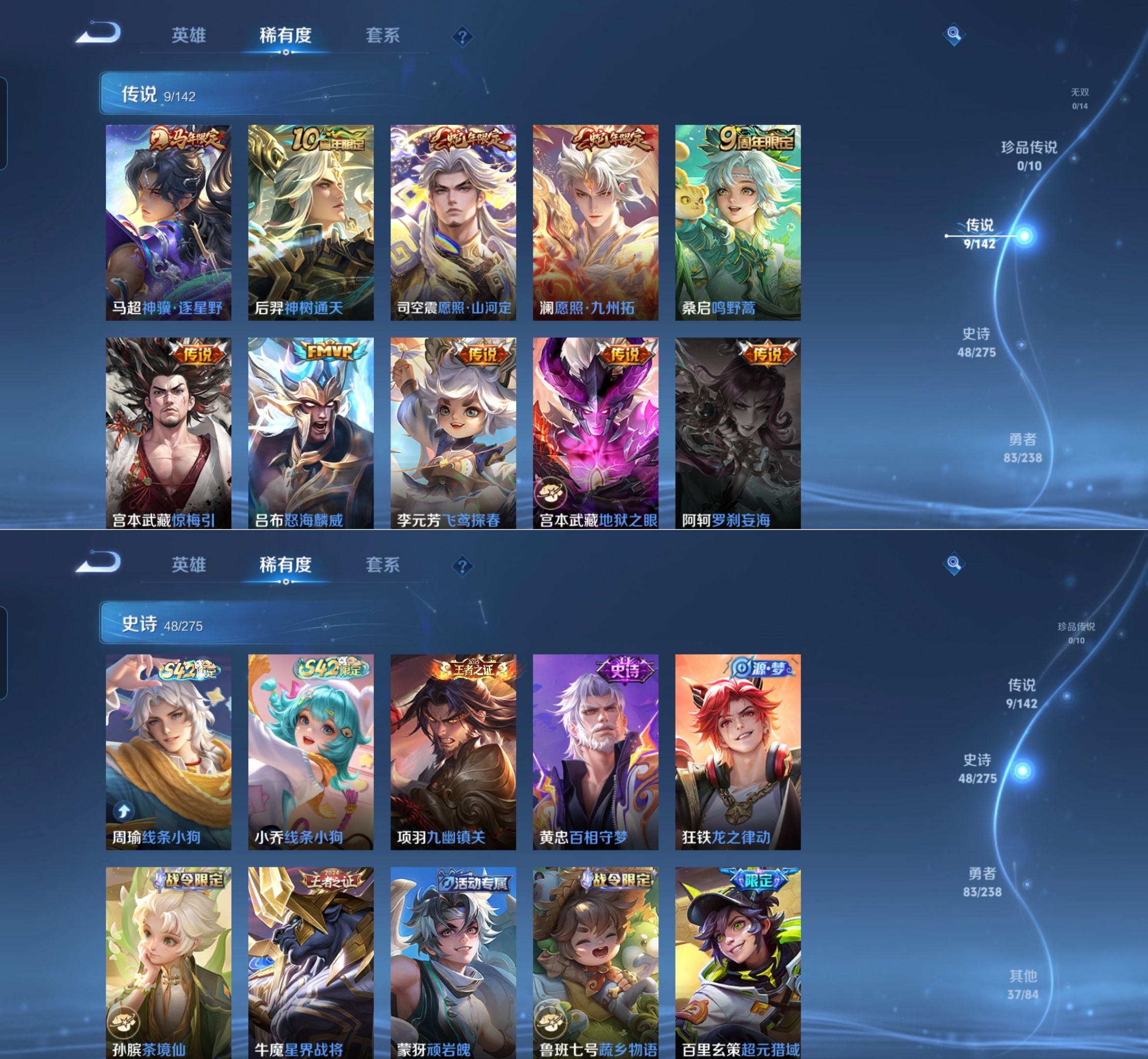 贵族等级:v7皮肤数:178传说品质9 生肖限定4 英雄数:126
