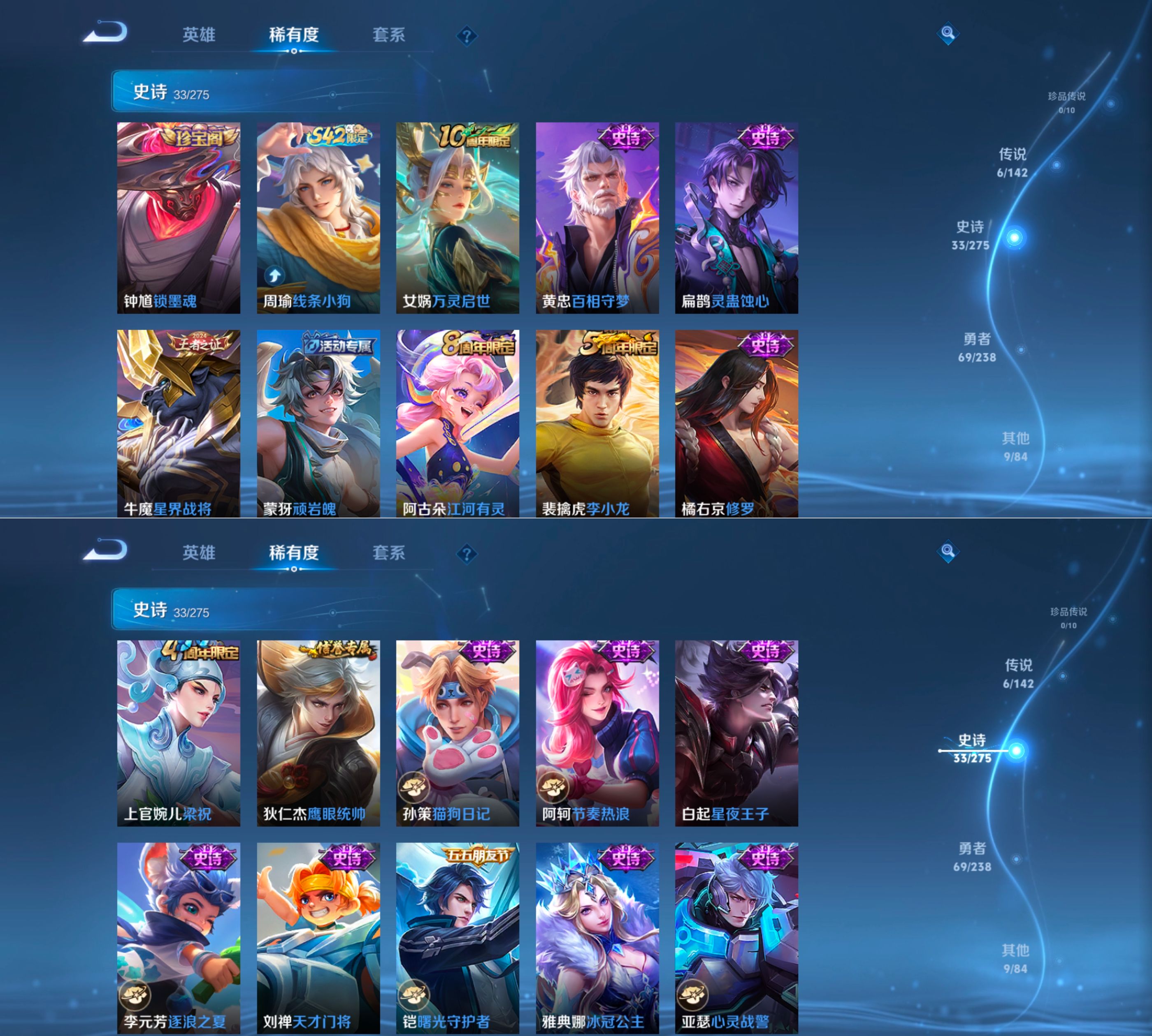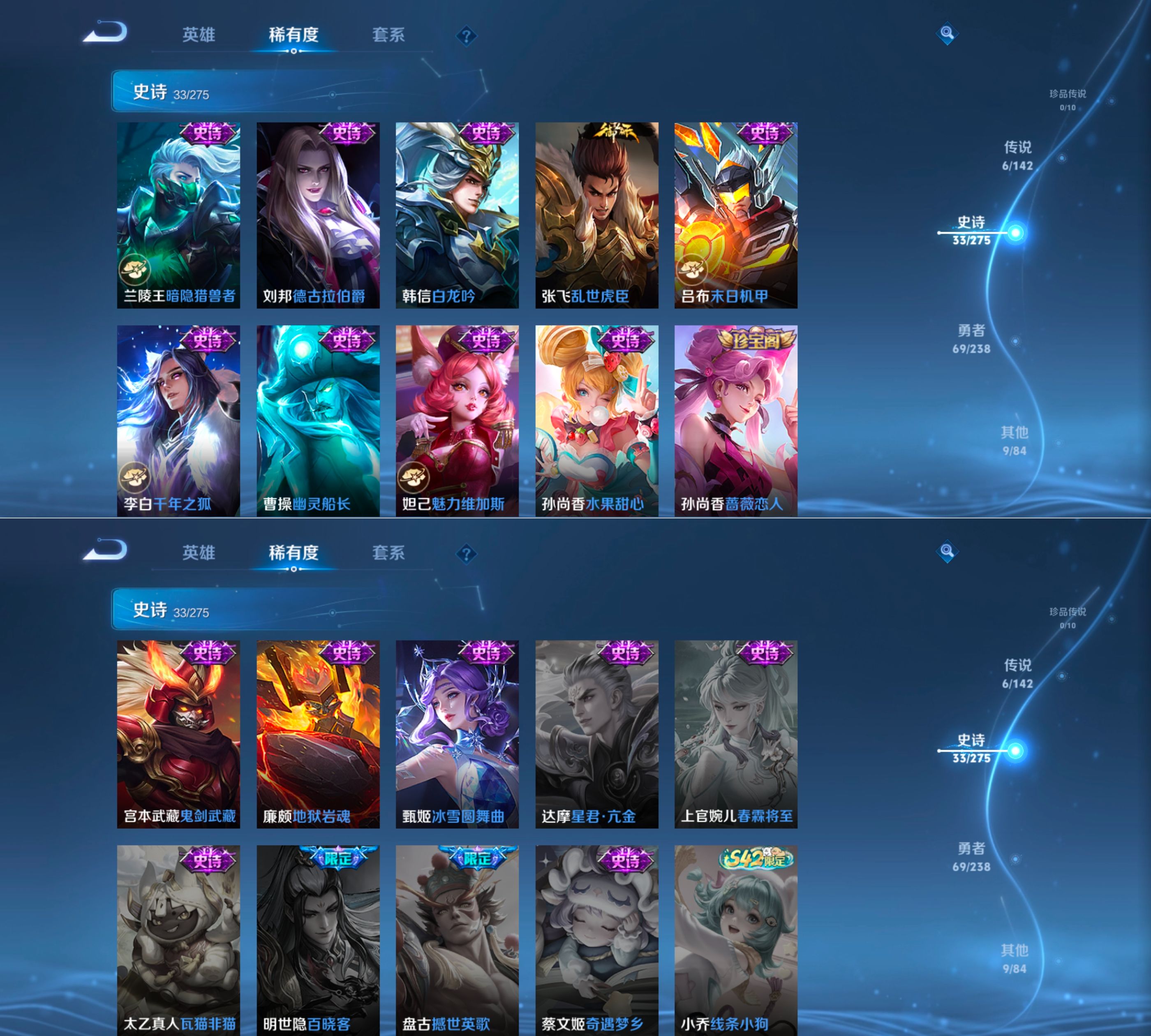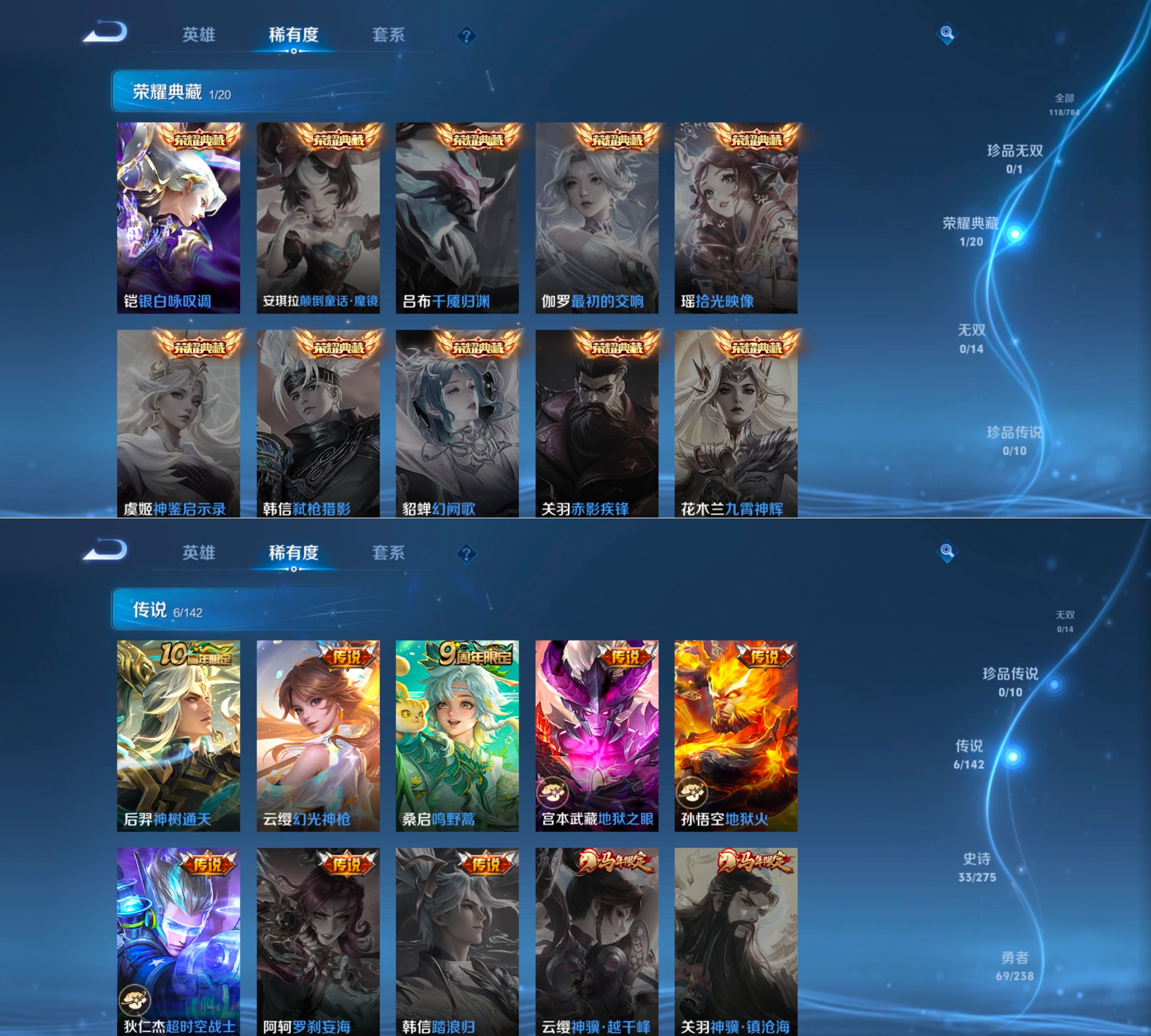 贵族等级:v1皮肤数:118传说品质6 荣耀典藏1 英雄数:126