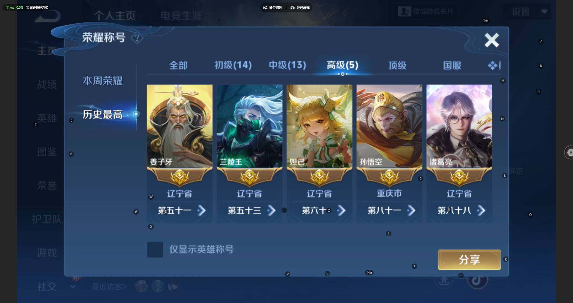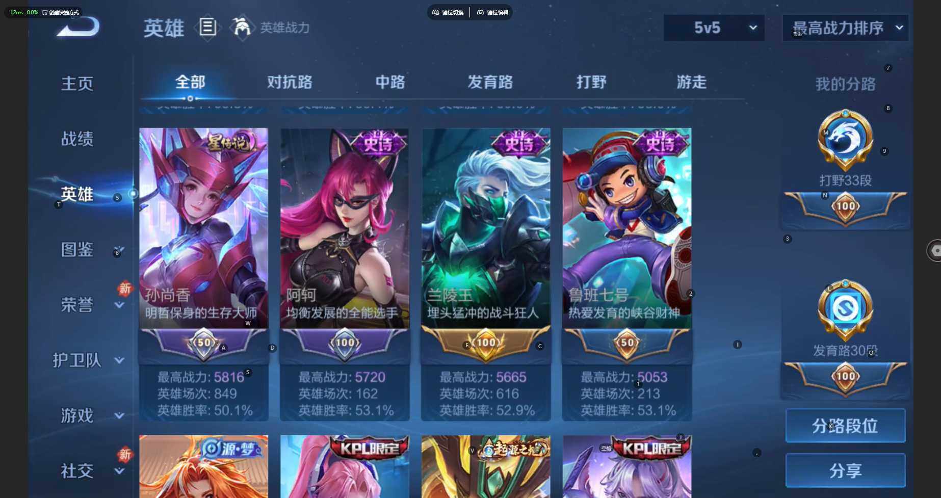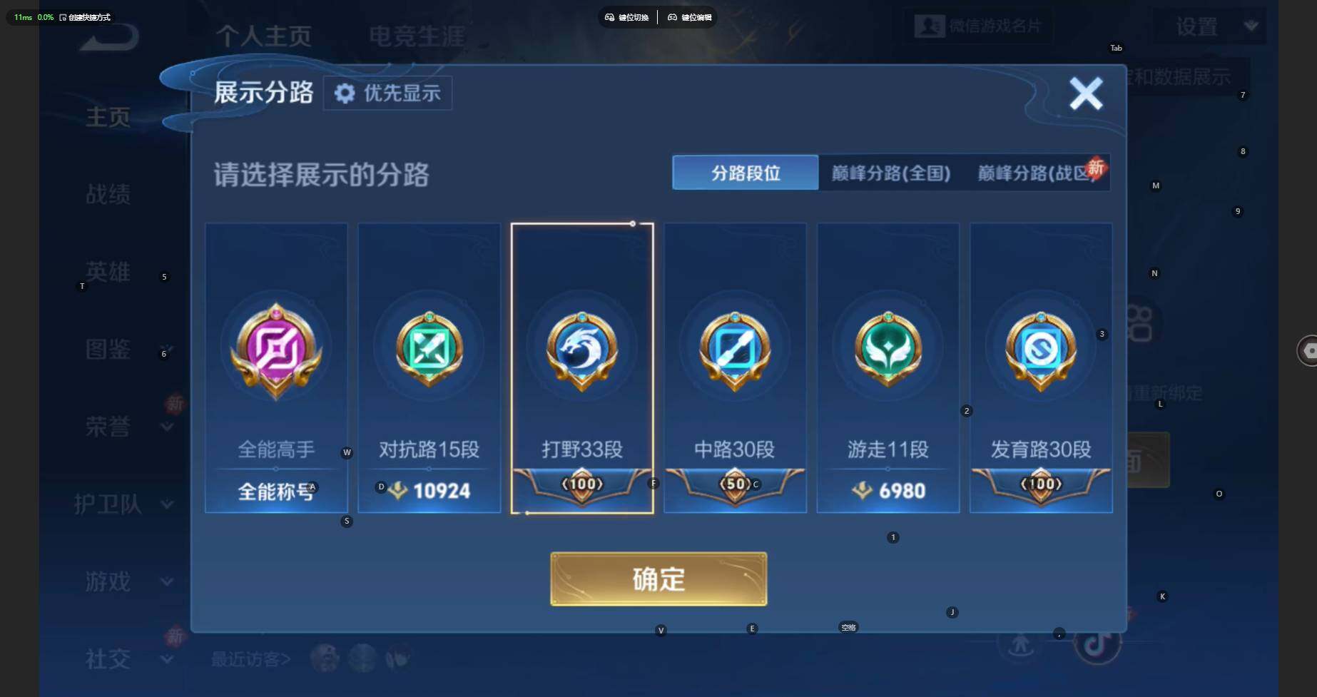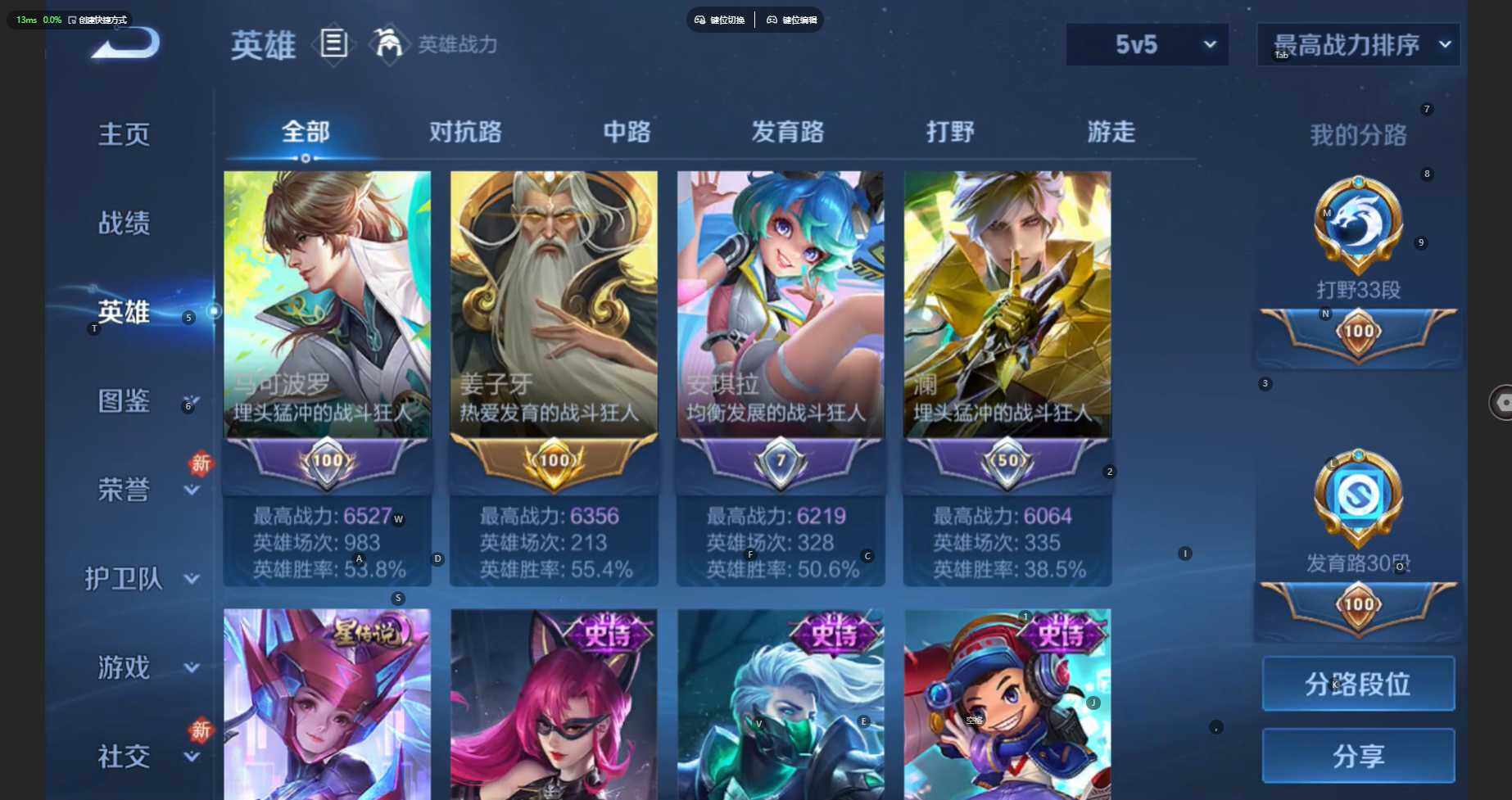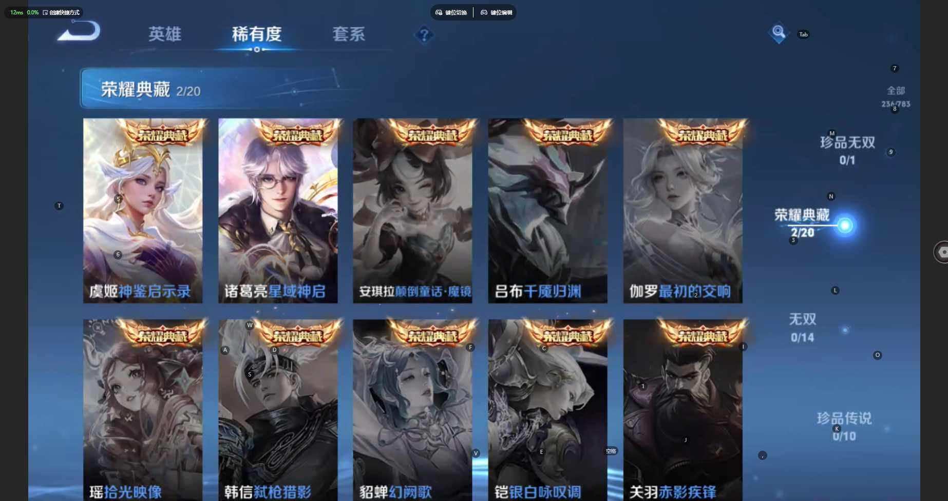 贵族等级:v7皮肤数:236传说品质8 情人节限定3 荣耀典藏2 生肖限定6 英雄数:127
